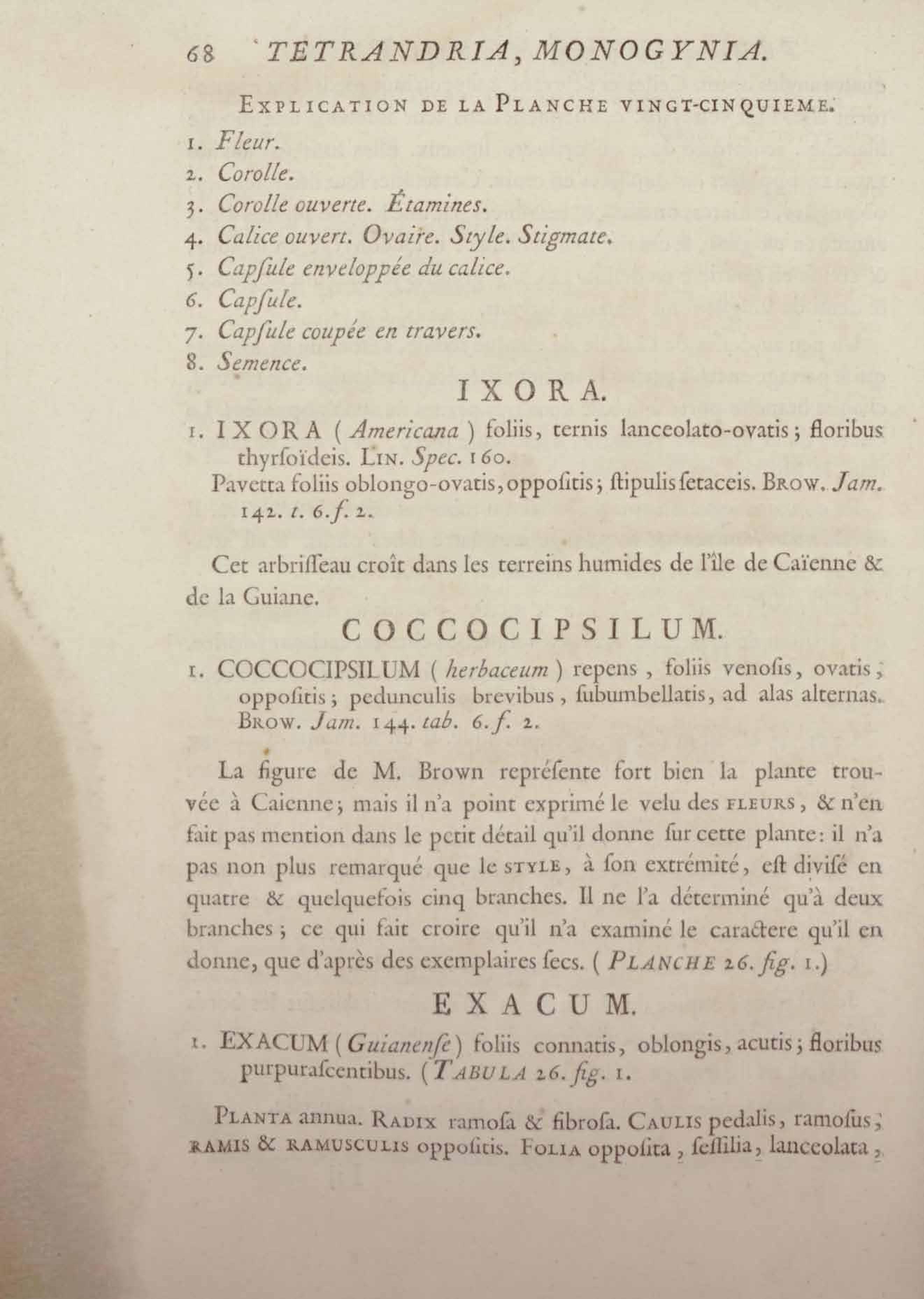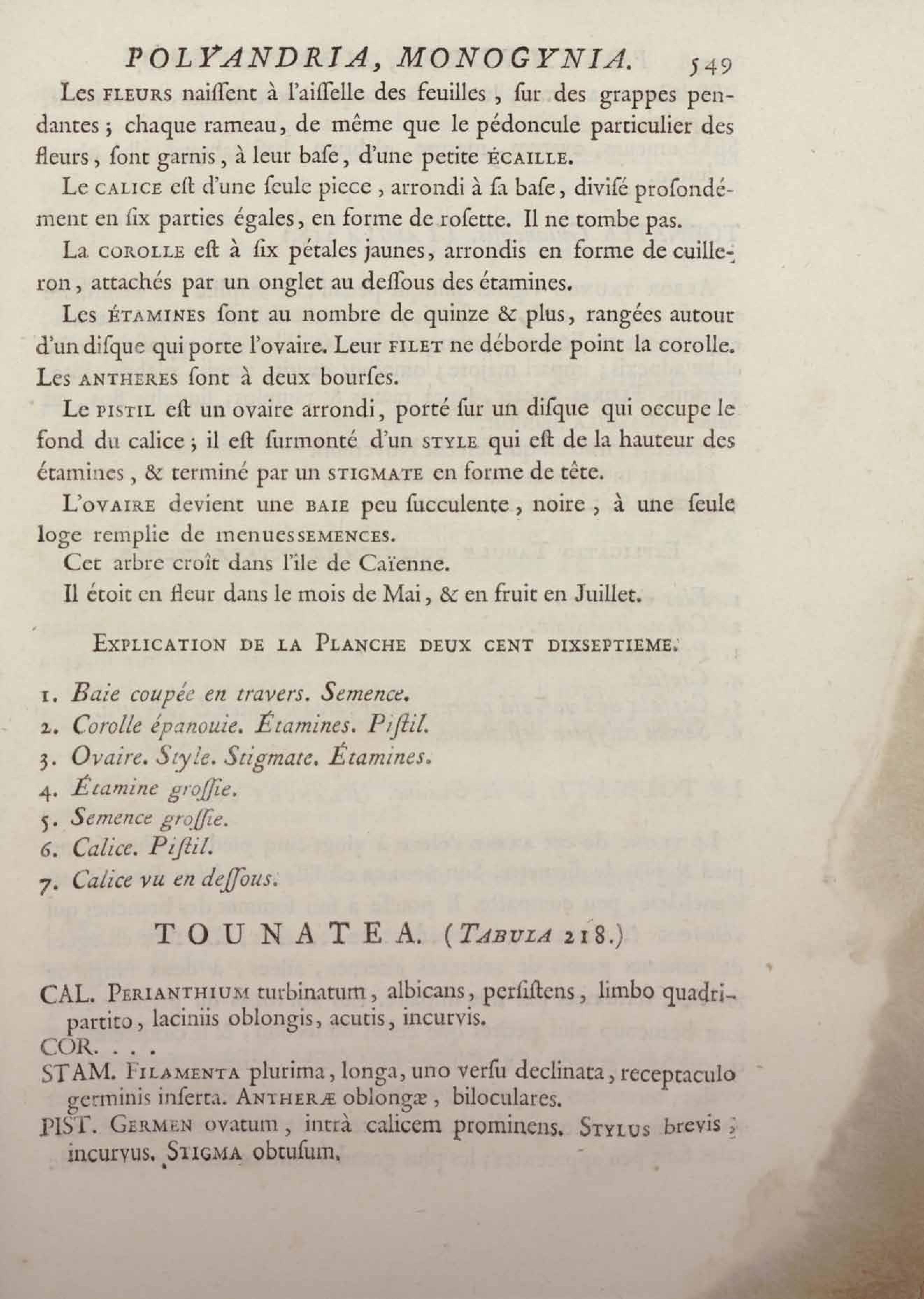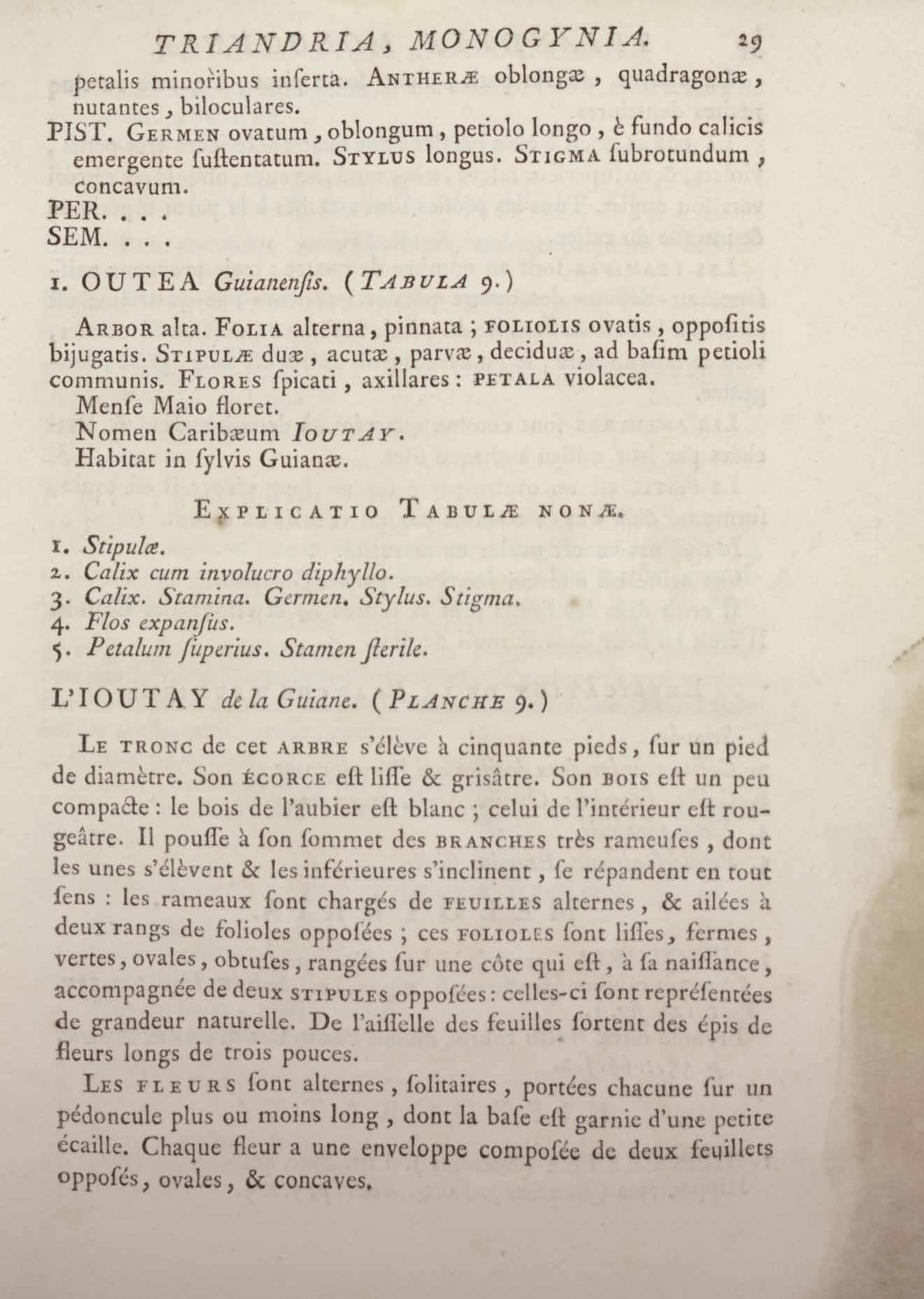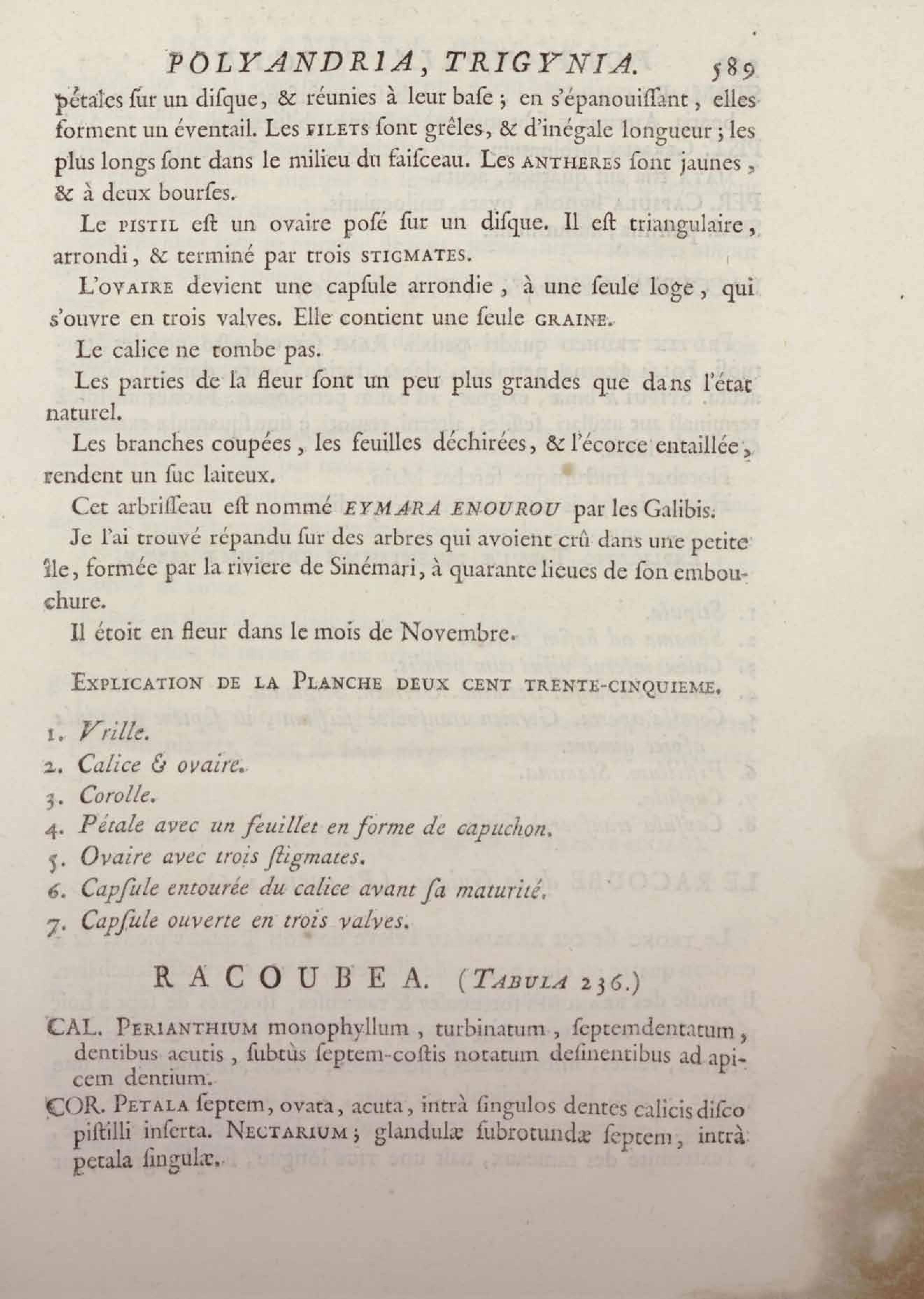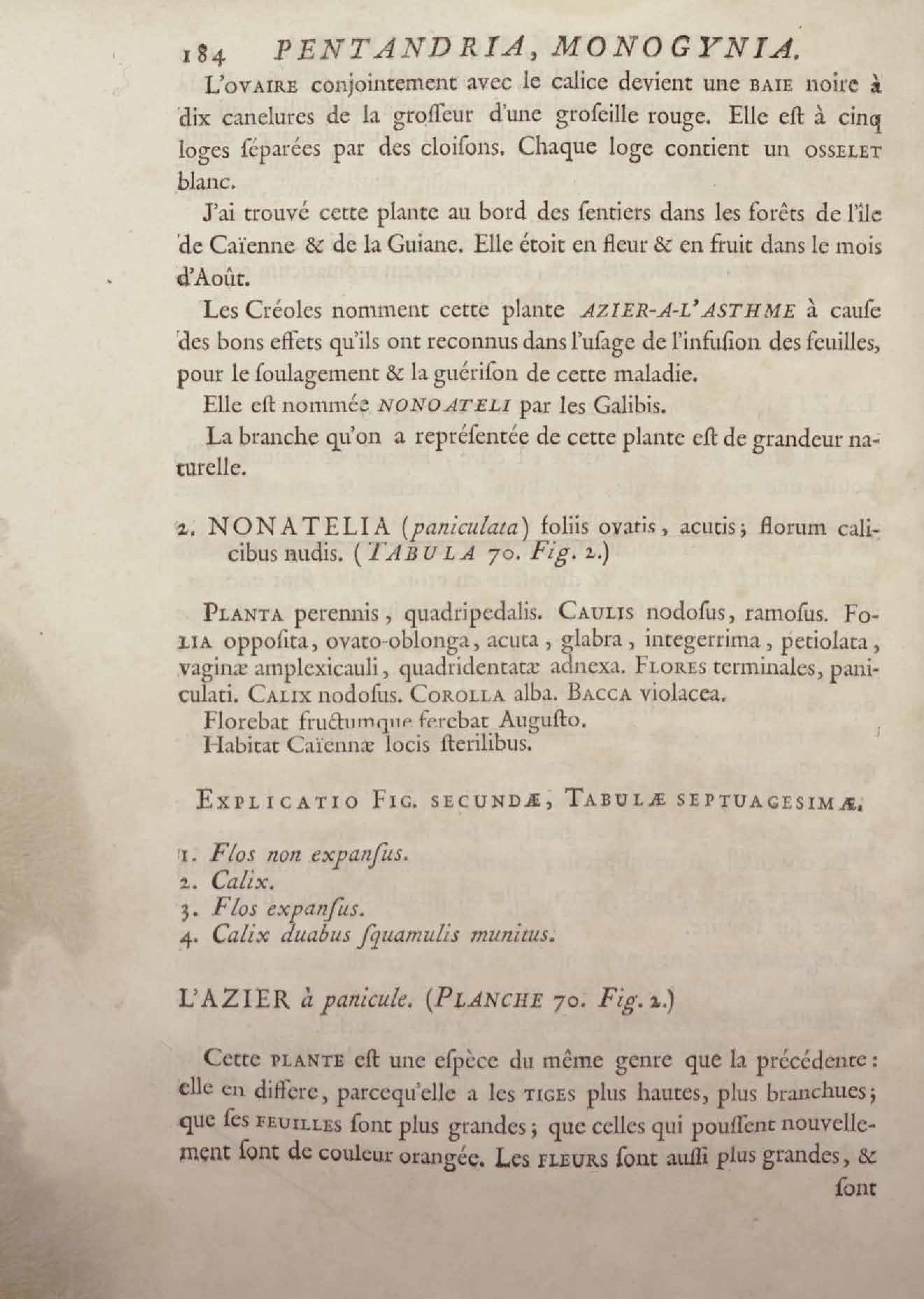 Histoire des plantes de la Guiane françoise, rangées suivant la méthode sexuelle : avec plusieurs mémoires sur différens objets intéressans, relatifs à la culture & au commerce de la Guiane françoise, & une notice des plantes de l'Isle-de-France : ouvrage orné de près de quatre cents planches en taille-douce, où sont représentées des plantes qui n'ont point encore été décrites ni gravées, ou qui ne l'ont été qu'imparfaitement. Tome premier