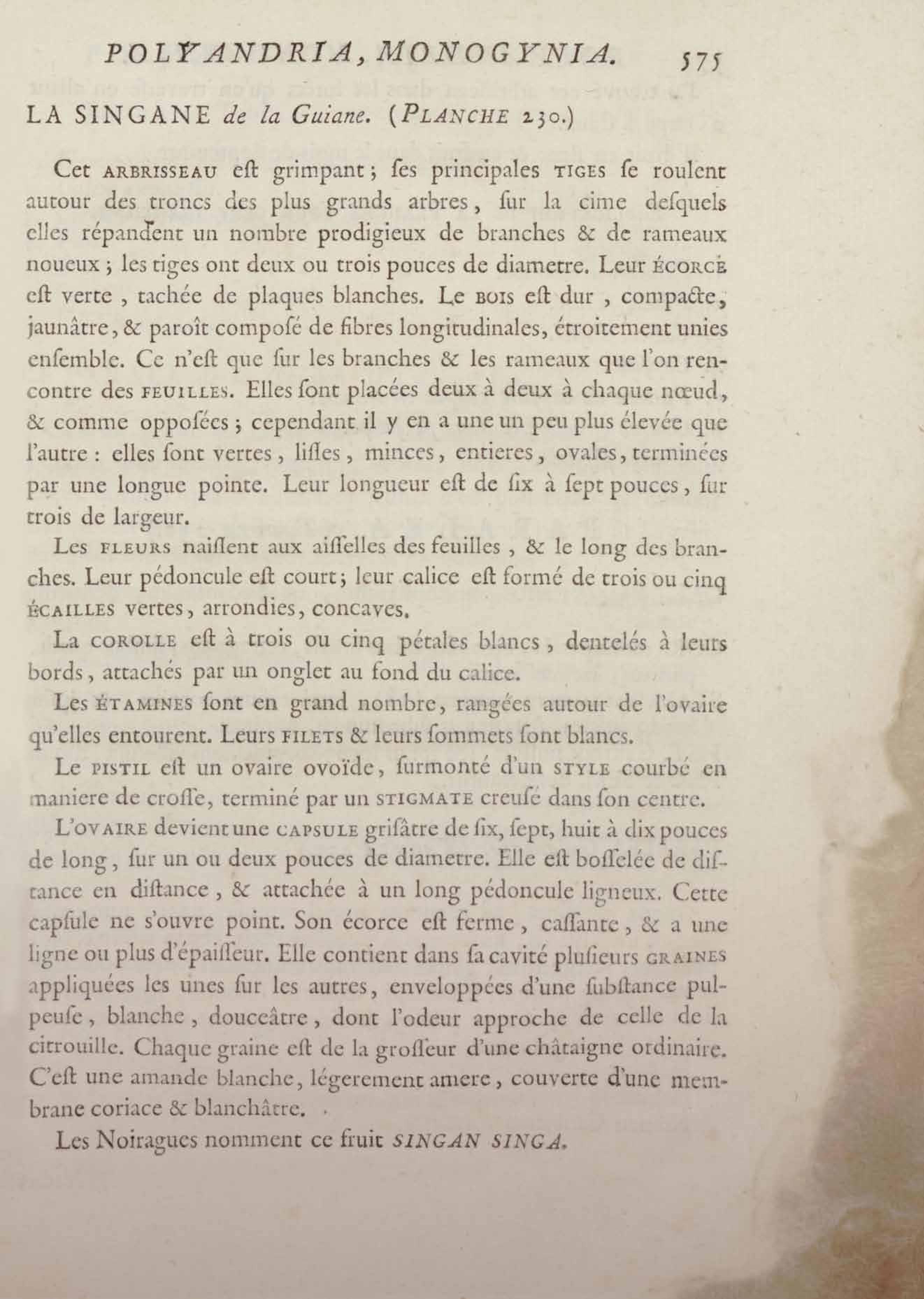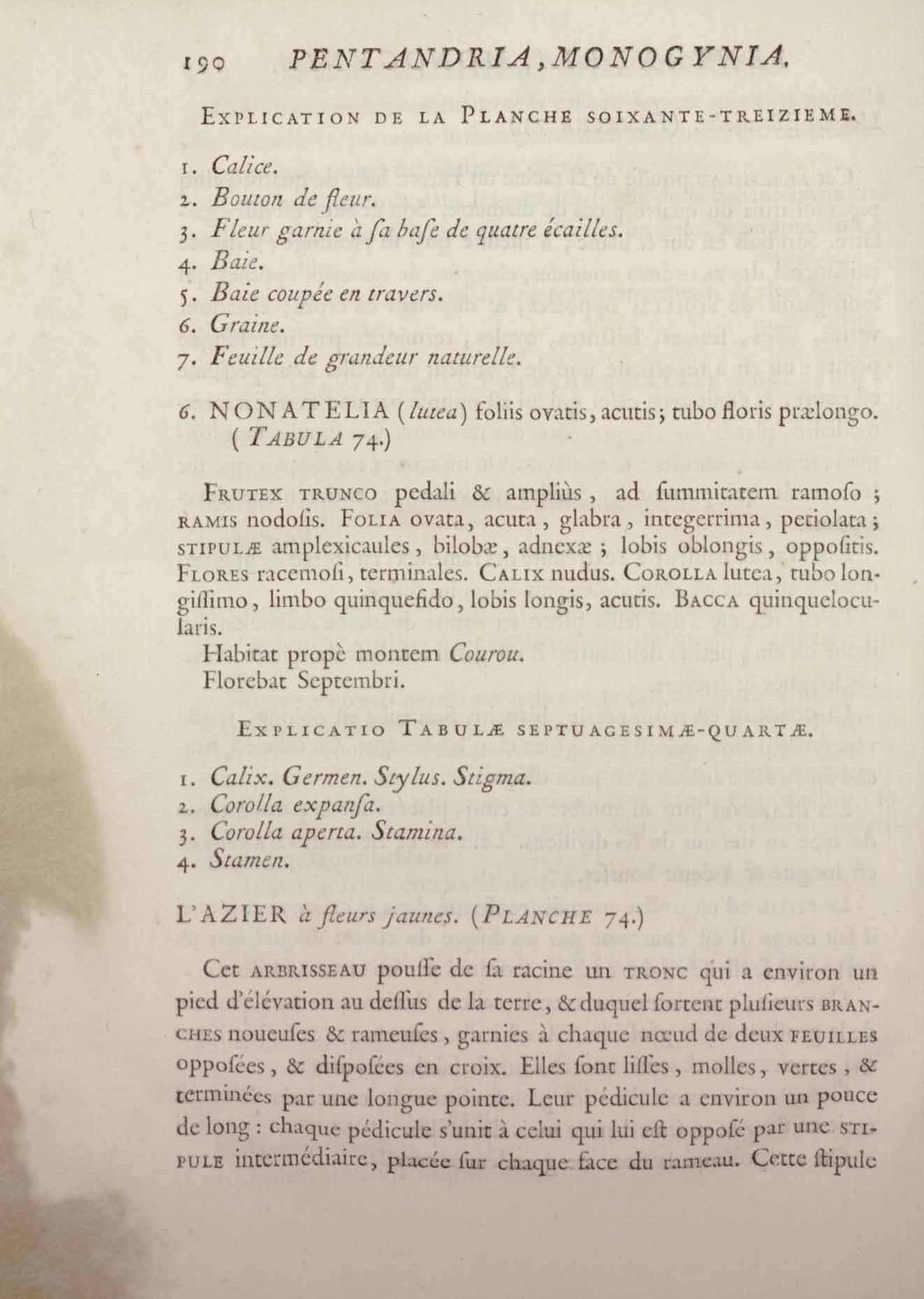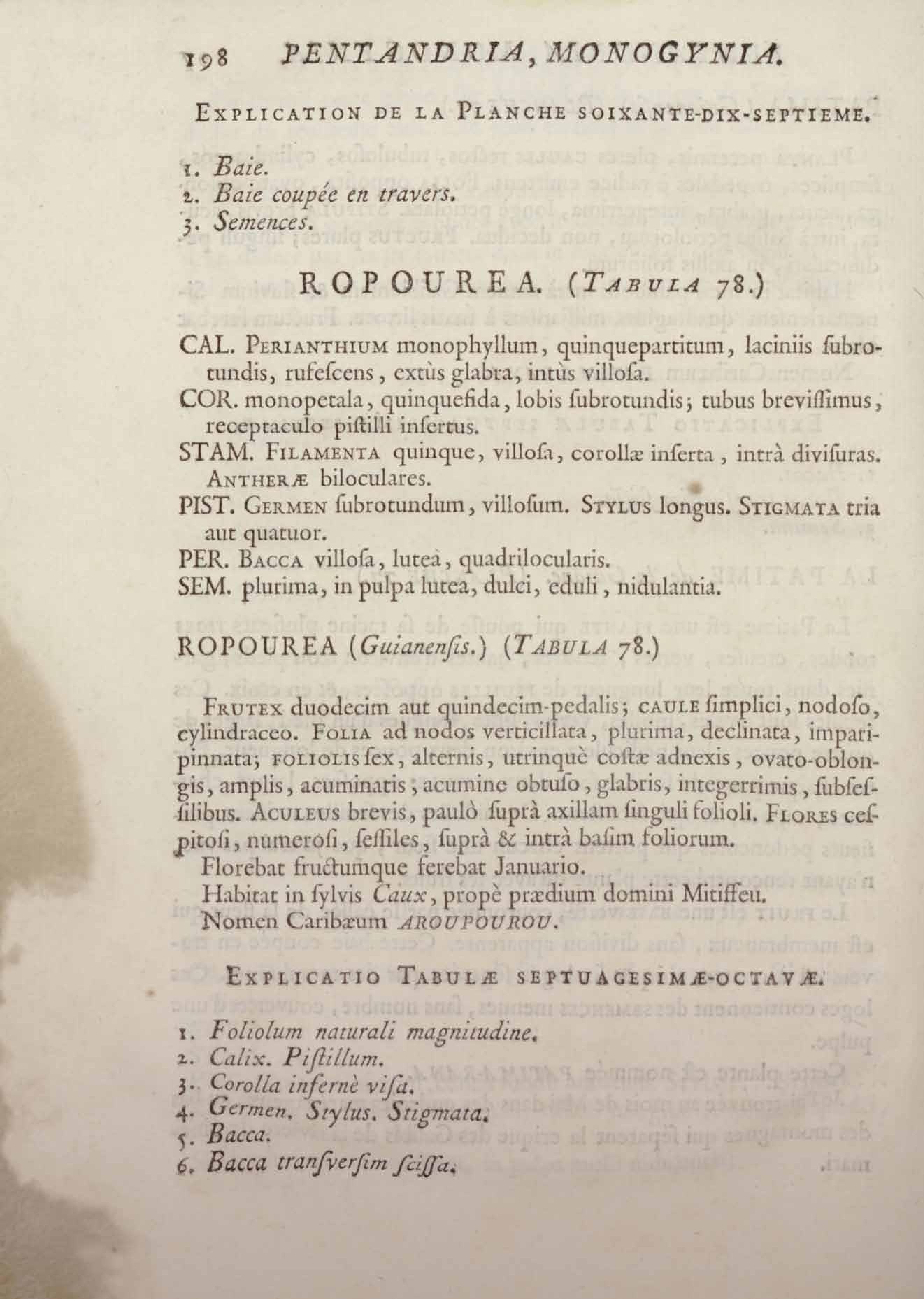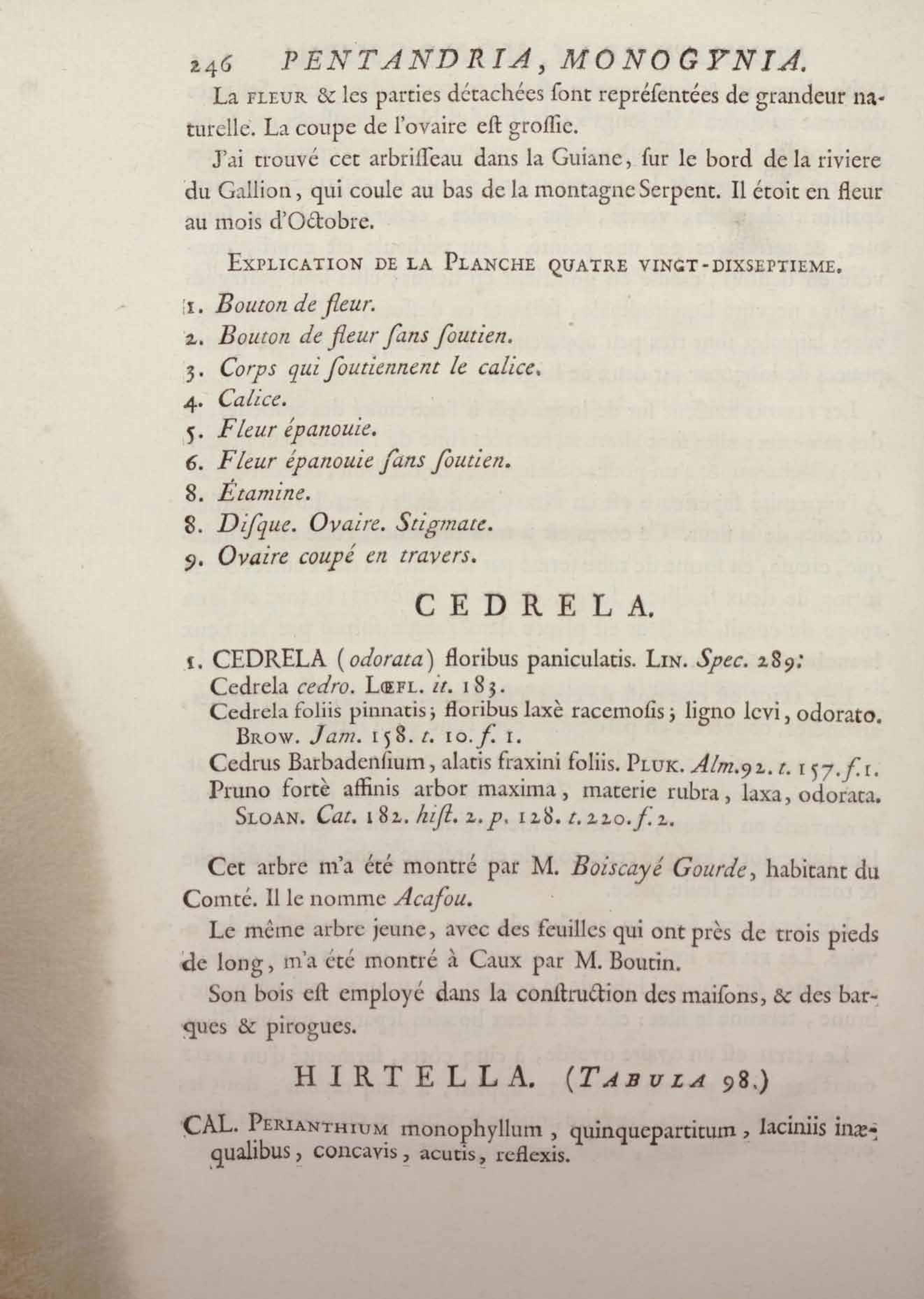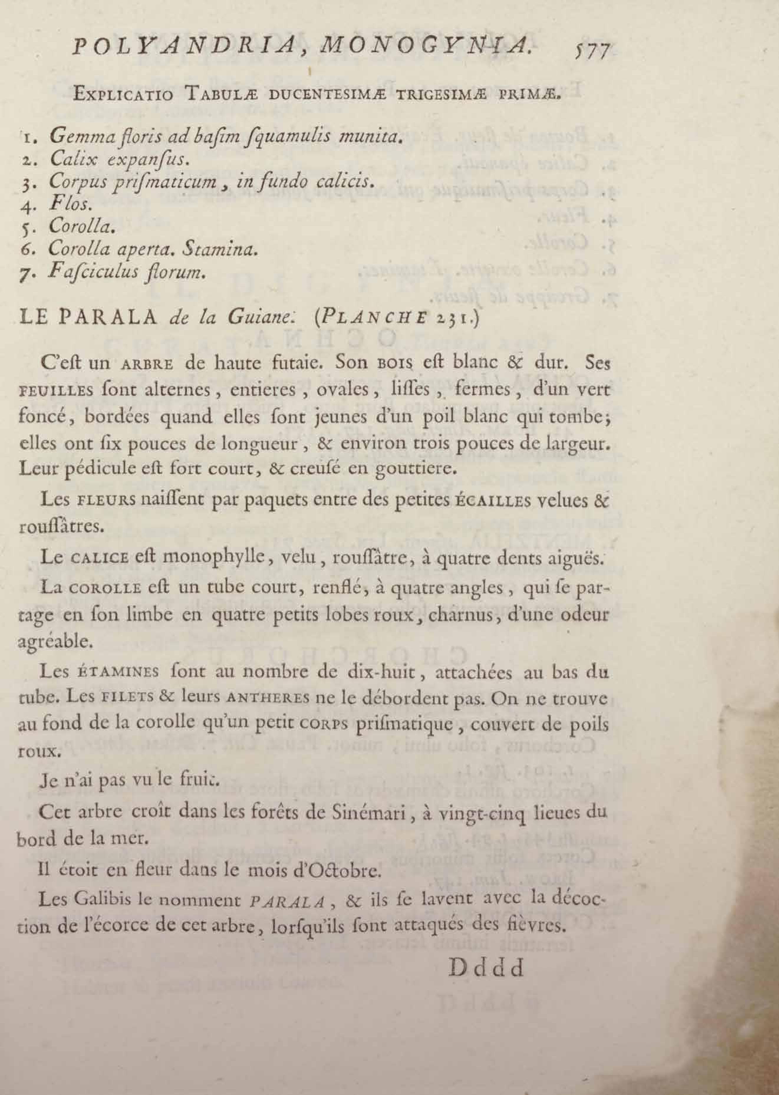 Histoire des plantes de la Guiane françoise, rangées suivant la méthode sexuelle : avec plusieurs mémoires sur différens objets intéressans, relatifs à la culture & au commerce de la Guiane françoise, & une notice des plantes de l'Isle-de-France : ouvrage orné de près de quatre cents planches en taille-douce, où sont représentées des plantes qui n'ont point encore été décrites ni gravées, ou qui ne l'ont été qu'imparfaitement. Tome premier