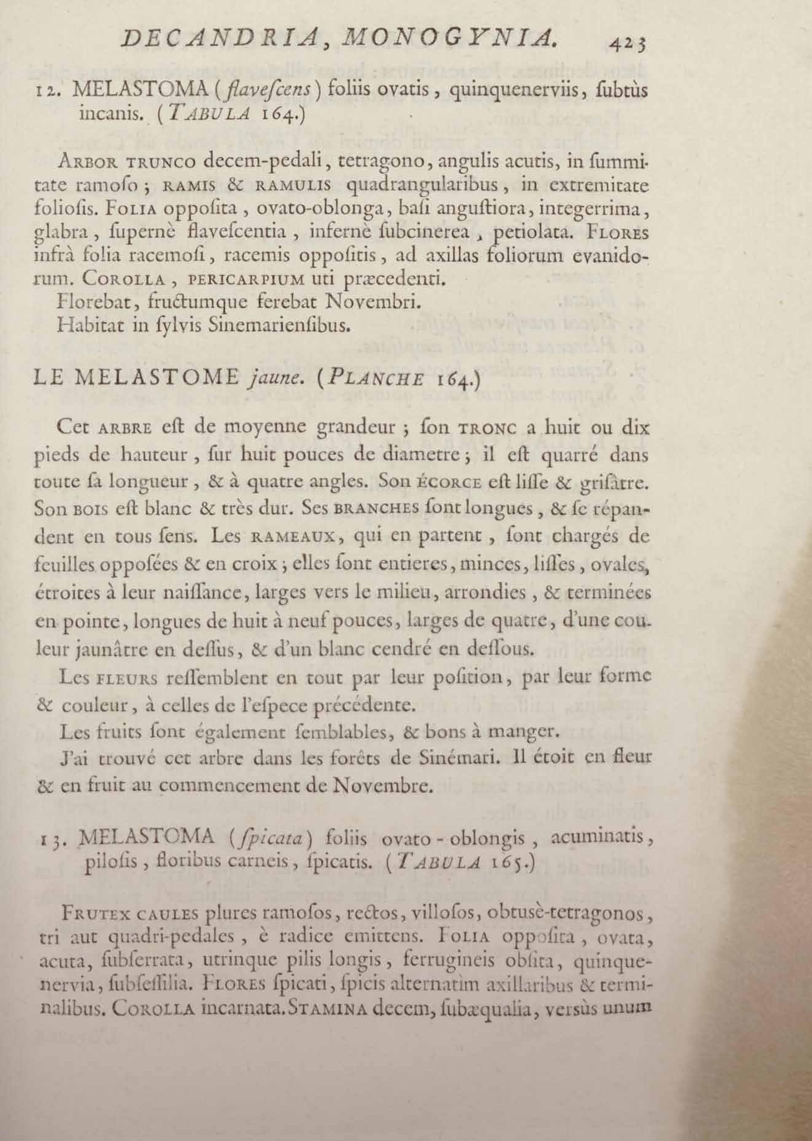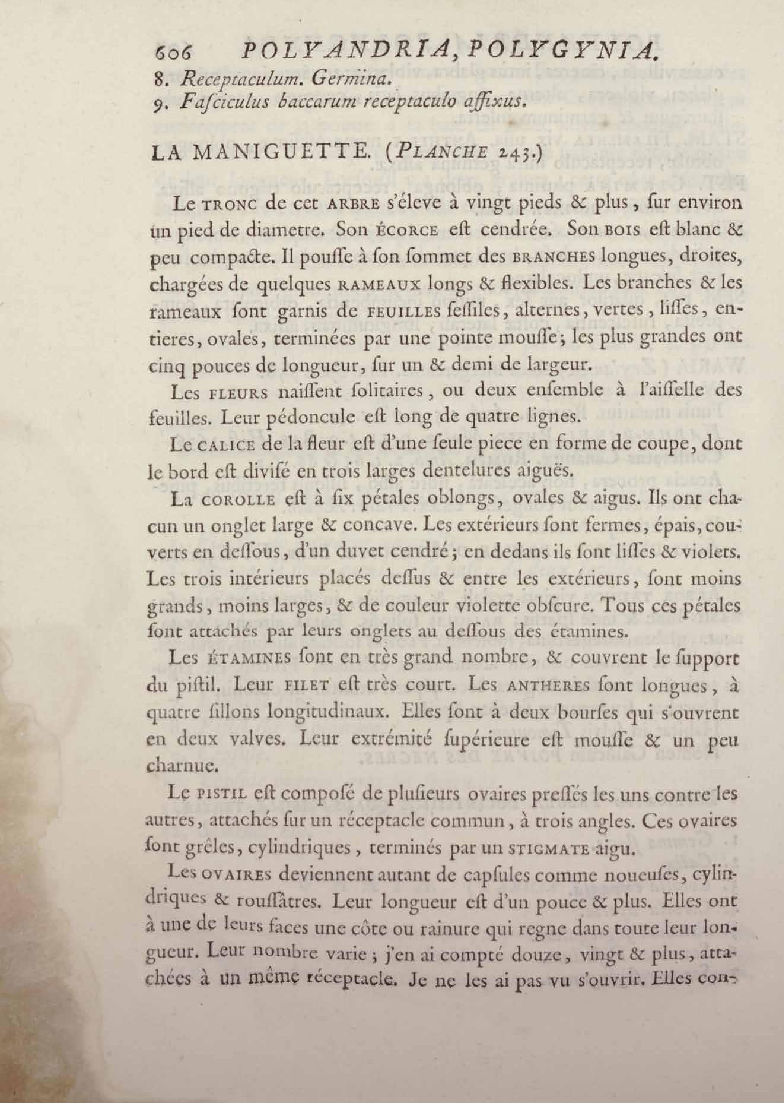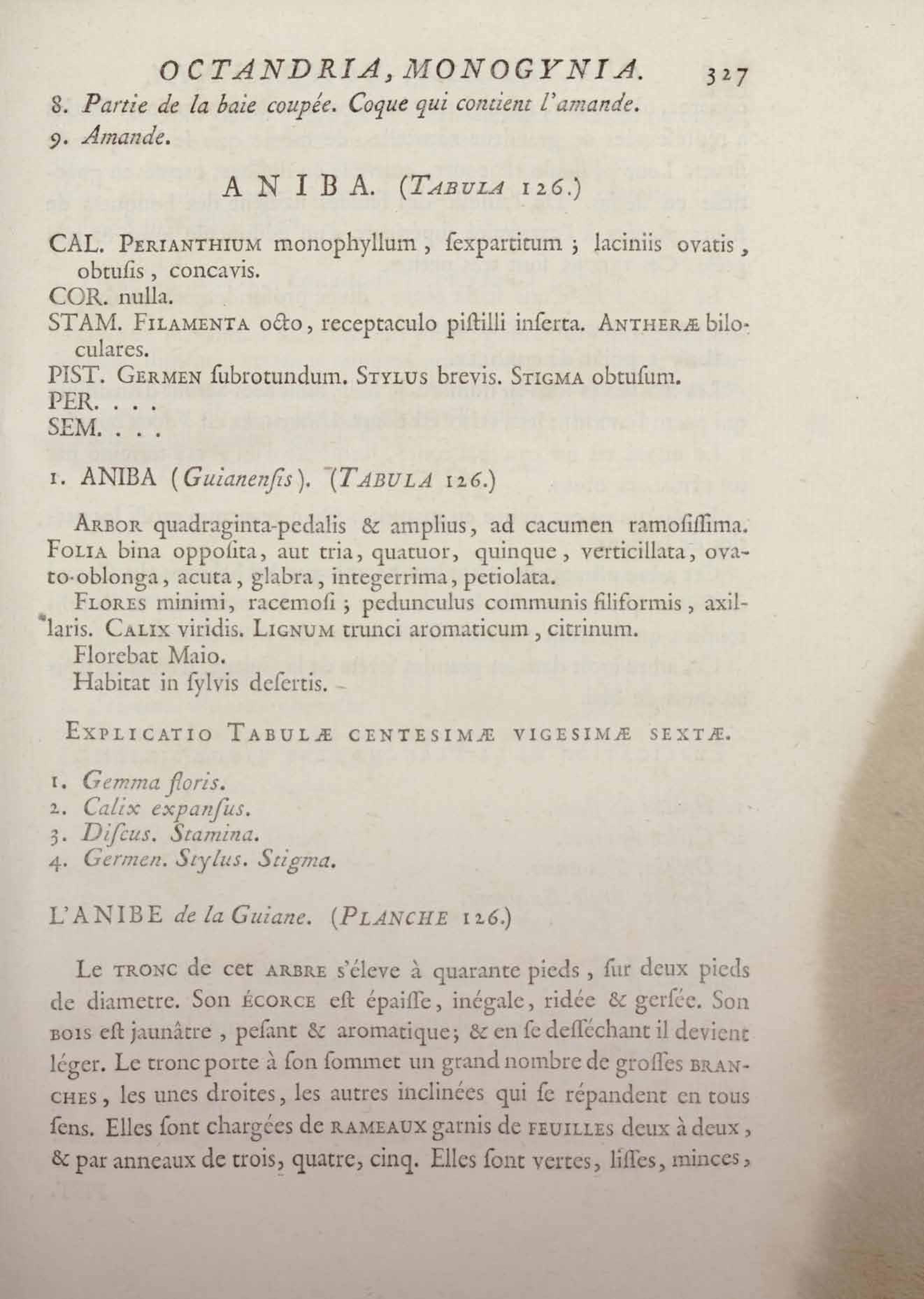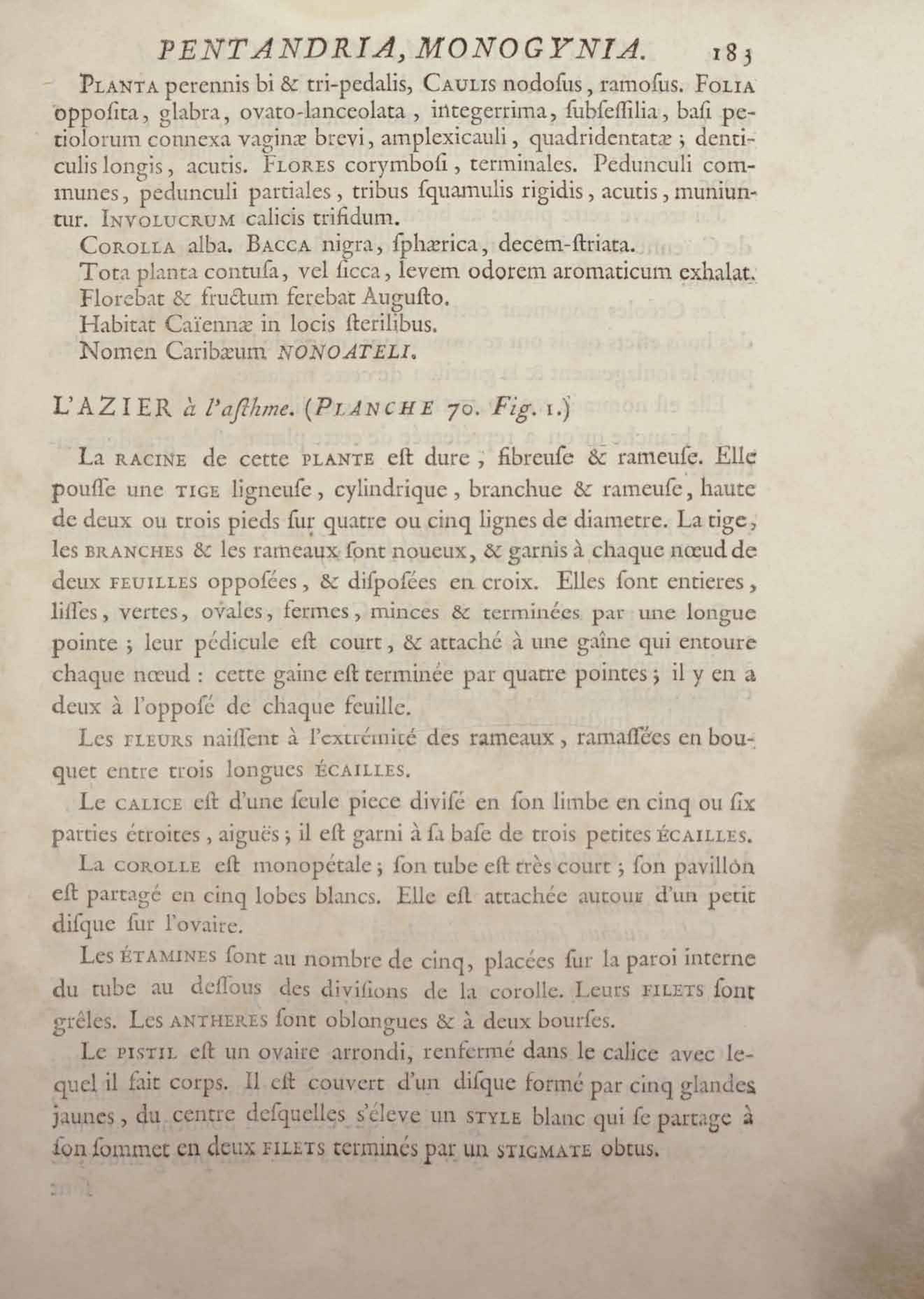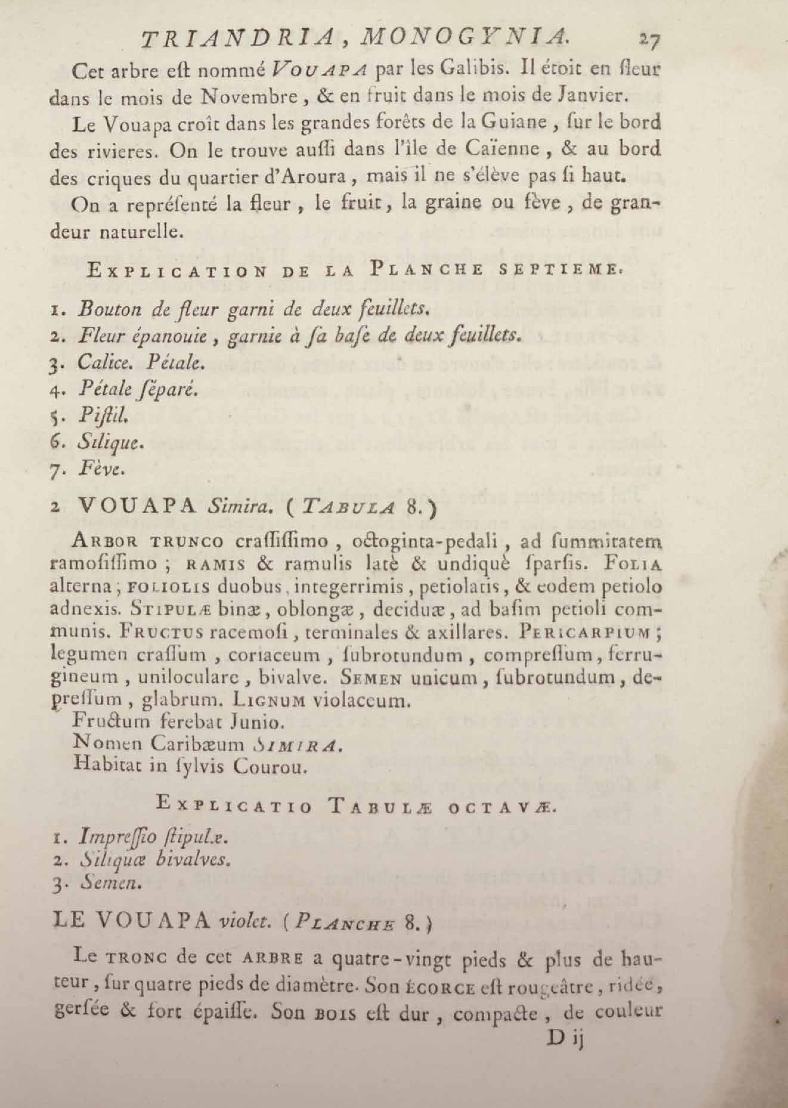 Histoire des plantes de la Guiane françoise, rangées suivant la méthode sexuelle : avec plusieurs mémoires sur différens objets intéressans, relatifs à la culture & au commerce de la Guiane françoise, & une notice des plantes de l'Isle-de-France : ouvrage orné de près de quatre cents planches en taille-douce, où sont représentées des plantes qui n'ont point encore été décrites ni gravées, ou qui ne l'ont été qu'imparfaitement. Tome premier