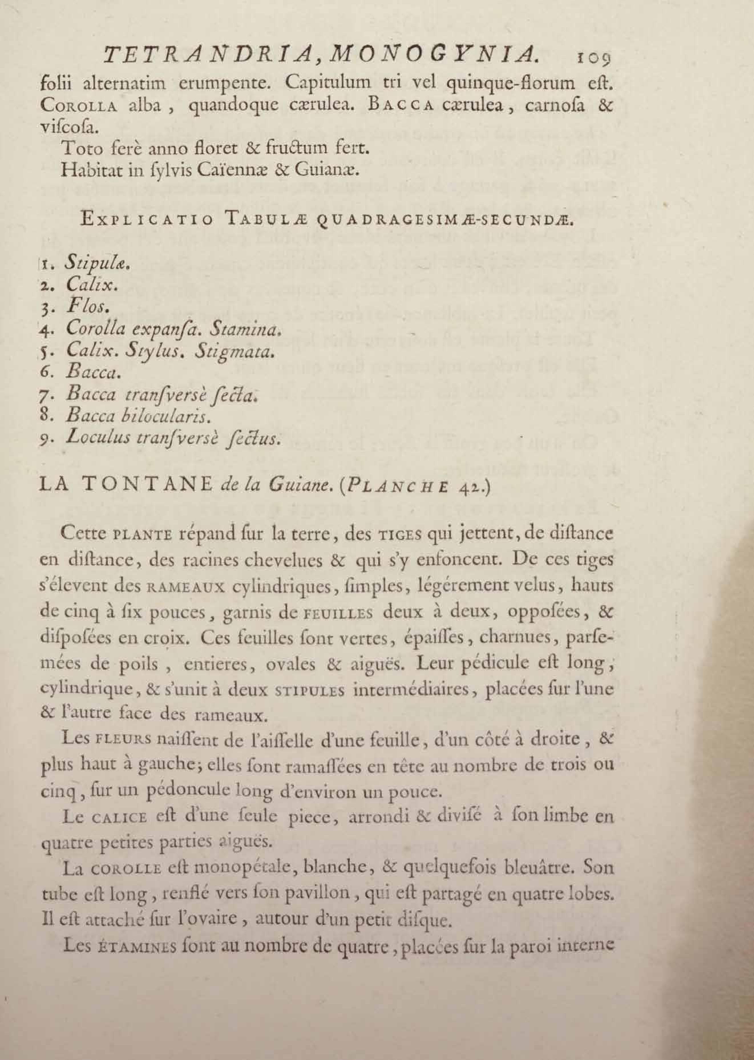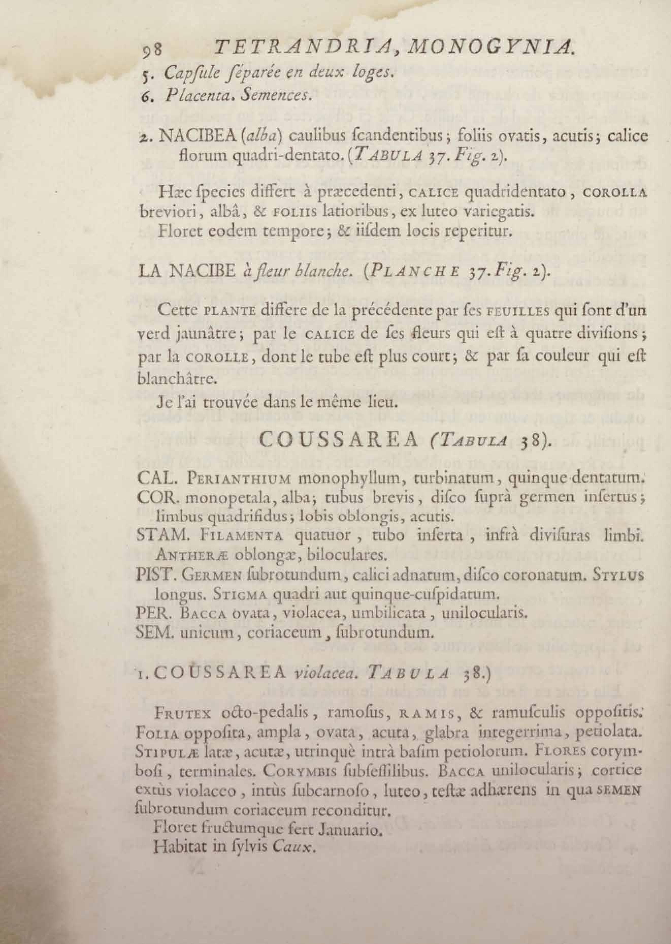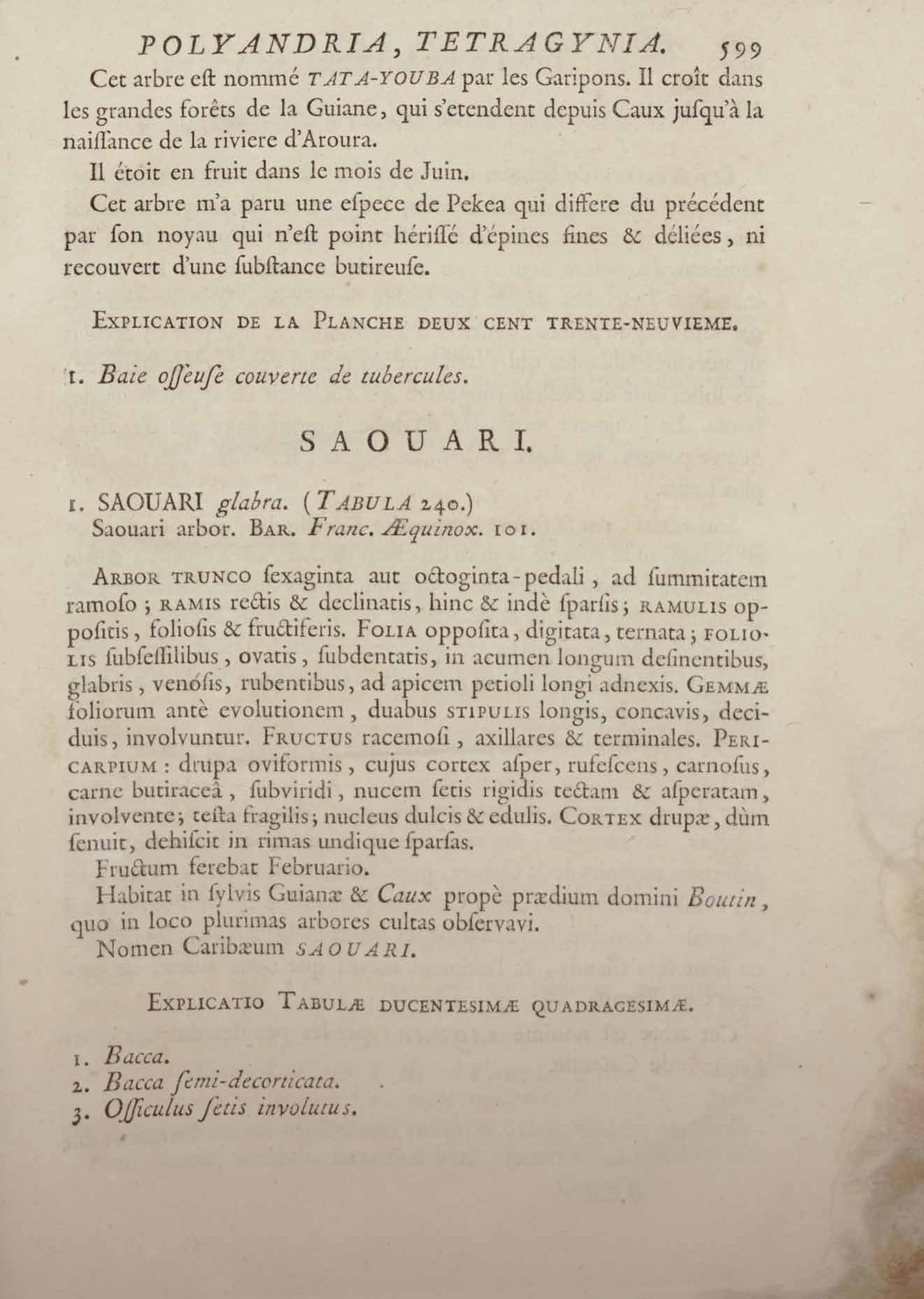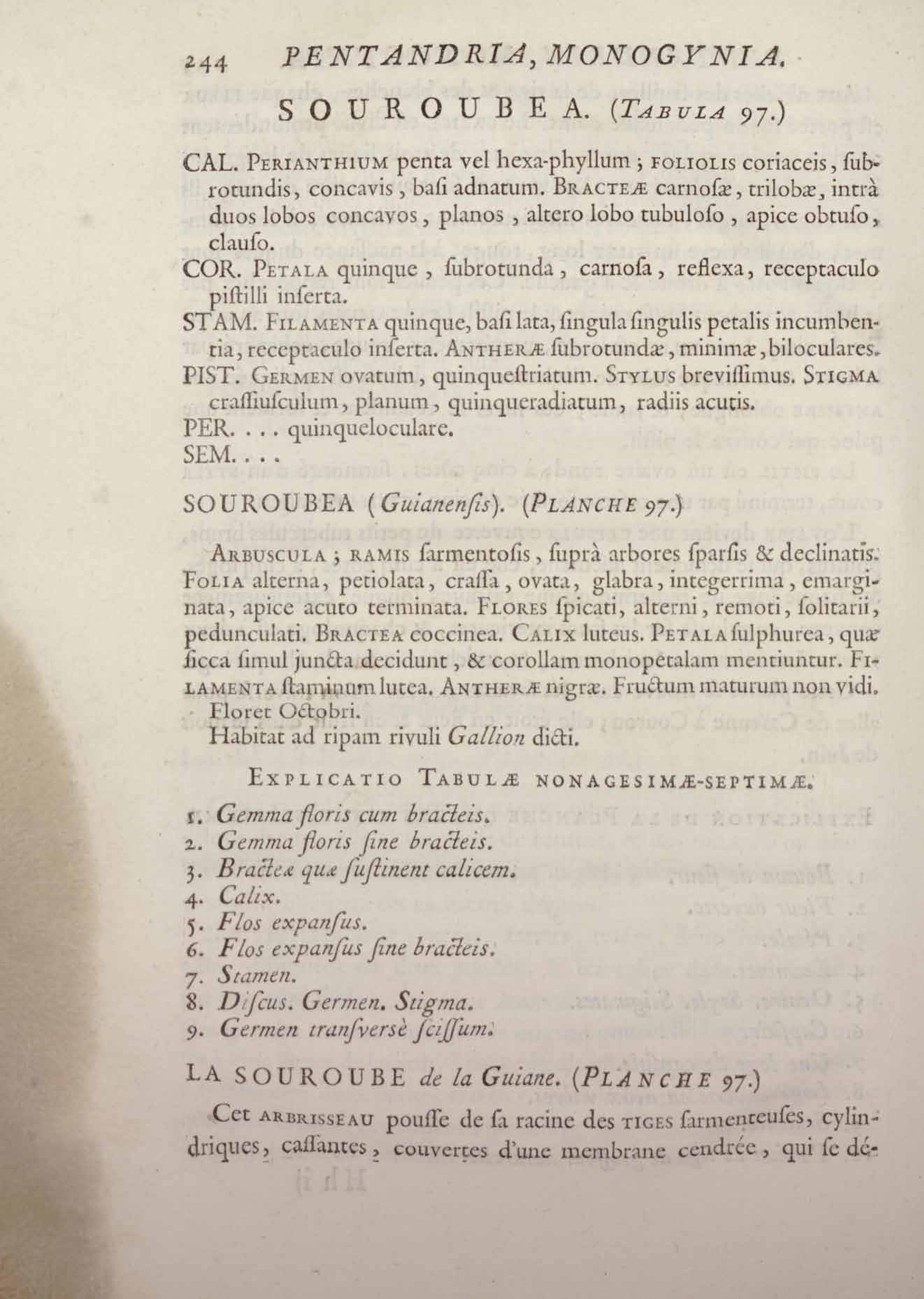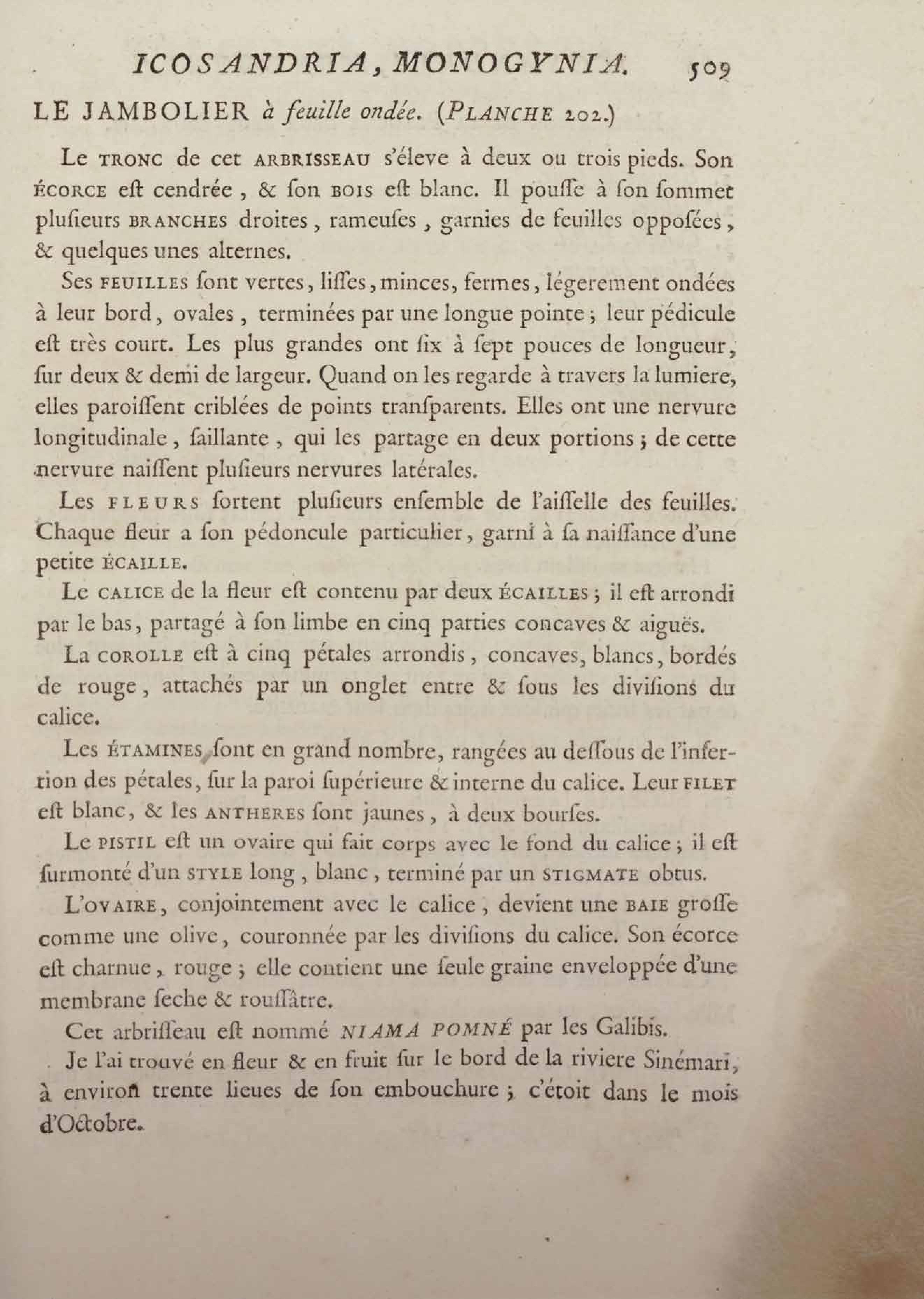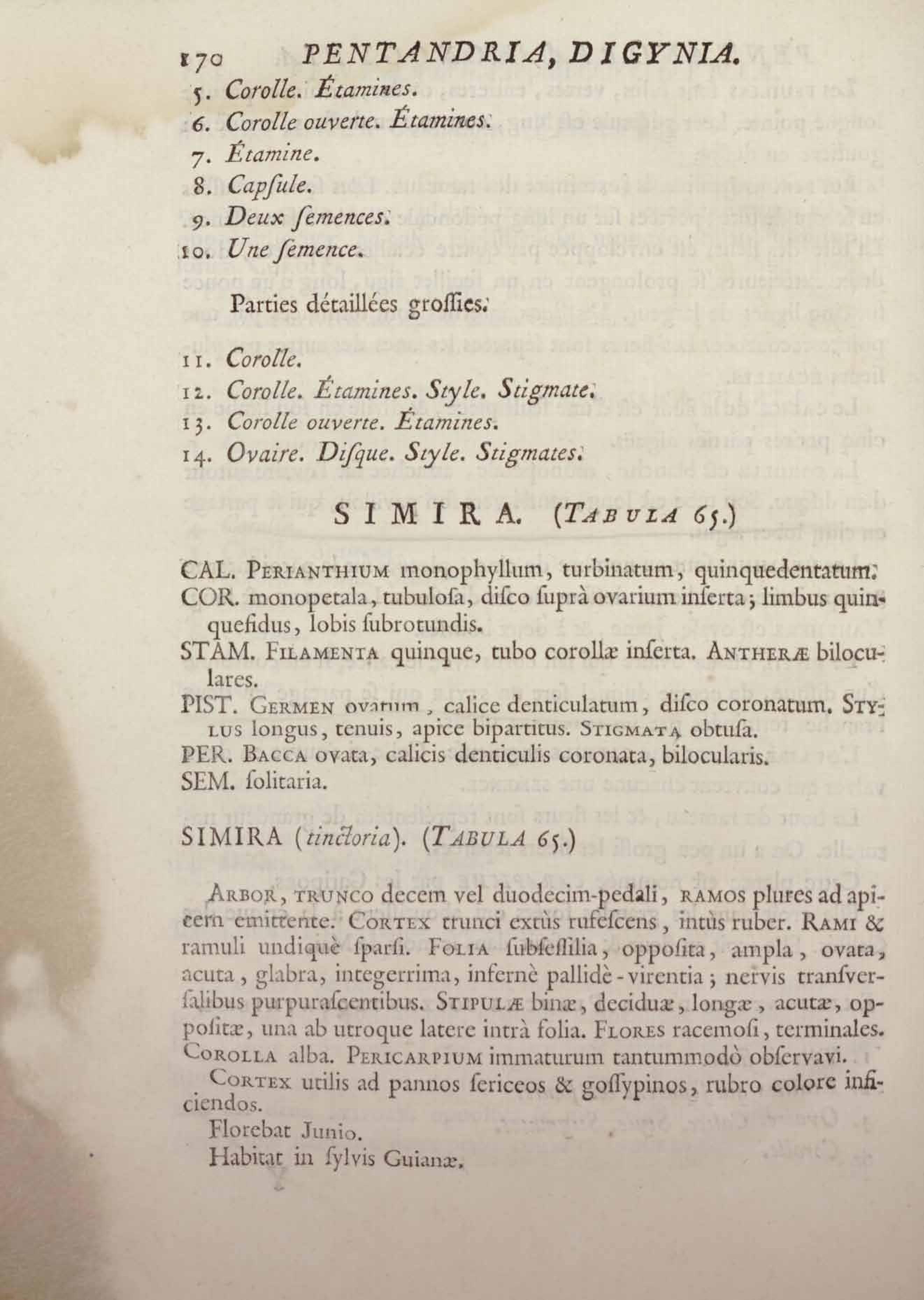 Histoire des plantes de la Guiane françoise, rangées suivant la méthode sexuelle : avec plusieurs mémoires sur différens objets intéressans, relatifs à la culture & au commerce de la Guiane françoise, & une notice des plantes de l'Isle-de-France : ouvrage orné de près de quatre cents planches en taille-douce, où sont représentées des plantes qui n'ont point encore été décrites ni gravées, ou qui ne l'ont été qu'imparfaitement. Tome premier