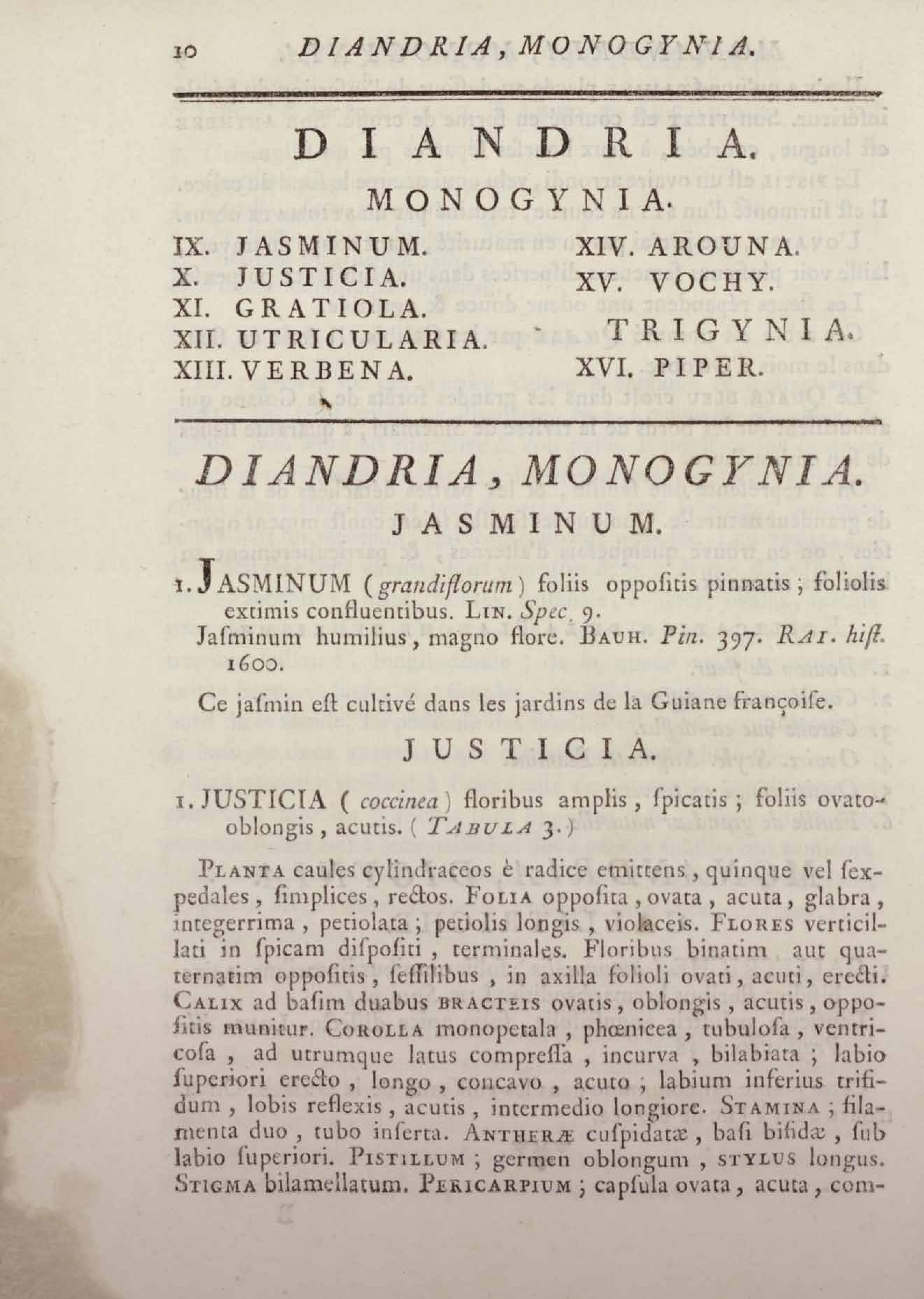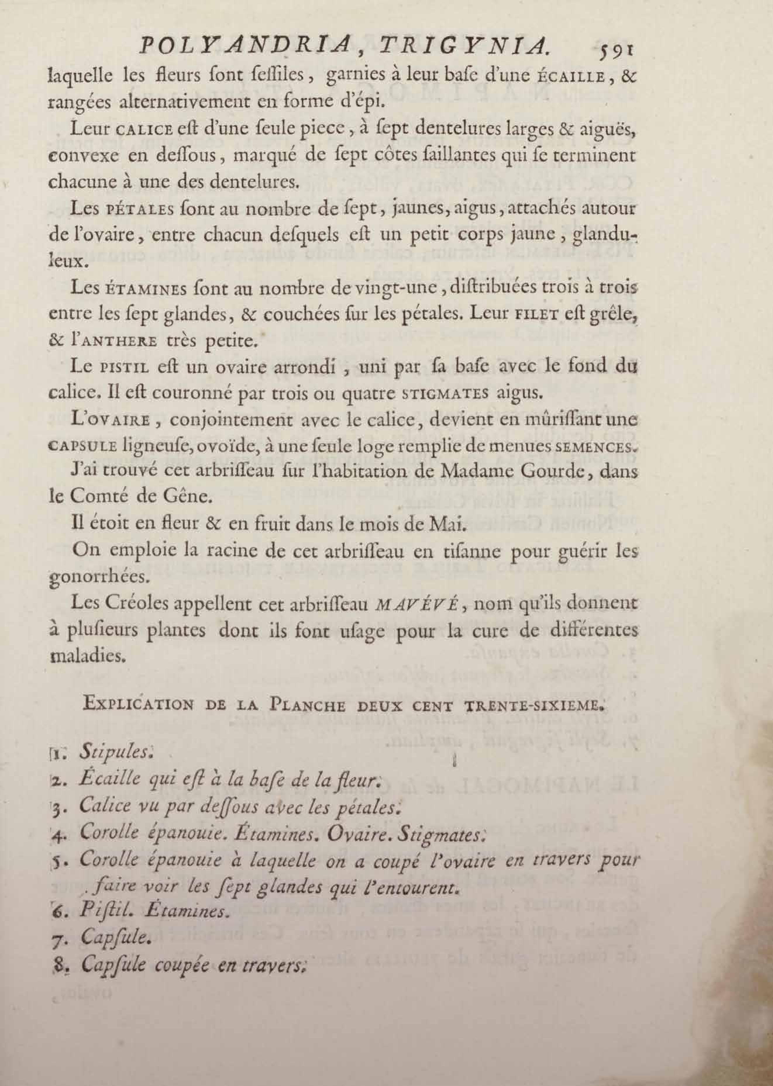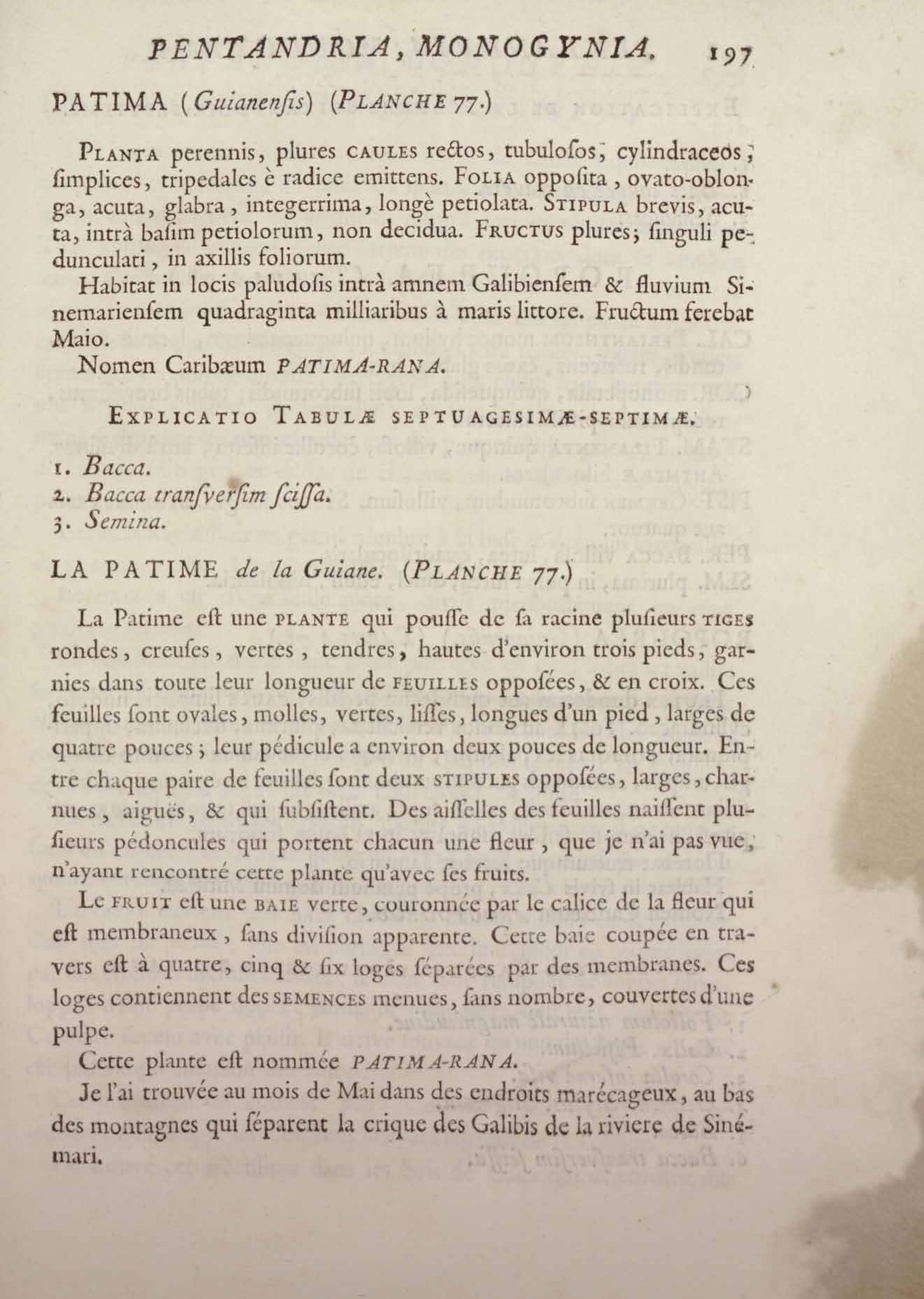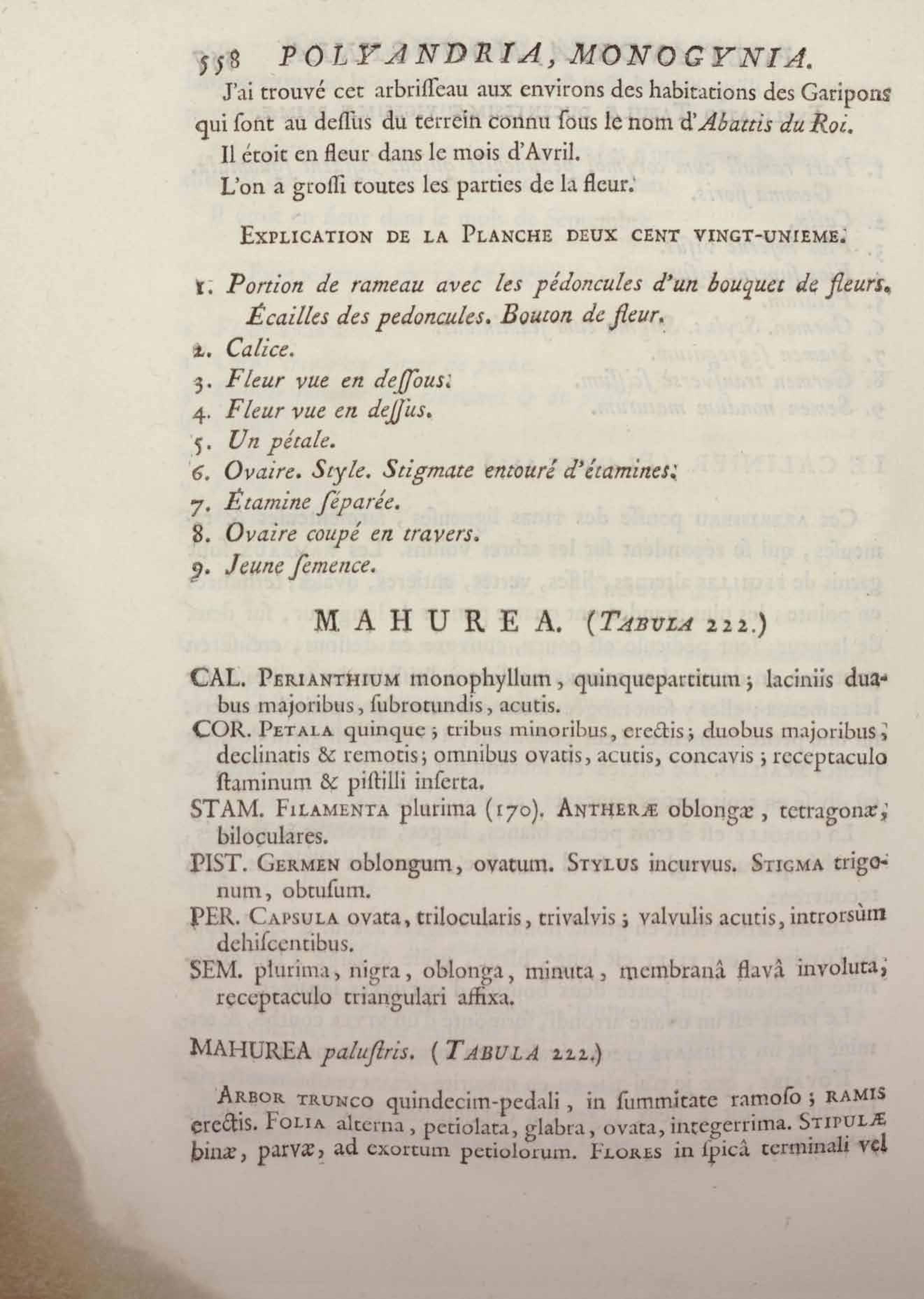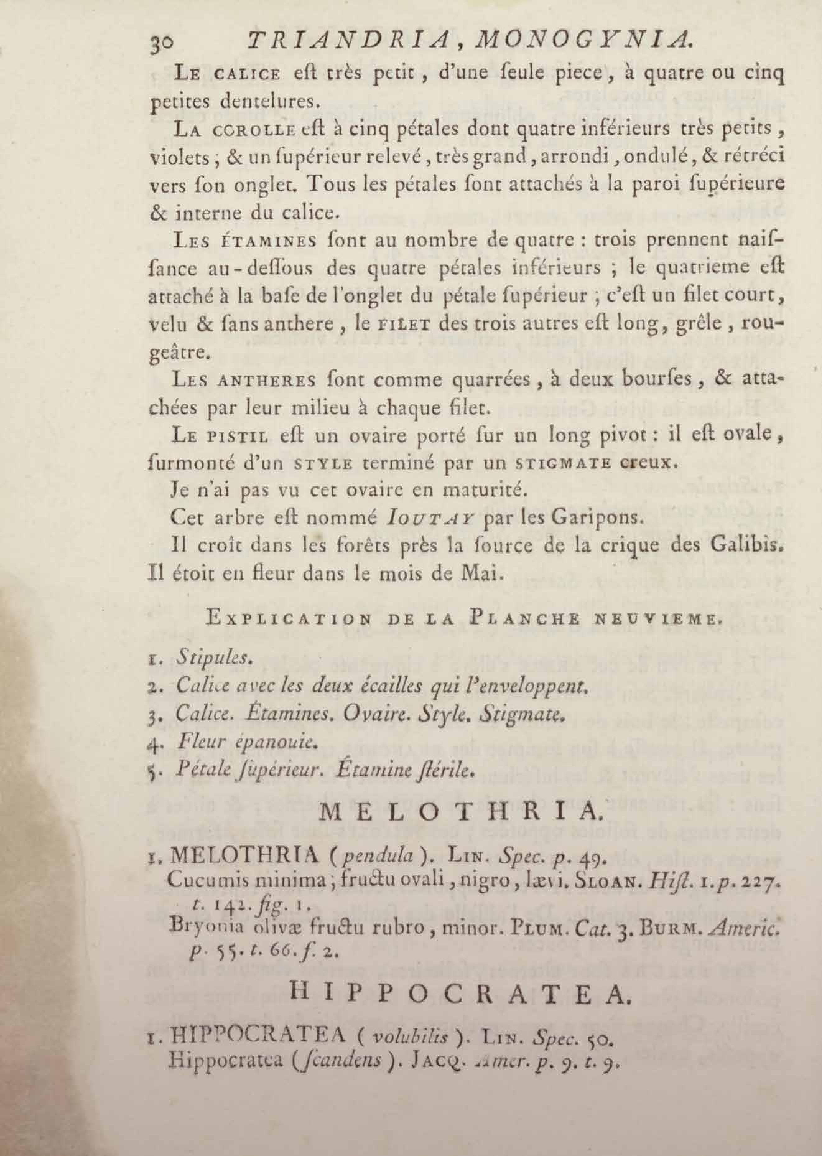 Histoire des plantes de la Guiane françoise, rangées suivant la méthode sexuelle : avec plusieurs mémoires sur différens objets intéressans, relatifs à la culture & au commerce de la Guiane françoise, & une notice des plantes de l'Isle-de-France : ouvrage orné de près de quatre cents planches en taille-douce, où sont représentées des plantes qui n'ont point encore été décrites ni gravées, ou qui ne l'ont été qu'imparfaitement. Tome premier