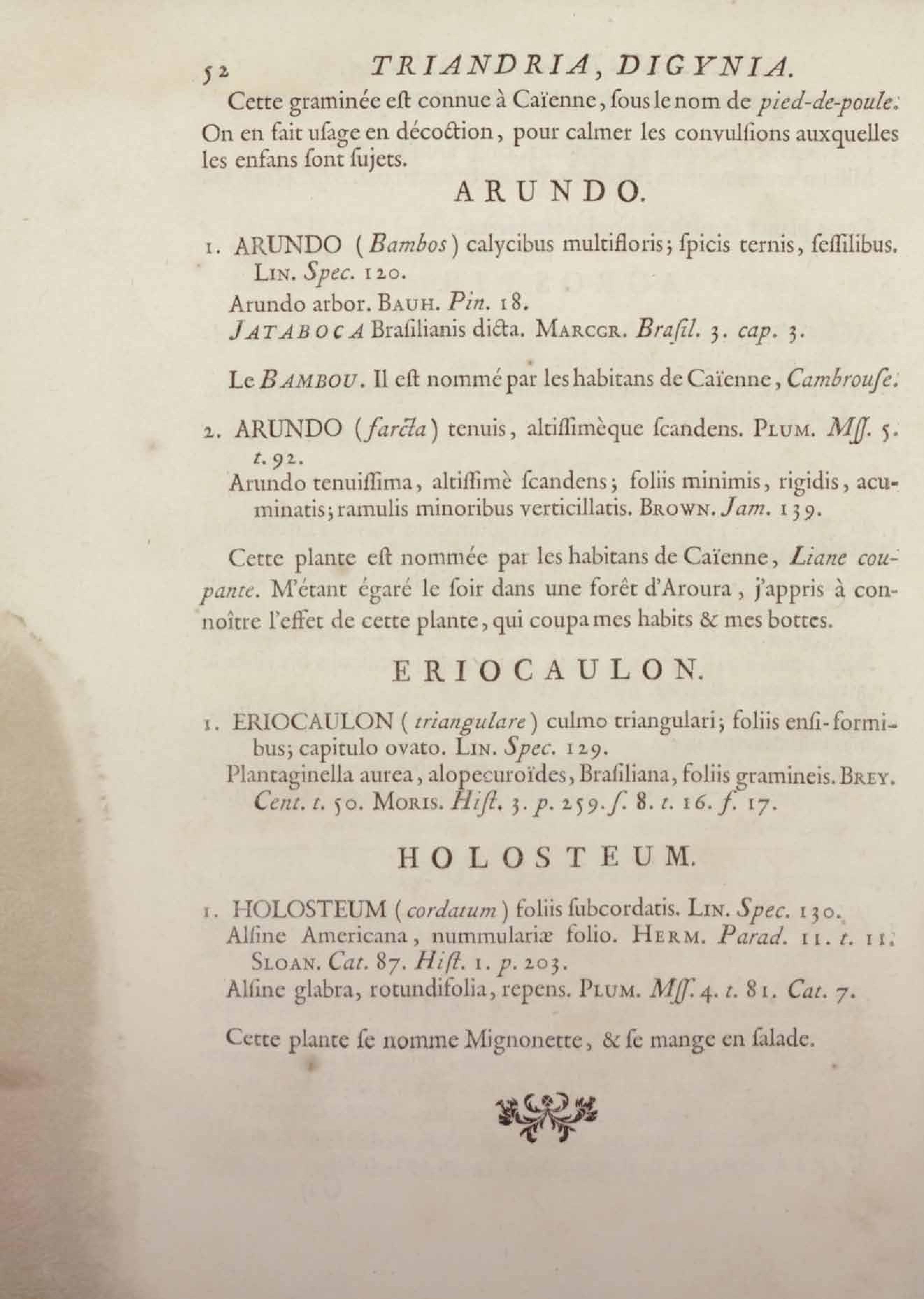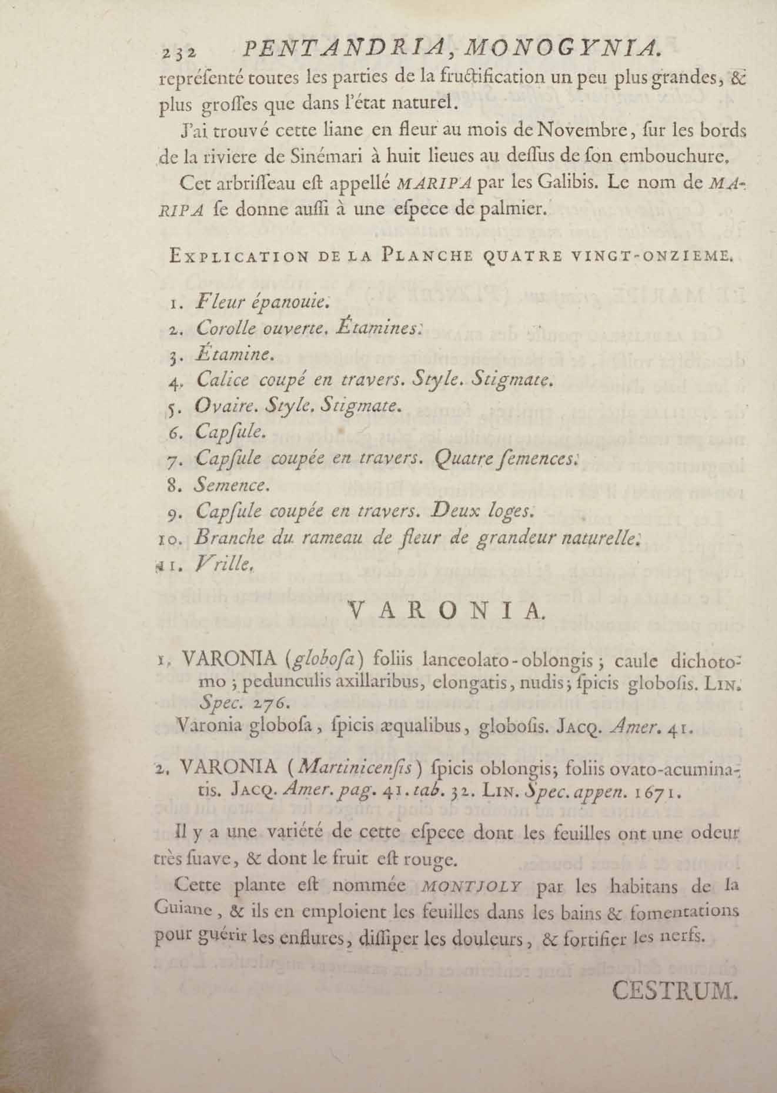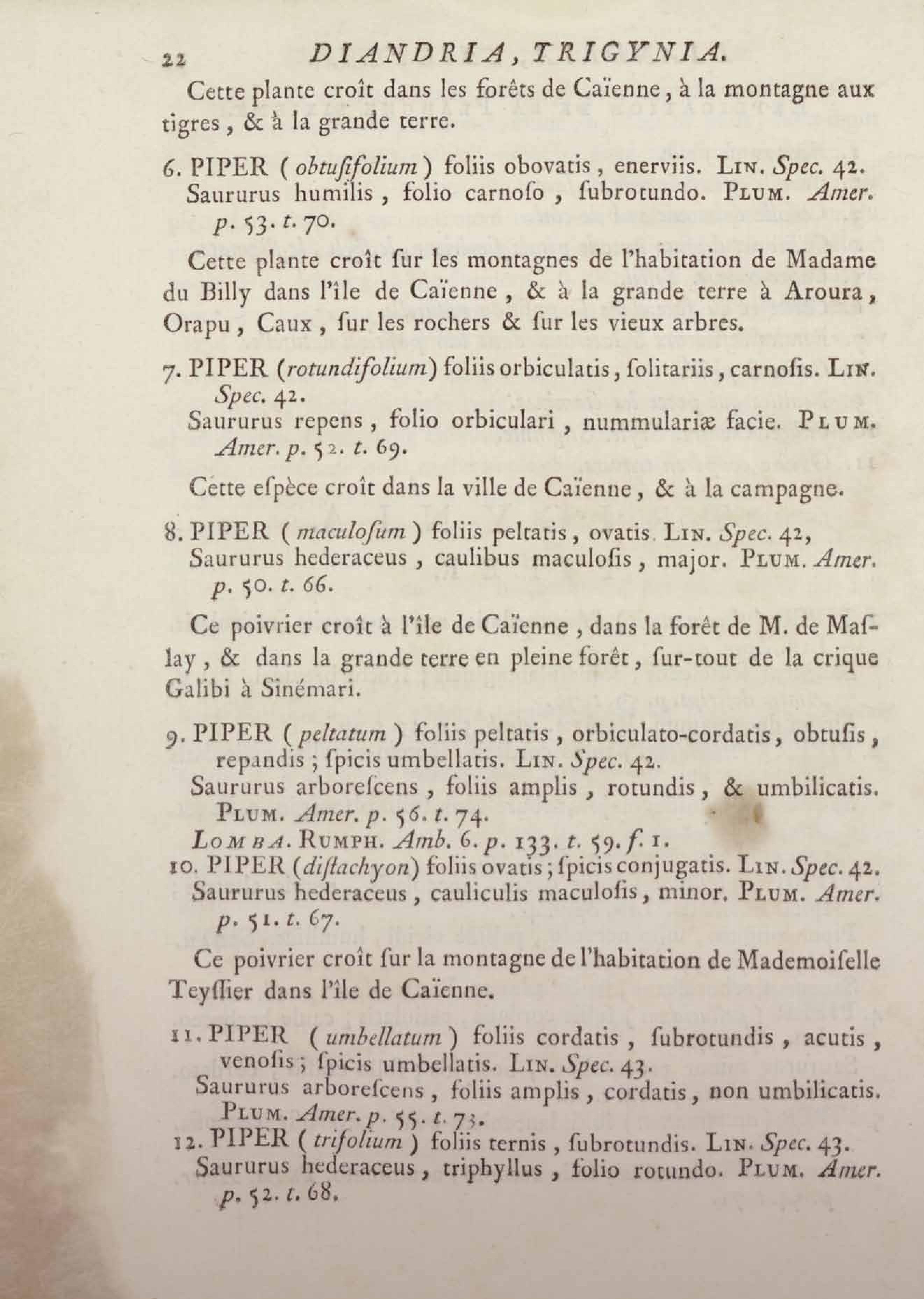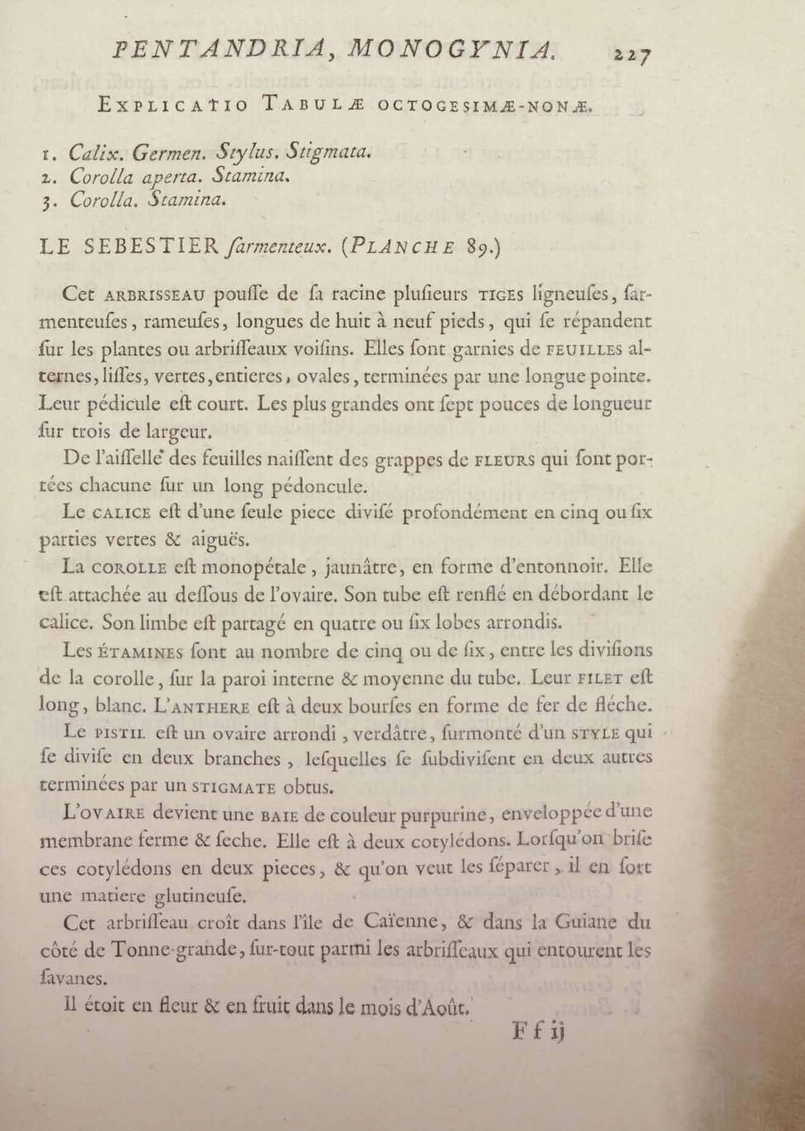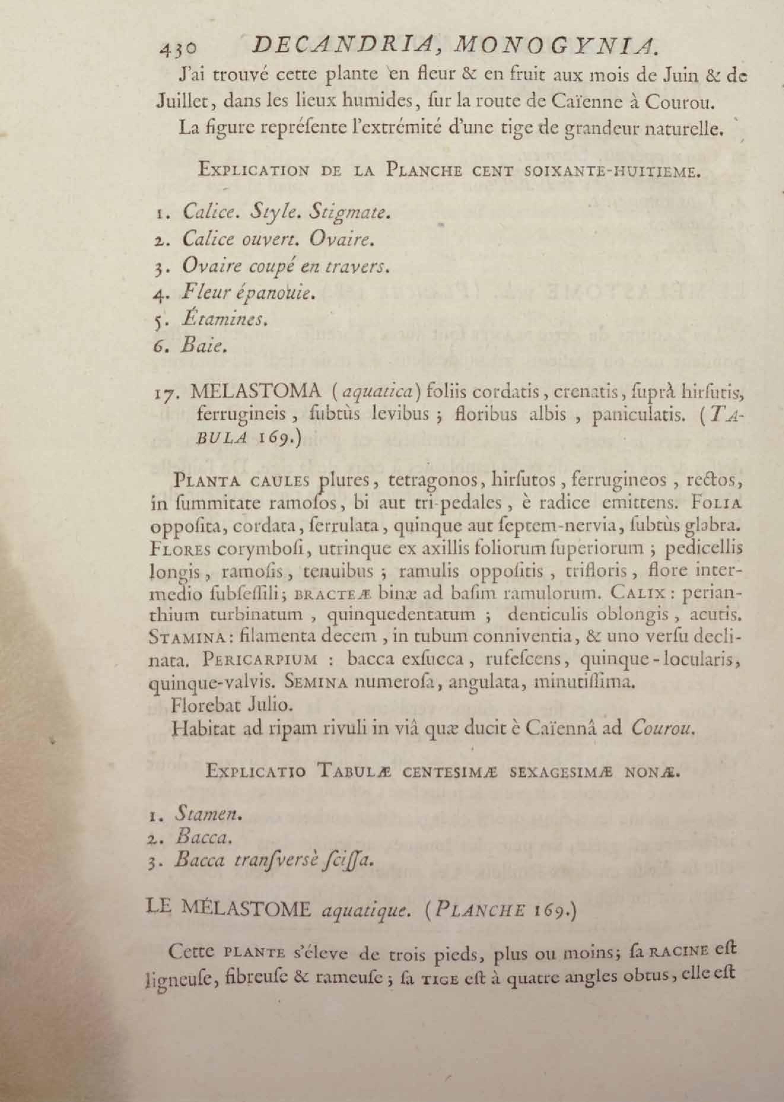 Histoire des plantes de la Guiane françoise, rangées suivant la méthode sexuelle : avec plusieurs mémoires sur différens objets intéressans, relatifs à la culture & au commerce de la Guiane françoise, & une notice des plantes de l'Isle-de-France : ouvrage orné de près de quatre cents planches en taille-douce, où sont représentées des plantes qui n'ont point encore été décrites ni gravées, ou qui ne l'ont été qu'imparfaitement. Tome premier