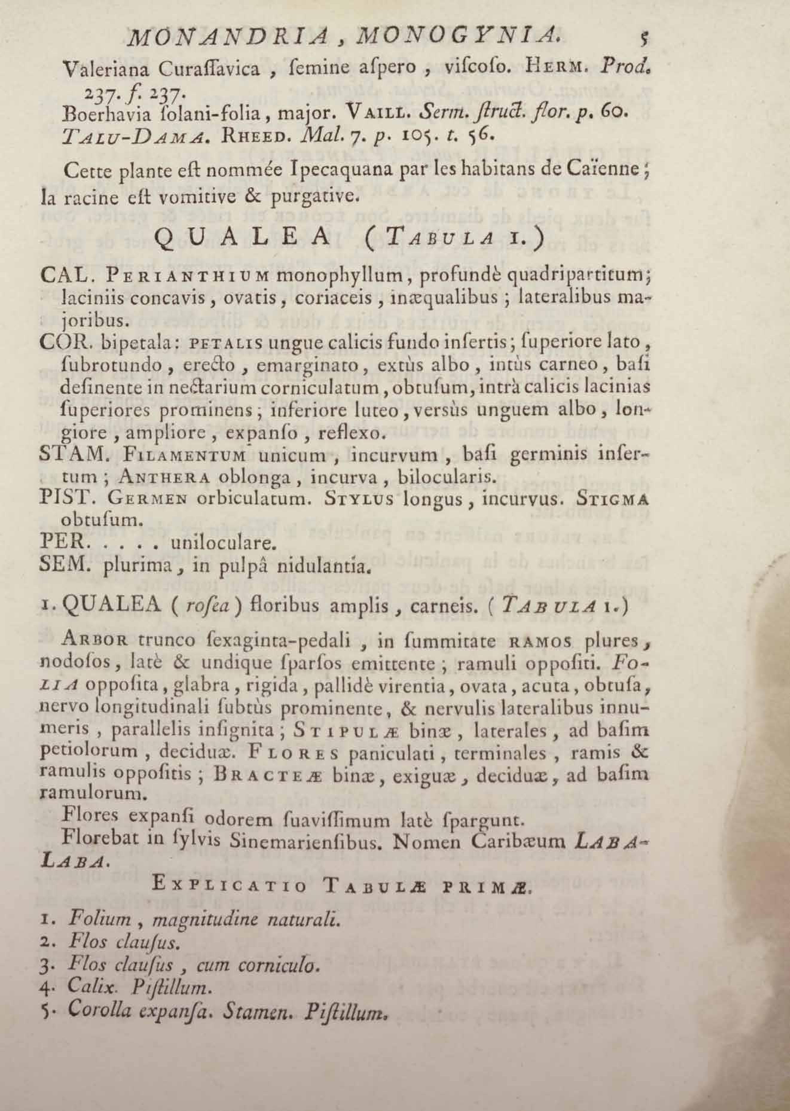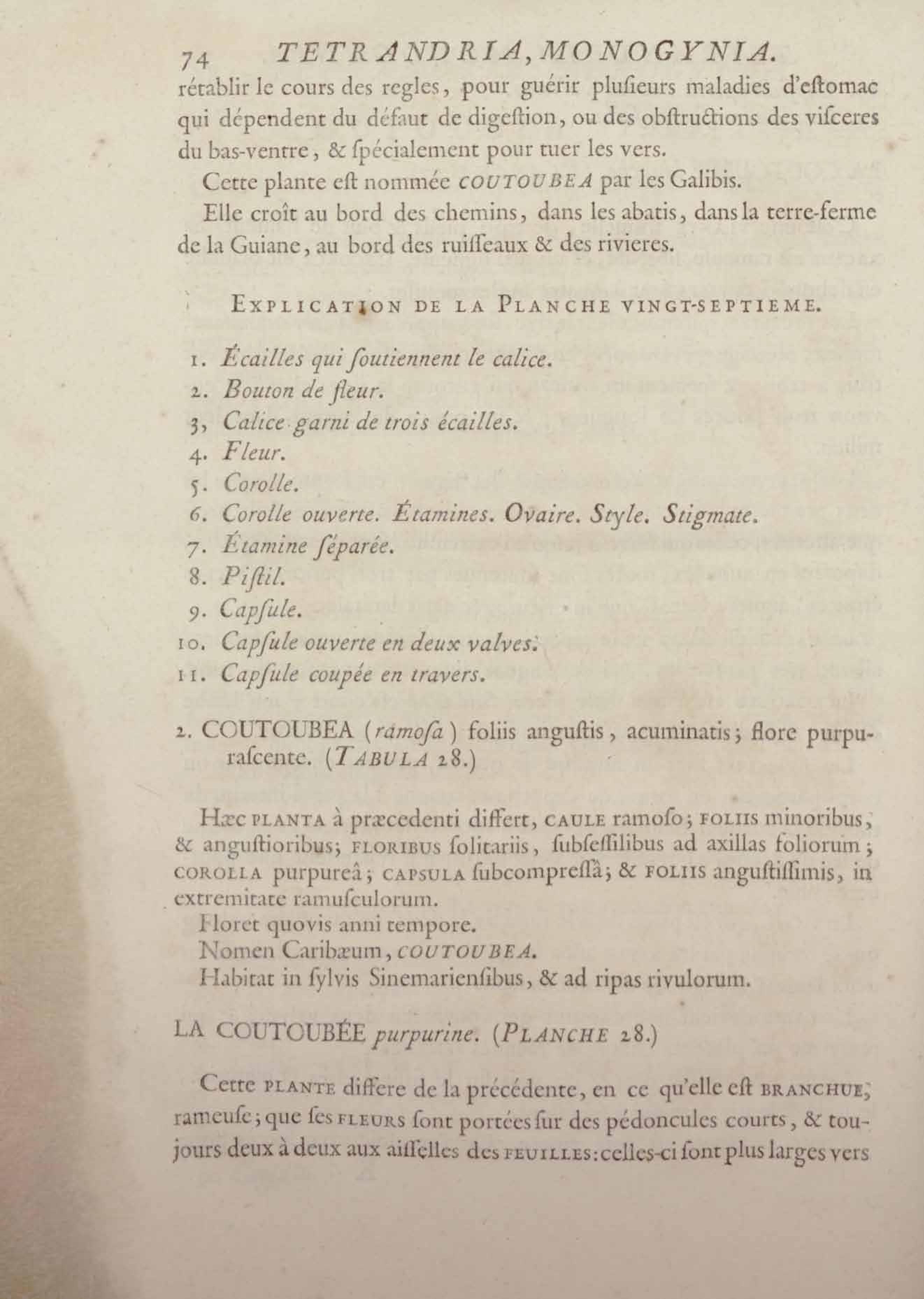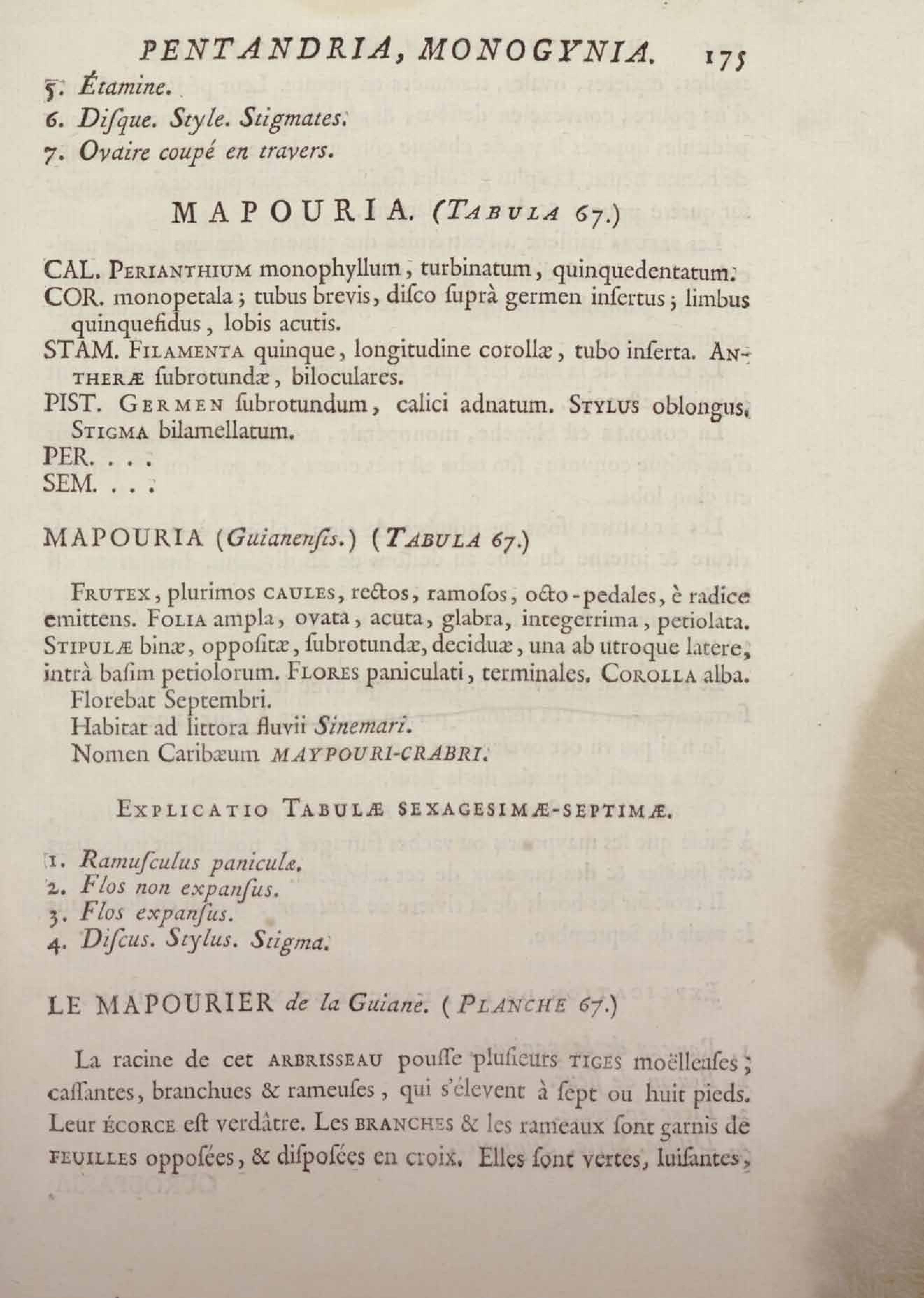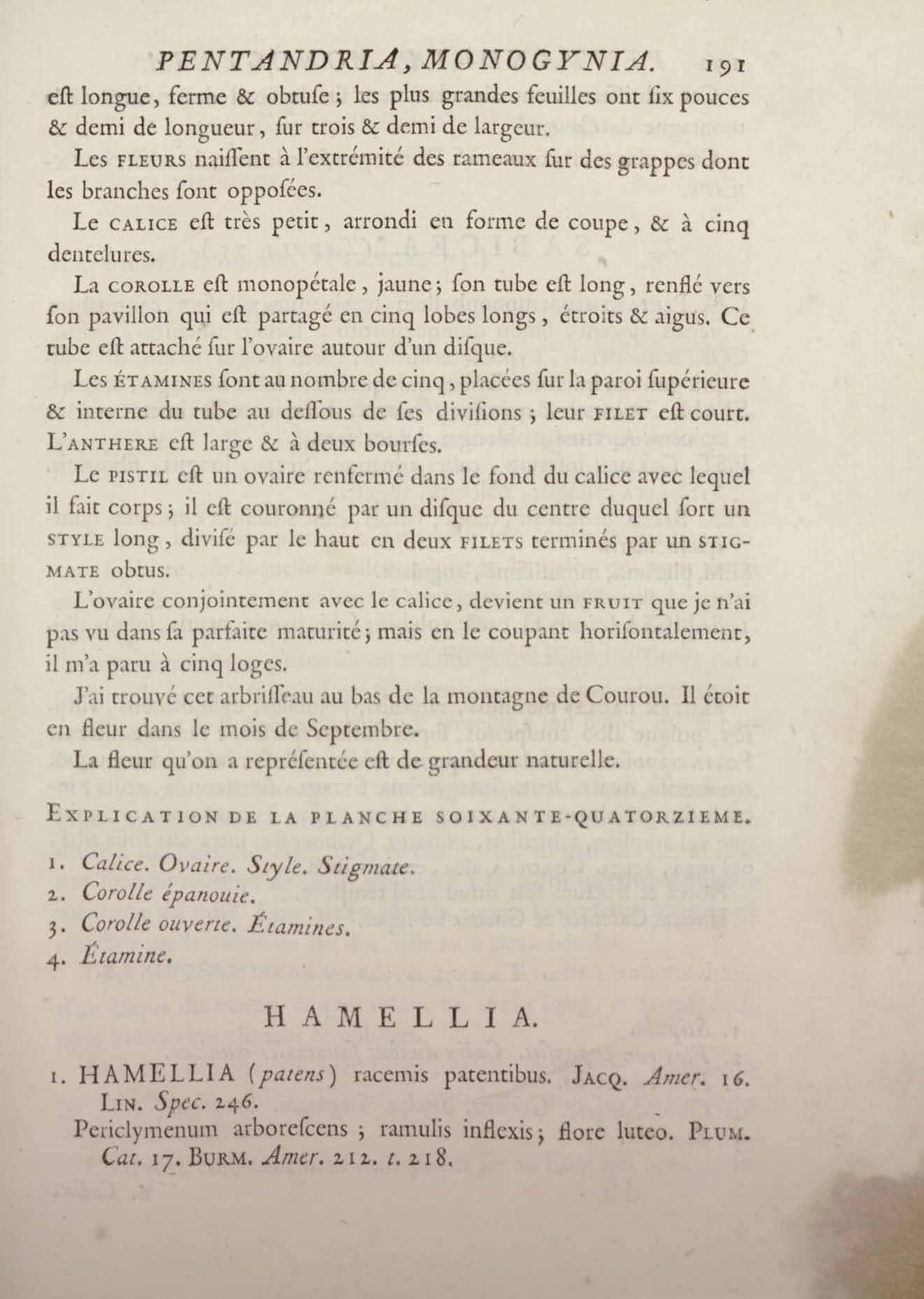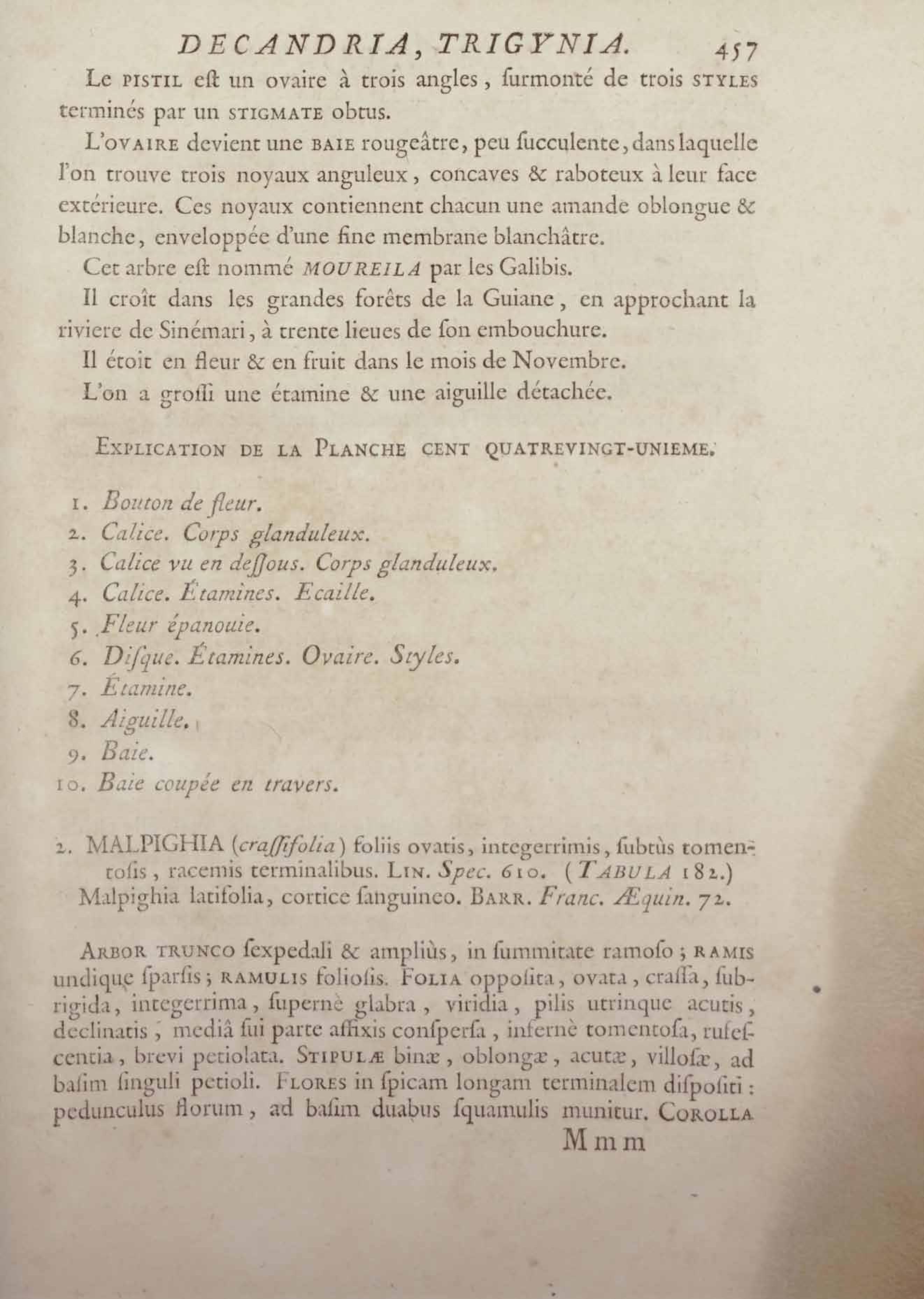Histoire des plantes de la Guiane françoise, rangées suivant la méthode sexuelle : avec plusieurs mémoires sur différens objets intéressans, relatifs à la culture & au commerce de la Guiane françoise, & une notice des plantes de l'Isle-de-France : ouvrage orné de près de quatre cents planches en taille-douce, où sont représentées des plantes qui n'ont point encore été décrites ni gravées, ou qui ne l'ont été qu'imparfaitement. Tome premier