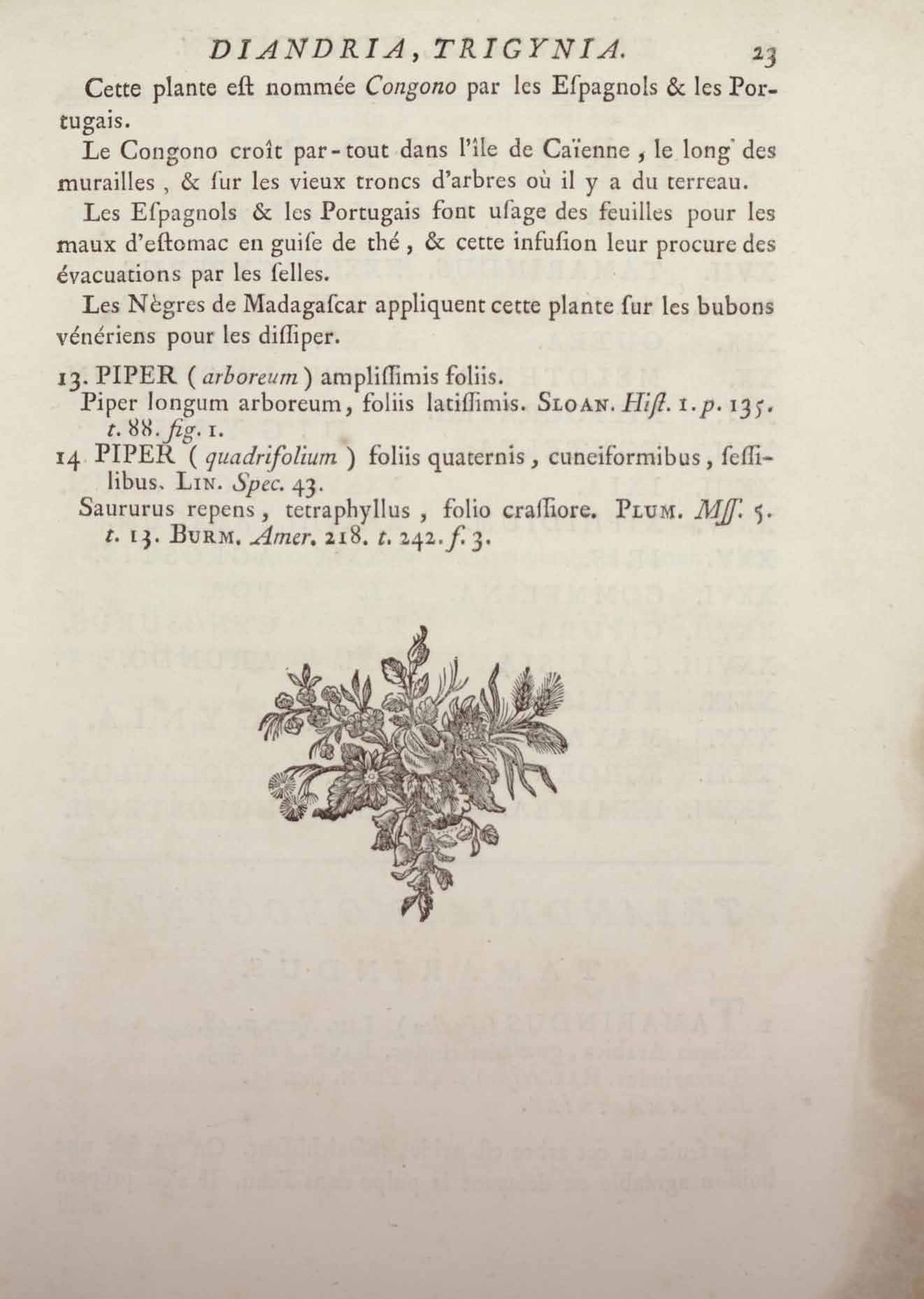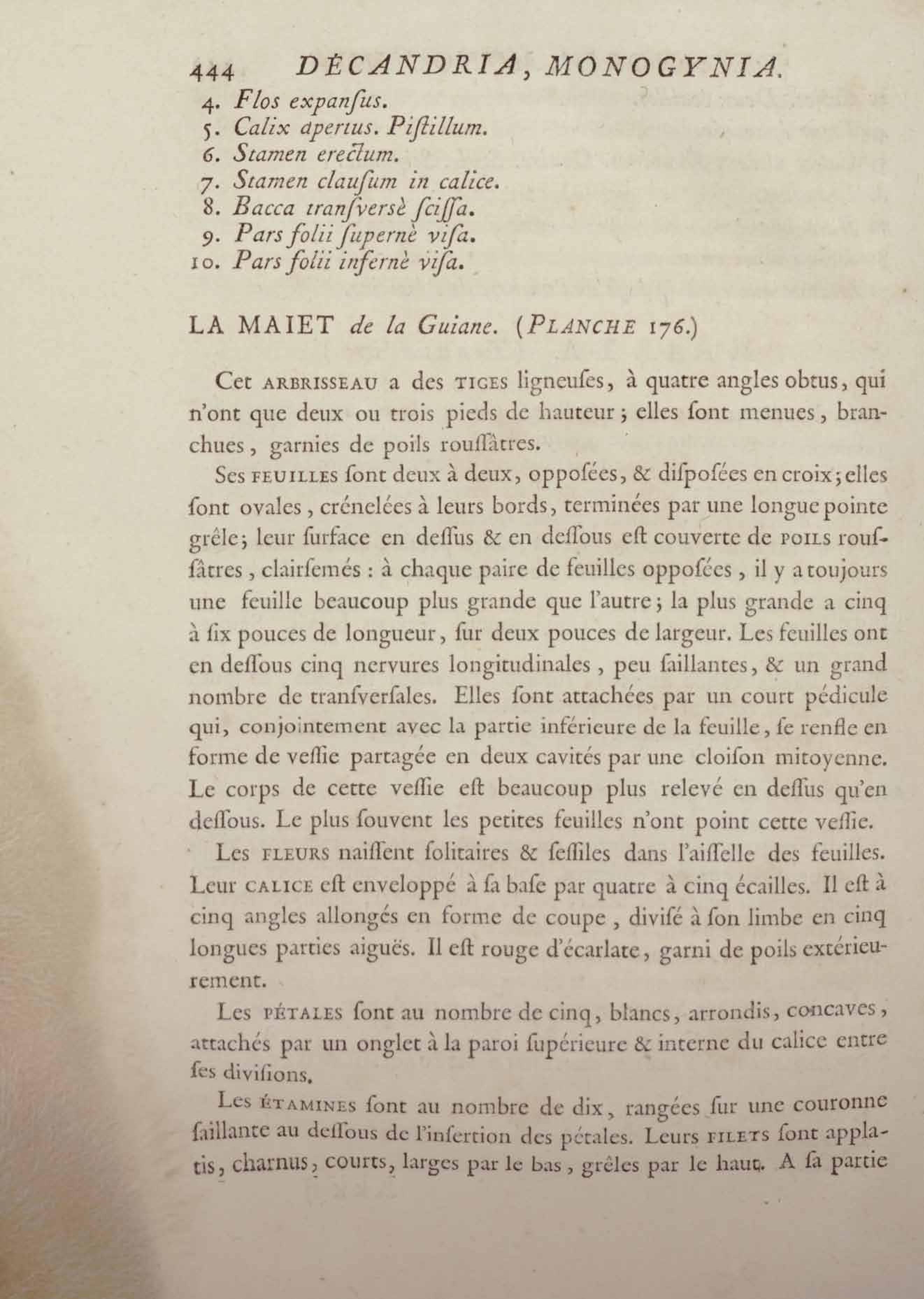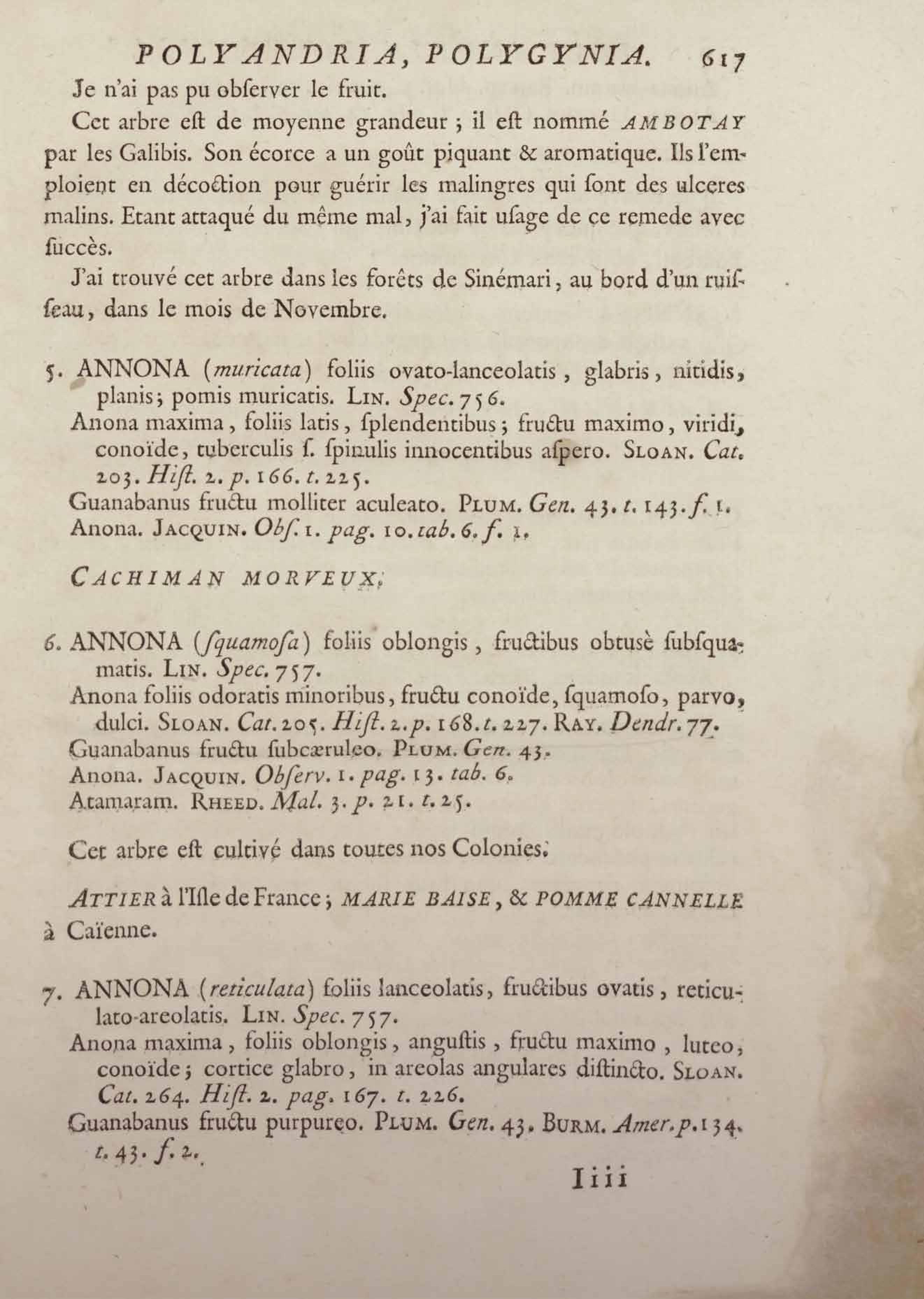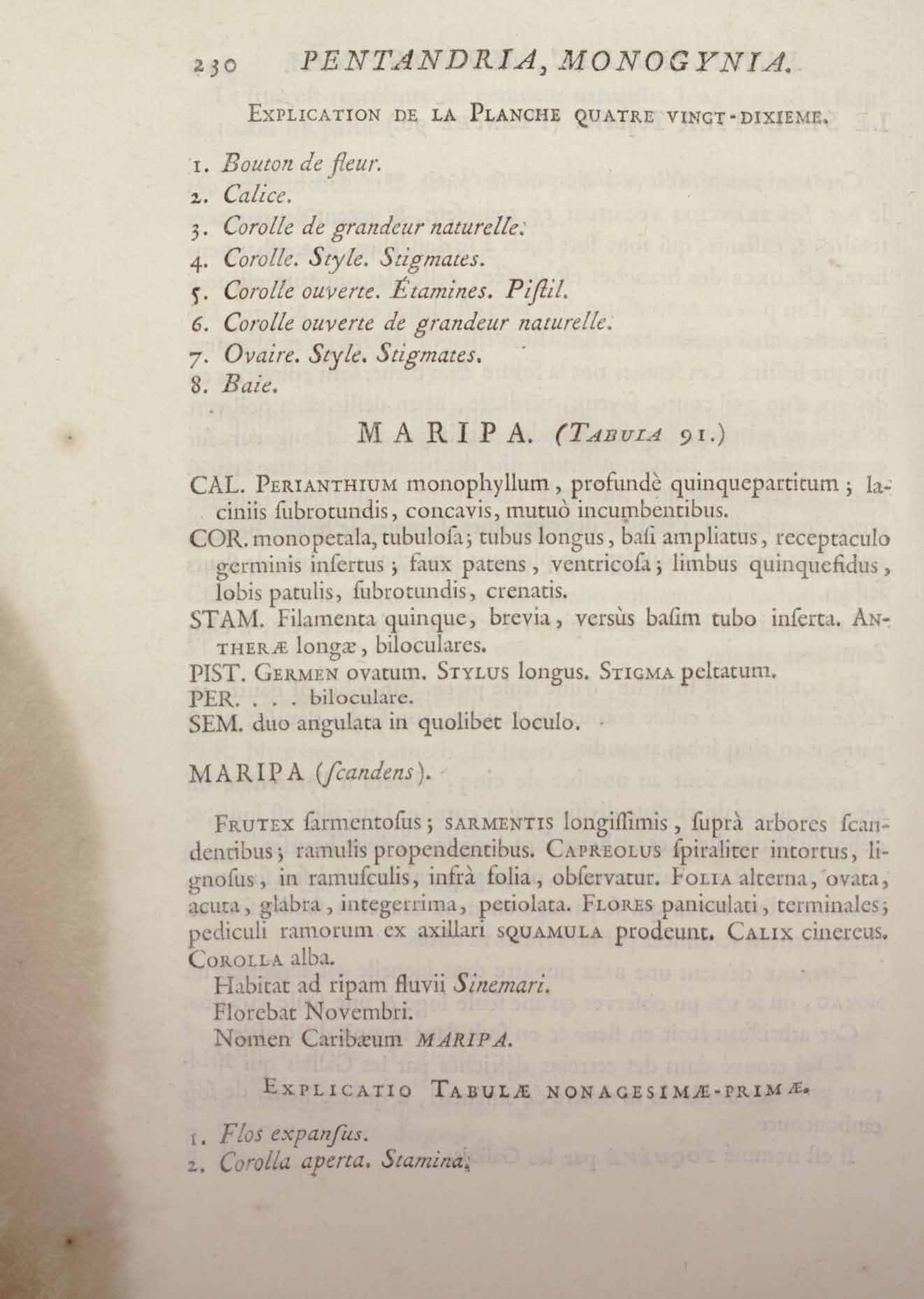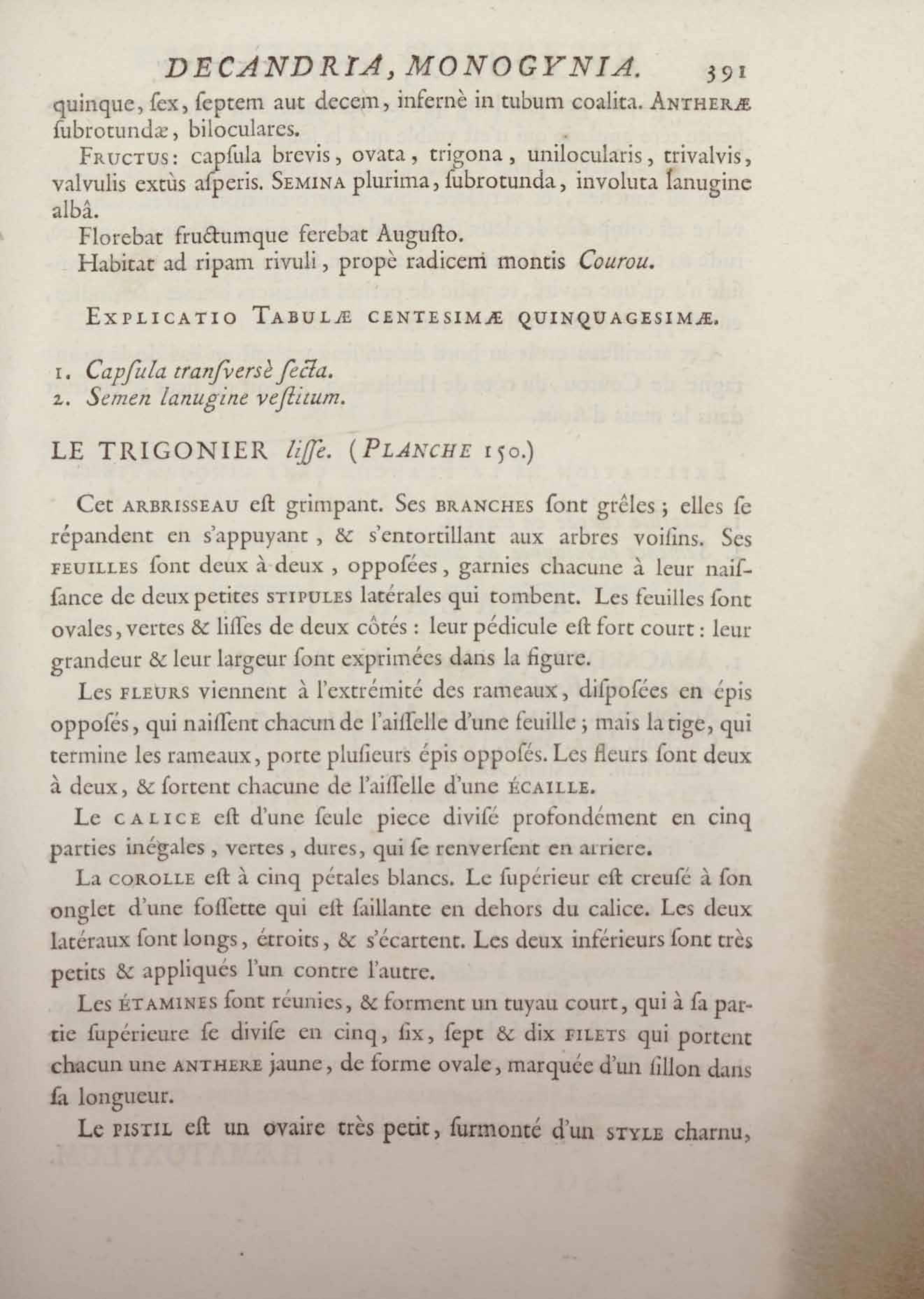 Histoire des plantes de la Guiane françoise, rangées suivant la méthode sexuelle : avec plusieurs mémoires sur différens objets intéressans, relatifs à la culture & au commerce de la Guiane françoise, & une notice des plantes de l'Isle-de-France : ouvrage orné de près de quatre cents planches en taille-douce, où sont représentées des plantes qui n'ont point encore été décrites ni gravées, ou qui ne l'ont été qu'imparfaitement. Tome premier