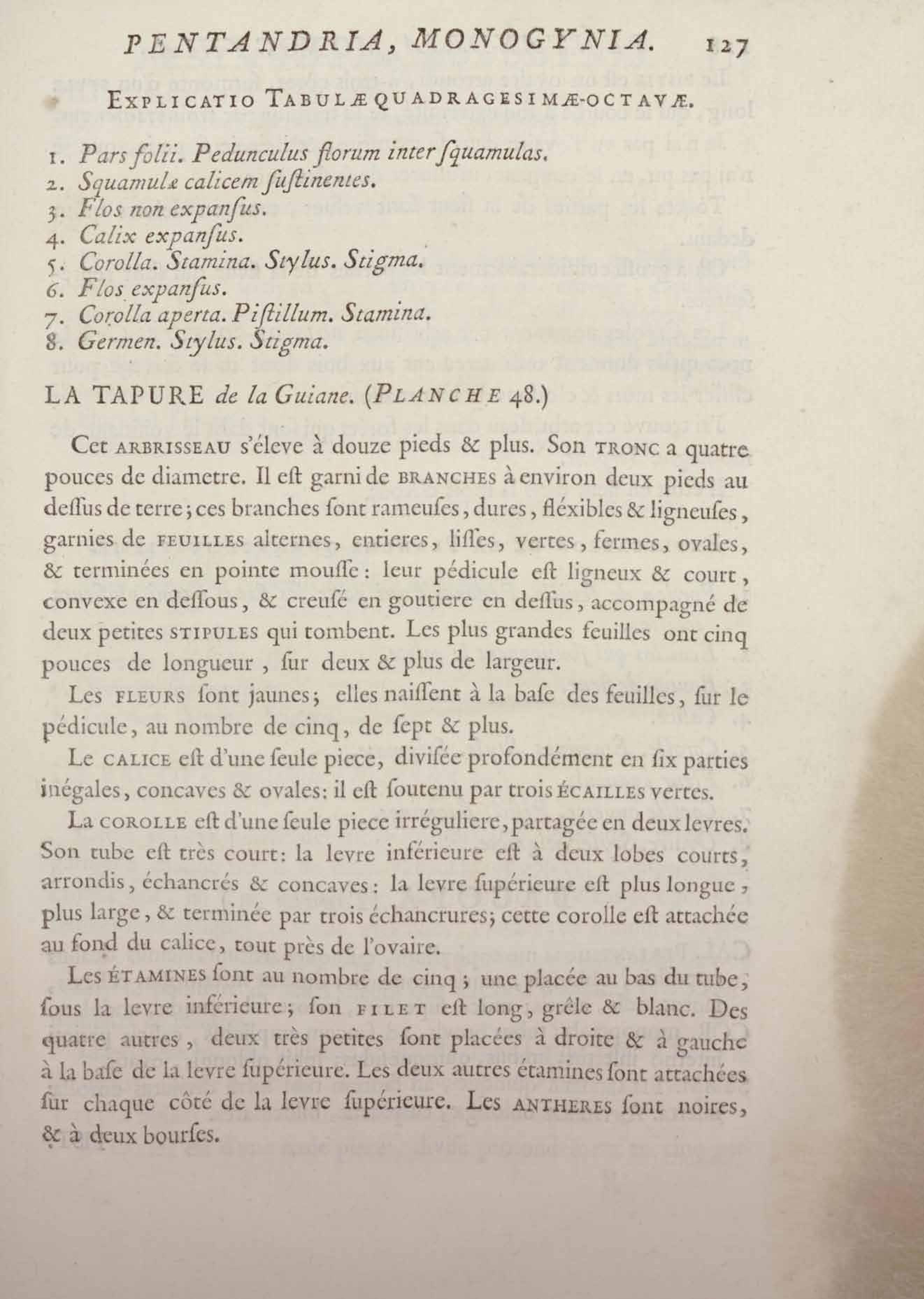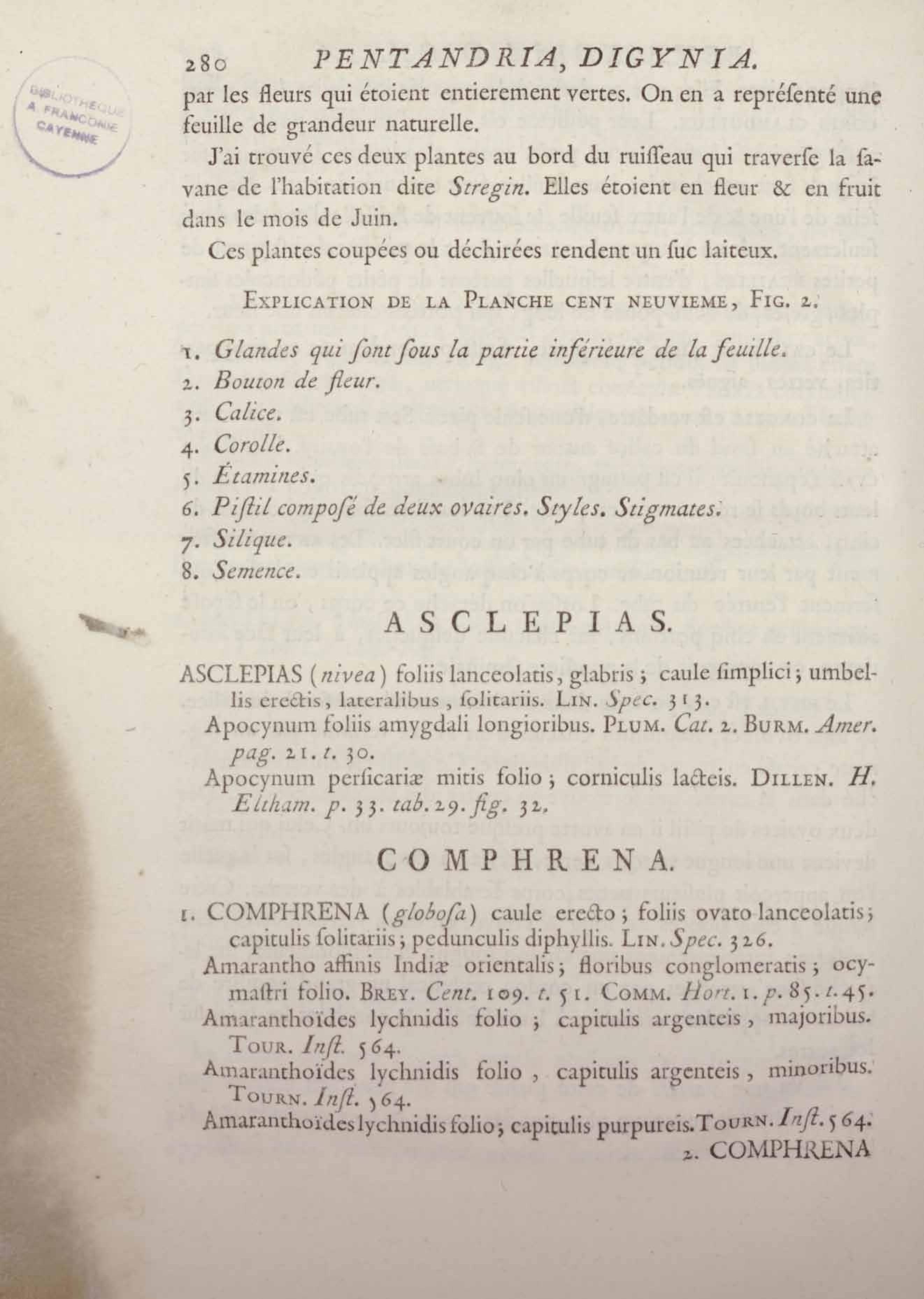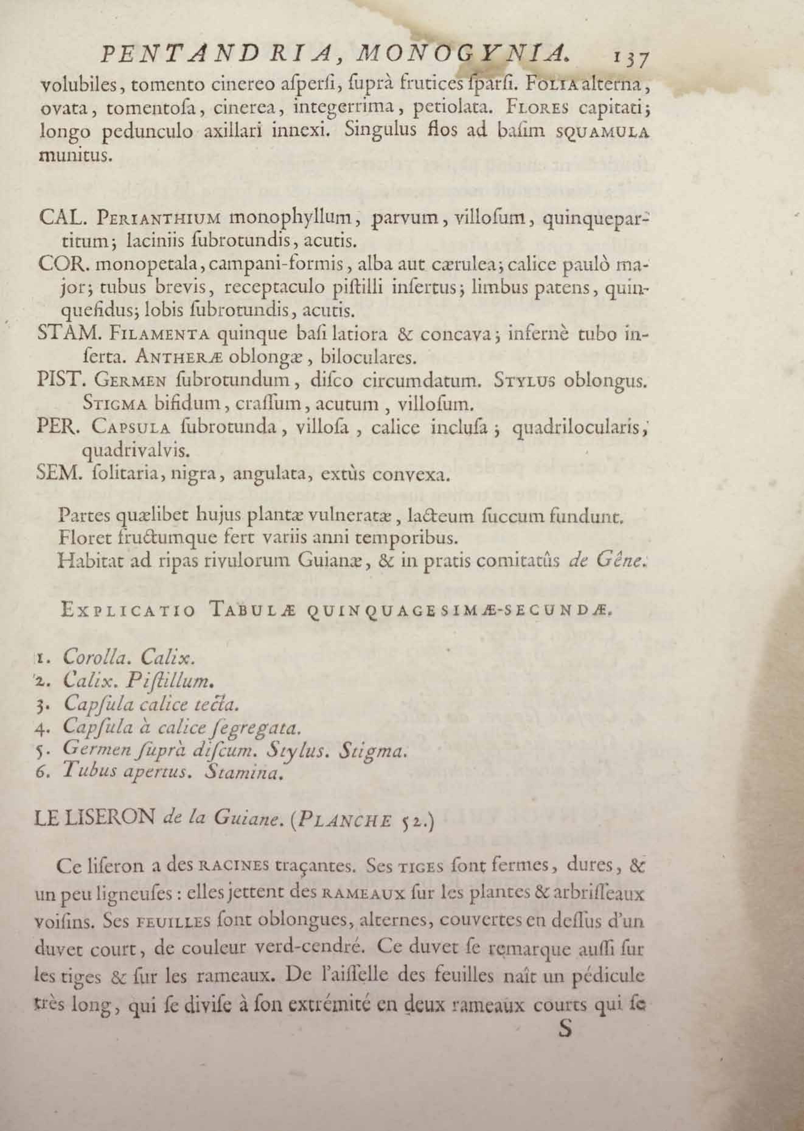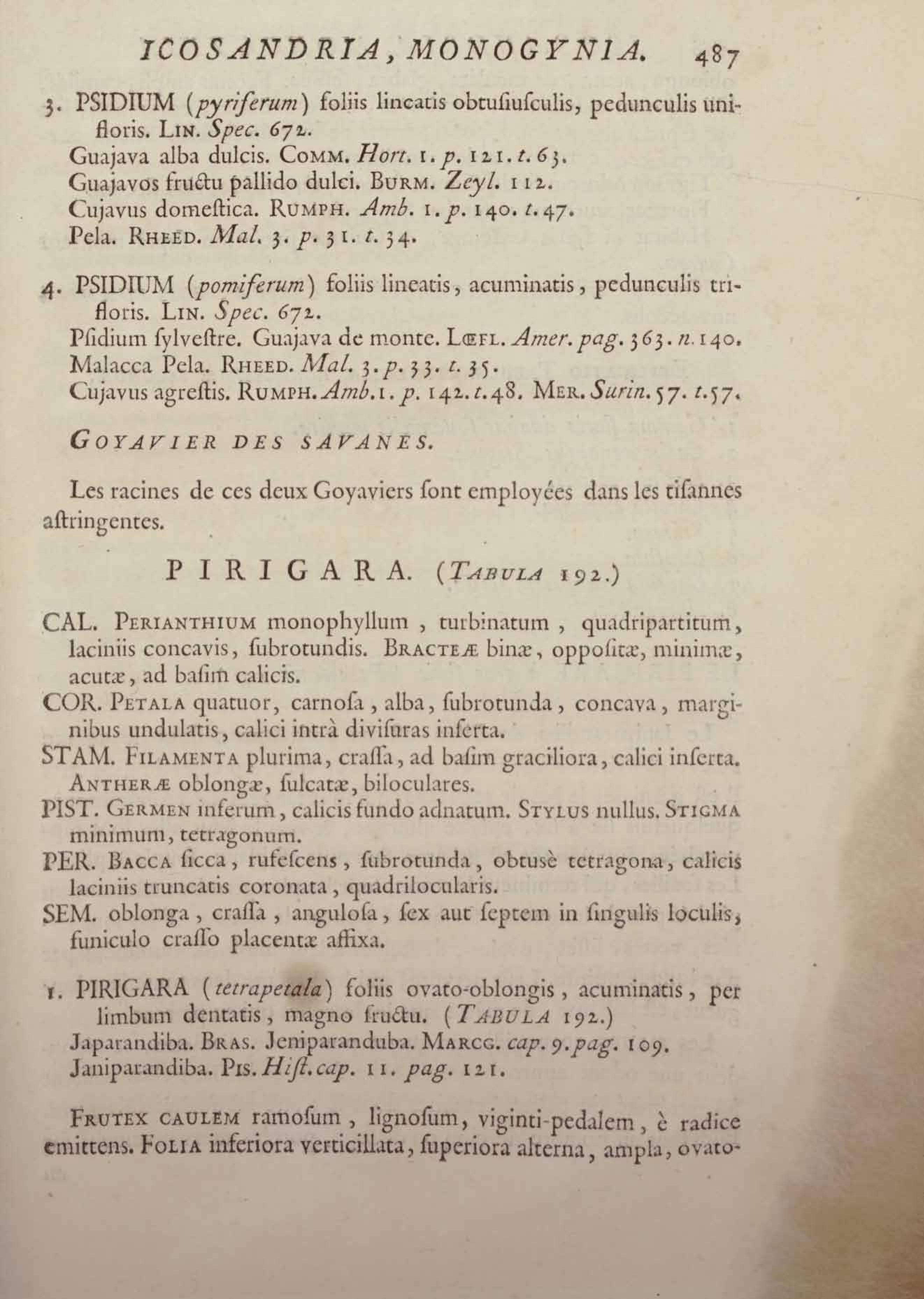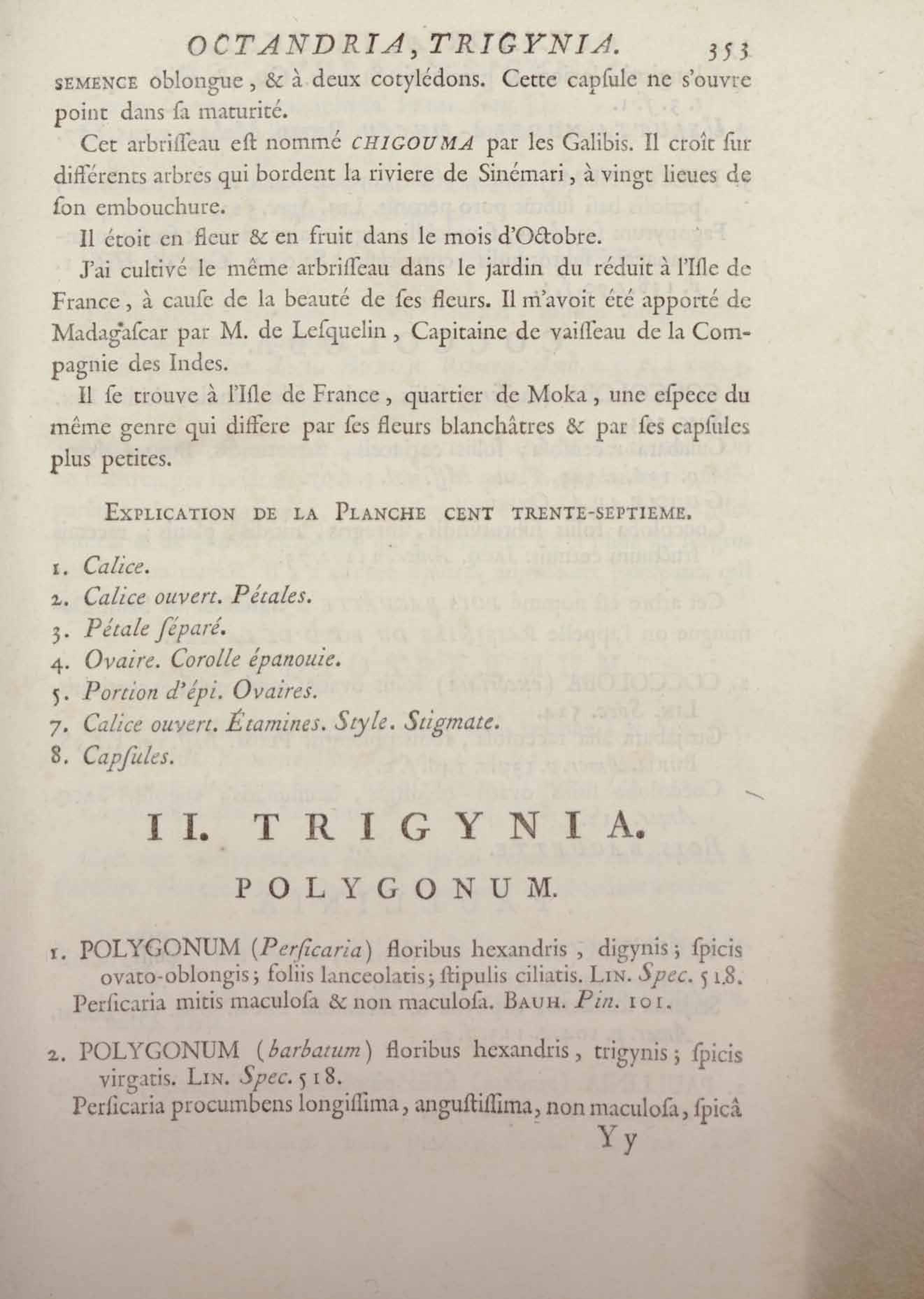 Histoire des plantes de la Guiane françoise, rangées suivant la méthode sexuelle : avec plusieurs mémoires sur différens objets intéressans, relatifs à la culture & au commerce de la Guiane françoise, & une notice des plantes de l'Isle-de-France : ouvrage orné de près de quatre cents planches en taille-douce, où sont représentées des plantes qui n'ont point encore été décrites ni gravées, ou qui ne l'ont été qu'imparfaitement. Tome premier