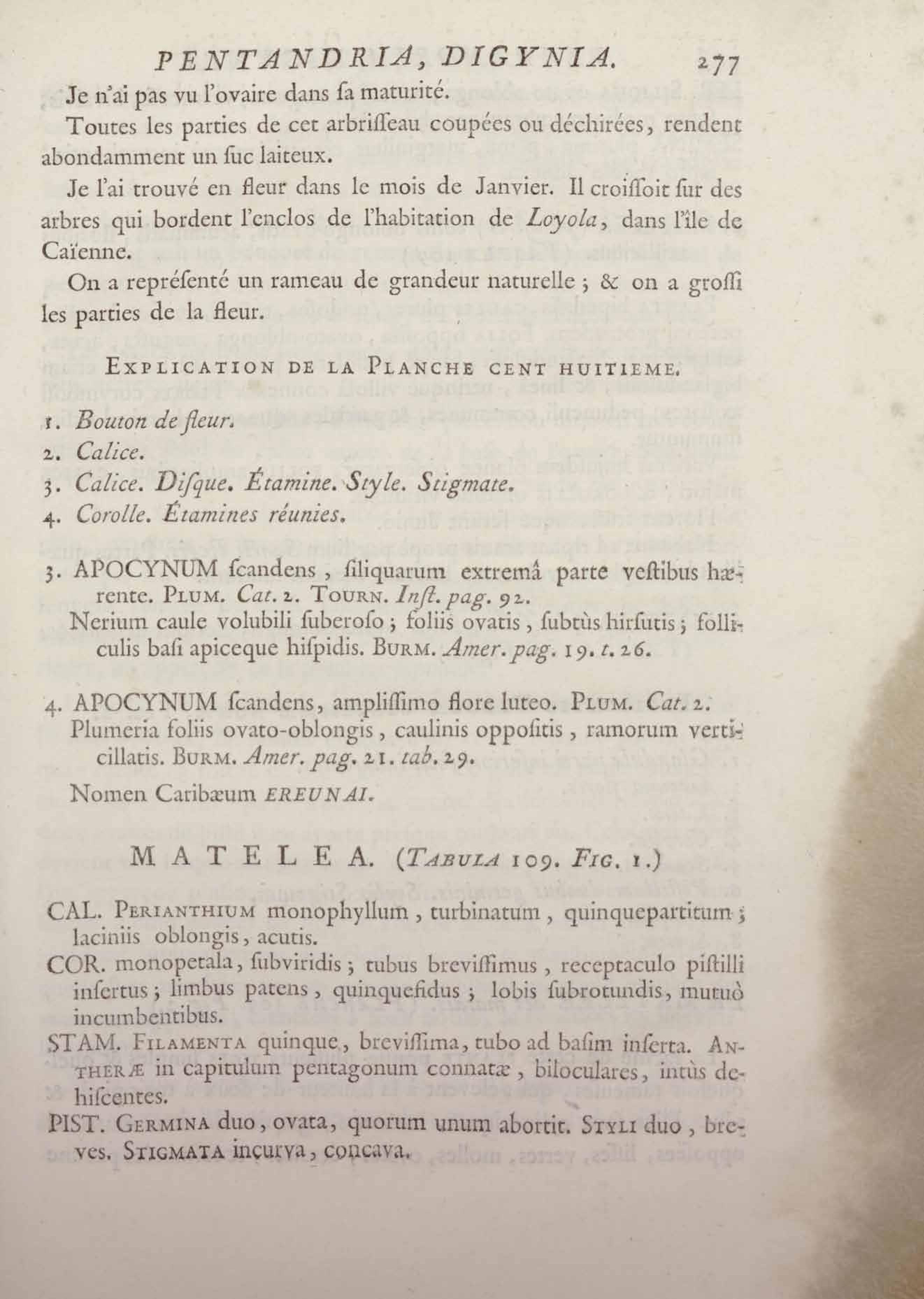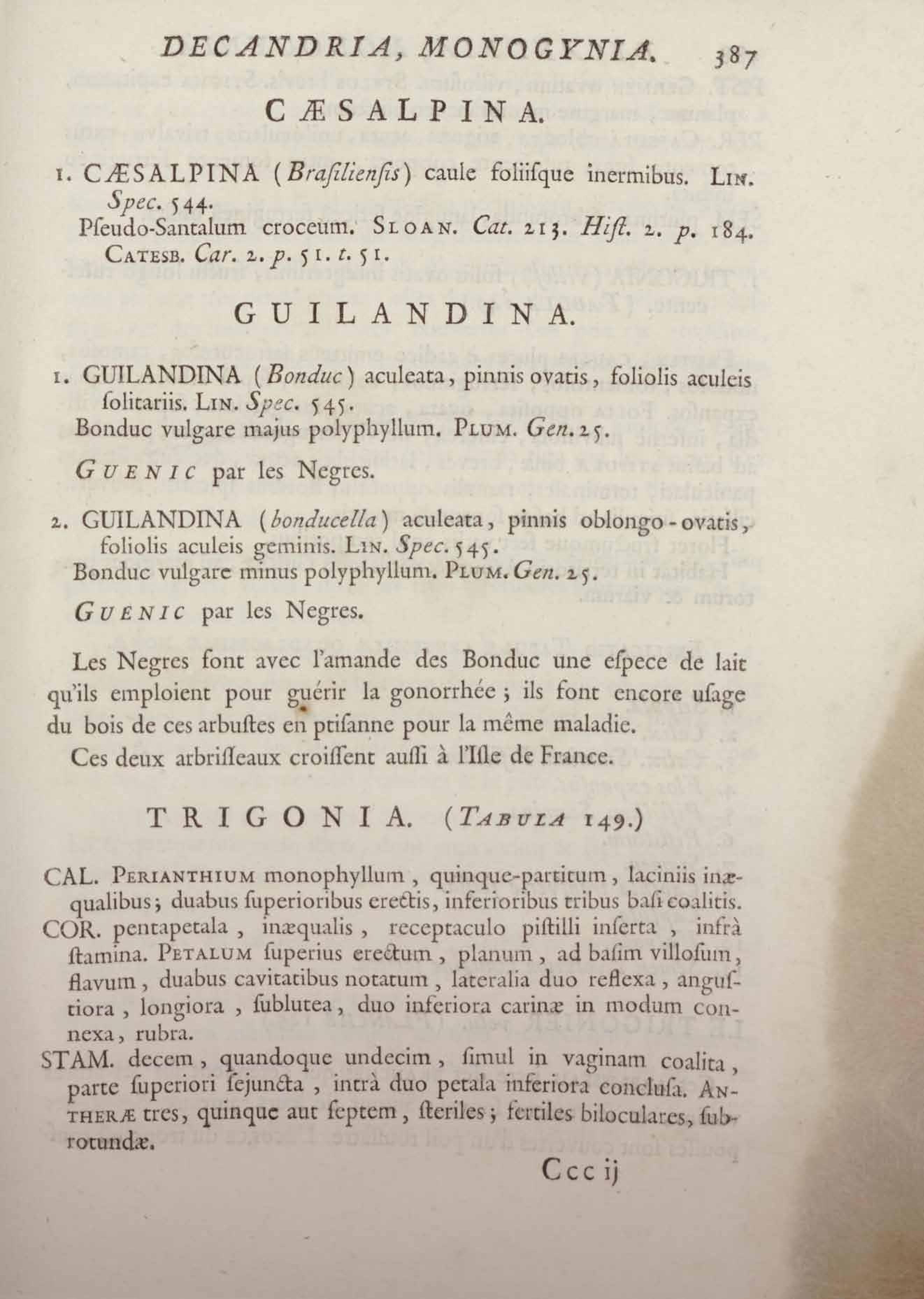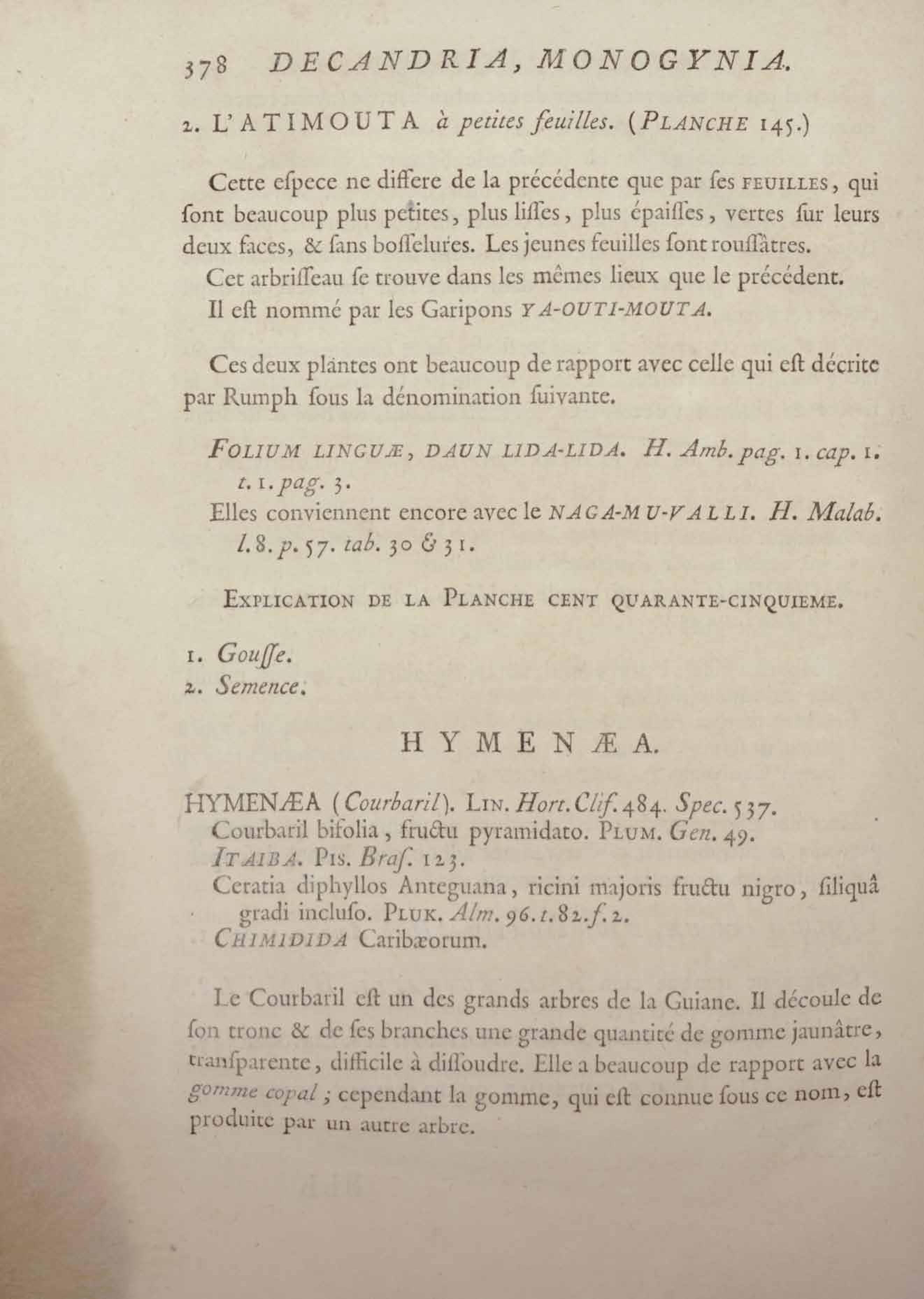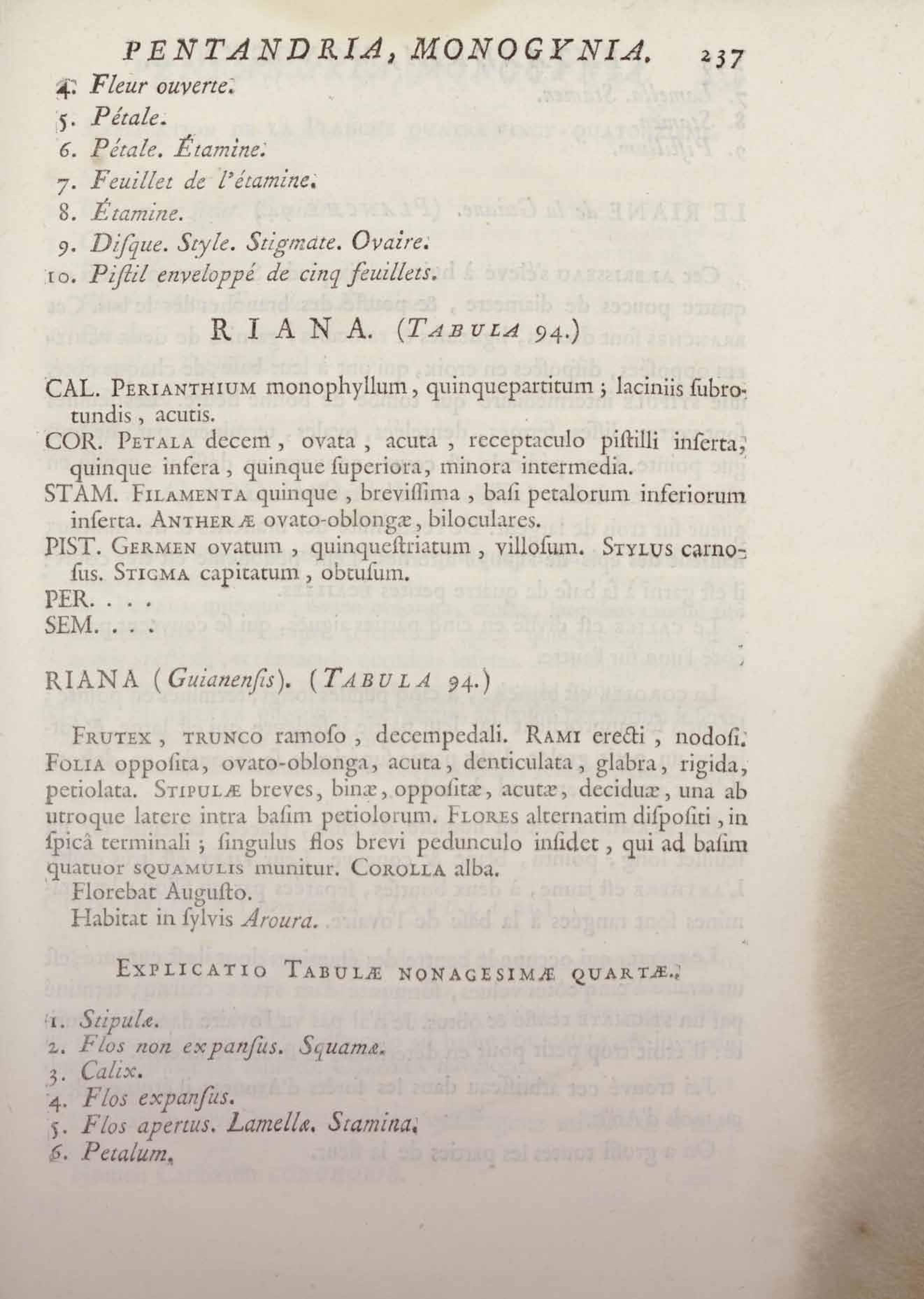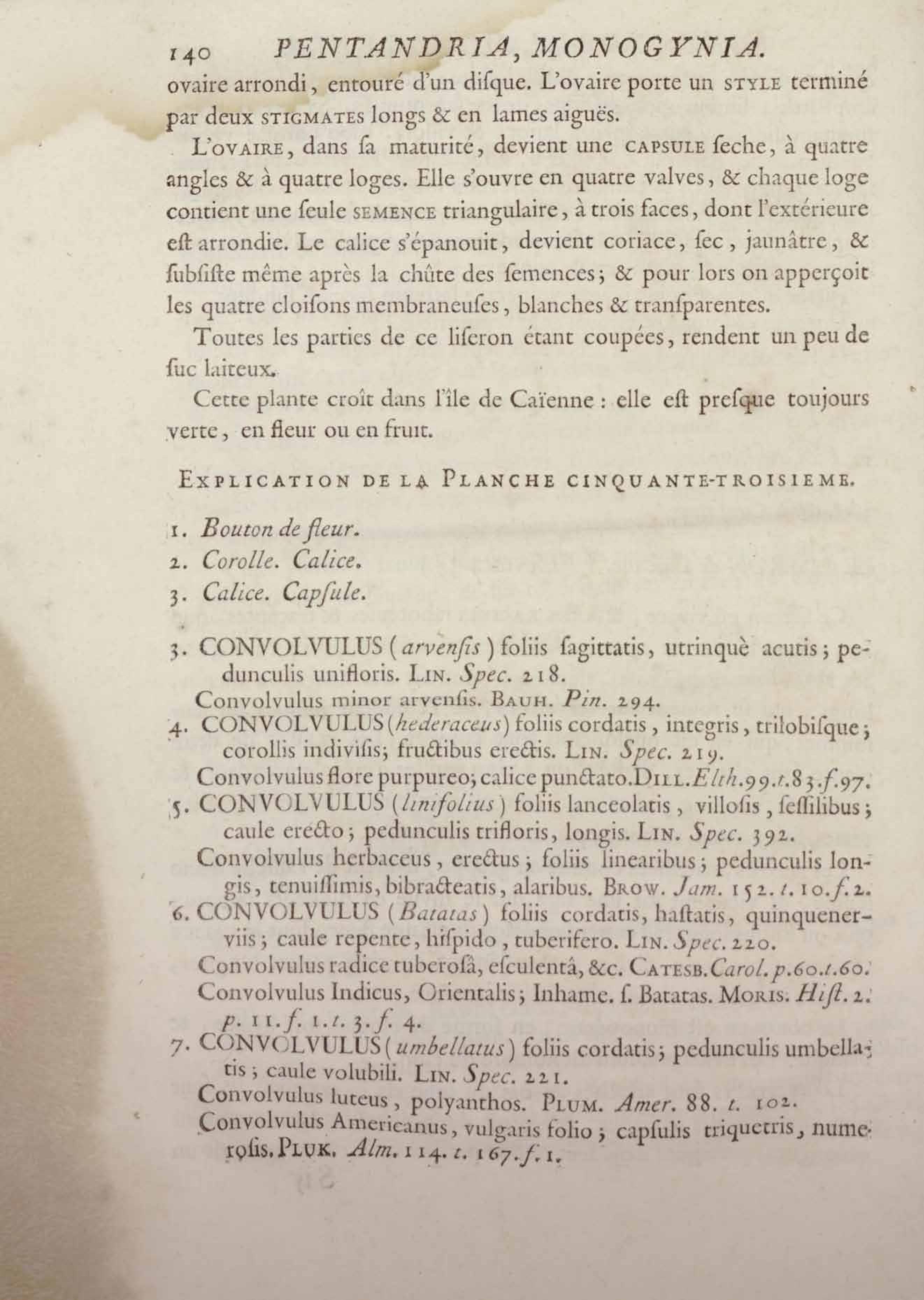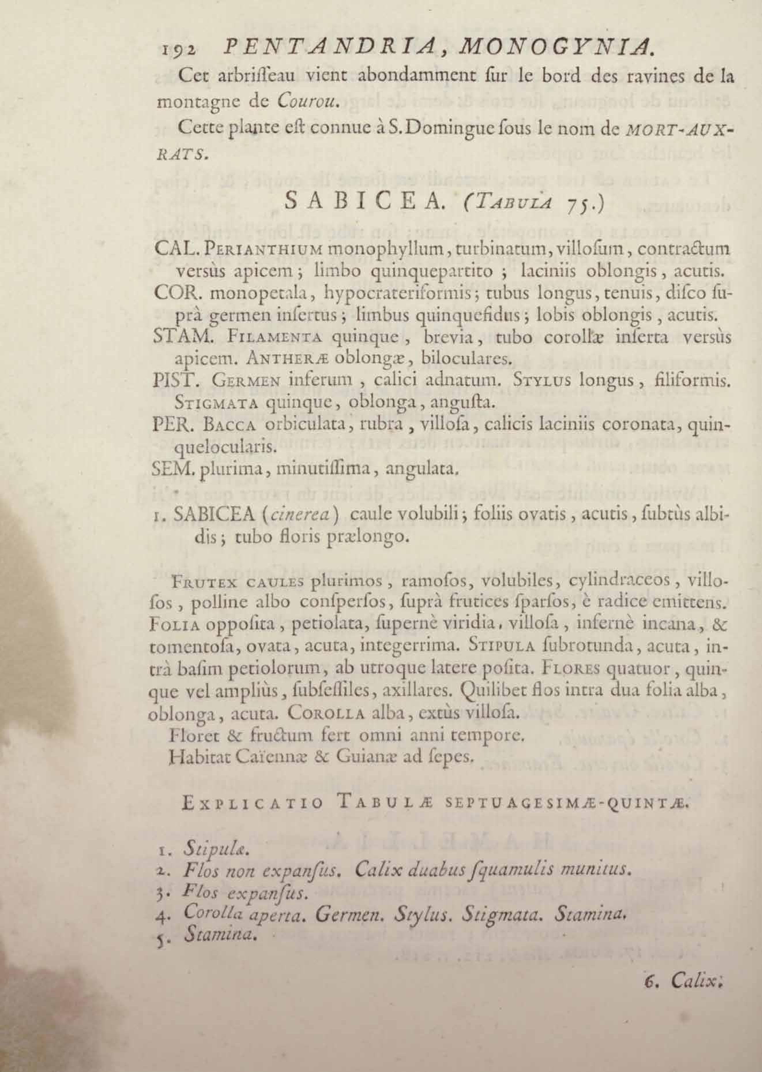 Histoire des plantes de la Guiane françoise, rangées suivant la méthode sexuelle : avec plusieurs mémoires sur différens objets intéressans, relatifs à la culture & au commerce de la Guiane françoise, & une notice des plantes de l'Isle-de-France : ouvrage orné de près de quatre cents planches en taille-douce, où sont représentées des plantes qui n'ont point encore été décrites ni gravées, ou qui ne l'ont été qu'imparfaitement. Tome premier