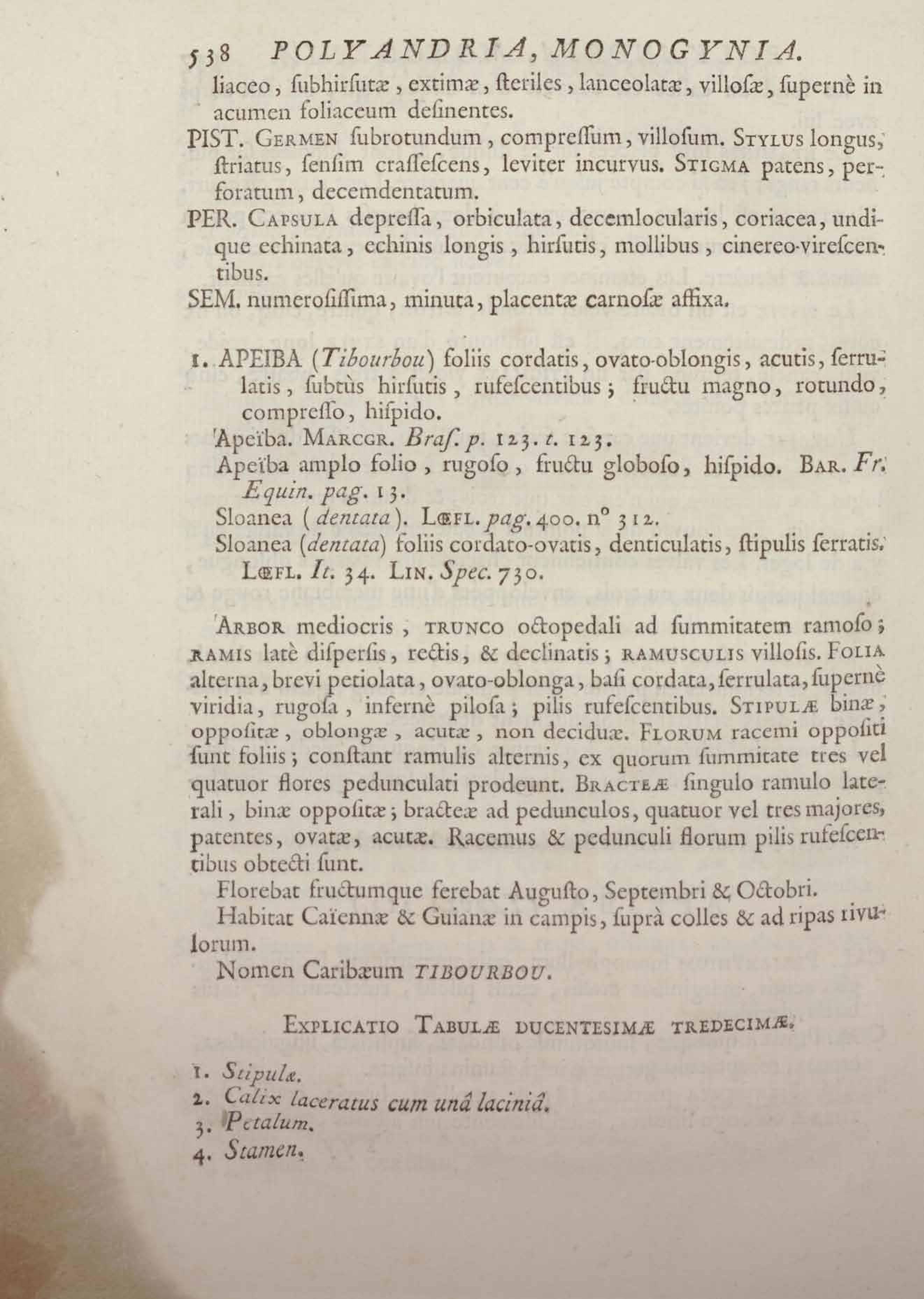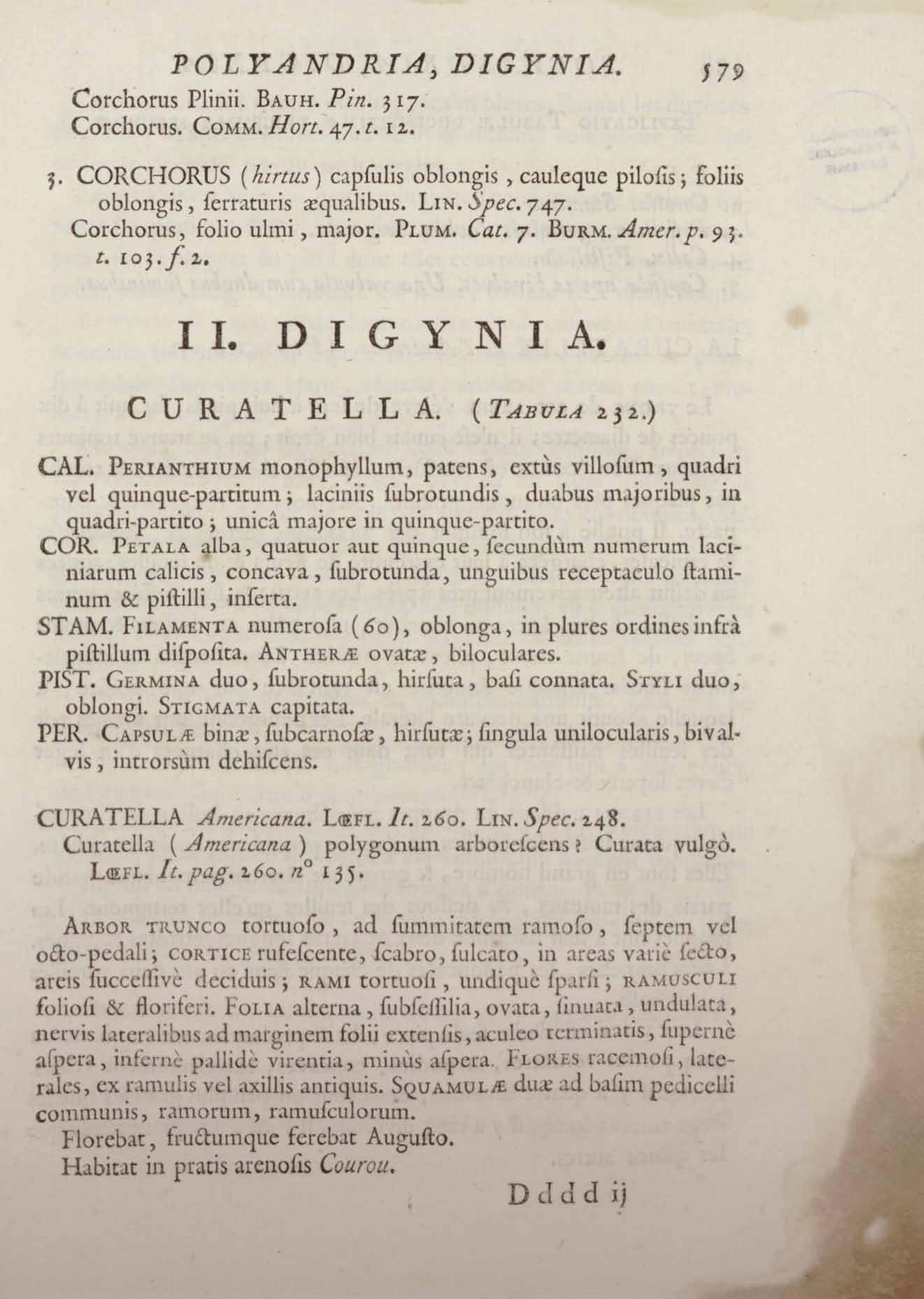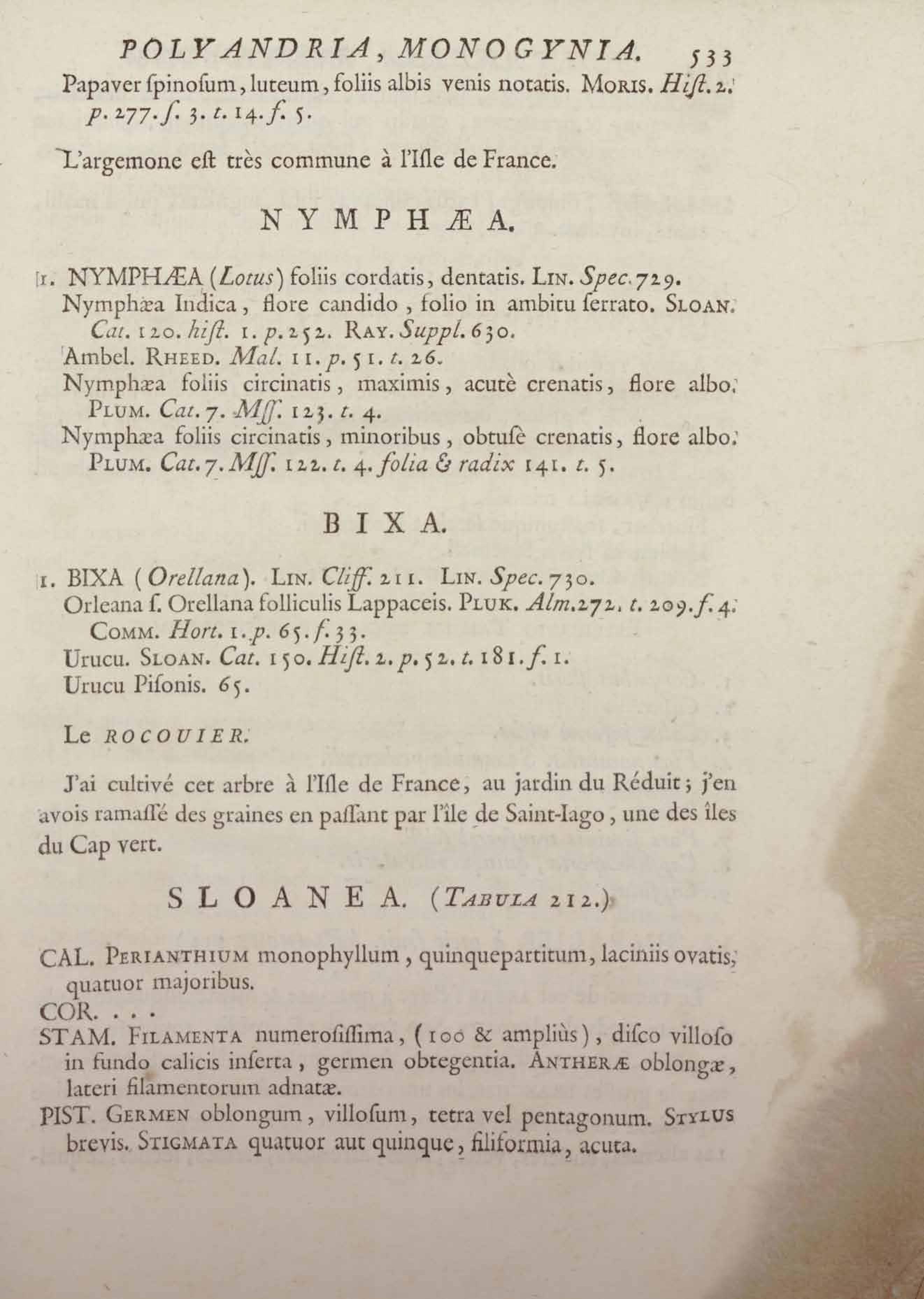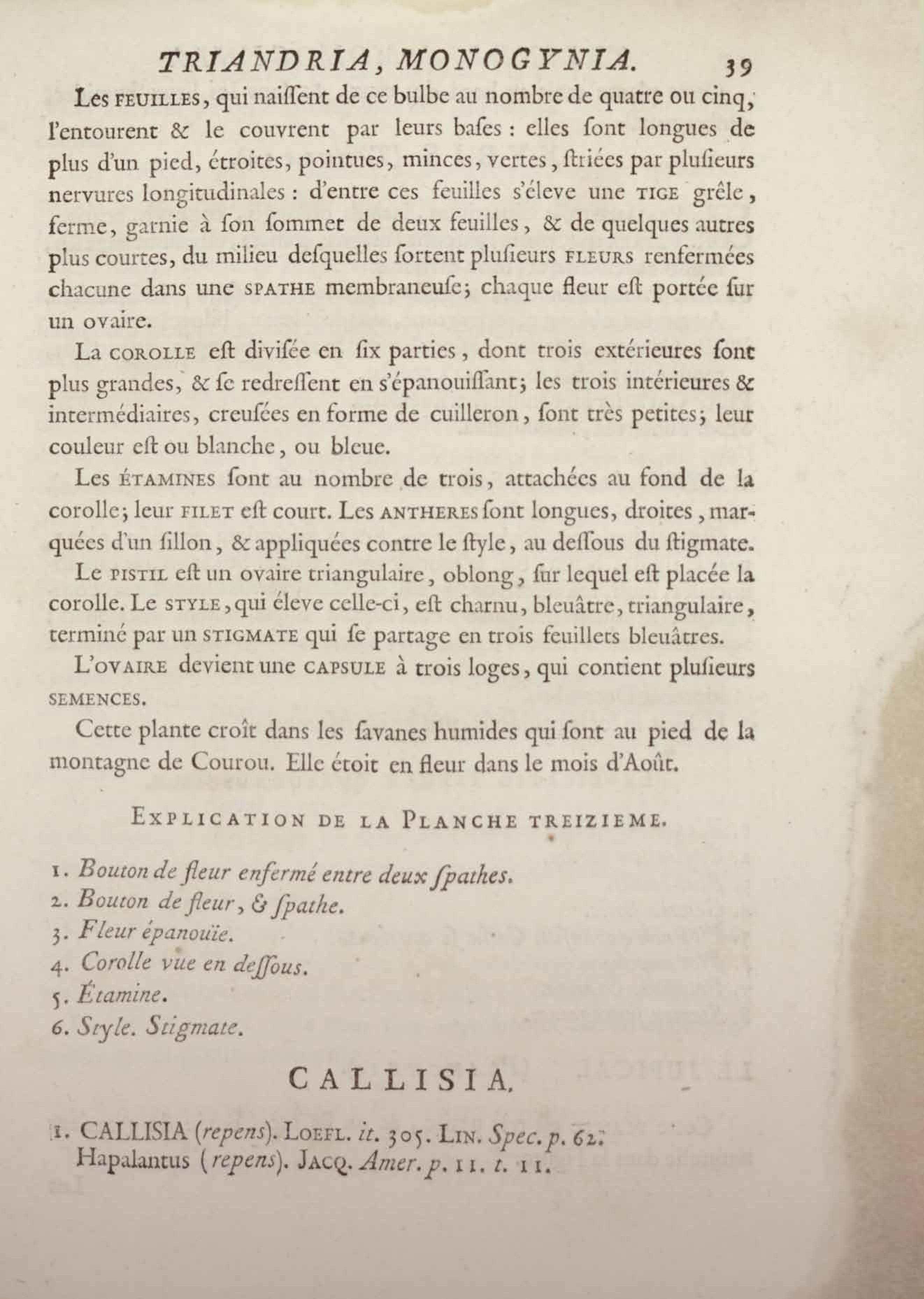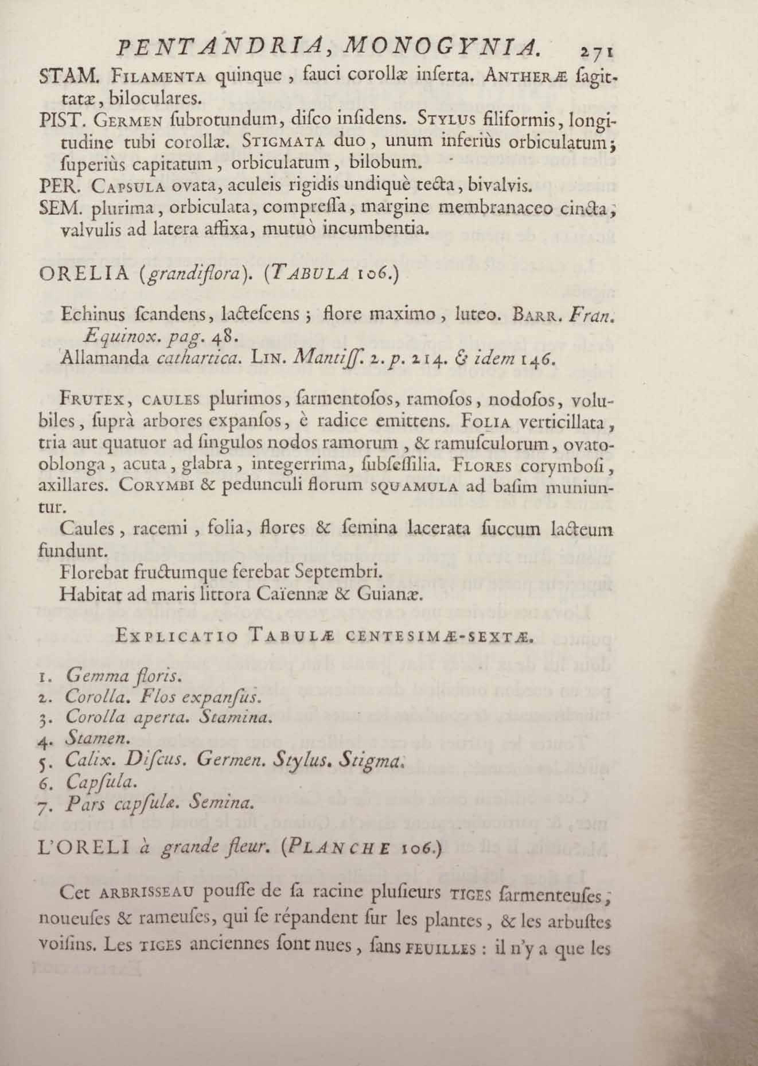 Histoire des plantes de la Guiane françoise, rangées suivant la méthode sexuelle : avec plusieurs mémoires sur différens objets intéressans, relatifs à la culture & au commerce de la Guiane françoise, & une notice des plantes de l'Isle-de-France : ouvrage orné de près de quatre cents planches en taille-douce, où sont représentées des plantes qui n'ont point encore été décrites ni gravées, ou qui ne l'ont été qu'imparfaitement. Tome premier