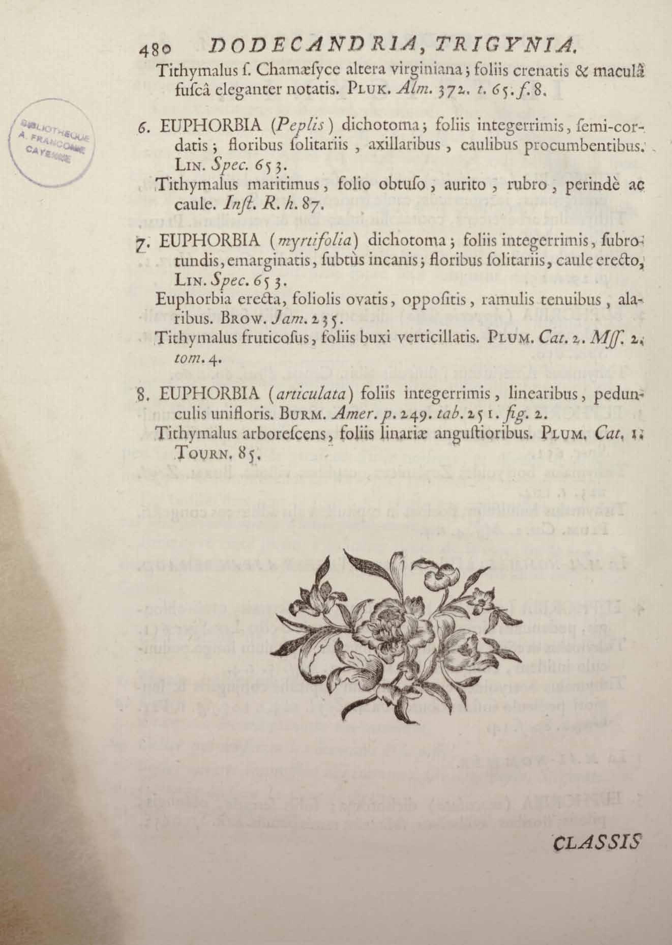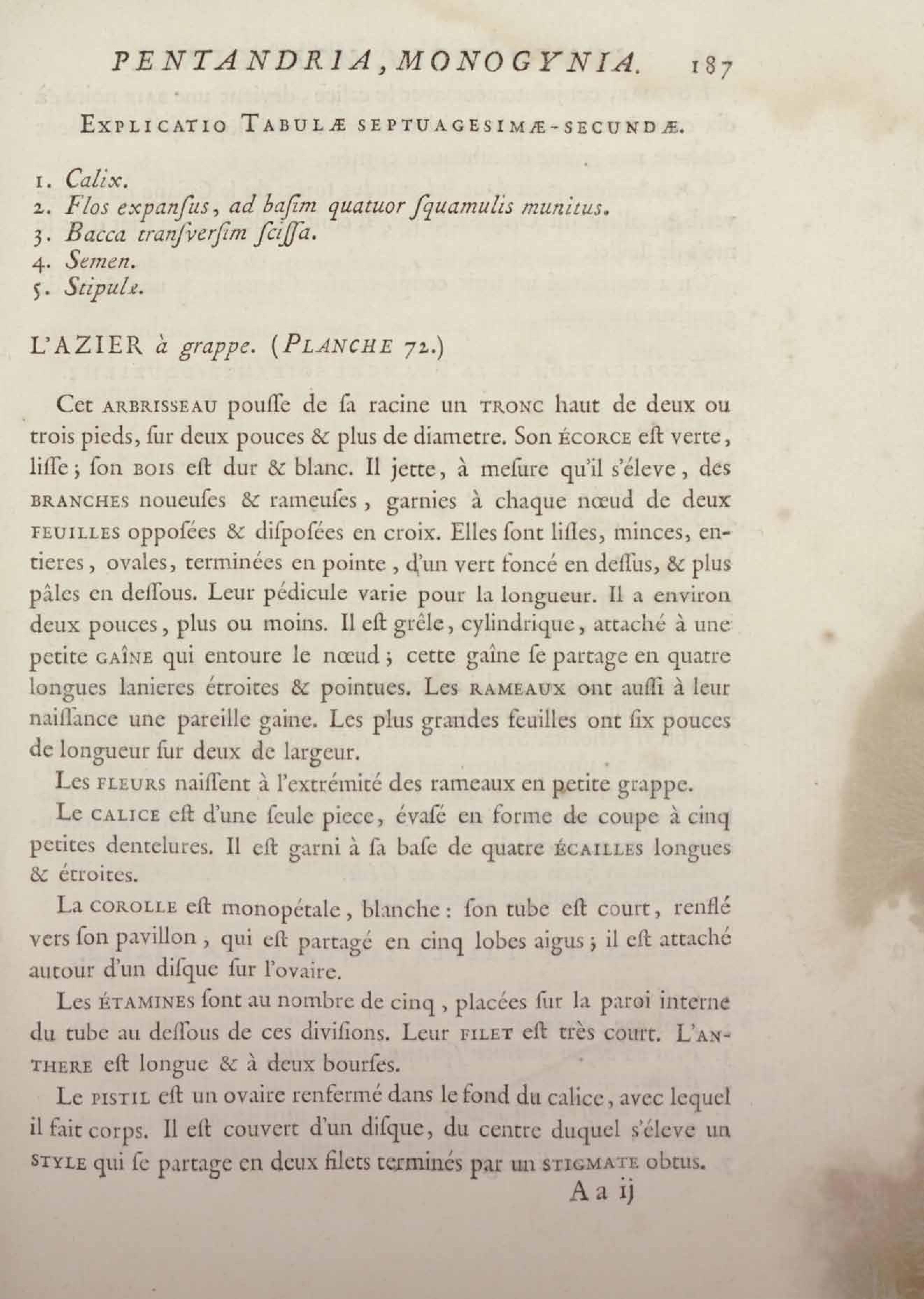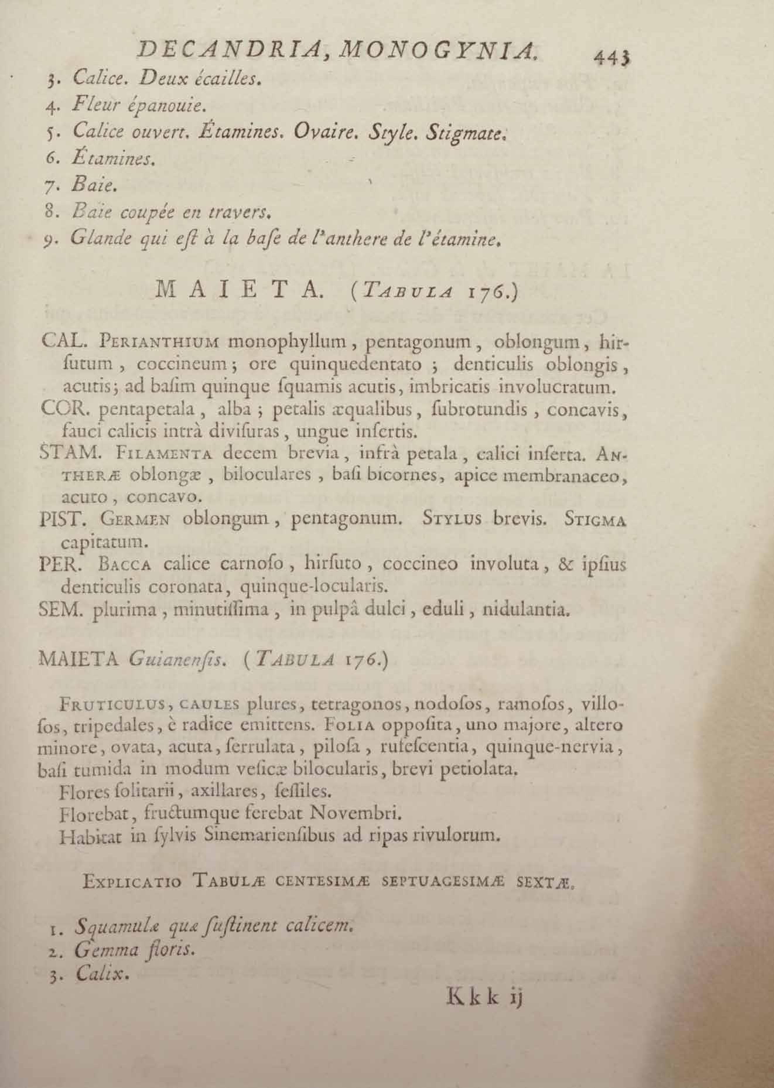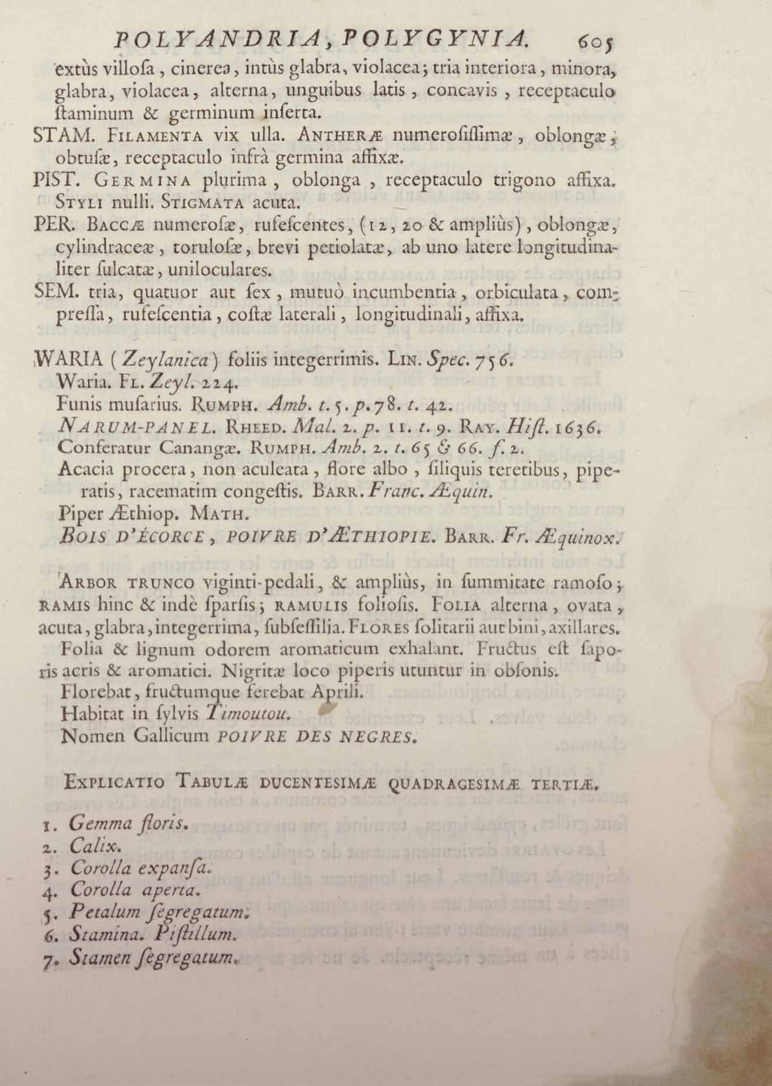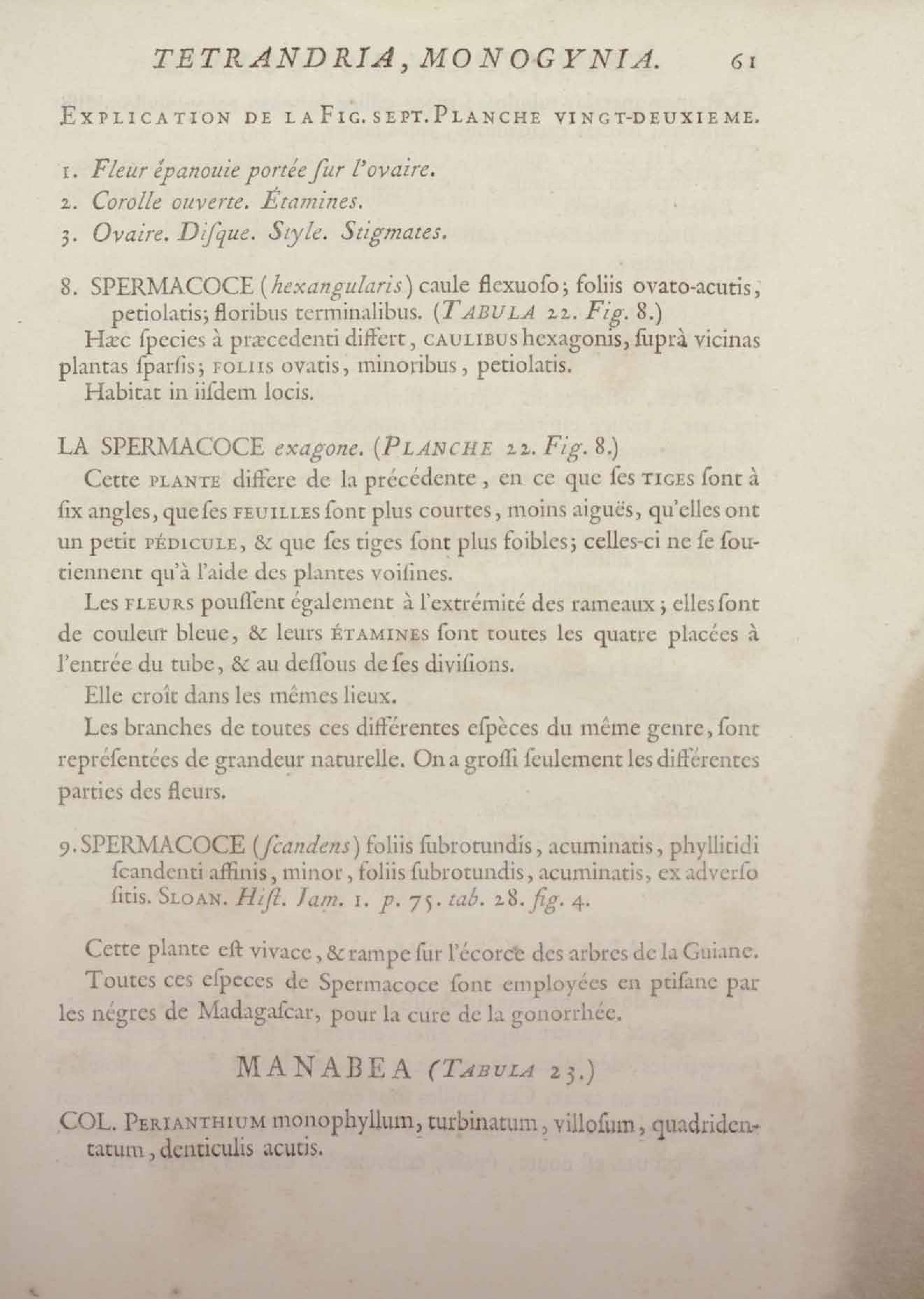 Histoire des plantes de la Guiane françoise, rangées suivant la méthode sexuelle : avec plusieurs mémoires sur différens objets intéressans, relatifs à la culture & au commerce de la Guiane françoise, & une notice des plantes de l'Isle-de-France : ouvrage orné de près de quatre cents planches en taille-douce, où sont représentées des plantes qui n'ont point encore été décrites ni gravées, ou qui ne l'ont été qu'imparfaitement. Tome premier