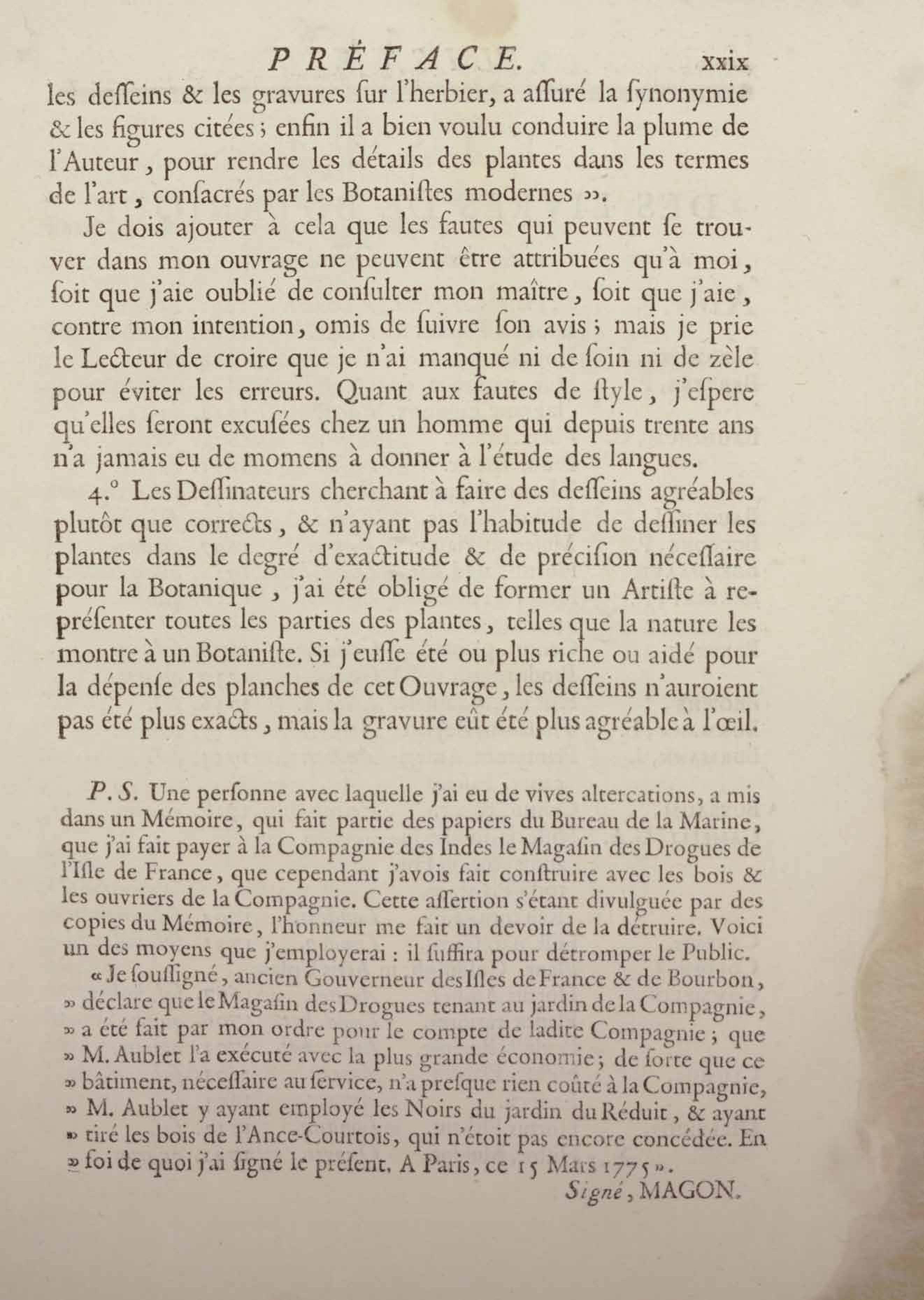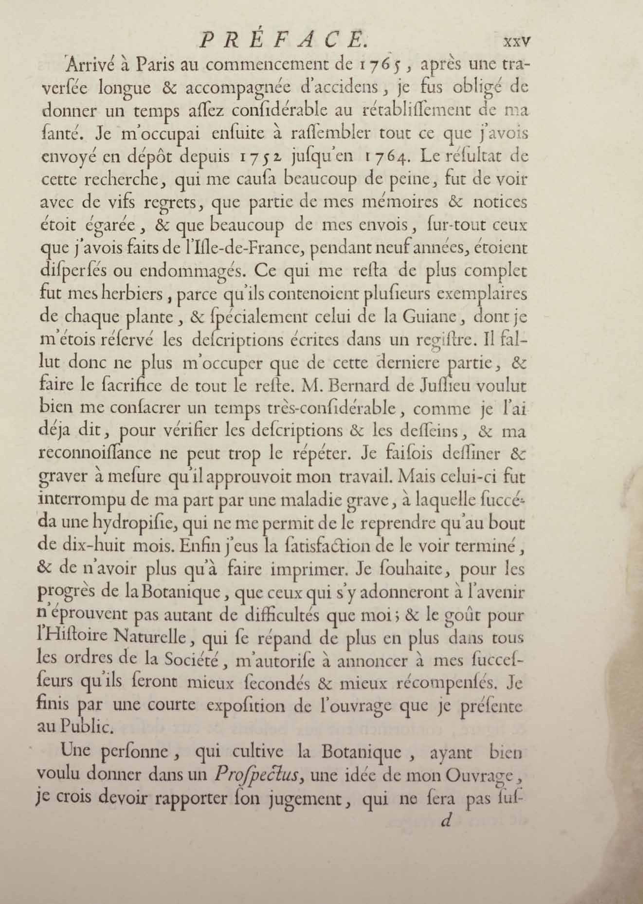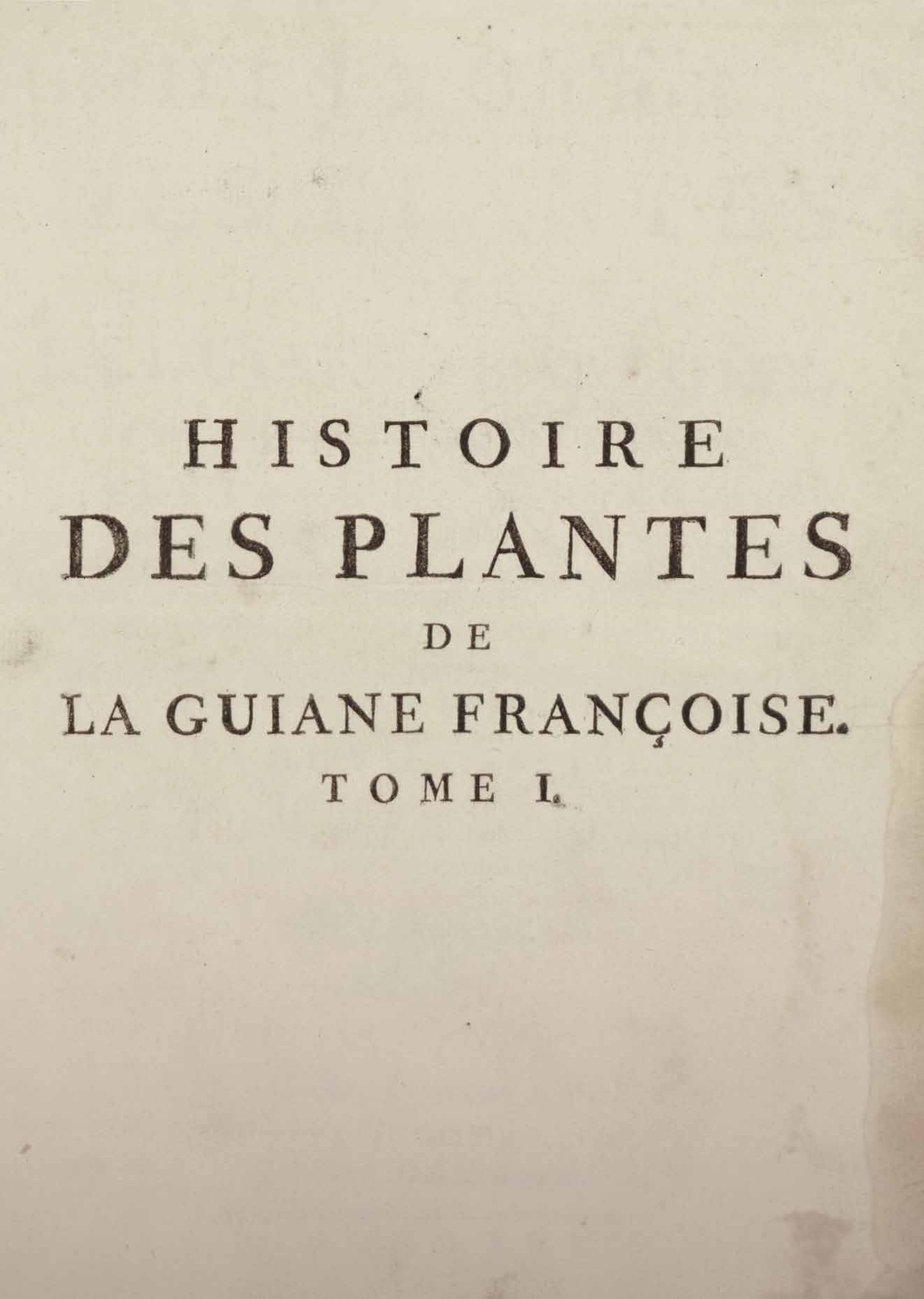 - Histoire des plantes de la Guiane françoise, rangées suivant la méthode sexuelle : avec plusieurs mémoires sur différens objets intéressans, relatifs à la culture & au commerce de la Guiane françoise, & une notice des plantes de l'Isle-de-France : ouvrage orné de près de quatre cents planches en taille-douce, où sont représentées des plantes qui n'ont point encore été décrites ni gravées, ou qui ne l'ont été qu'imparfaitement. Tome premier