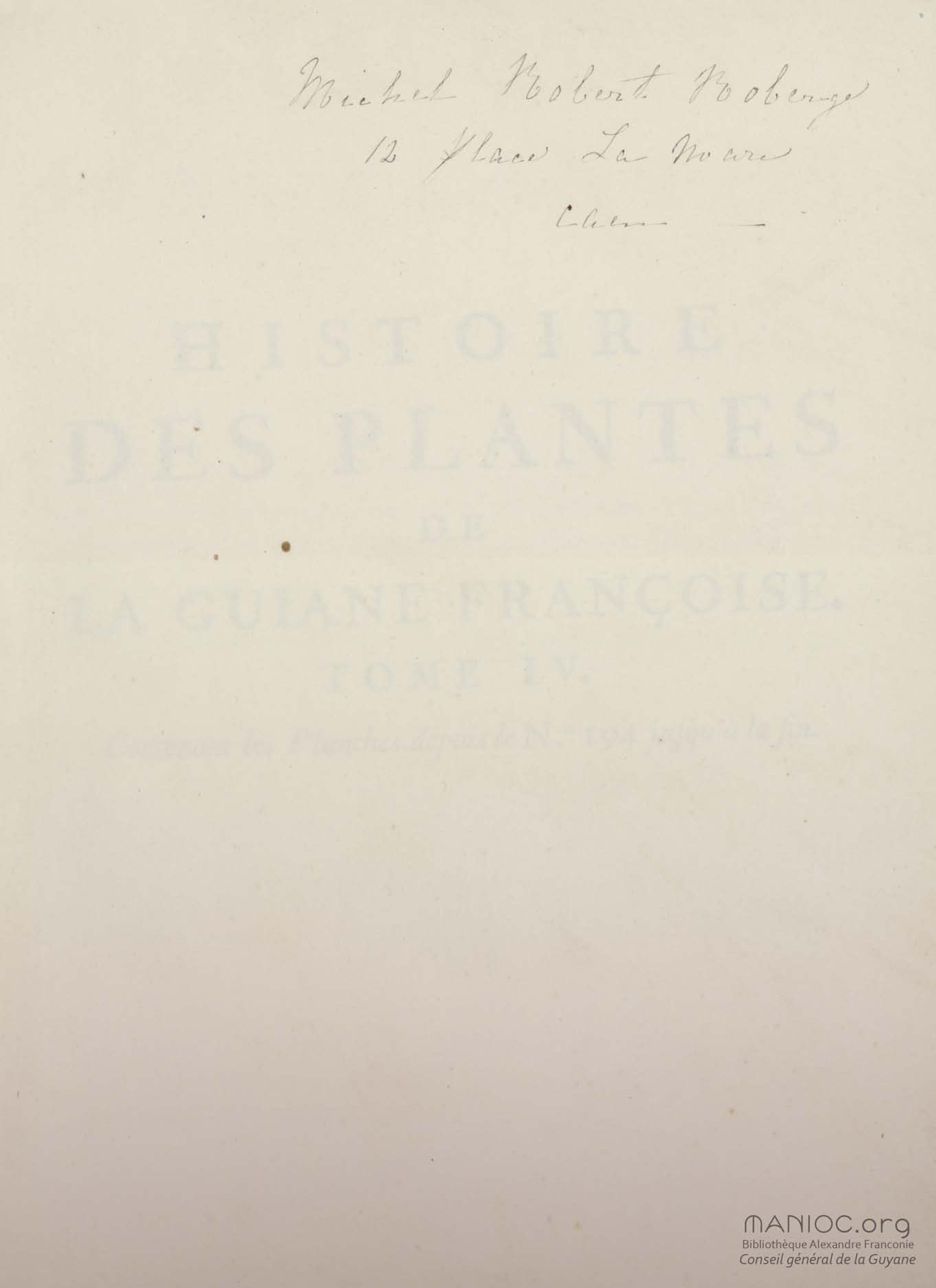 - Histoire des plantes de la Guiane françoise, rangées suivant la méthode sexuelle [Ressource électronique] : avec plusieurs mémoires sur différens objets intéressans, relatifs à la culture & au commerce de la Guiane françoise, & une notice des plantes de l'Isle-de-France : ouvrage orné de près de quatre cents planches en taille-douce, où sont représentées des plantes qui n'ont point encore été décrites ni gravées, ou qui ne l'ont été qu'imparfaitement. Tome quatrième