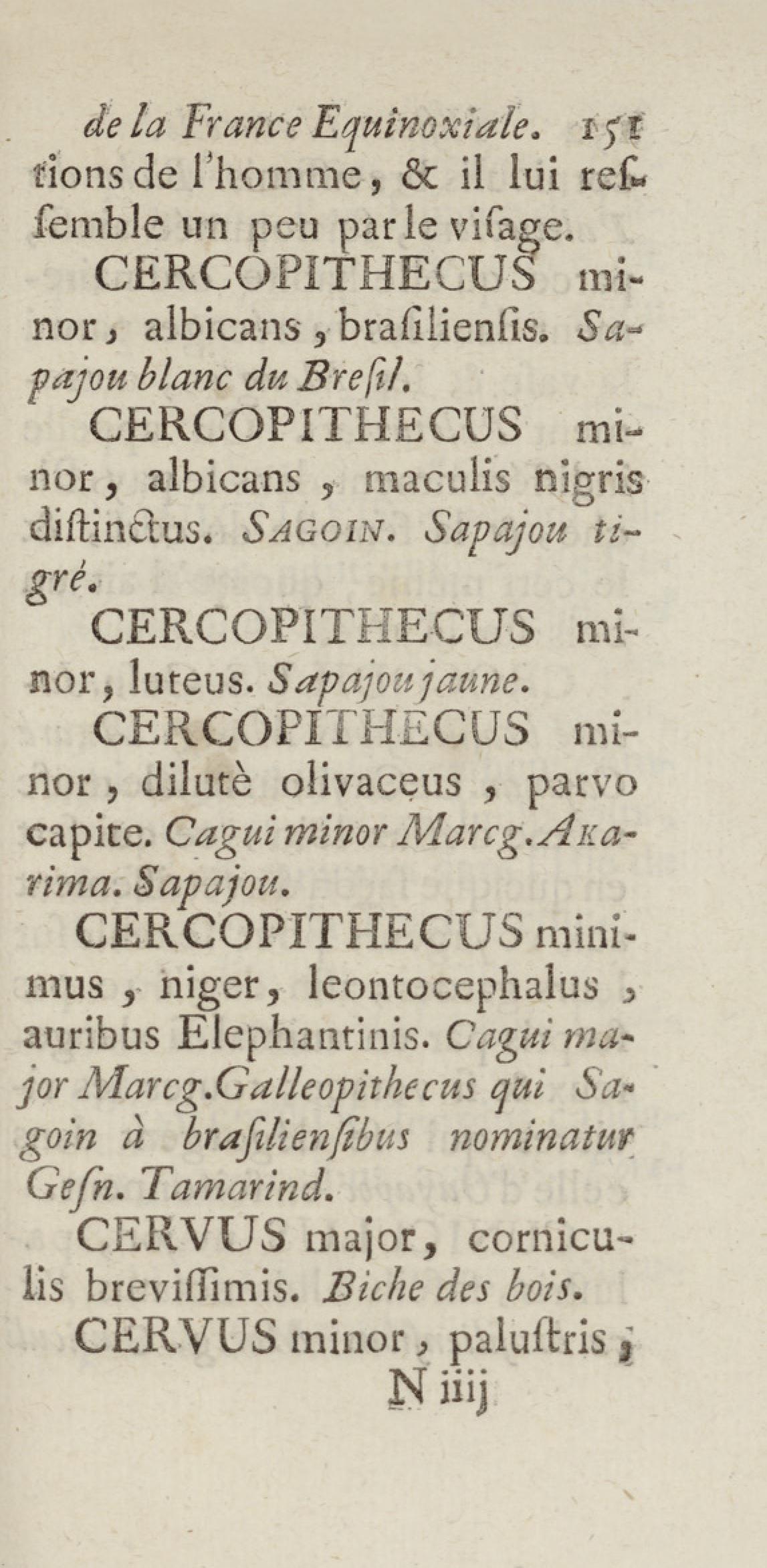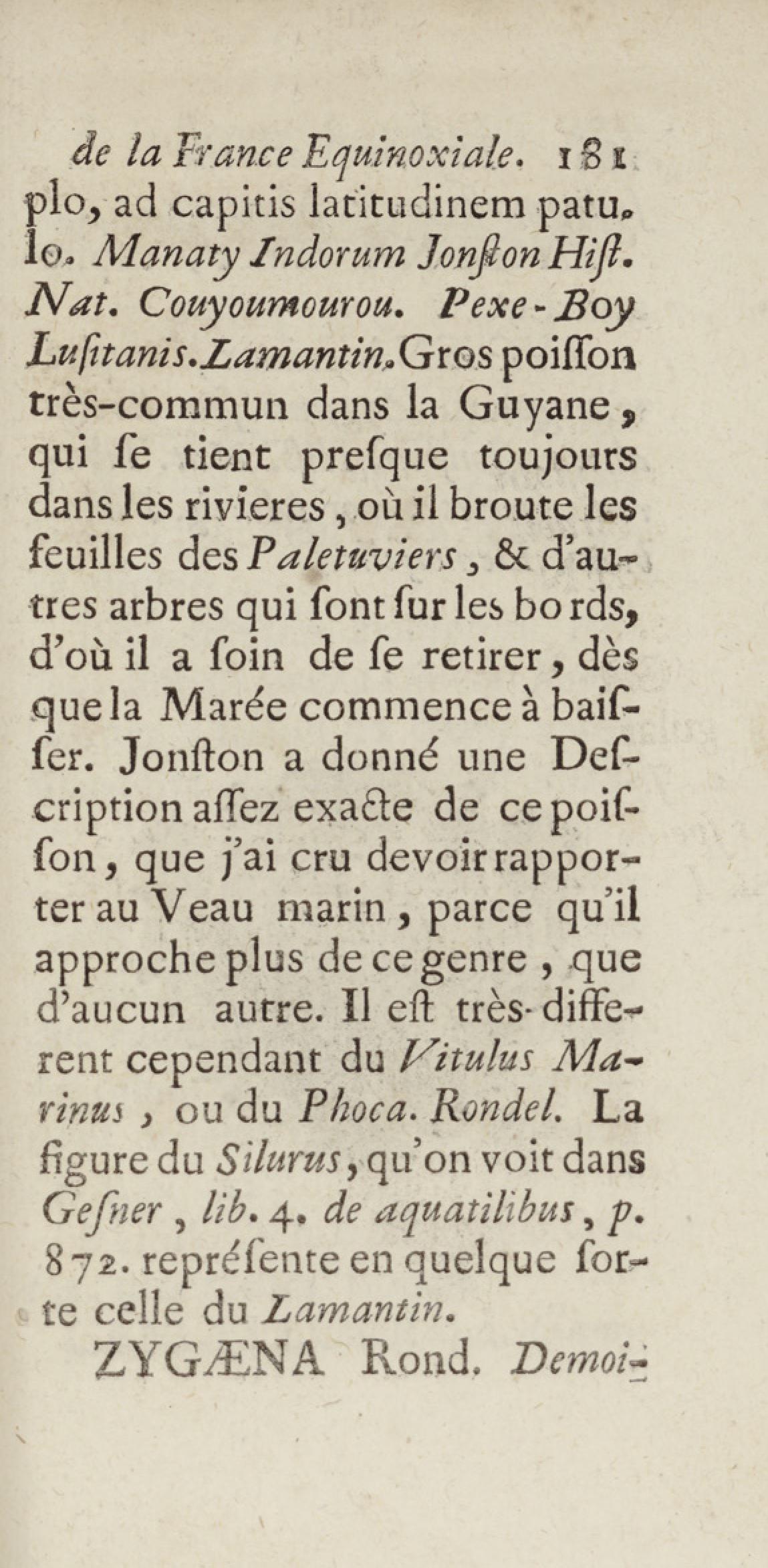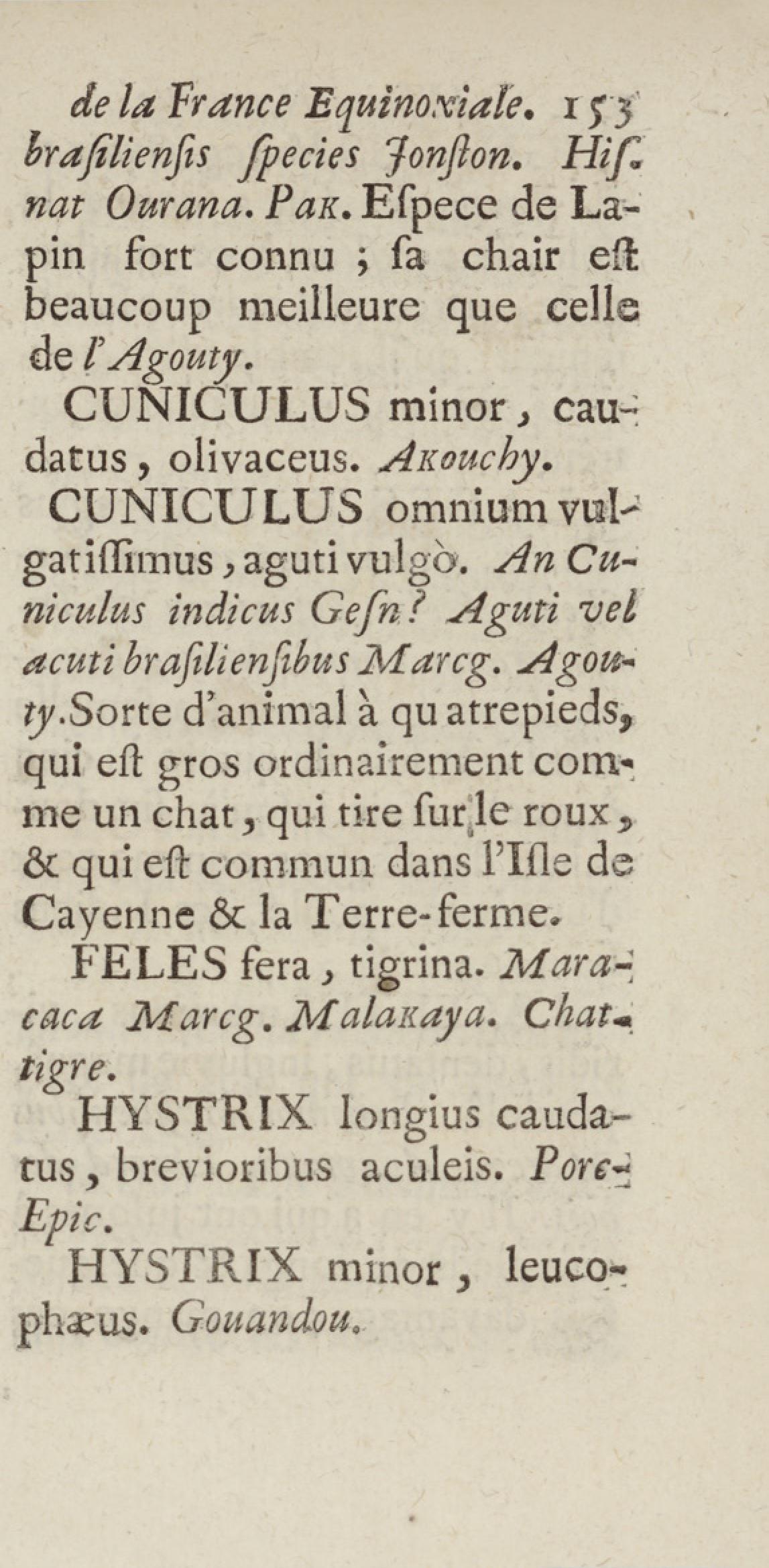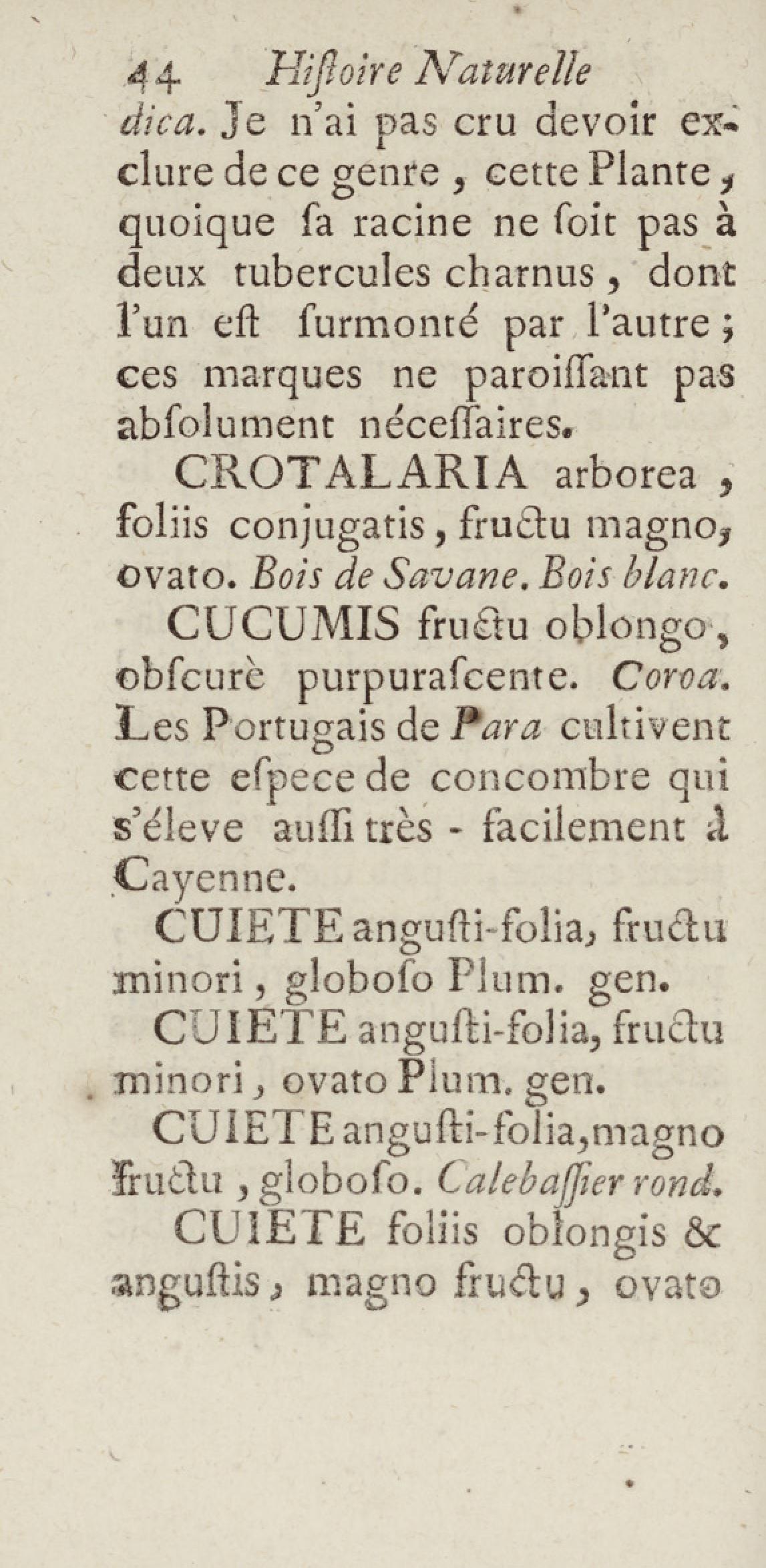 Essai sur l'histoire naturelle de la France équinoxiale, ou Dénombrement des plantes, des animaux, & des minéraux, qui se trouvent dans l'isle de Cayenne, les isles de Remire, sur les côtes de la mer, & dans le continent de la Guyane : avec leurs noms différens, latins, françois, et indiens, et quelques observations sur leur usage dans la médecine & dans les arts