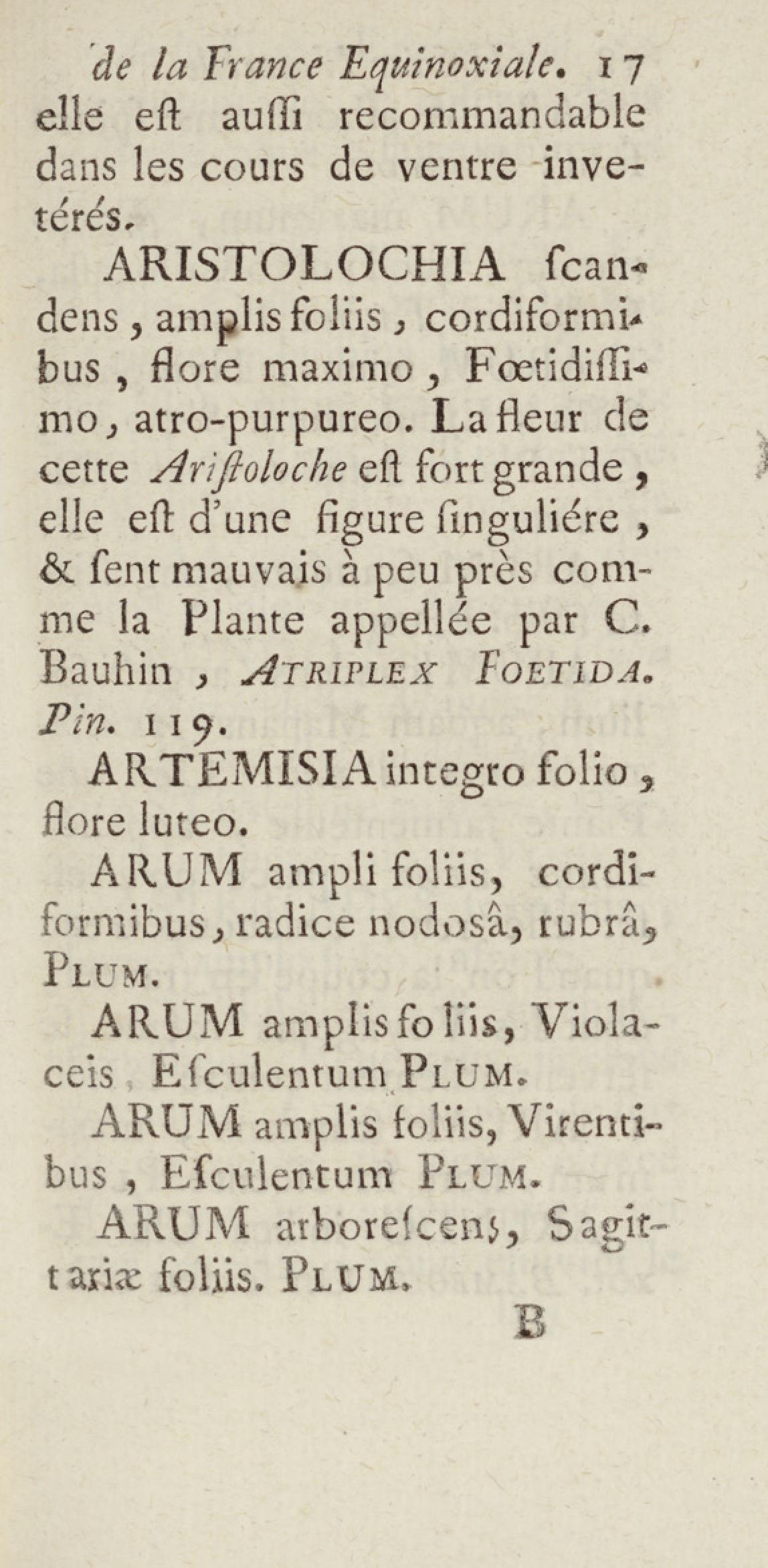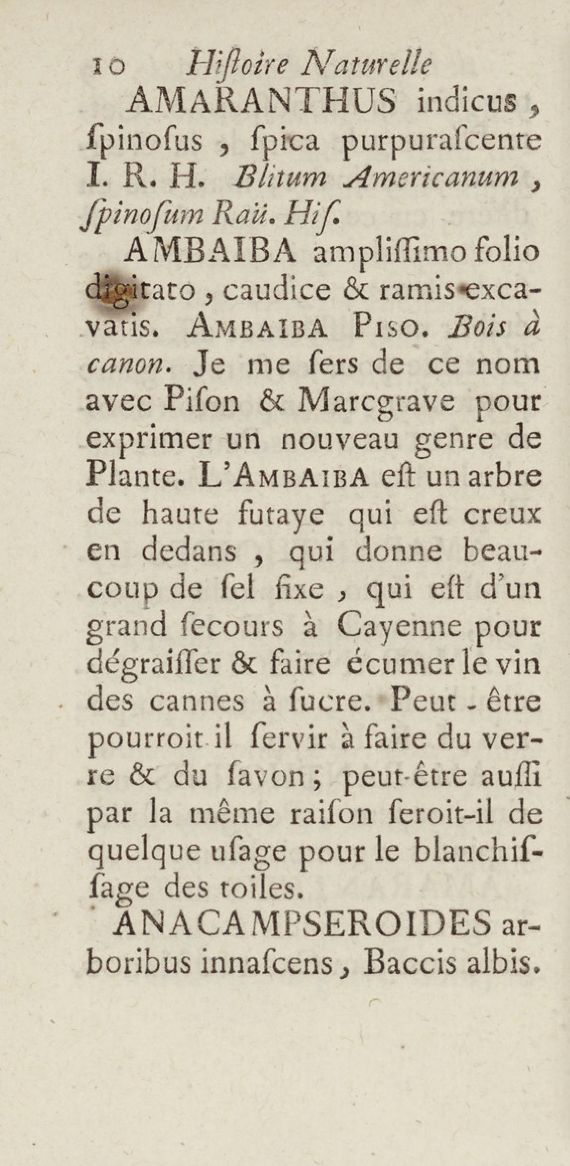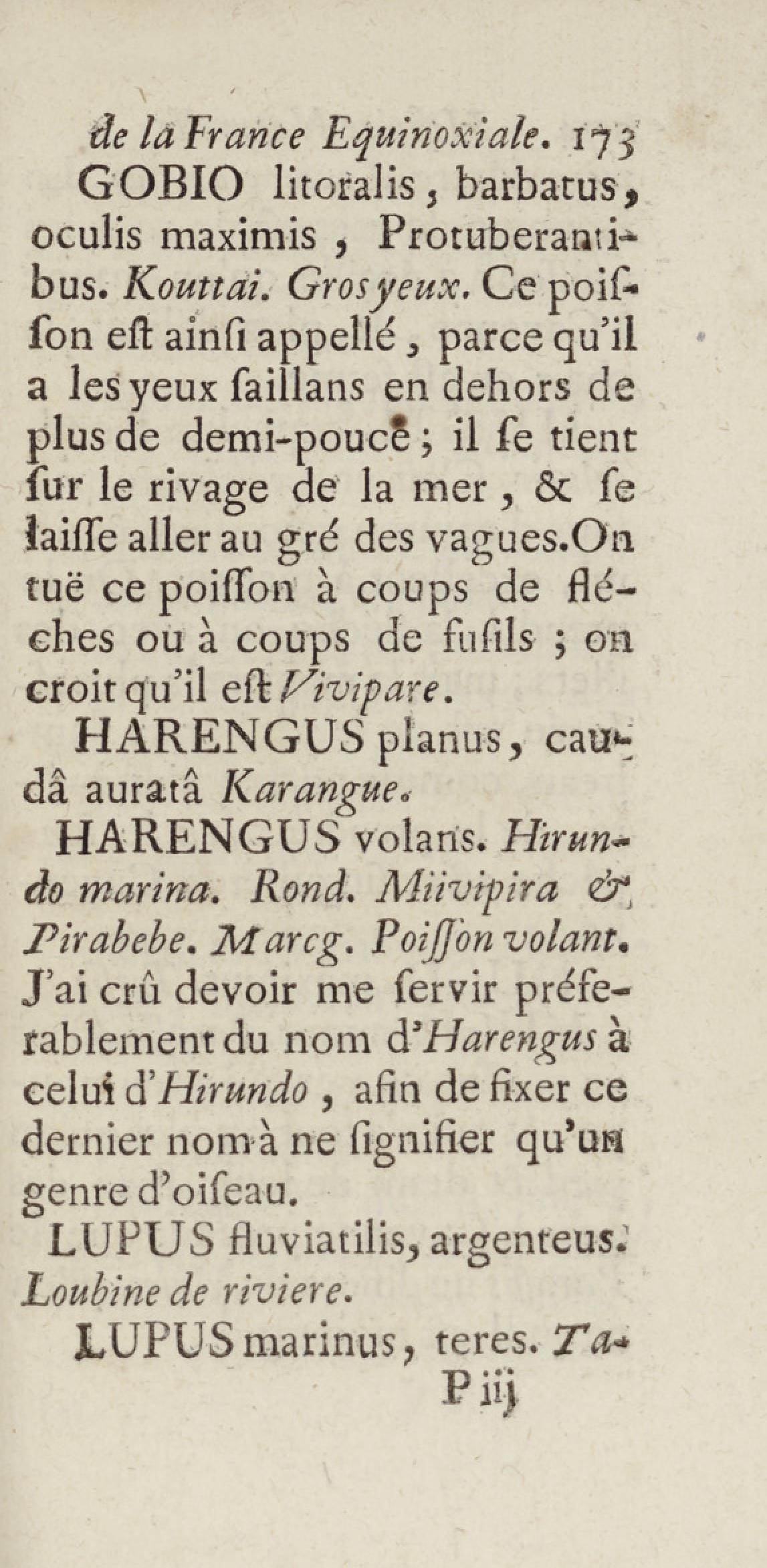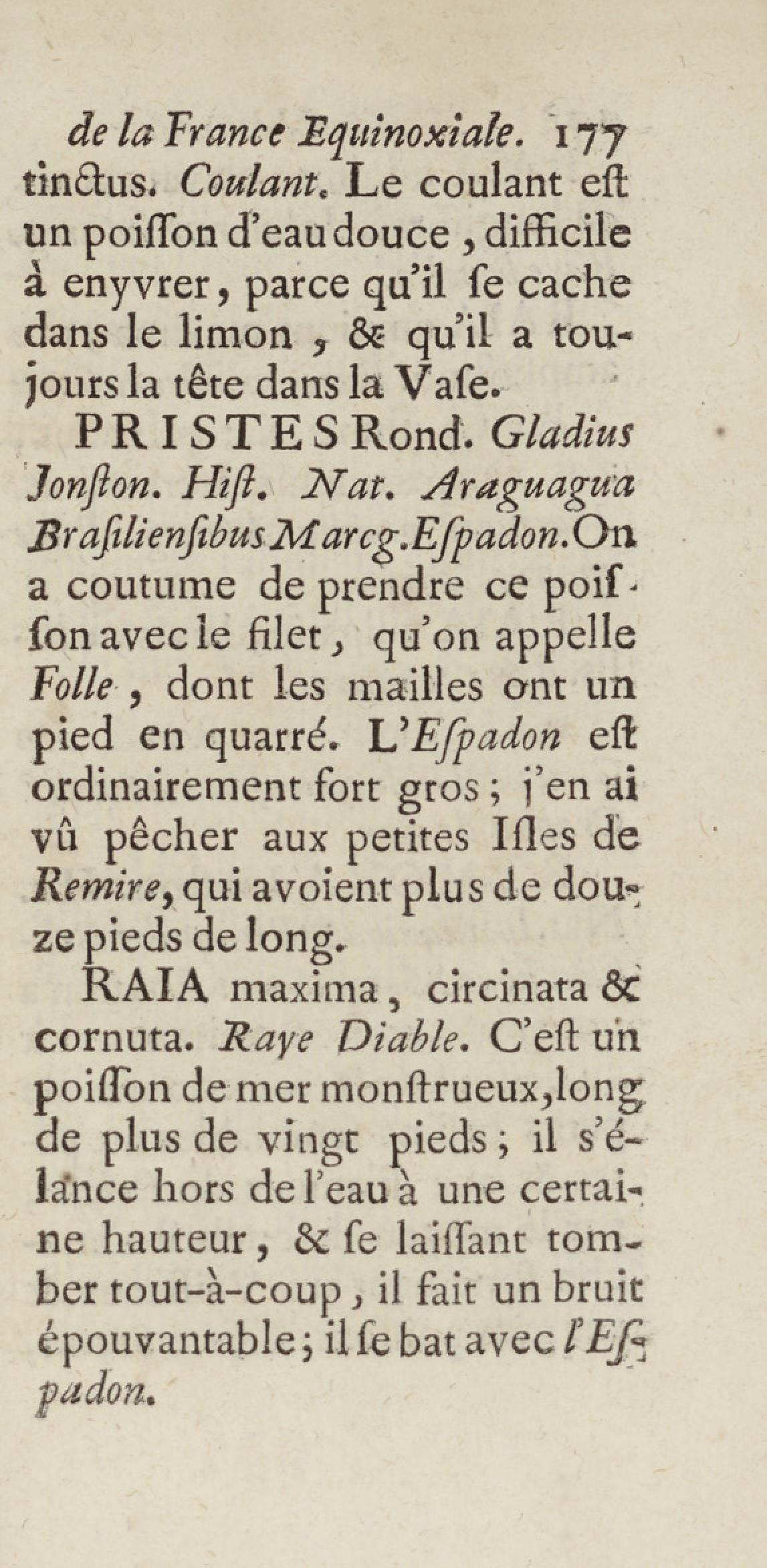 Essai sur l'histoire naturelle de la France équinoxiale, ou Dénombrement des plantes, des animaux, & des minéraux, qui se trouvent dans l'isle de Cayenne, les isles de Remire, sur les côtes de la mer, & dans le continent de la Guyane : avec leurs noms différens, latins, françois, et indiens, et quelques observations sur leur usage dans la médecine & dans les arts