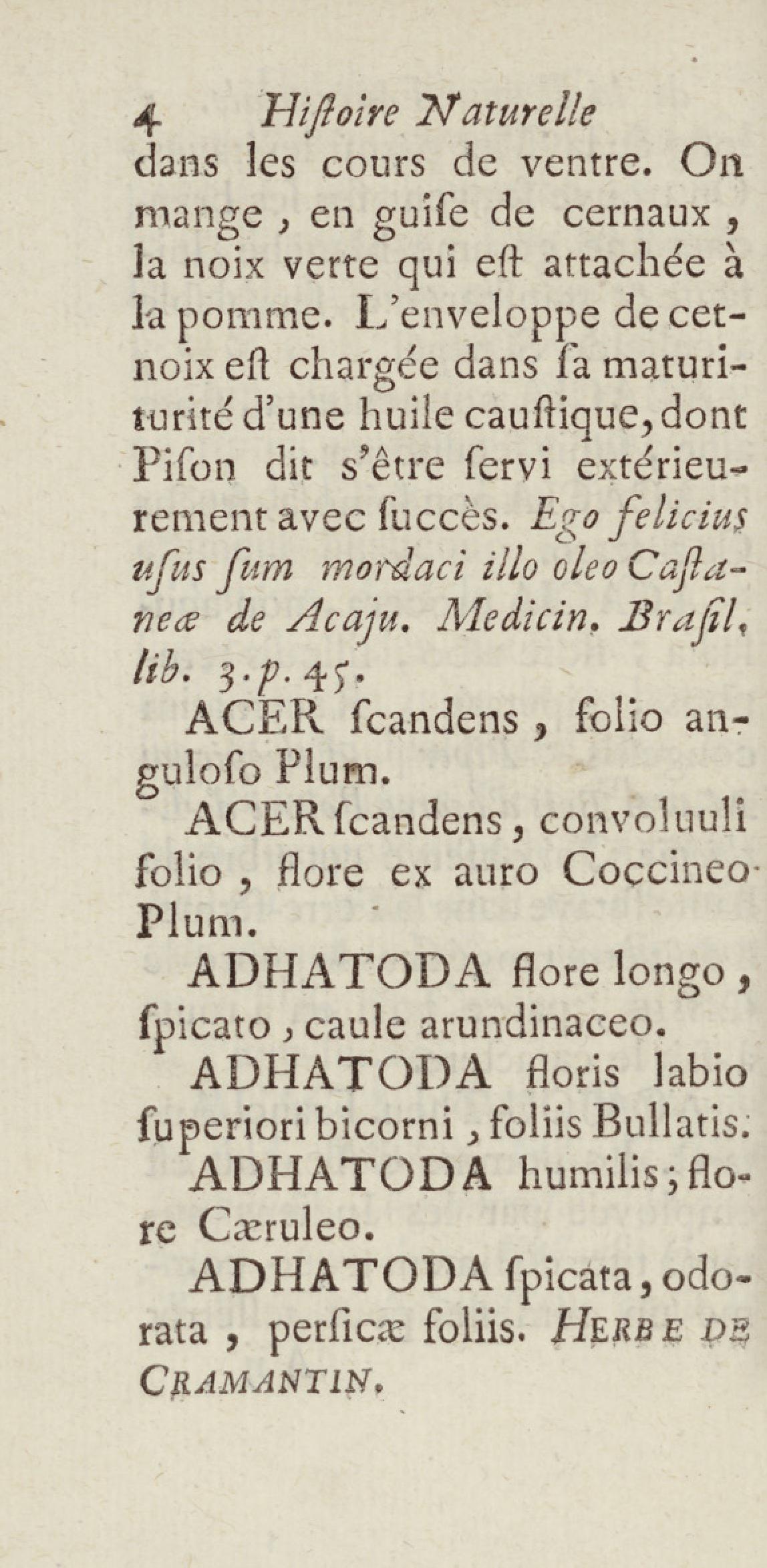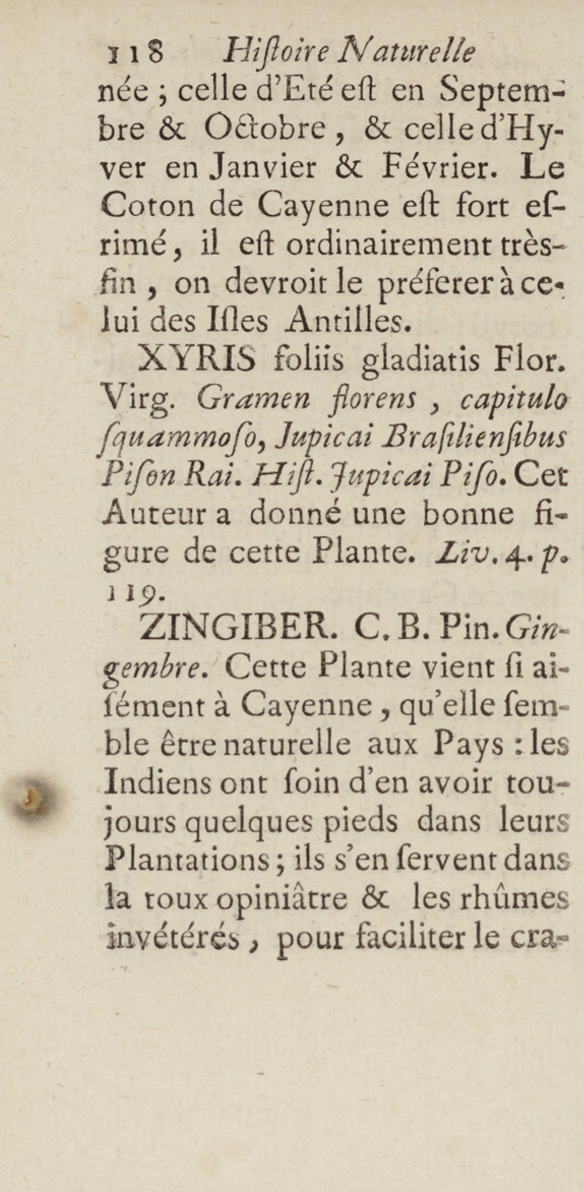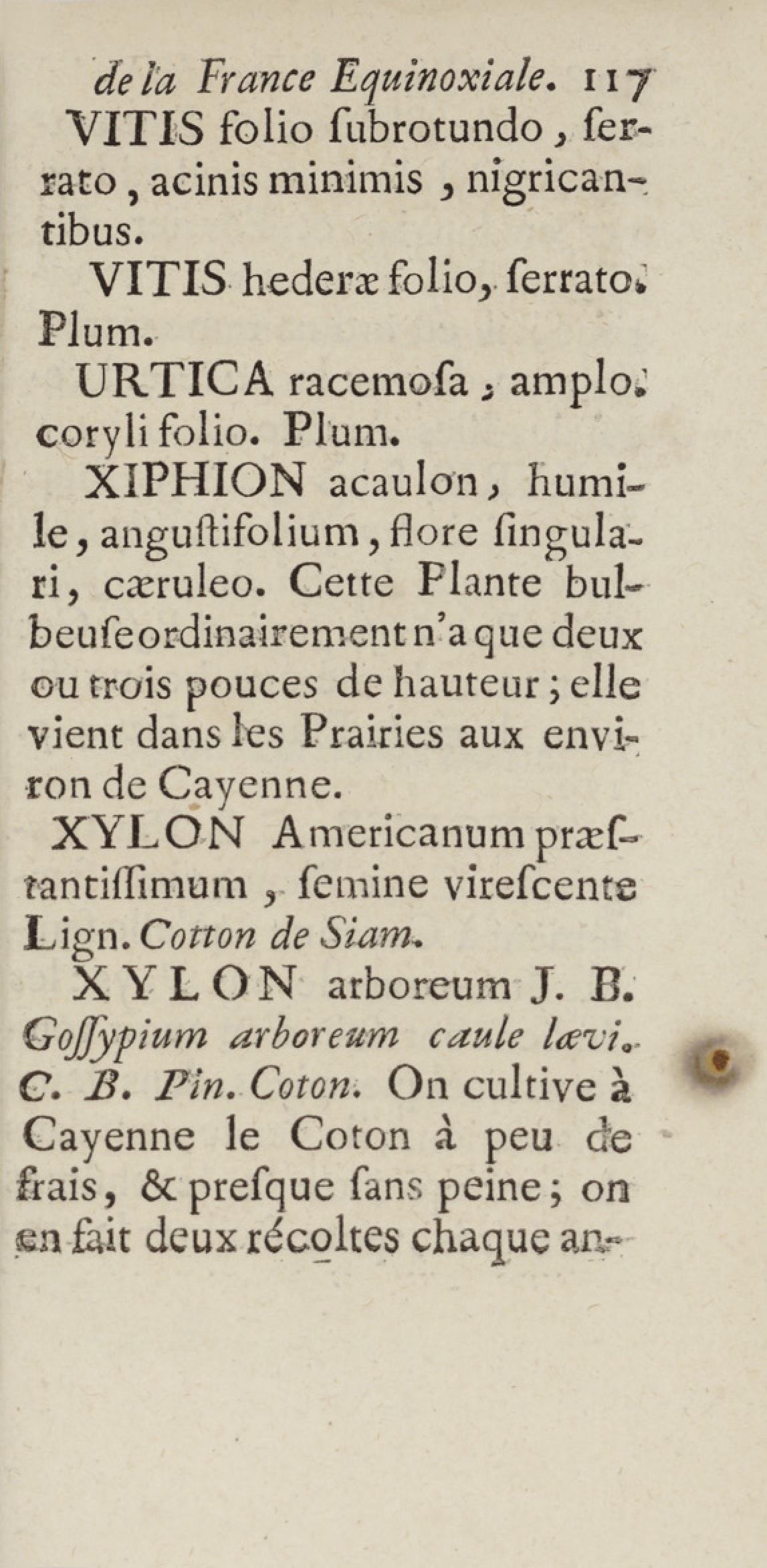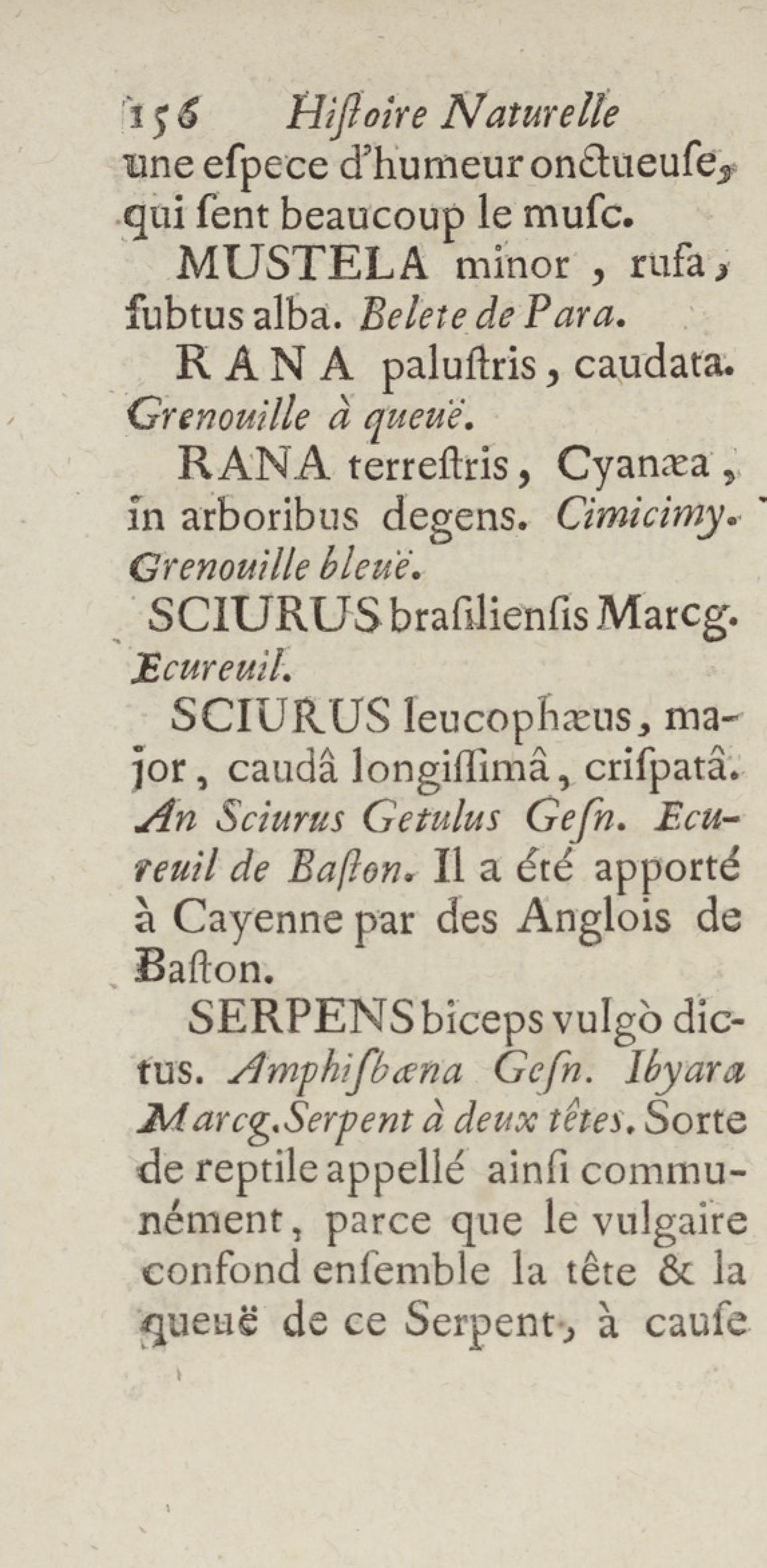 Essai sur l'histoire naturelle de la France équinoxiale, ou Dénombrement des plantes, des animaux, & des minéraux, qui se trouvent dans l'isle de Cayenne, les isles de Remire, sur les côtes de la mer, & dans le continent de la Guyane : avec leurs noms différens, latins, françois, et indiens, et quelques observations sur leur usage dans la médecine & dans les arts