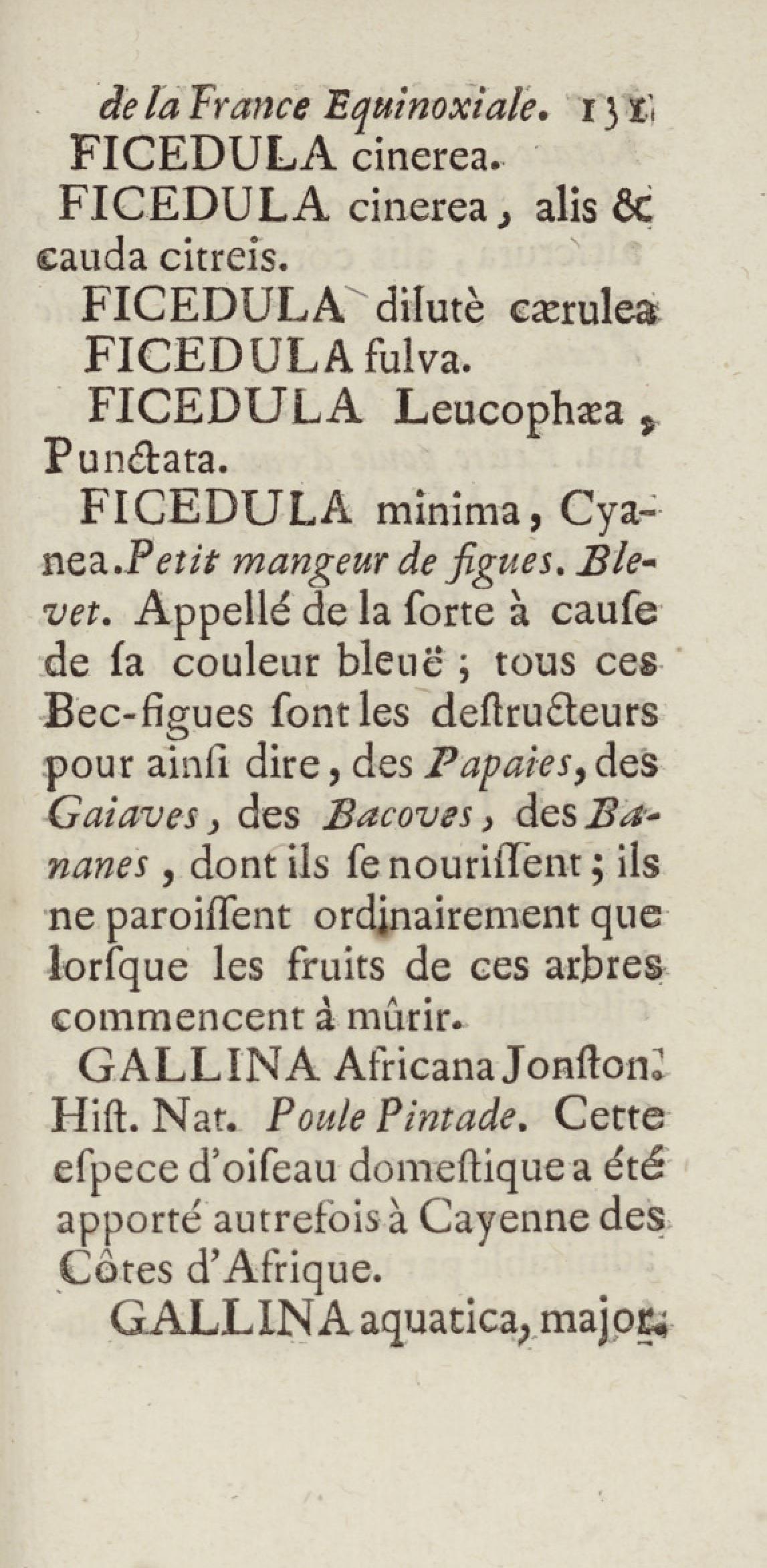 - Essai sur l'histoire naturelle de la France équinoxiale, ou Dénombrement des plantes, des animaux, & des minéraux, qui se trouvent dans l'isle de Cayenne, les isles de Remire, sur les côtes de la mer, & dans le continent de la Guyane : avec leurs noms différens, latins, françois, et indiens, et quelques observations sur leur usage dans la médecine & dans les arts
