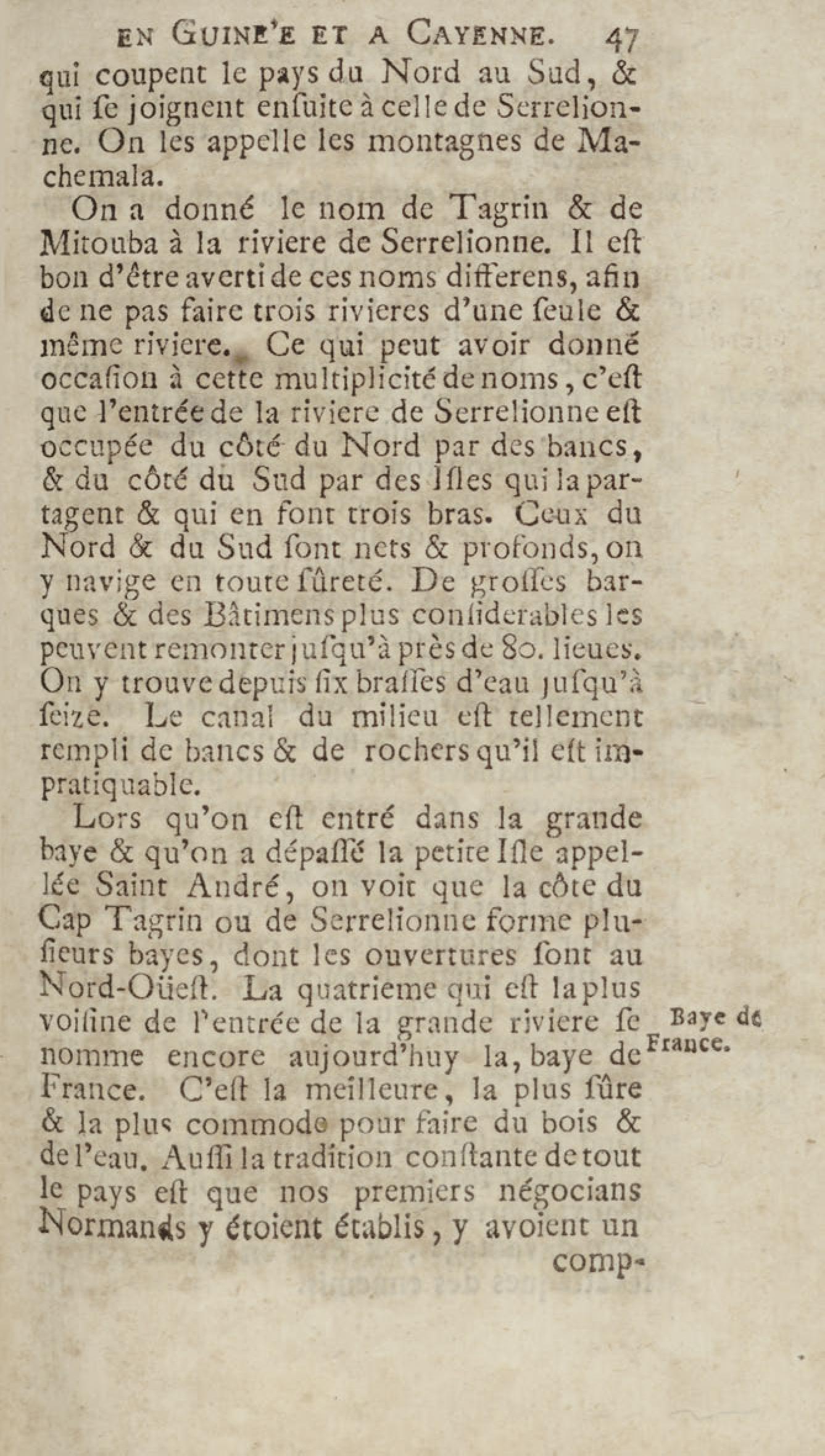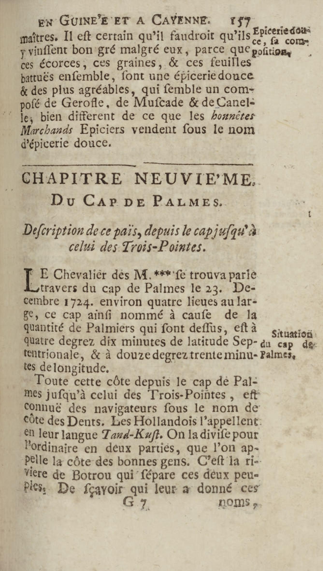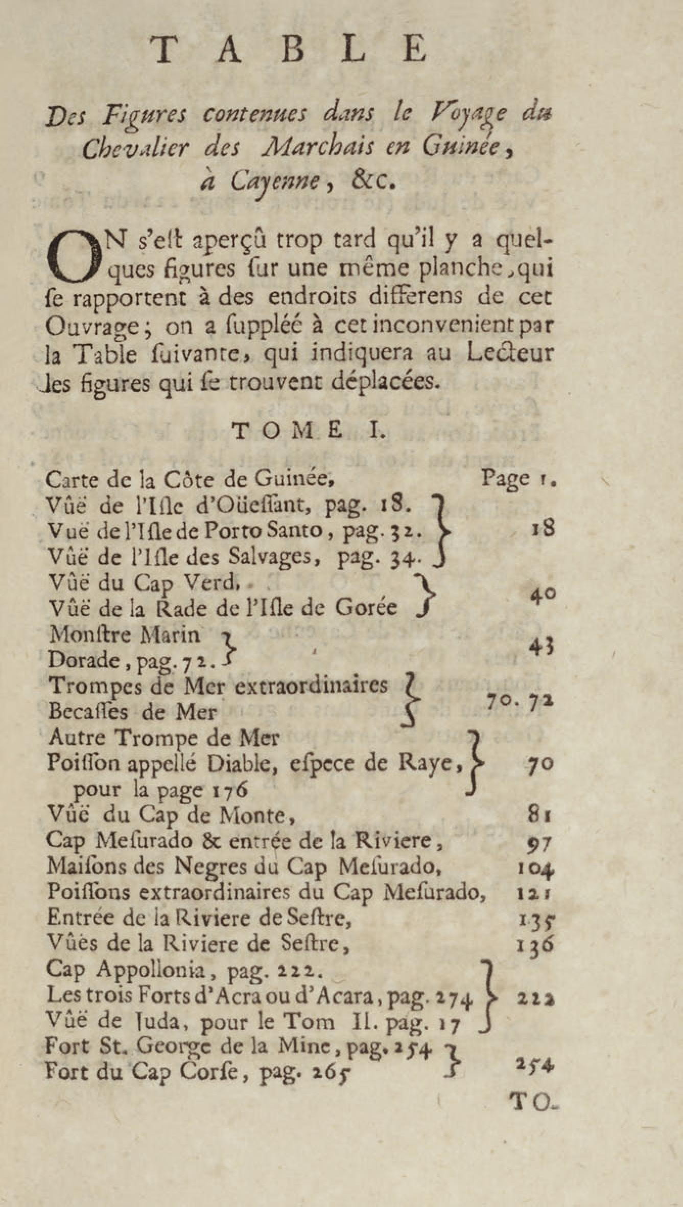 - Voyage du chevalier des Marchais en Guinée, isles voisines, et à Cayenne, fait en 1725, 1726 & 1727 : contenant une description très exacte & très étenduë de ces païs, & du commerce qui s'y fait : enrichi d'un grand nombre de cartes & de figures en tailles douces. Tome premier
