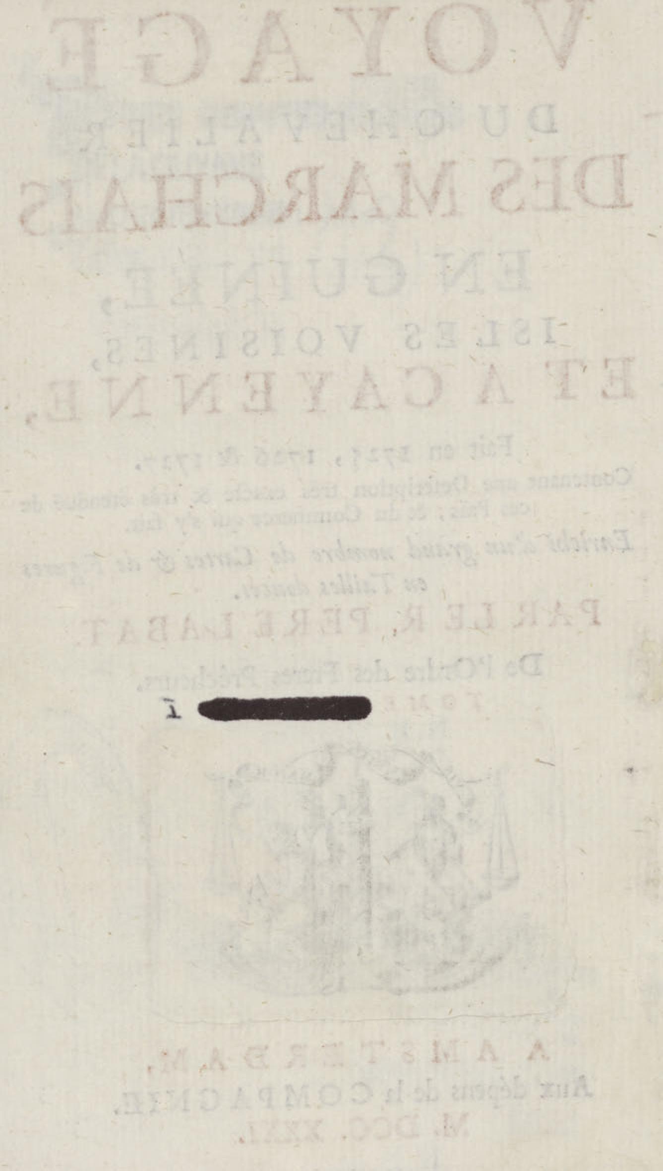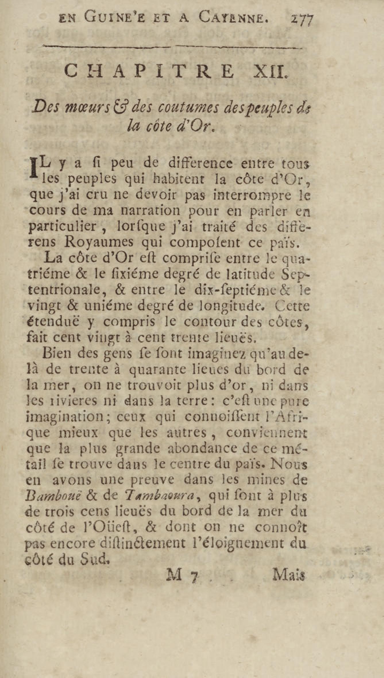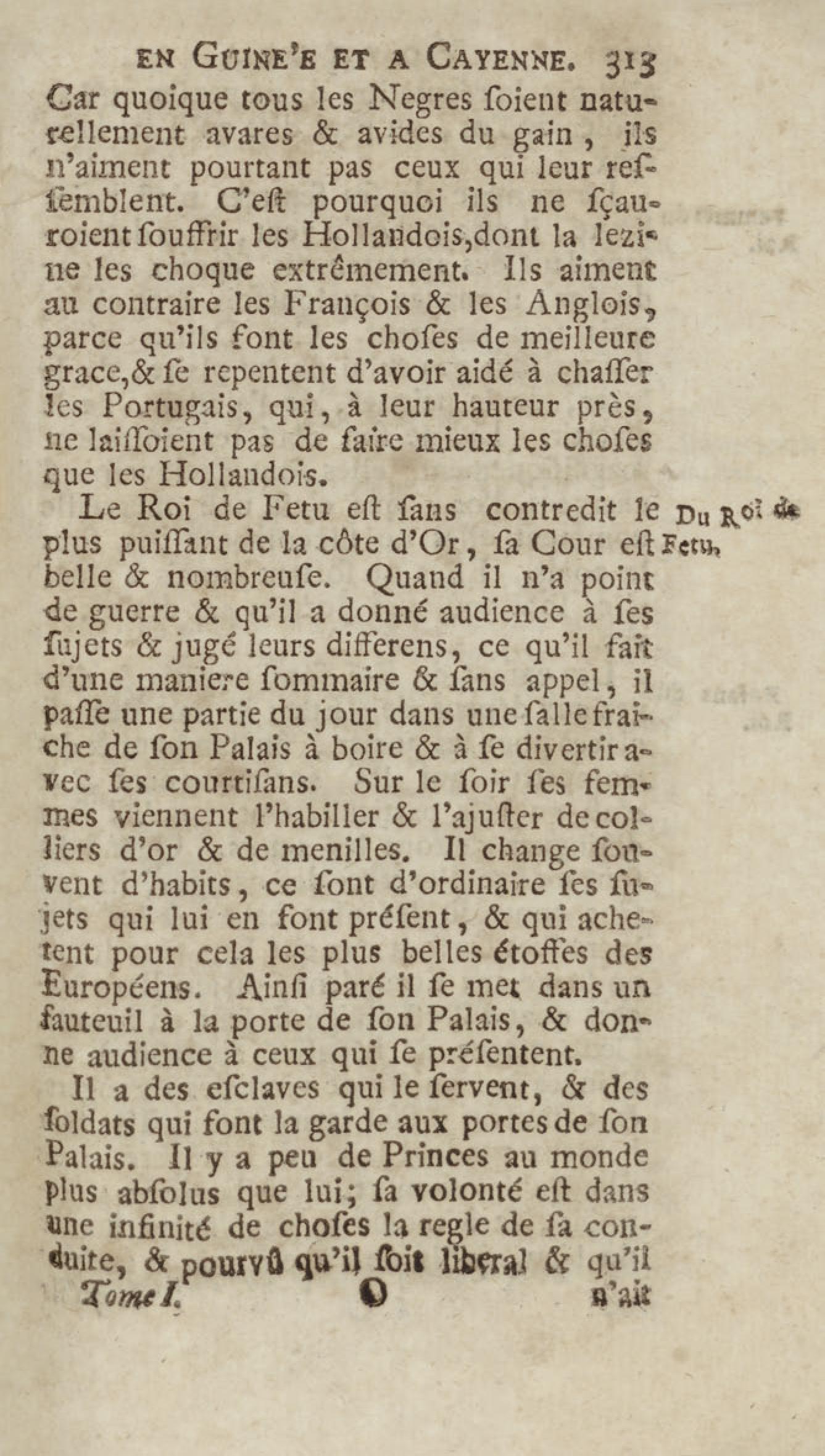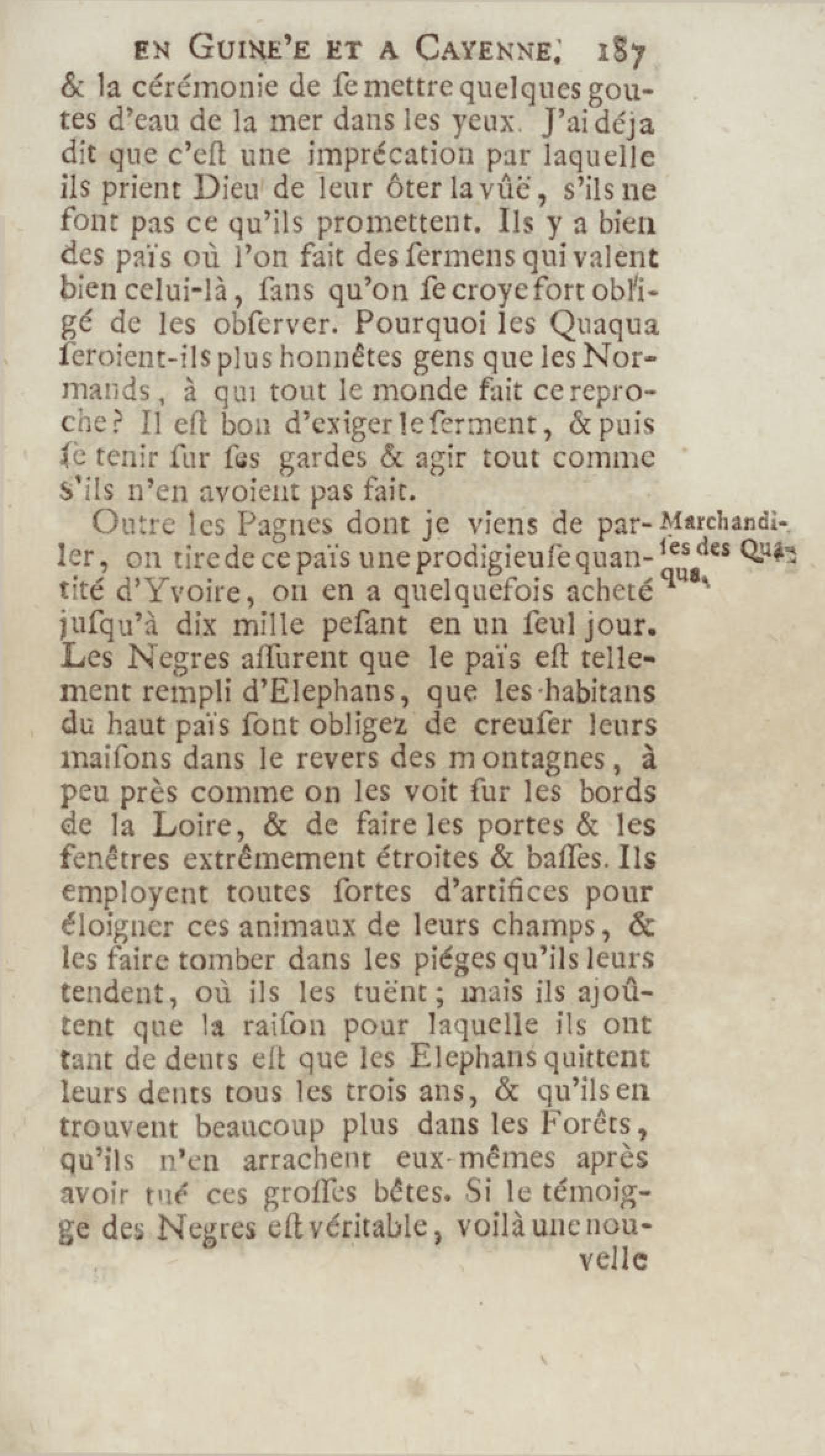 Voyage du chevalier des Marchais en Guinée, isles voisines, et à Cayenne, fait en 1725, 1726 & 1727 : contenant une description très exacte & très étenduë de ces païs, & du commerce qui s'y fait : enrichi d'un grand nombre de cartes & de figures en tailles douces. Tome premier