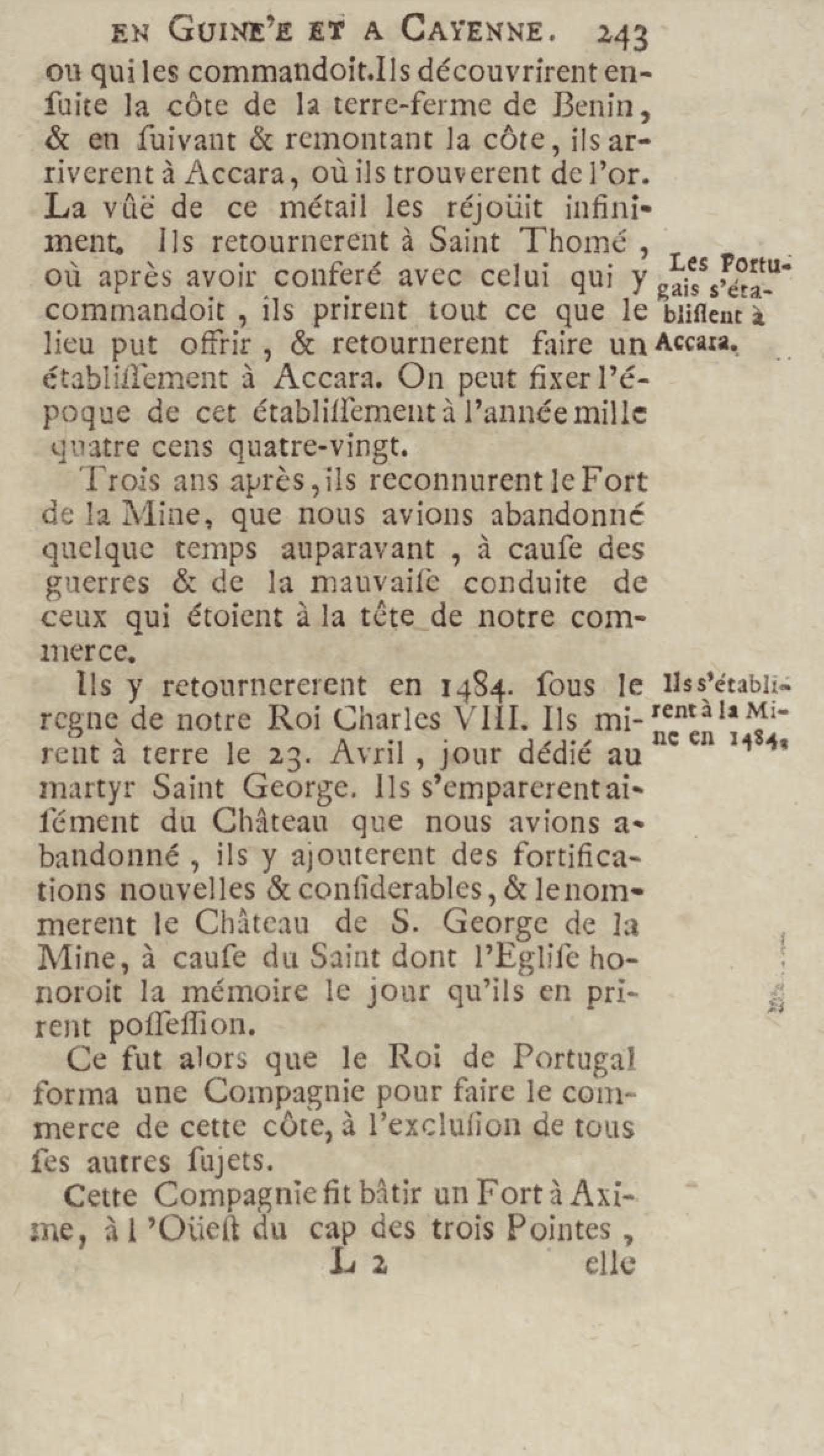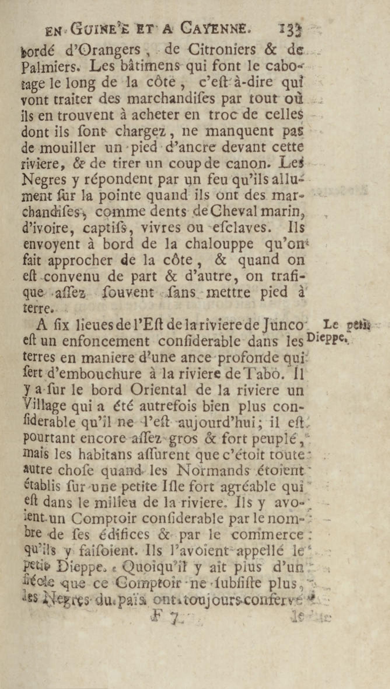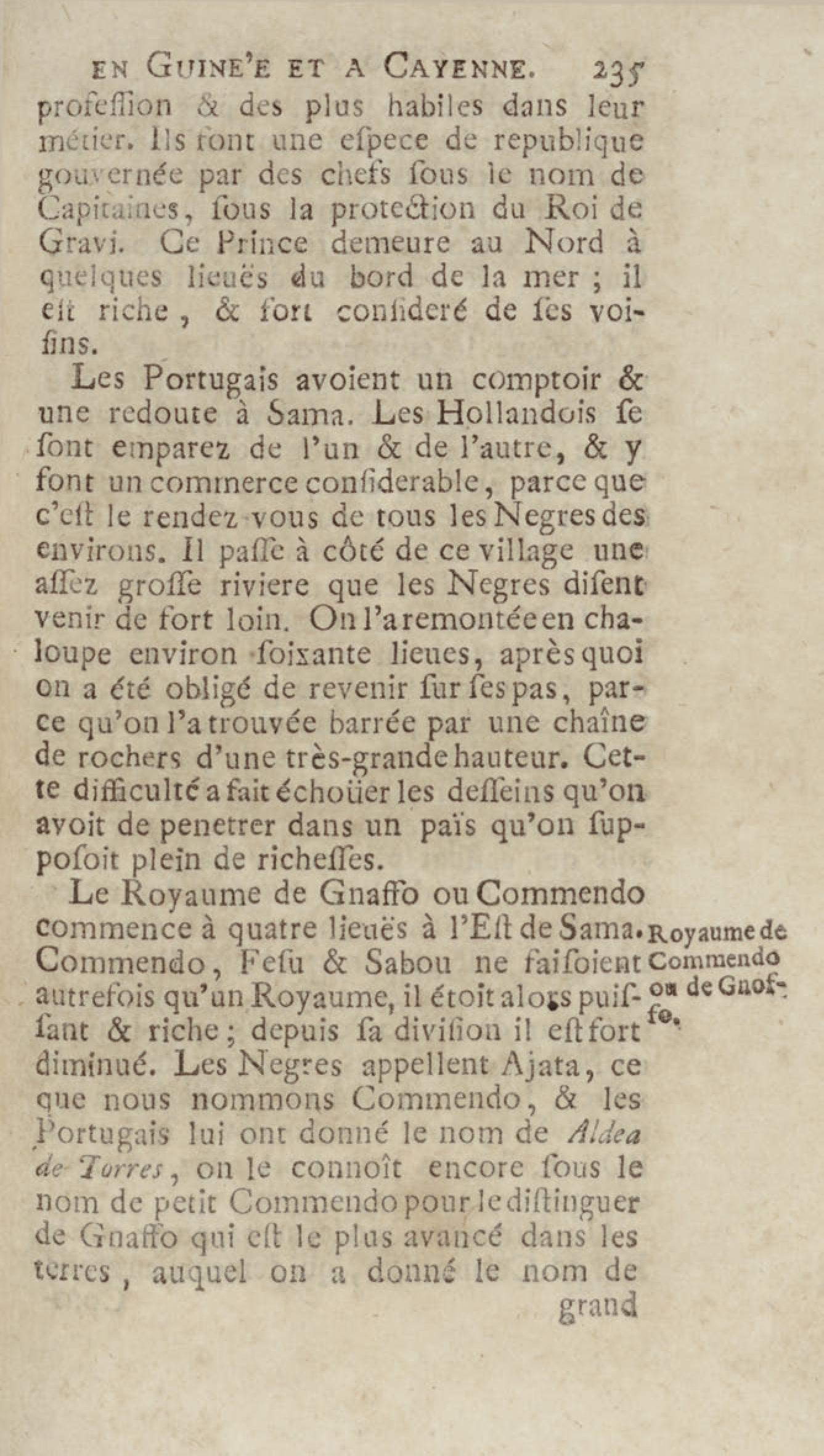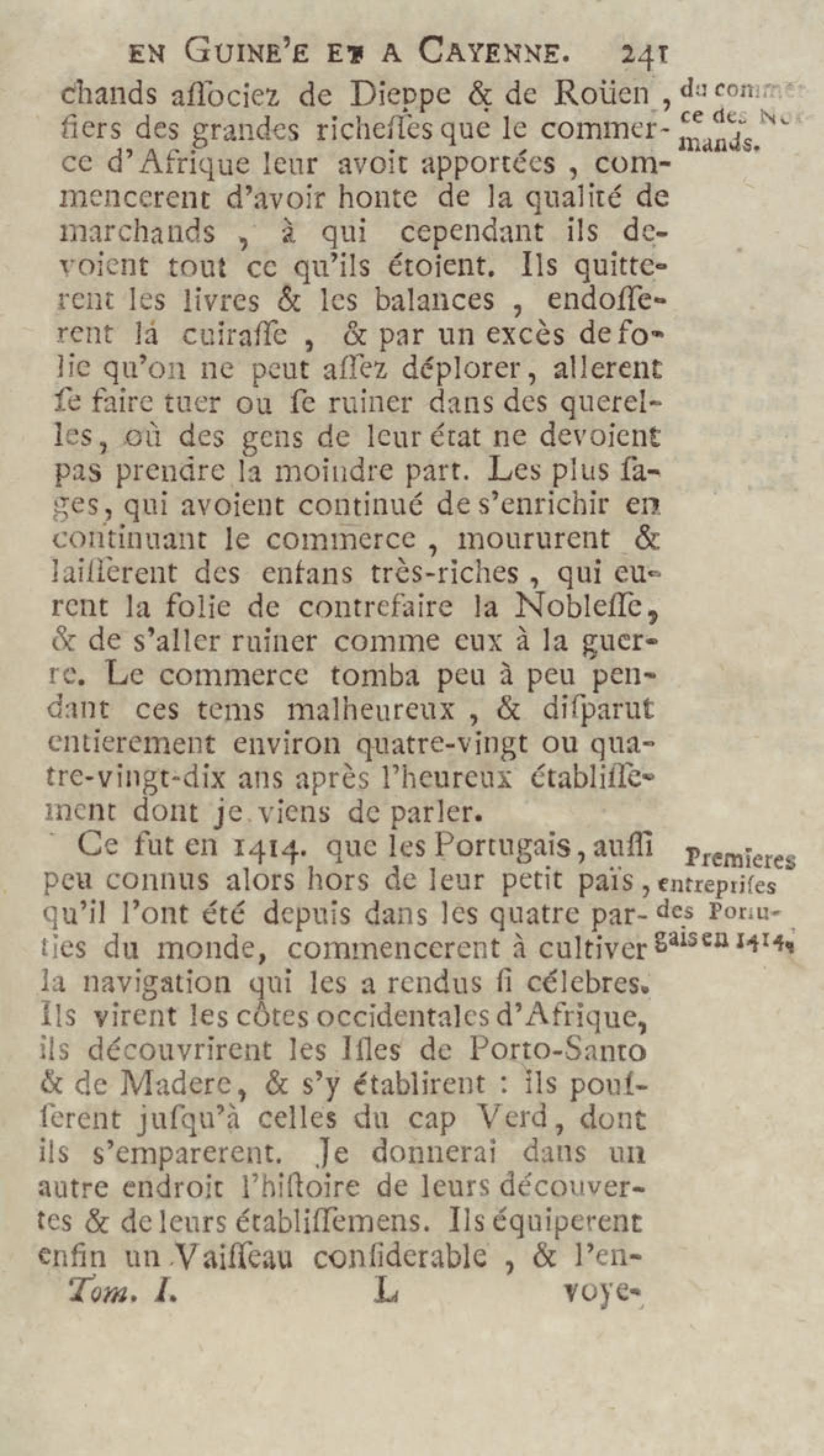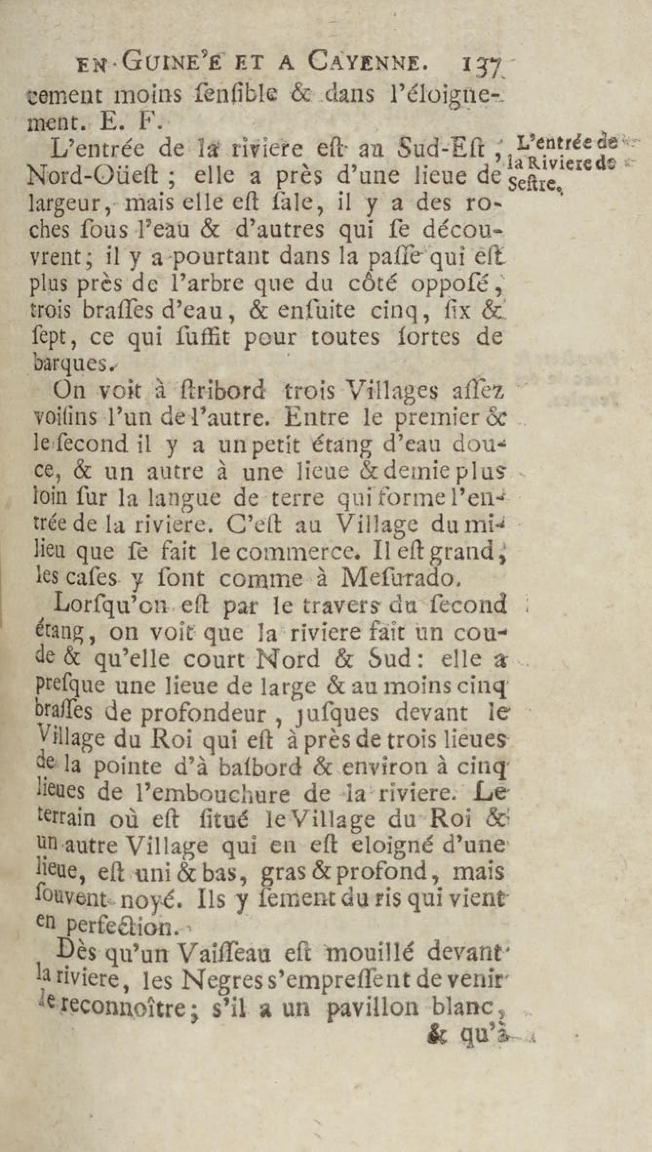 Voyage du chevalier des Marchais en Guinée, isles voisines, et à Cayenne, fait en 1725, 1726 & 1727 : contenant une description très exacte & très étenduë de ces païs, & du commerce qui s'y fait : enrichi d'un grand nombre de cartes & de figures en tailles douces. Tome premier