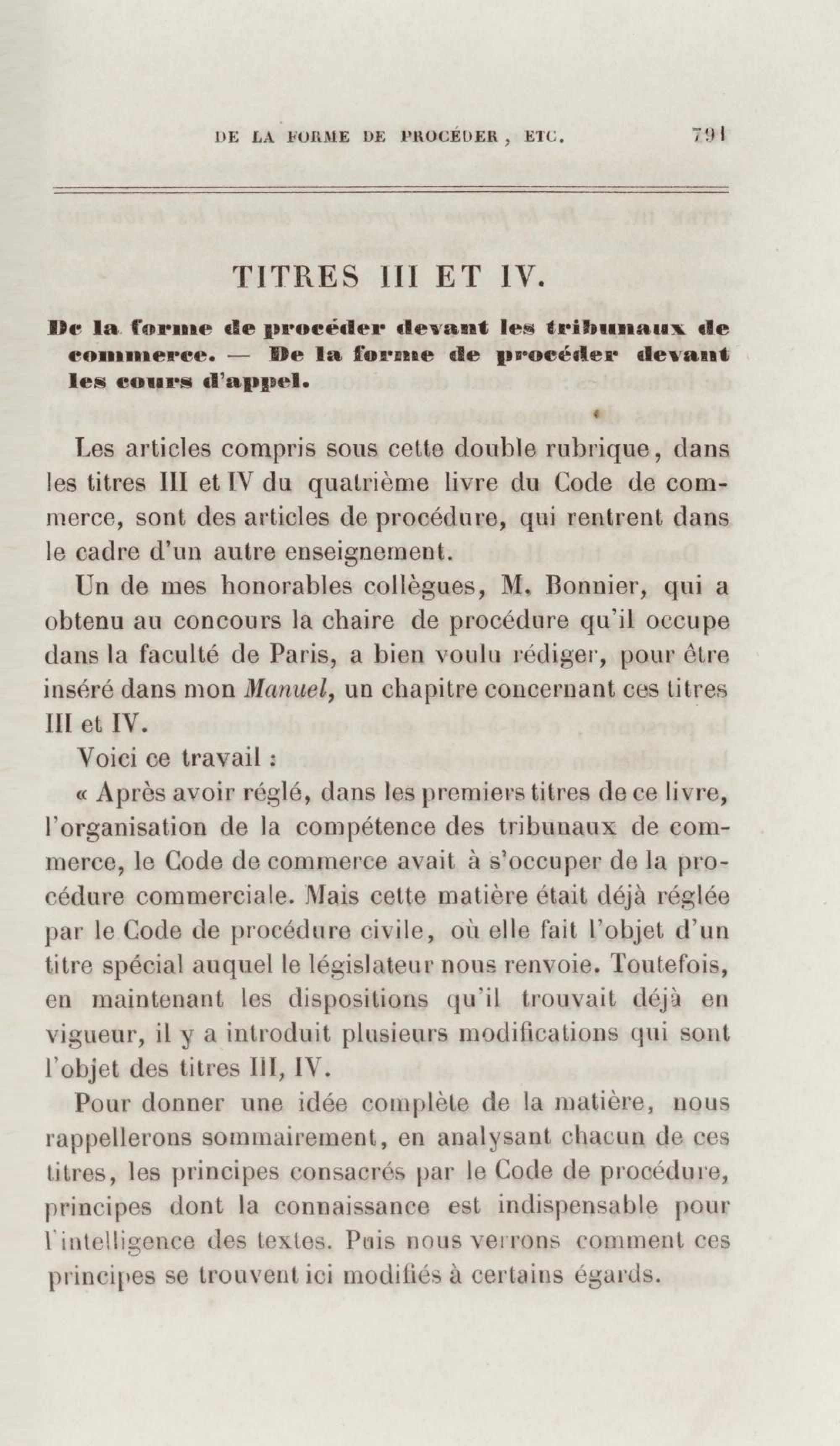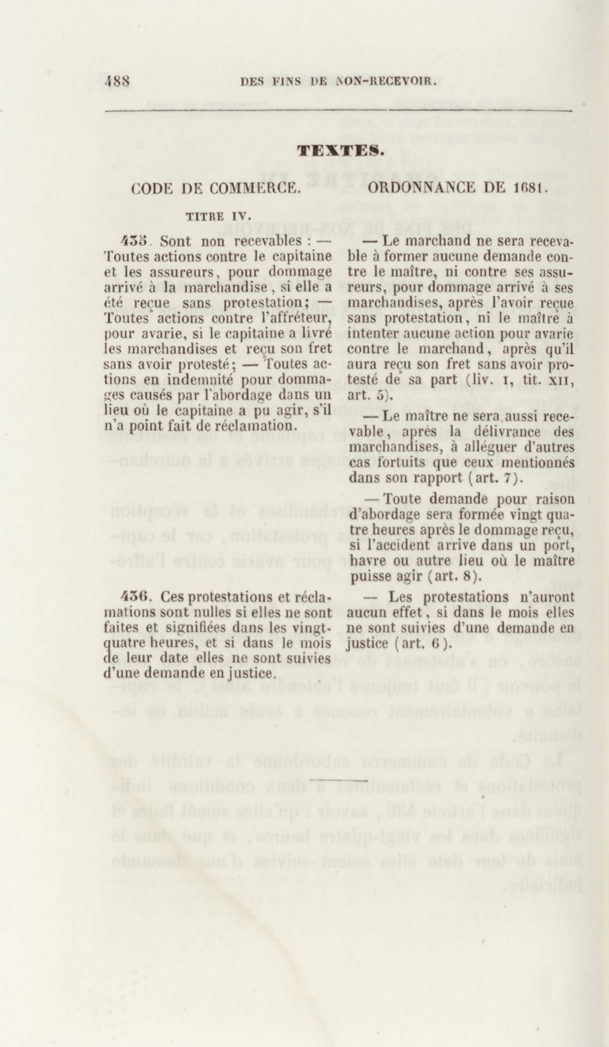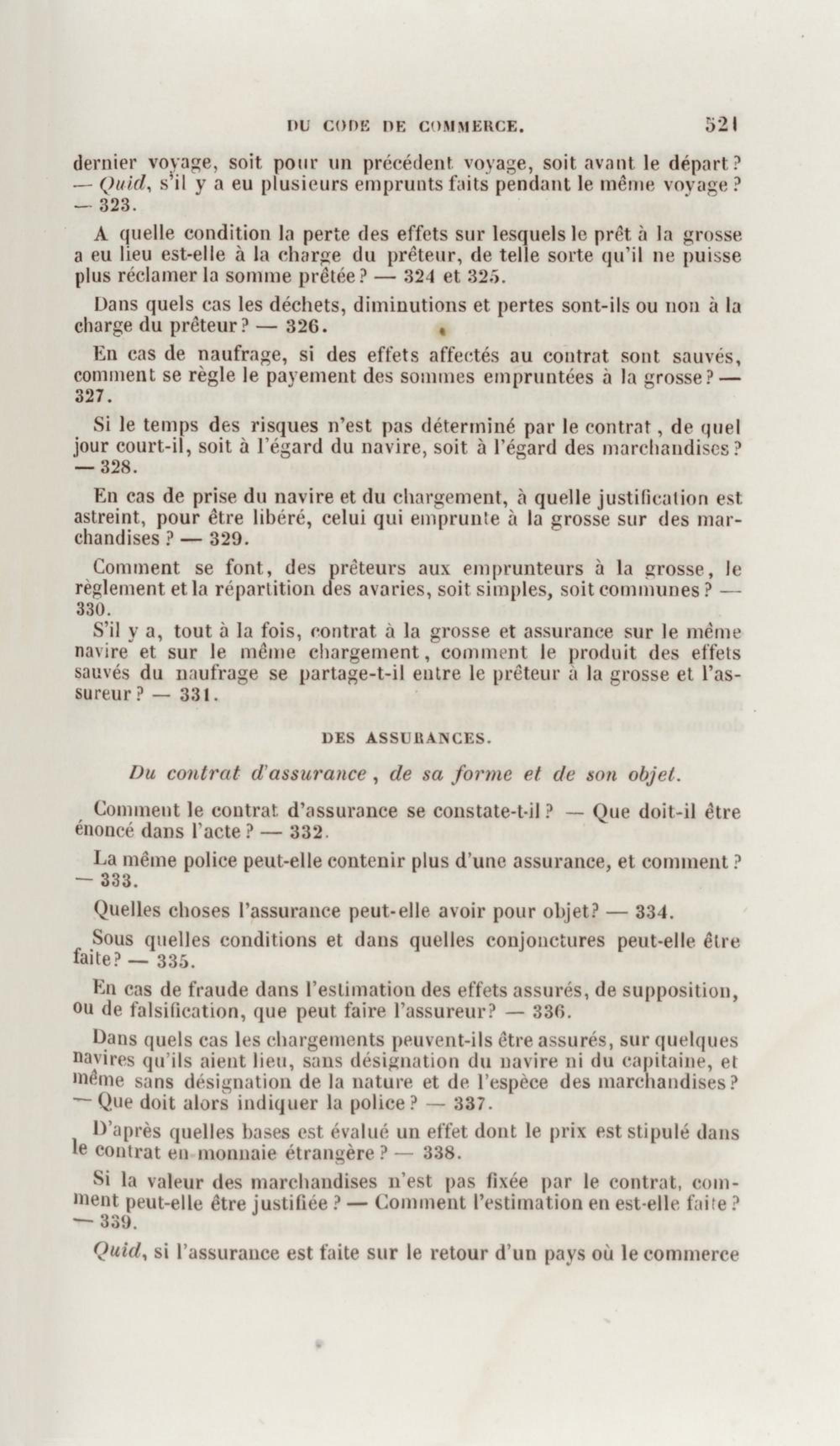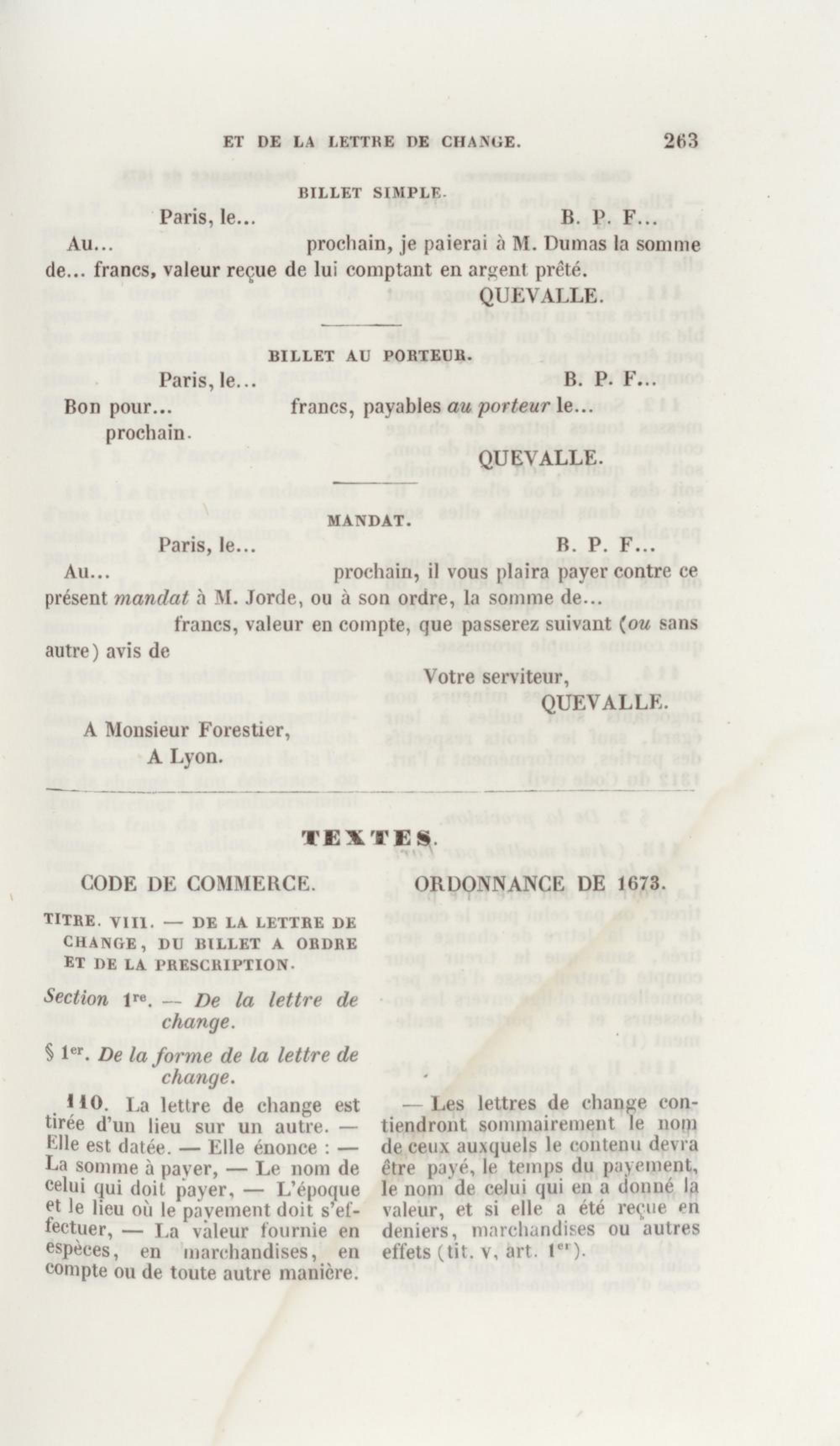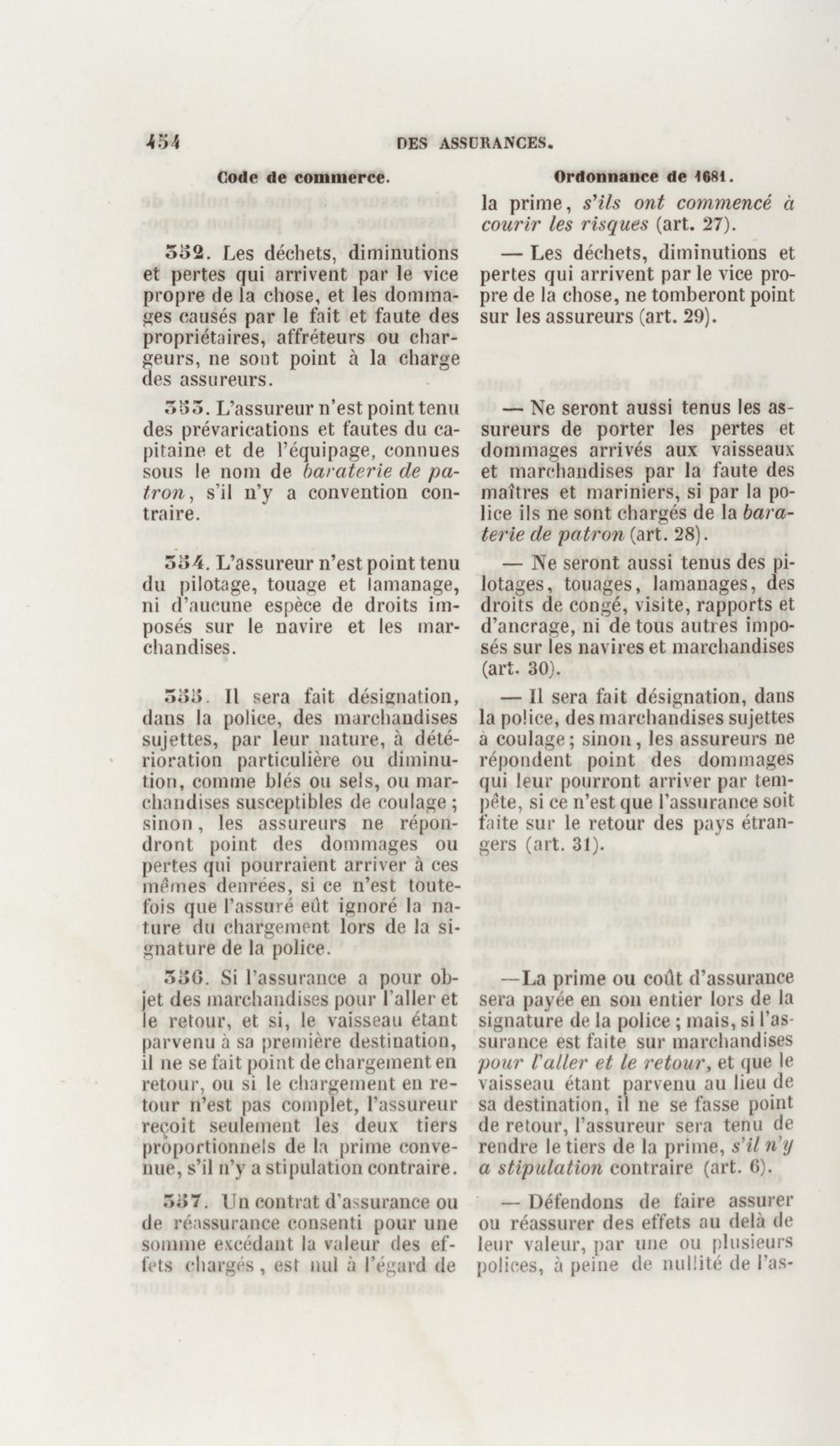 Manuel de droit commercial : contenant un traité sur chaque livre du code de commerce, l'indication du dernier état de la jurisprudence, des formules pour tous les actes, une analyse de tous les articles de code réduits en questions, le texte des ordonnances de 1673 et 1681 et celui du code rapprochés et mis en regard