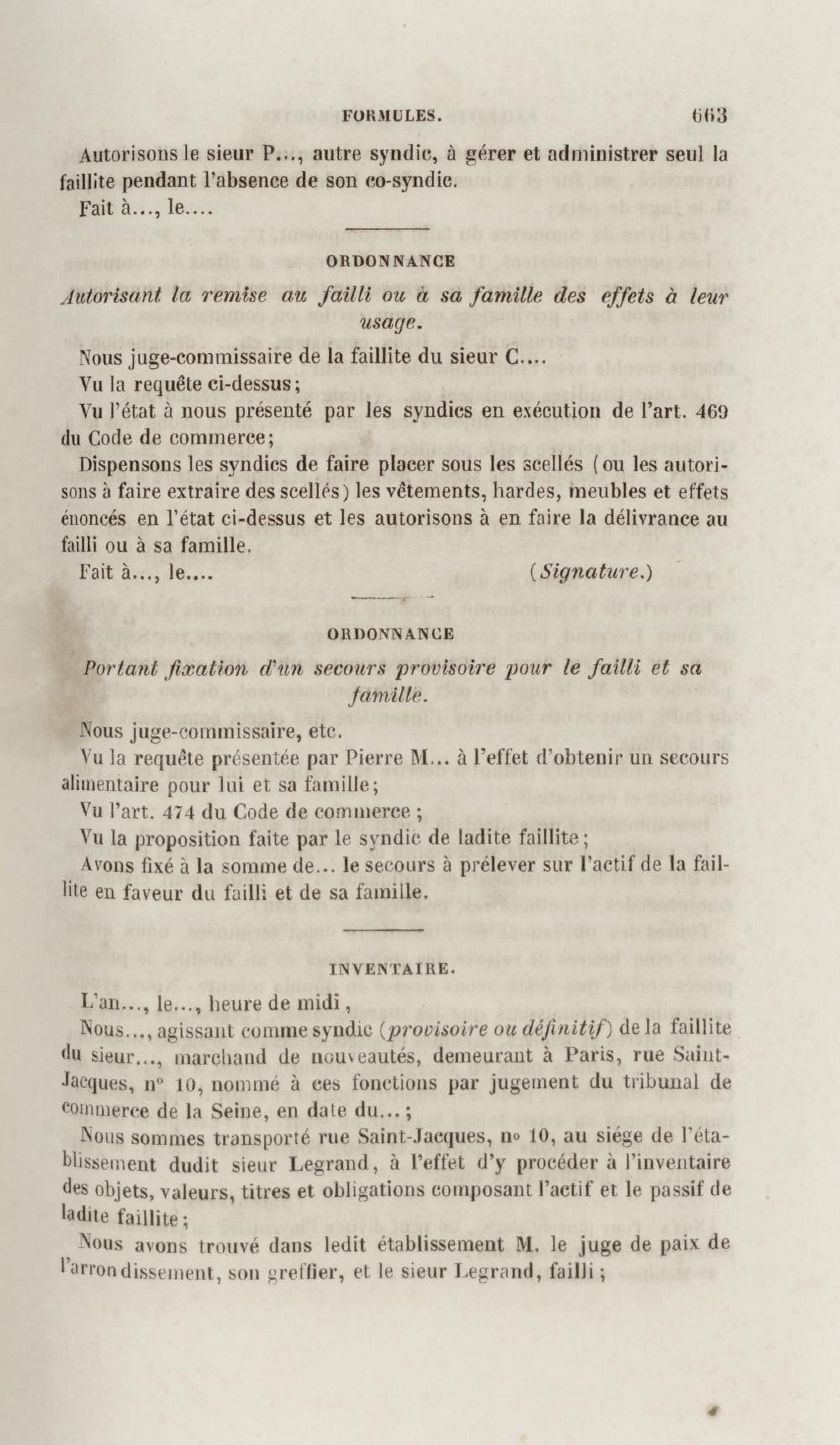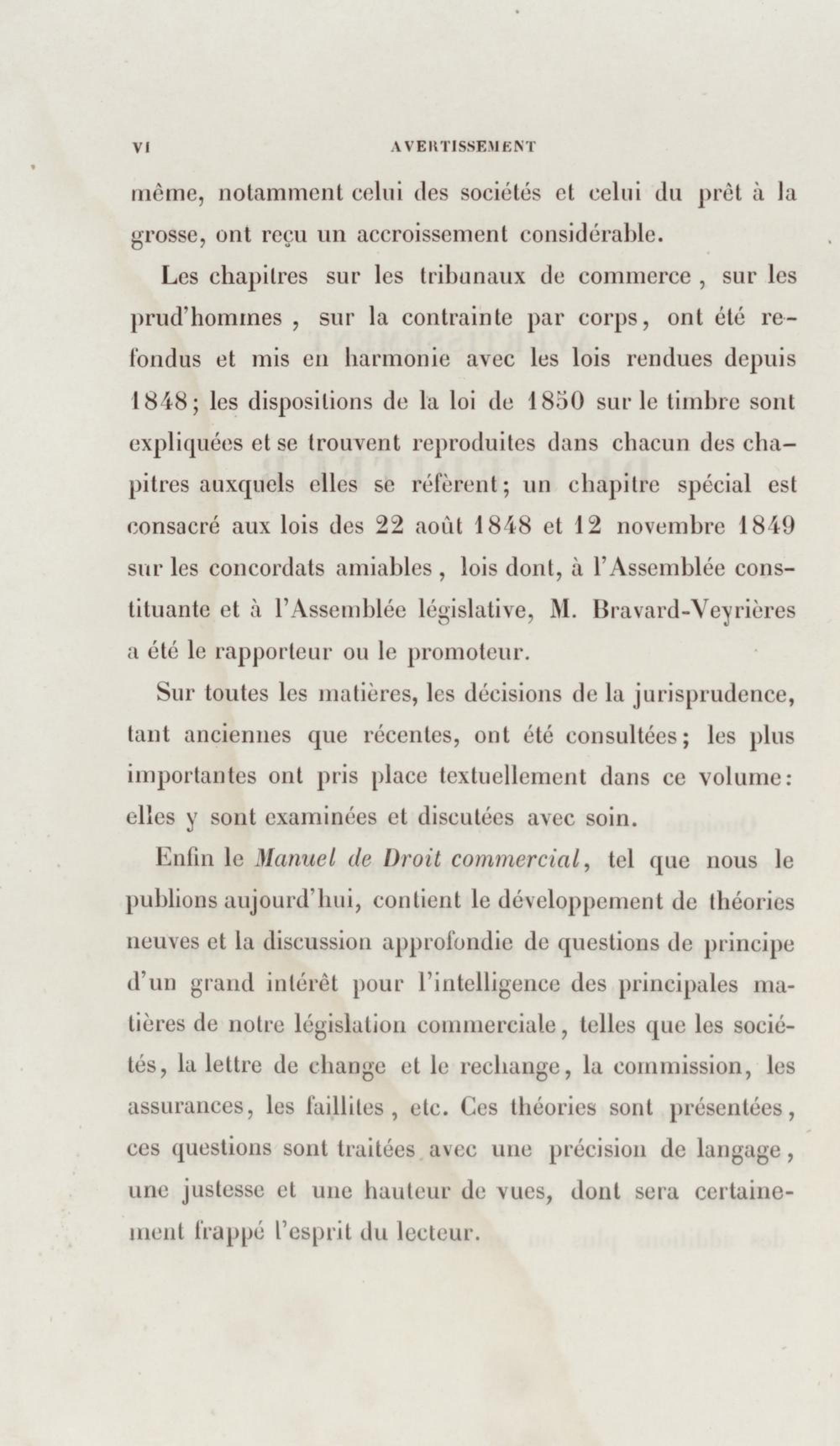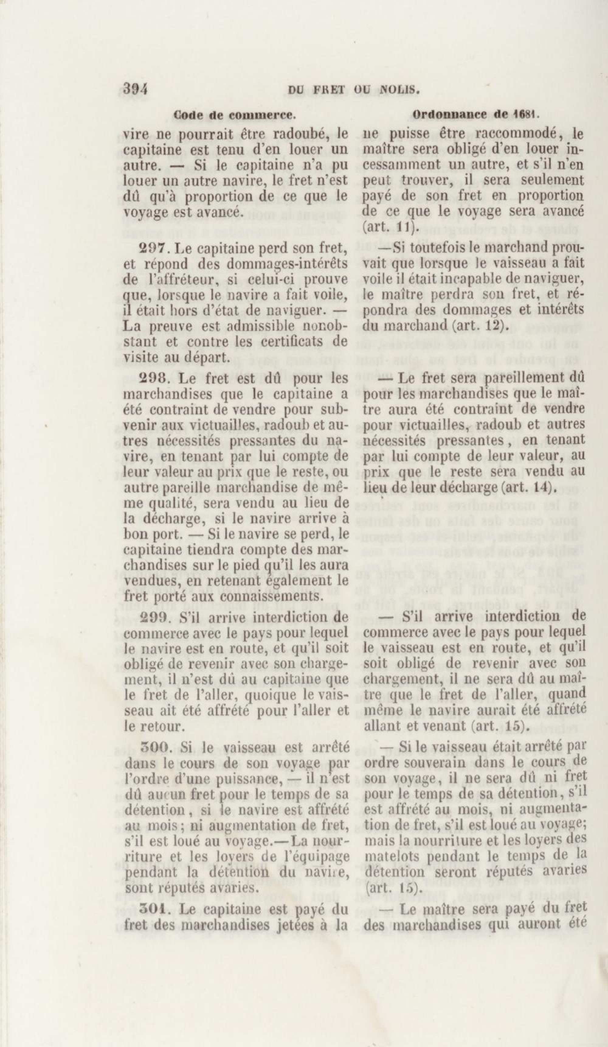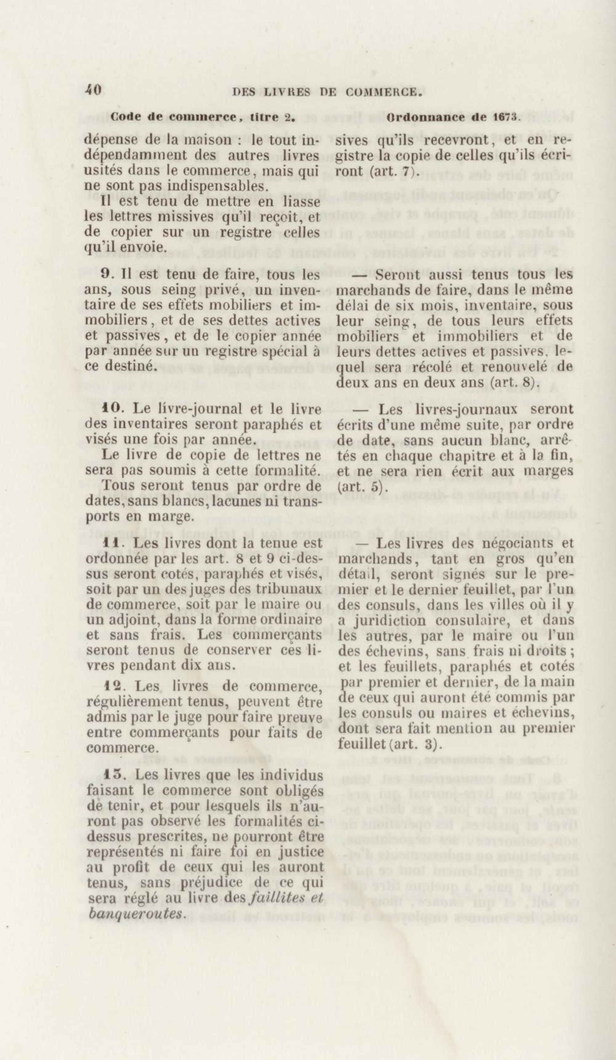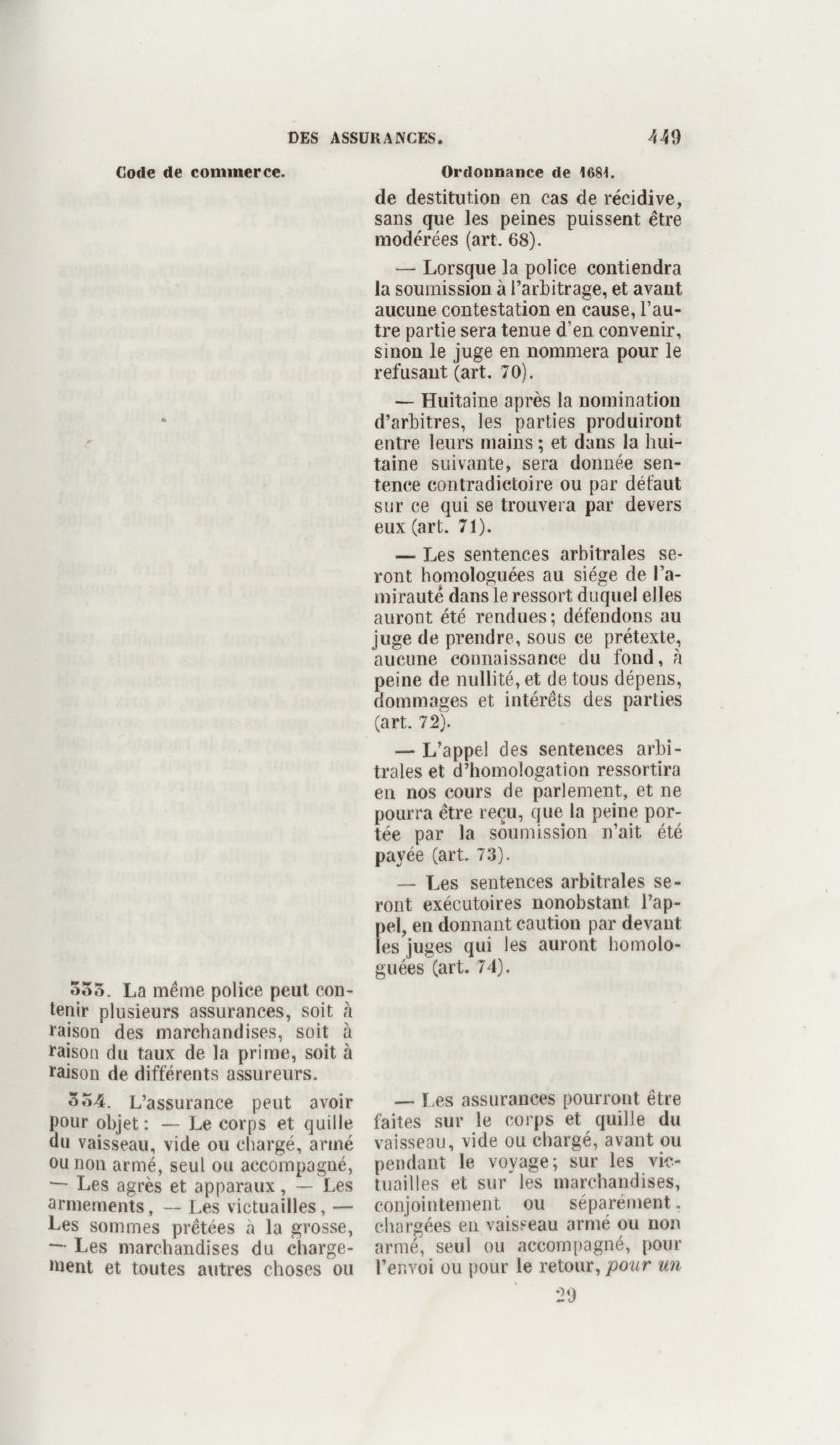 Manuel de droit commercial : contenant un traité sur chaque livre du code de commerce, l'indication du dernier état de la jurisprudence, des formules pour tous les actes, une analyse de tous les articles de code réduits en questions, le texte des ordonnances de 1673 et 1681 et celui du code rapprochés et mis en regard
