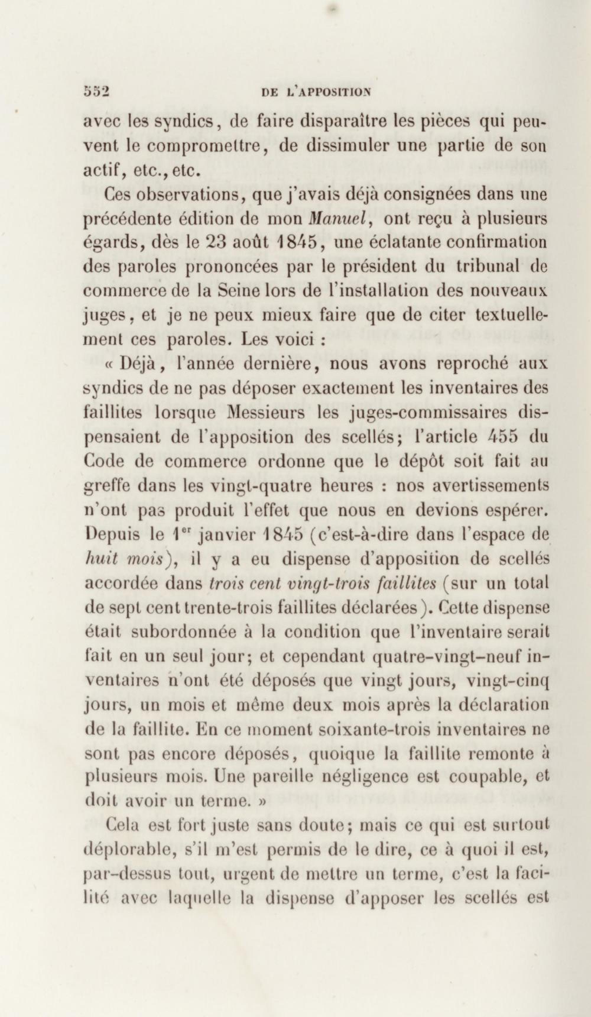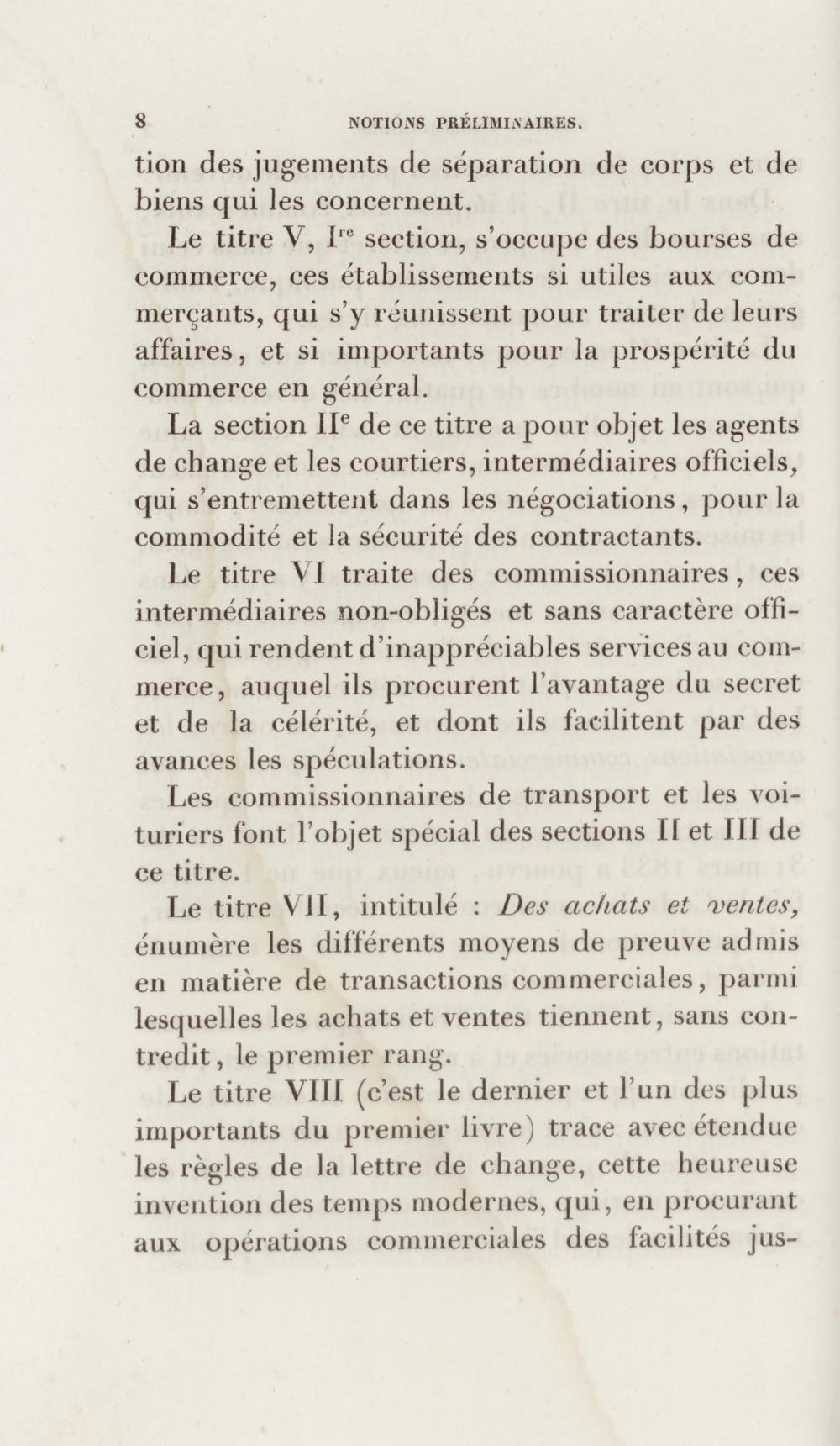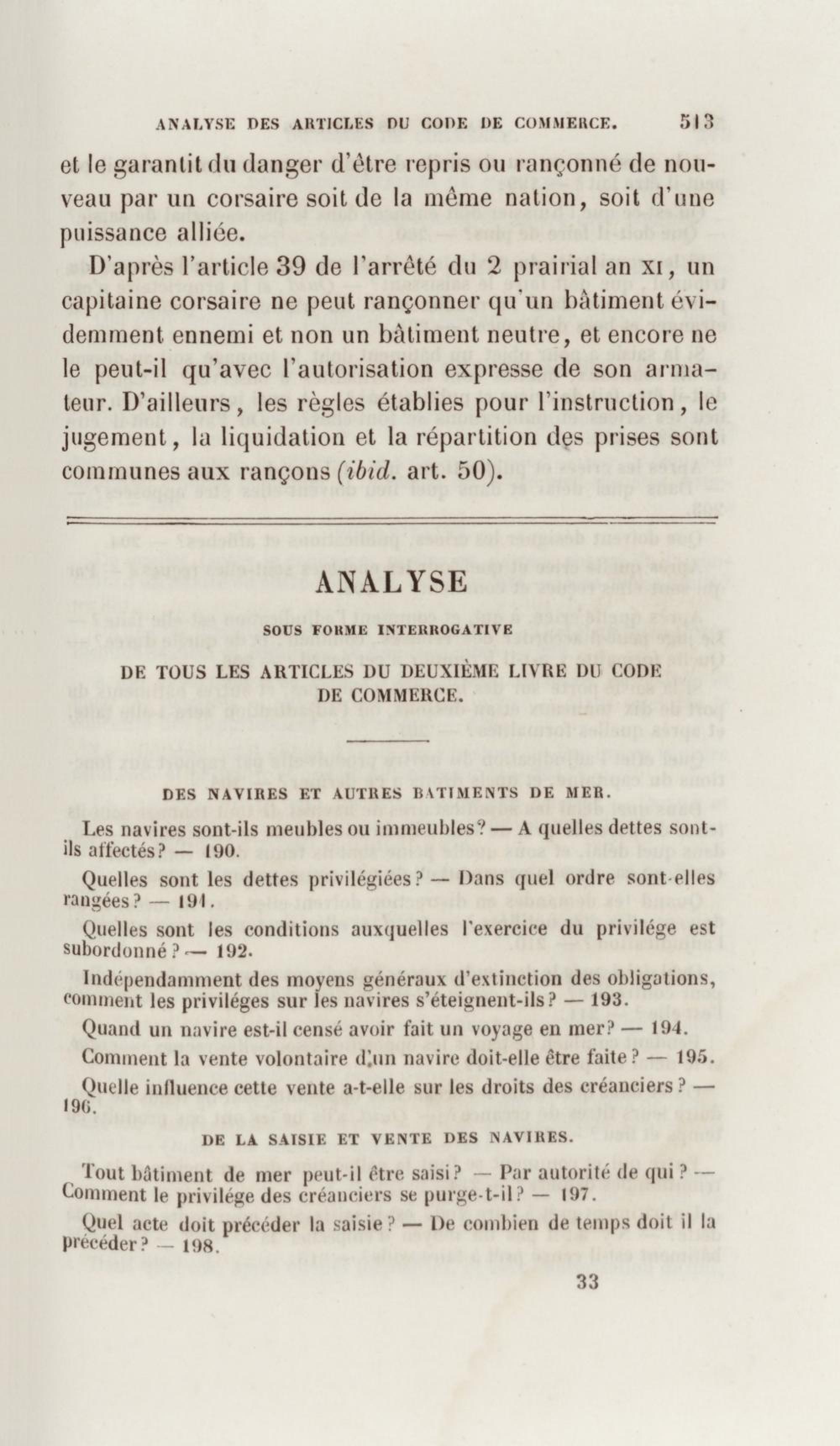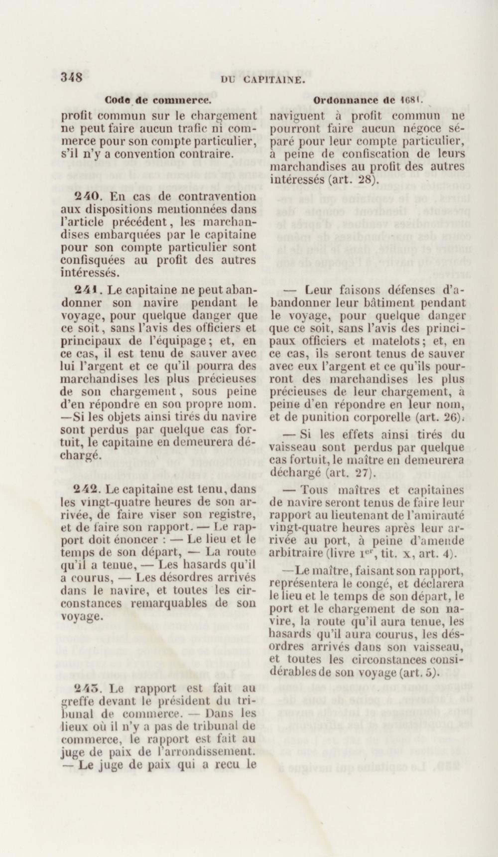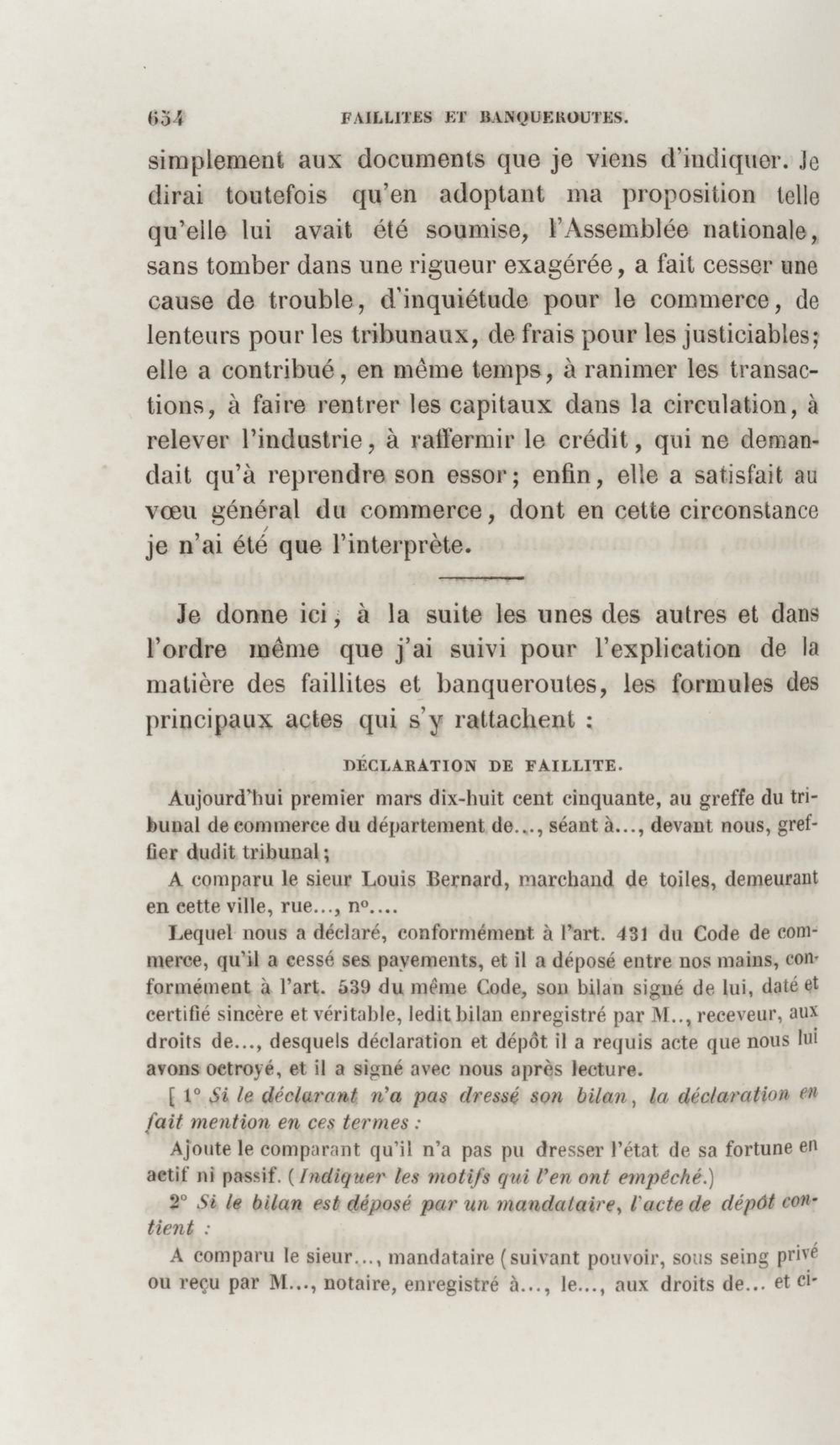 Manuel de droit commercial : contenant un traité sur chaque livre du code de commerce, l'indication du dernier état de la jurisprudence, des formules pour tous les actes, une analyse de tous les articles de code réduits en questions, le texte des ordonnances de 1673 et 1681 et celui du code rapprochés et mis en regard