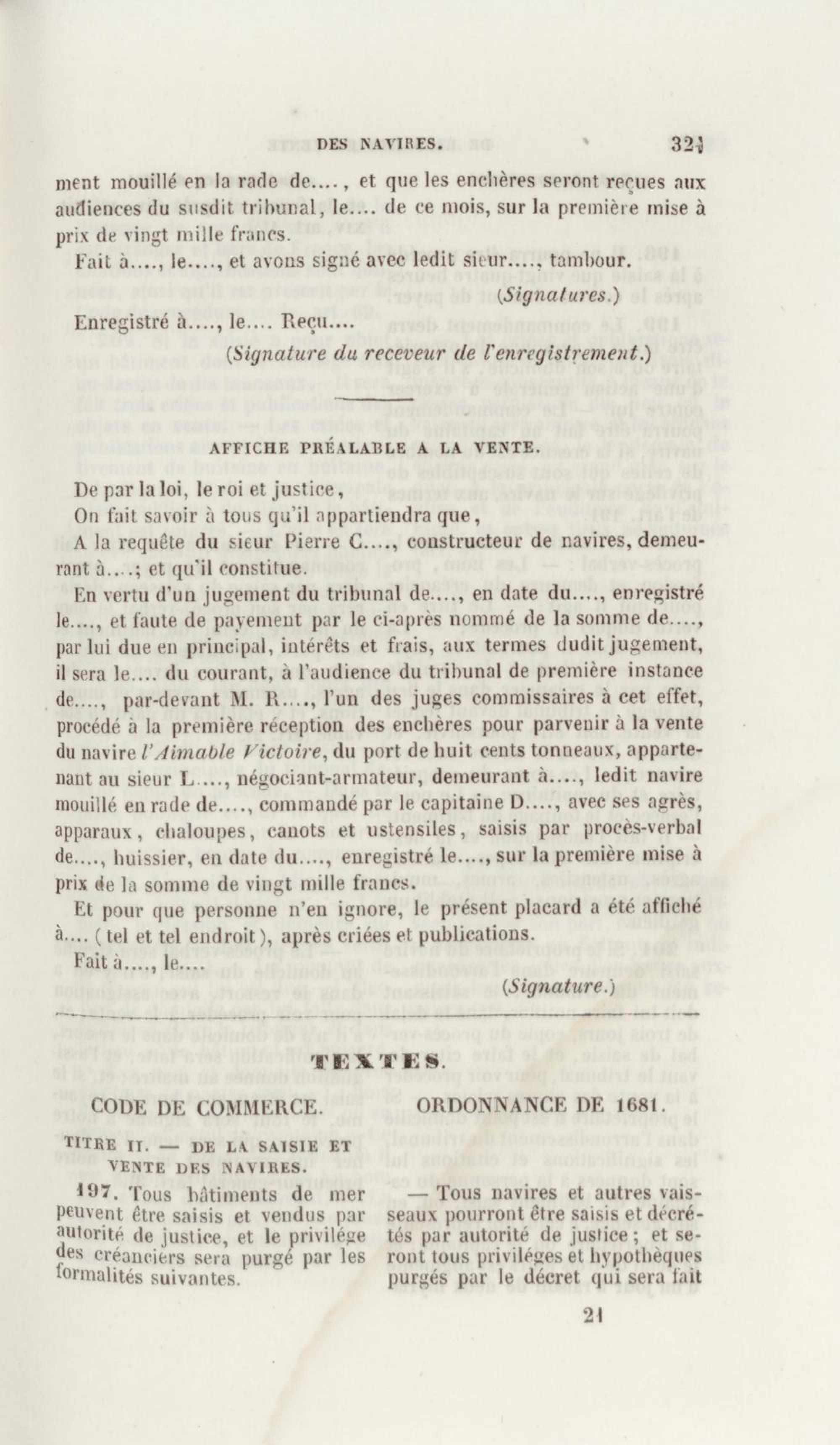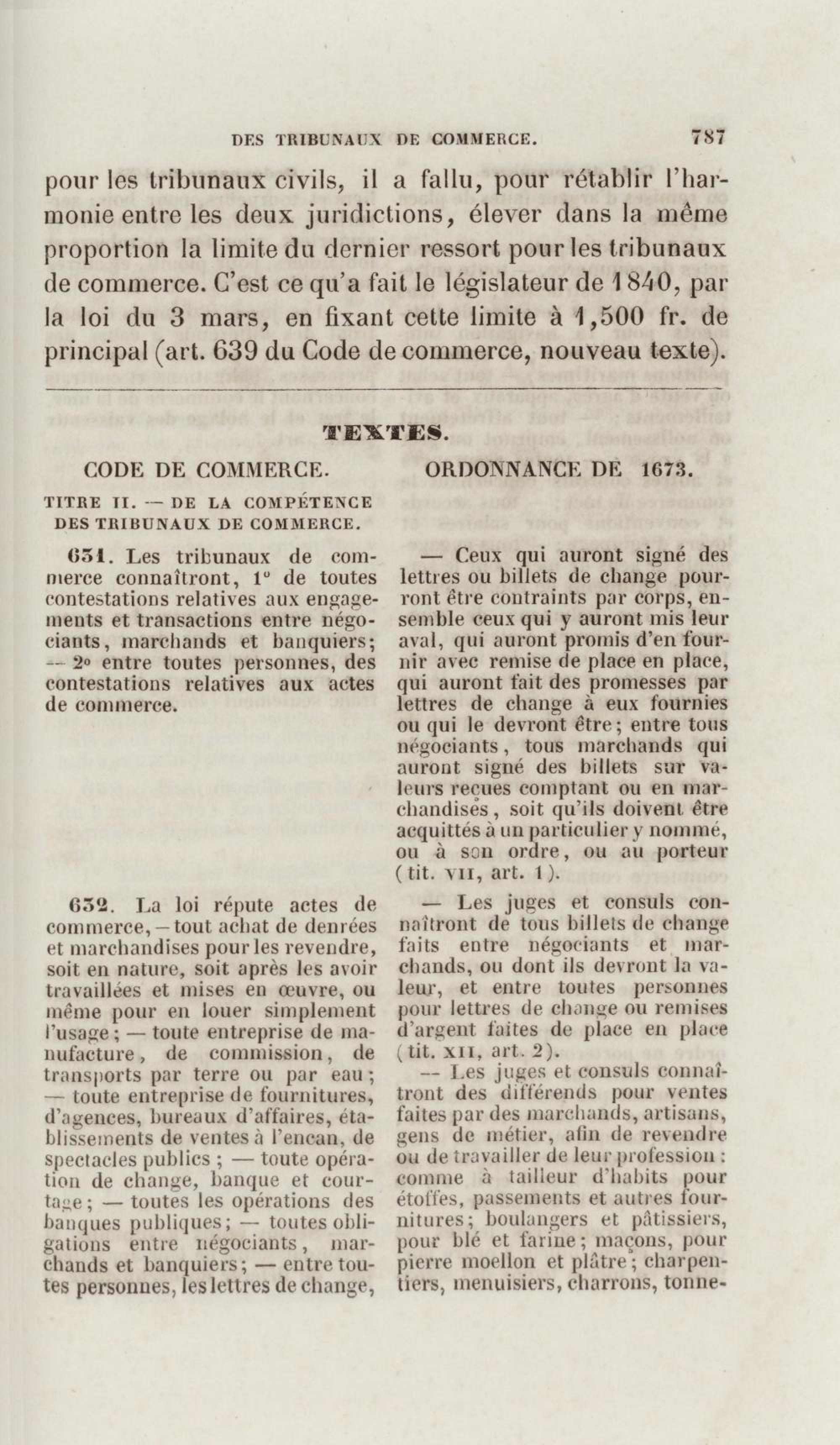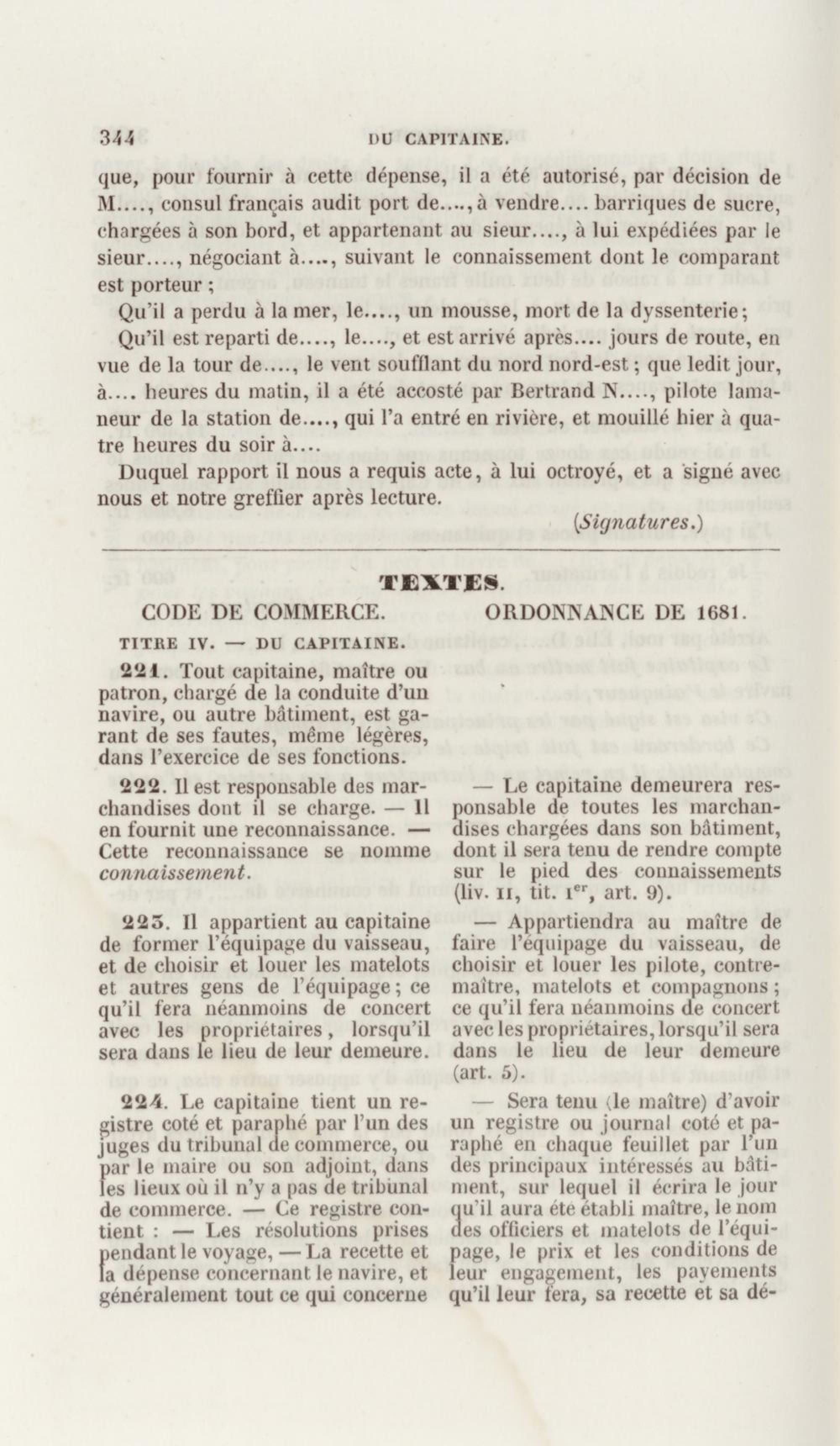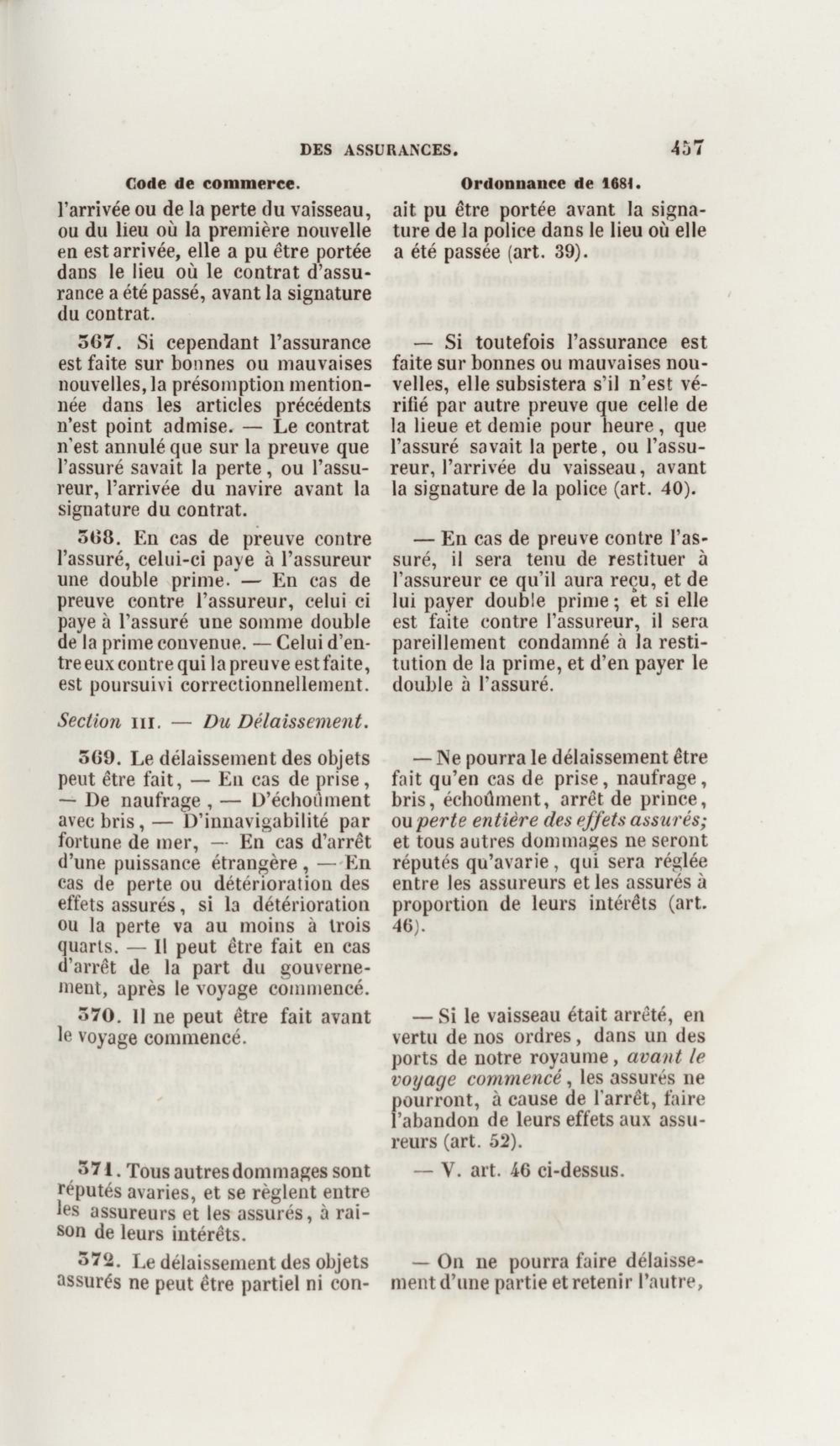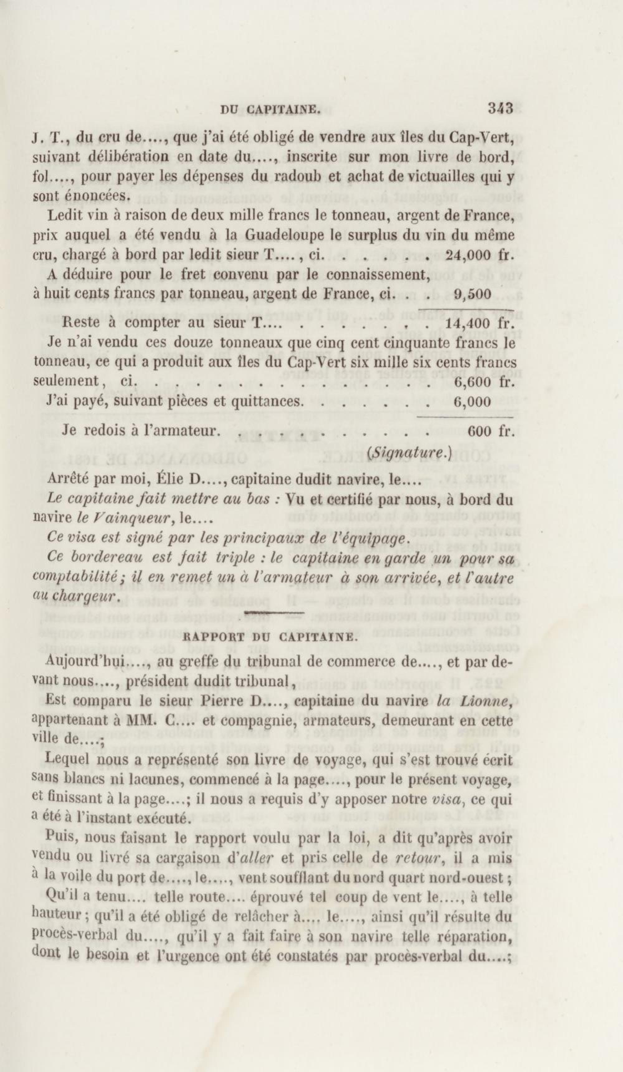 Manuel de droit commercial : contenant un traité sur chaque livre du code de commerce, l'indication du dernier état de la jurisprudence, des formules pour tous les actes, une analyse de tous les articles de code réduits en questions, le texte des ordonnances de 1673 et 1681 et celui du code rapprochés et mis en regard