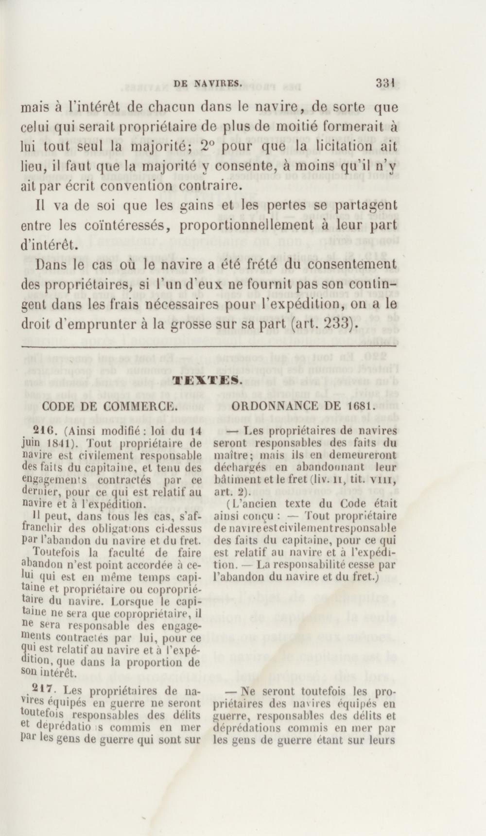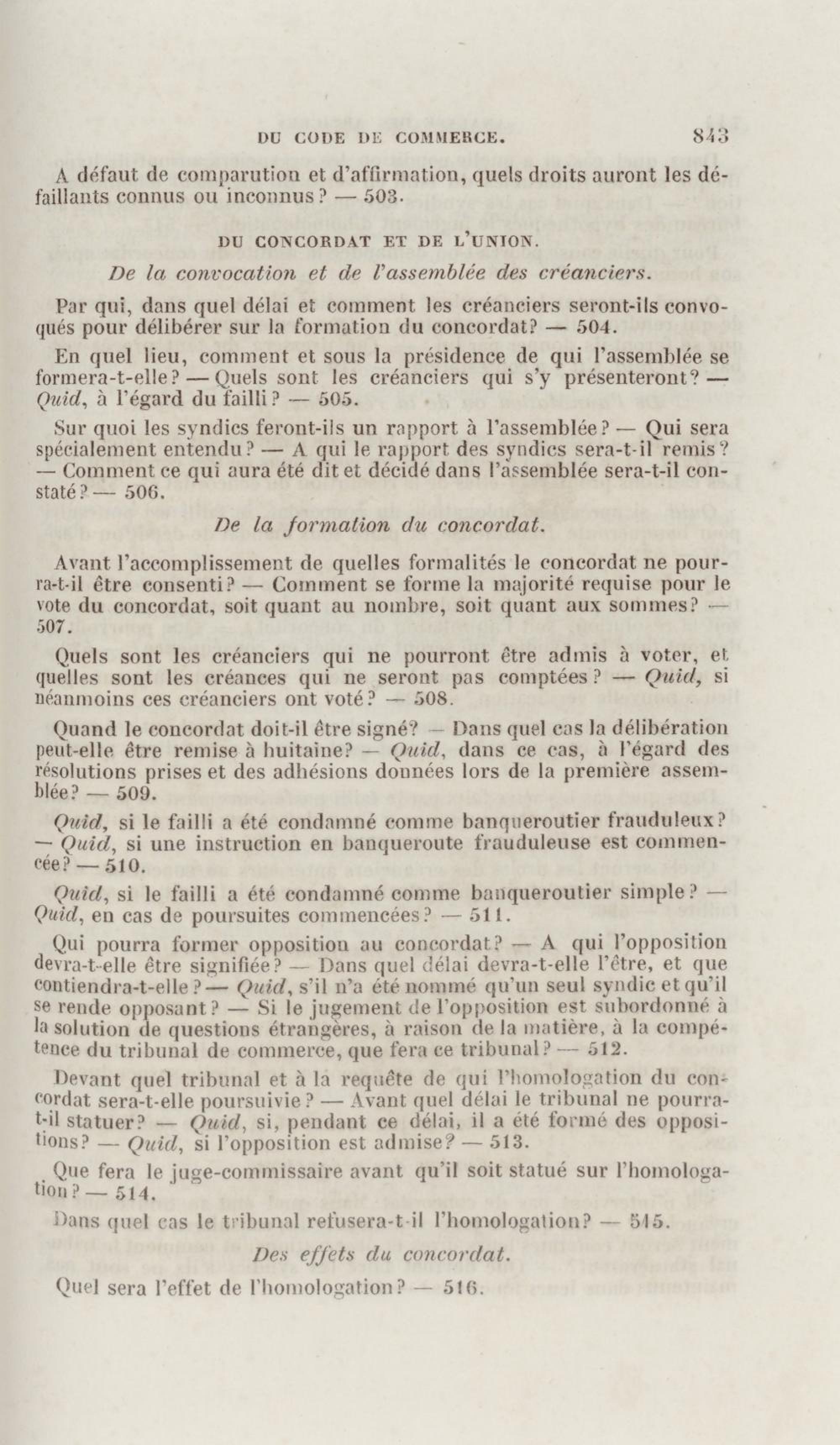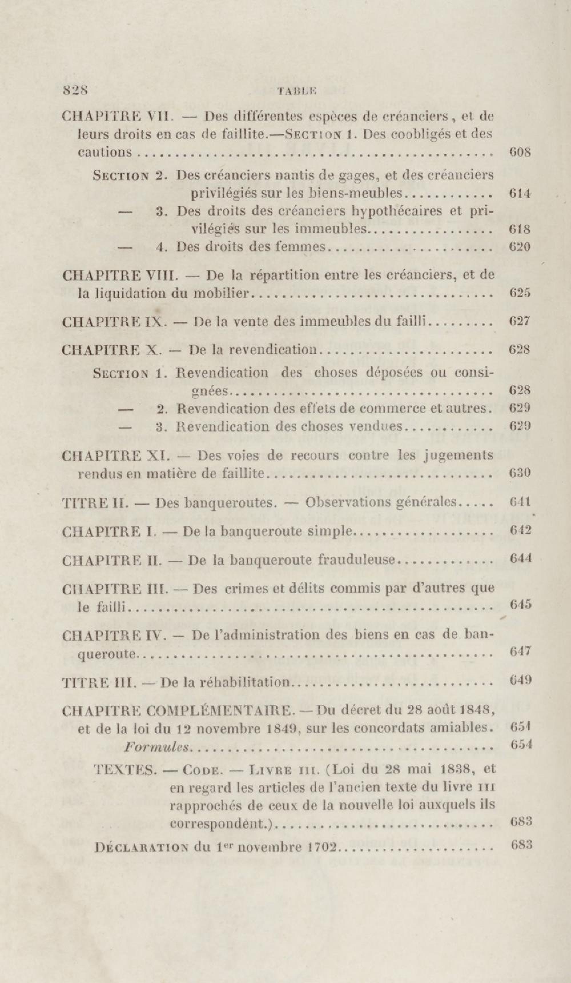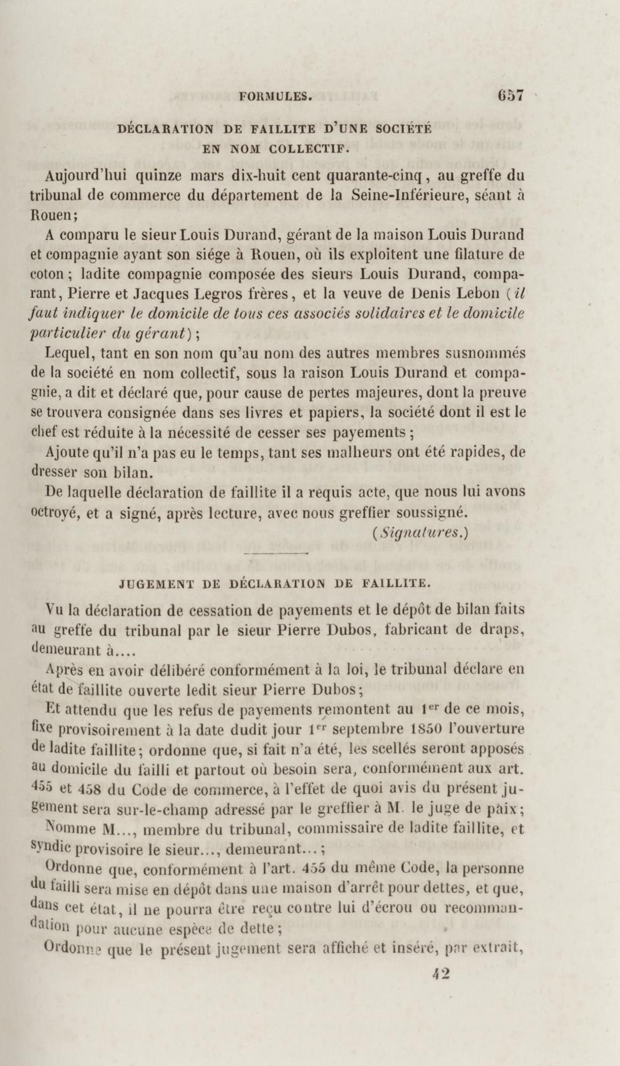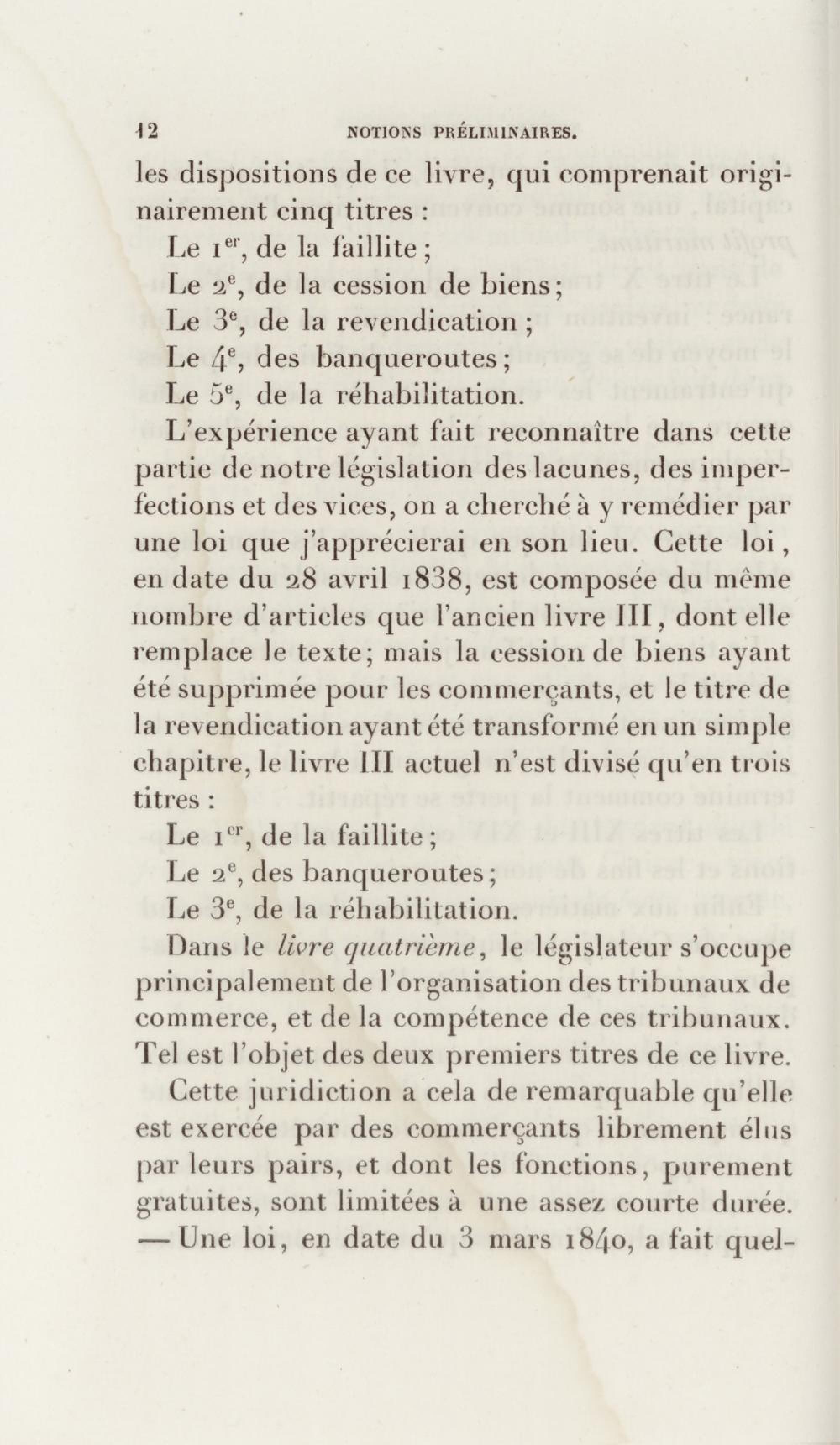 Manuel de droit commercial : contenant un traité sur chaque livre du code de commerce, l'indication du dernier état de la jurisprudence, des formules pour tous les actes, une analyse de tous les articles de code réduits en questions, le texte des ordonnances de 1673 et 1681 et celui du code rapprochés et mis en regard