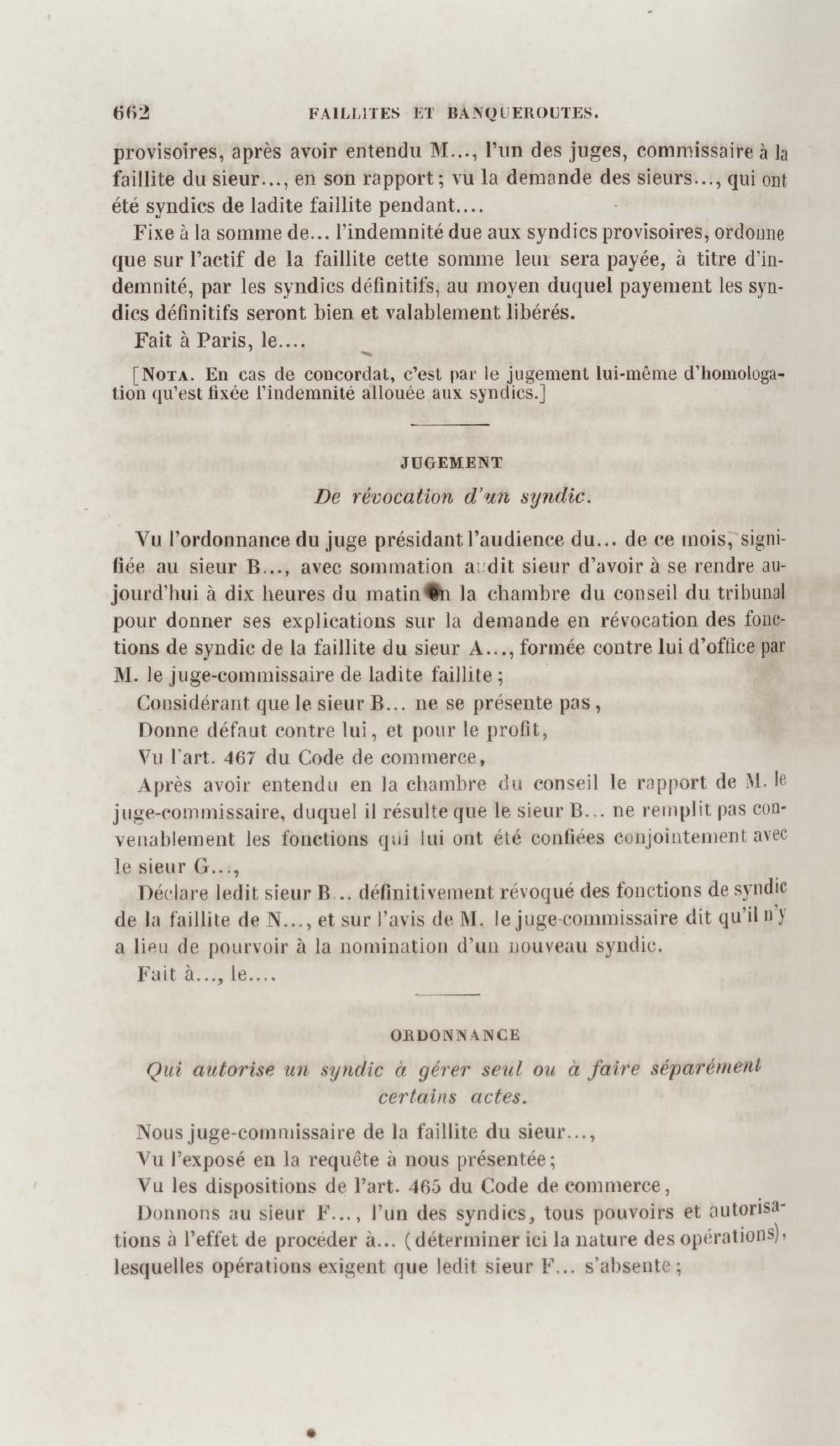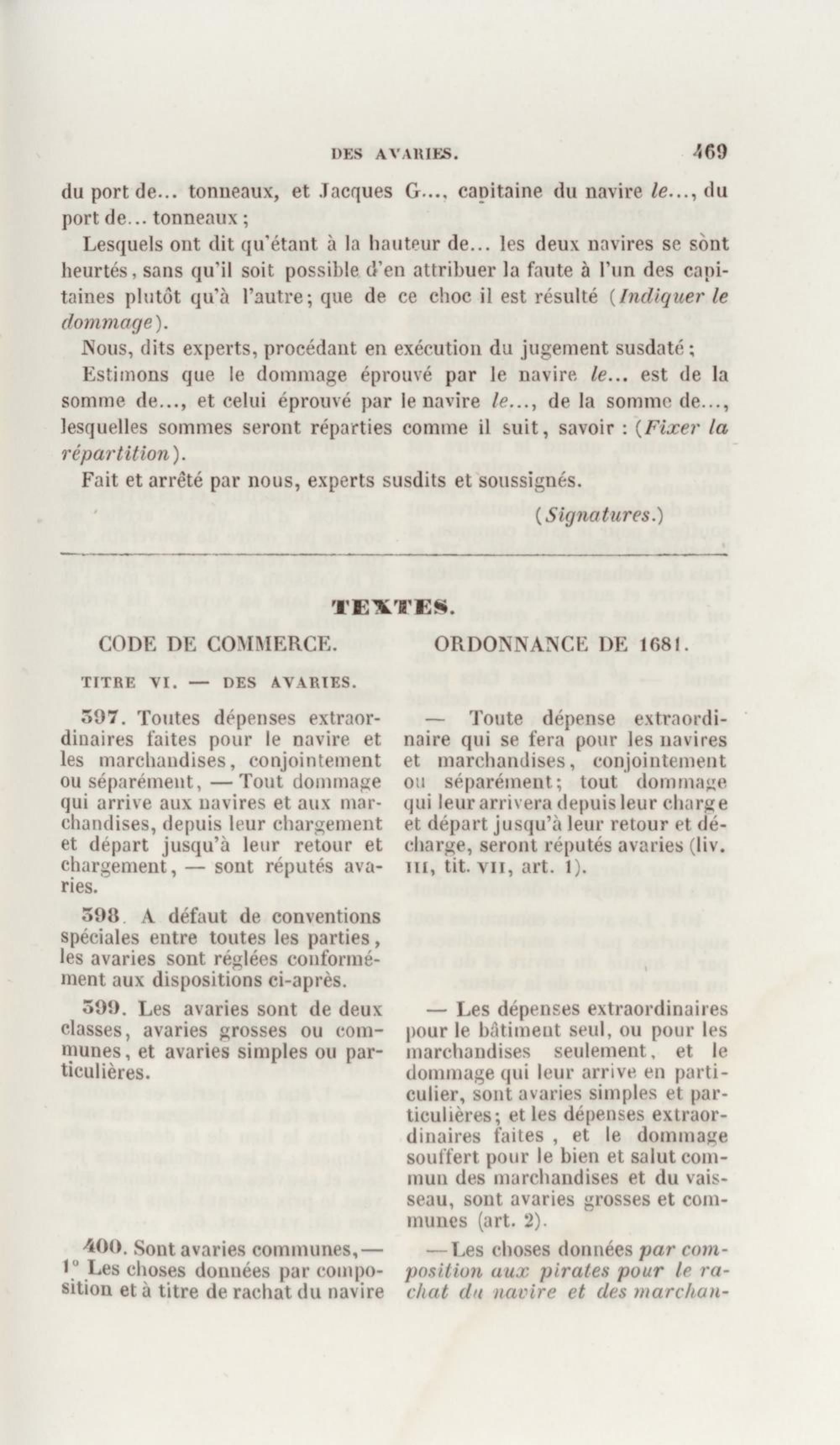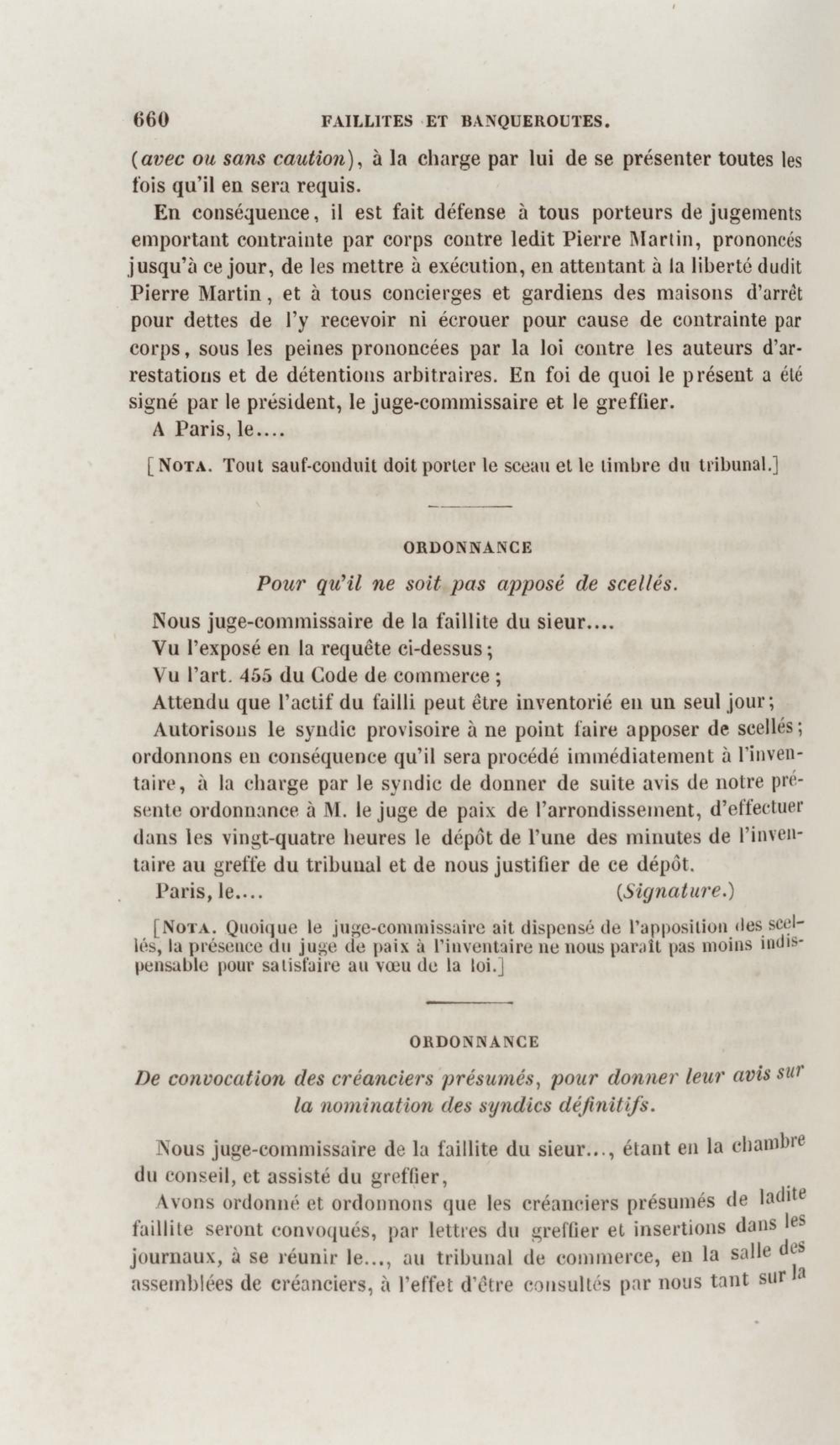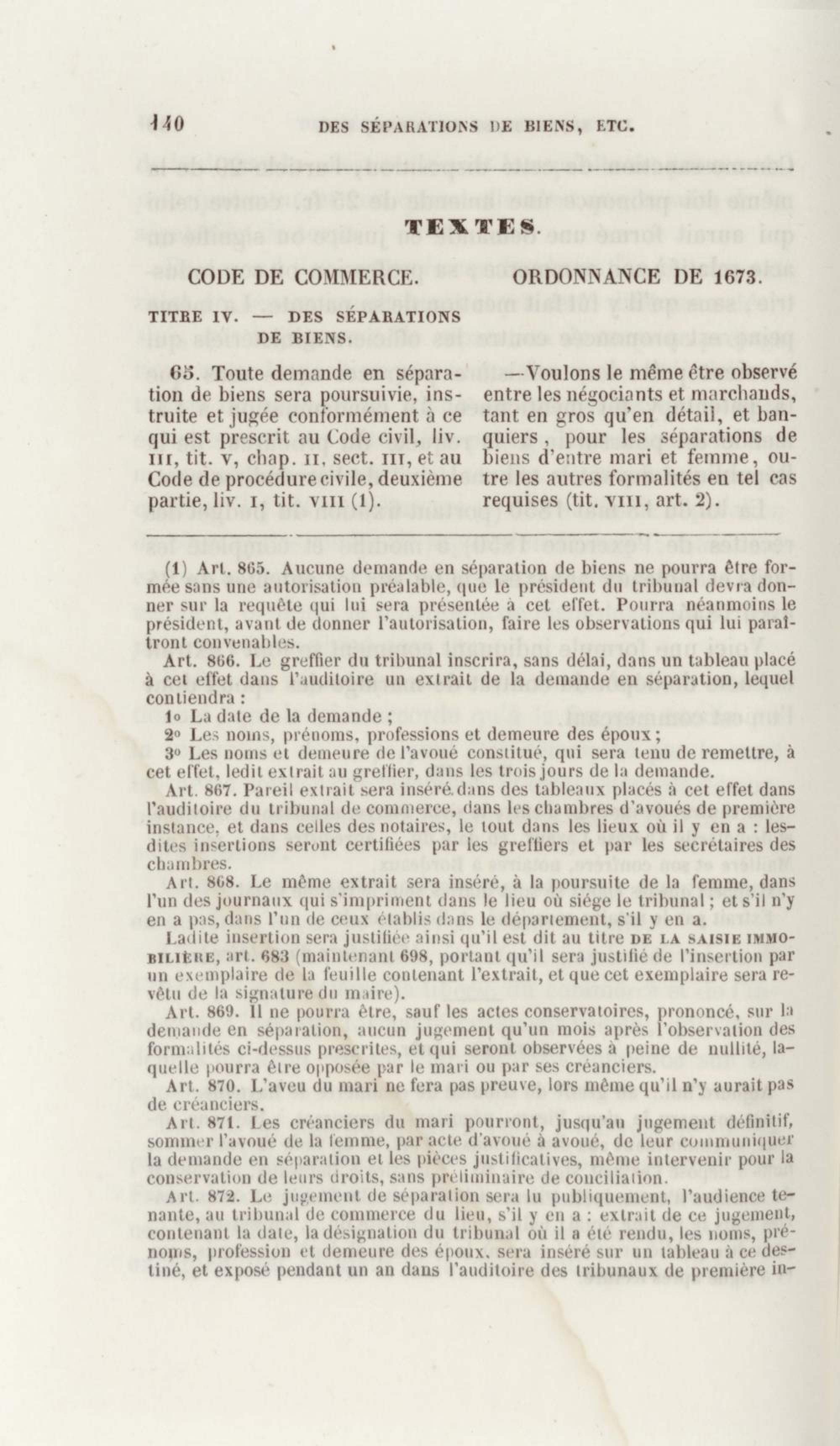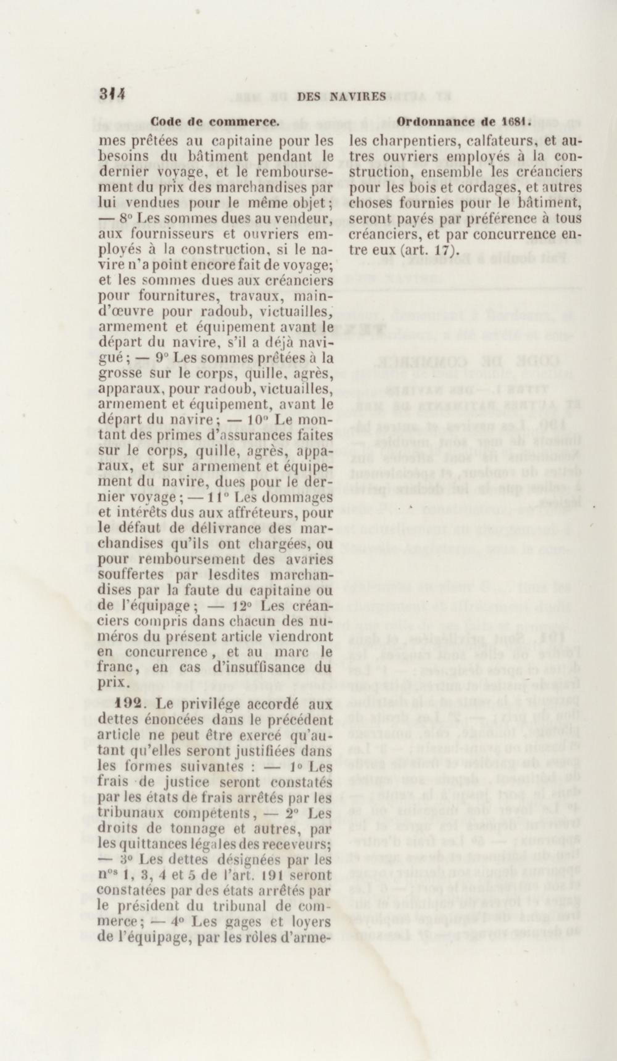 Manuel de droit commercial : contenant un traité sur chaque livre du code de commerce, l'indication du dernier état de la jurisprudence, des formules pour tous les actes, une analyse de tous les articles de code réduits en questions, le texte des ordonnances de 1673 et 1681 et celui du code rapprochés et mis en regard