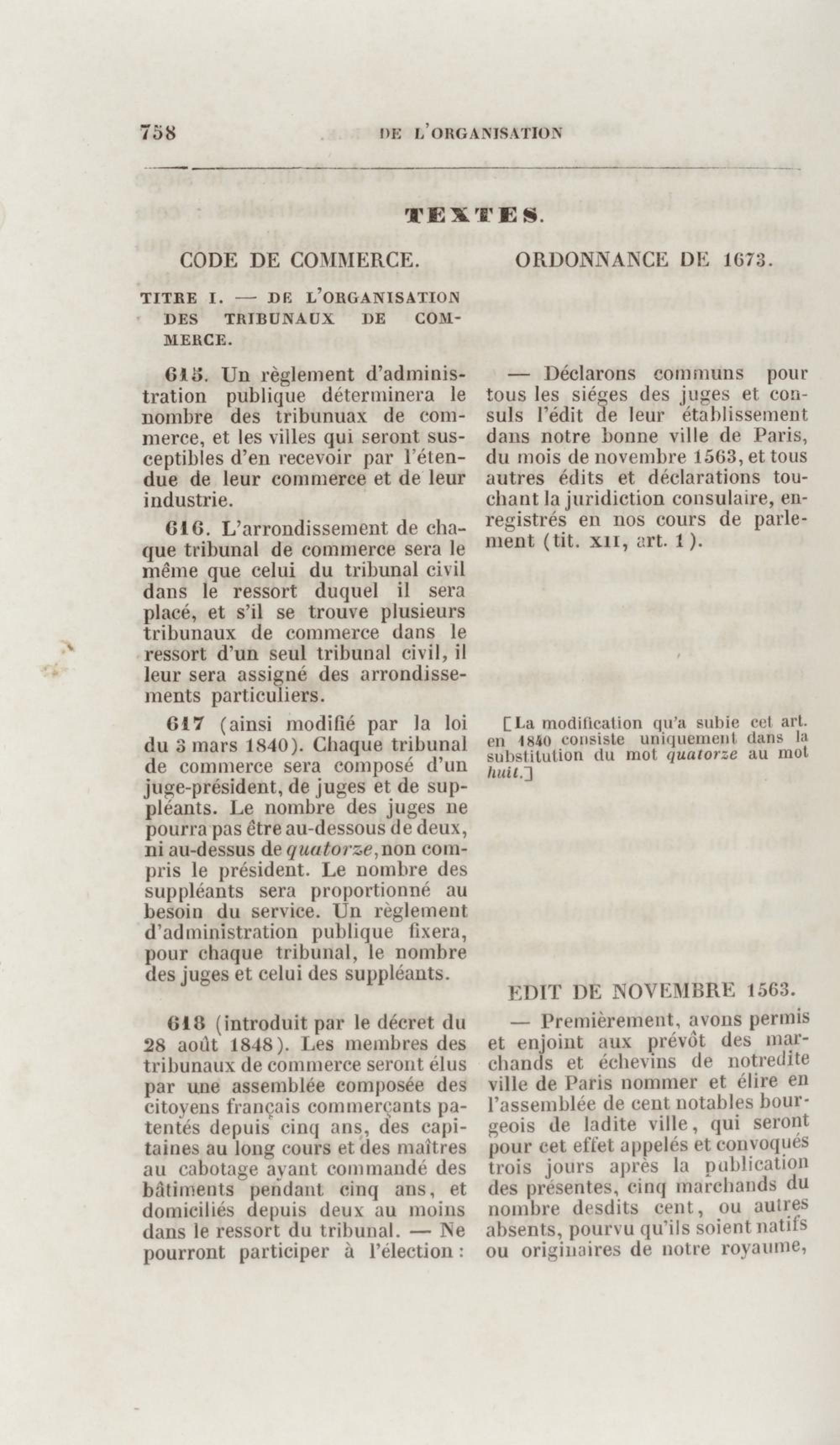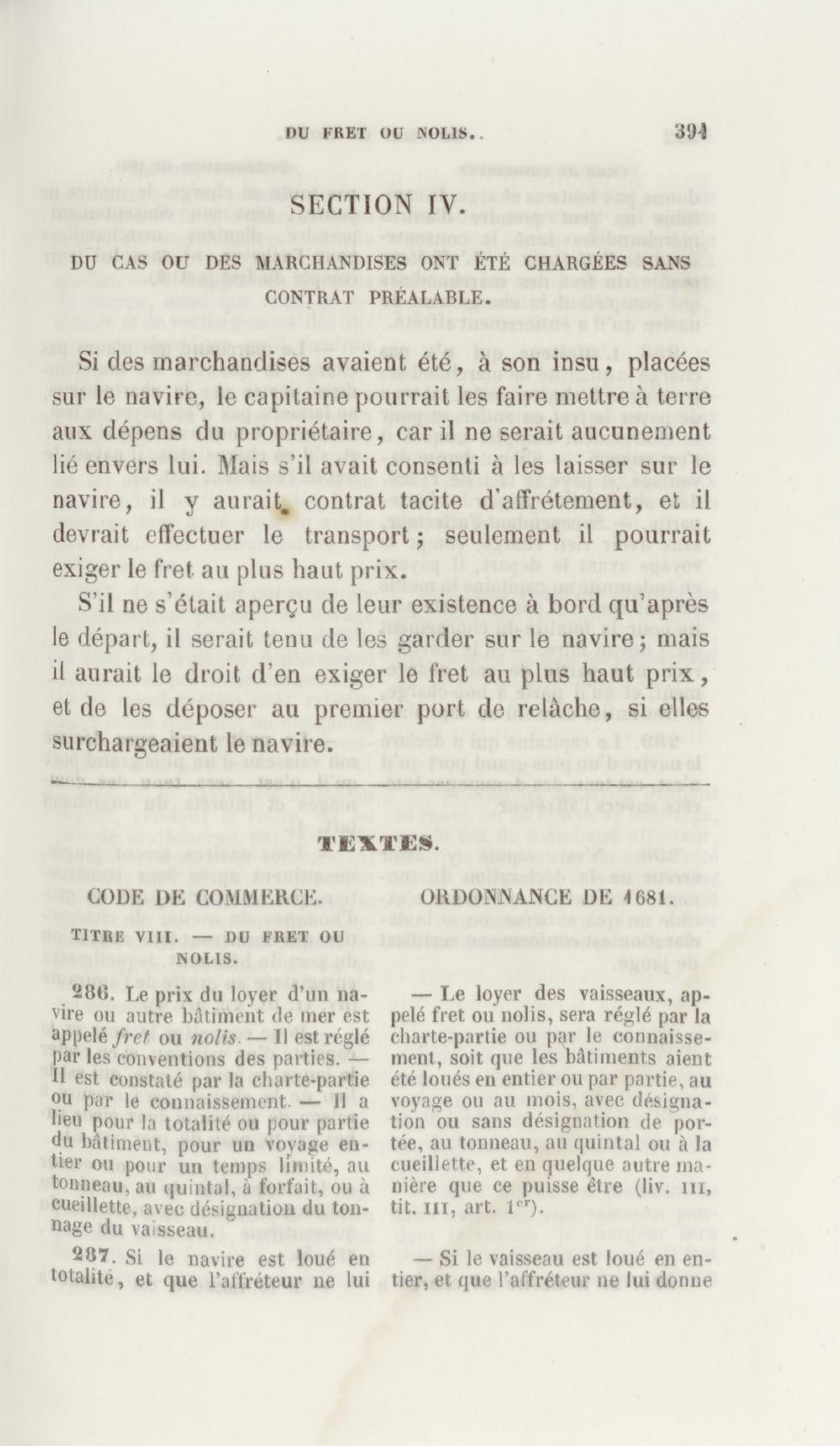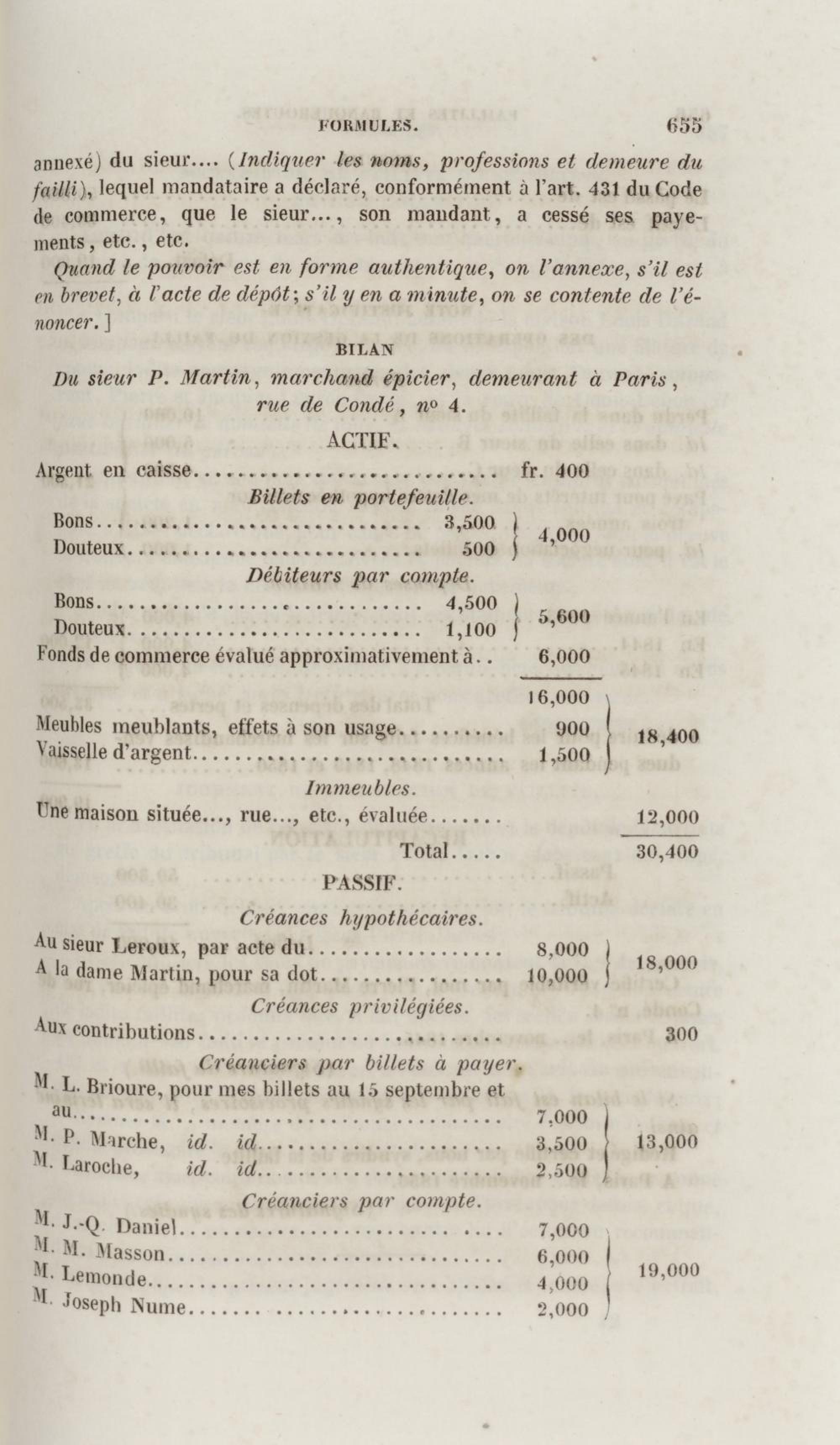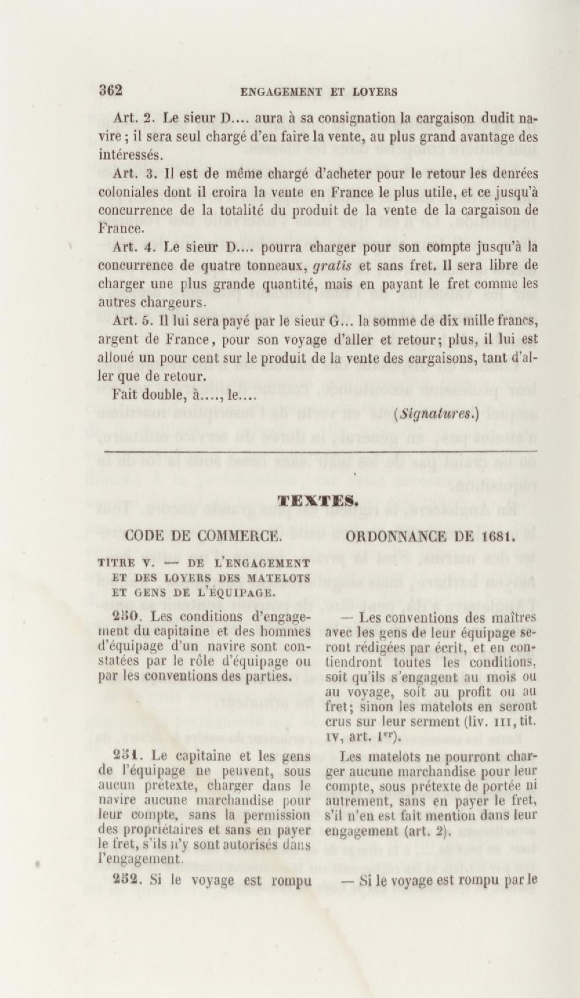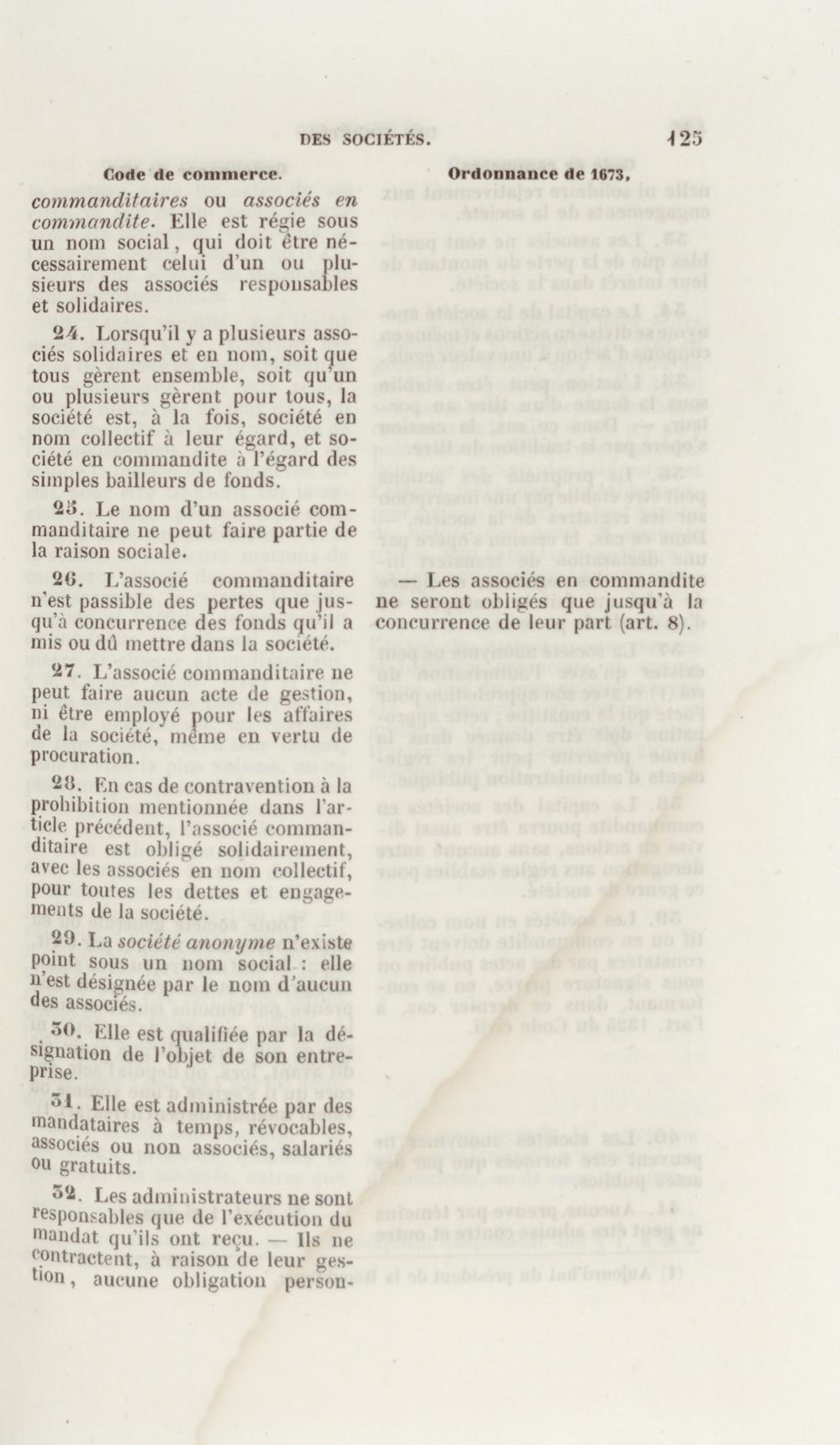 Manuel de droit commercial : contenant un traité sur chaque livre du code de commerce, l'indication du dernier état de la jurisprudence, des formules pour tous les actes, une analyse de tous les articles de code réduits en questions, le texte des ordonnances de 1673 et 1681 et celui du code rapprochés et mis en regard