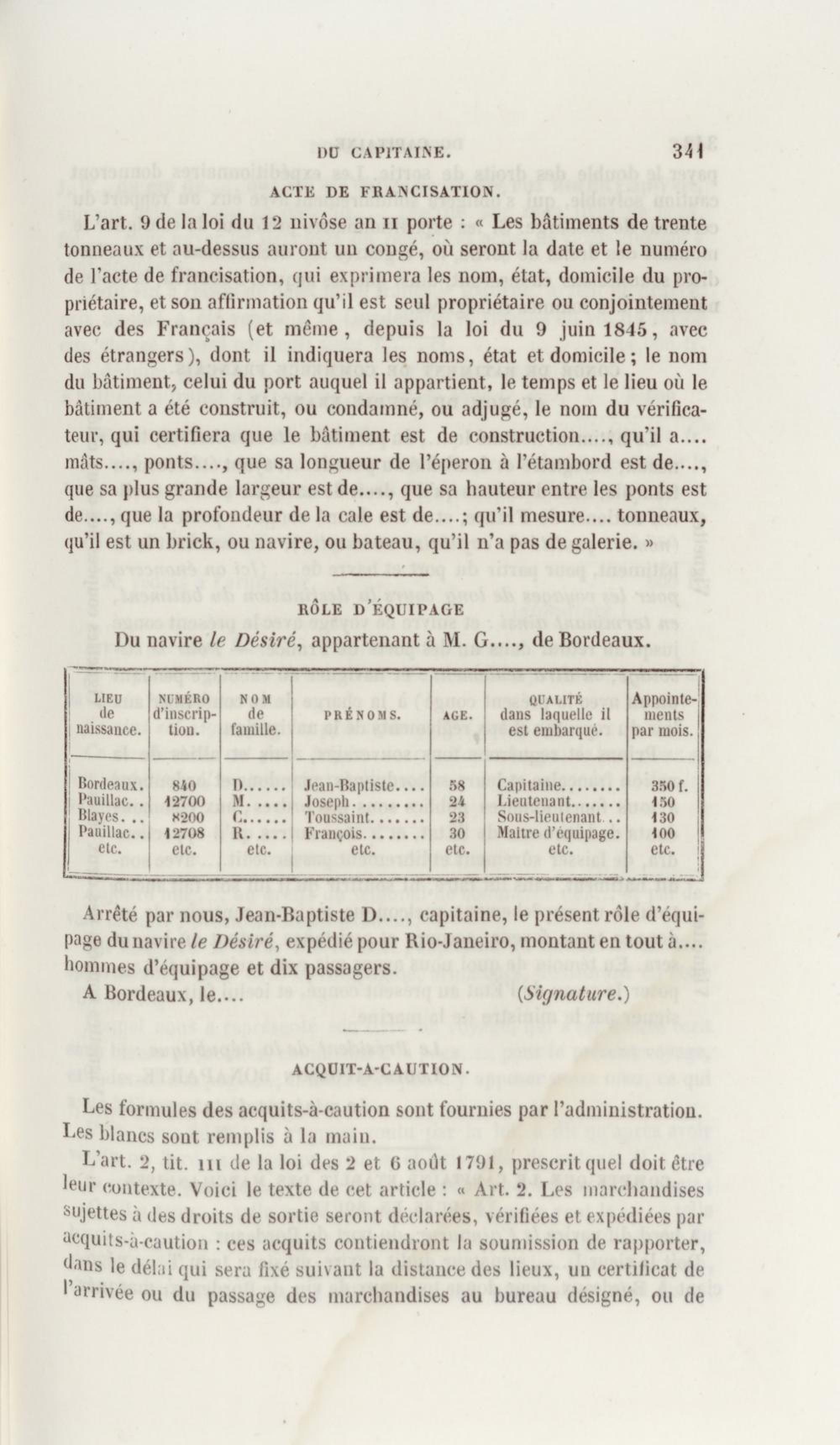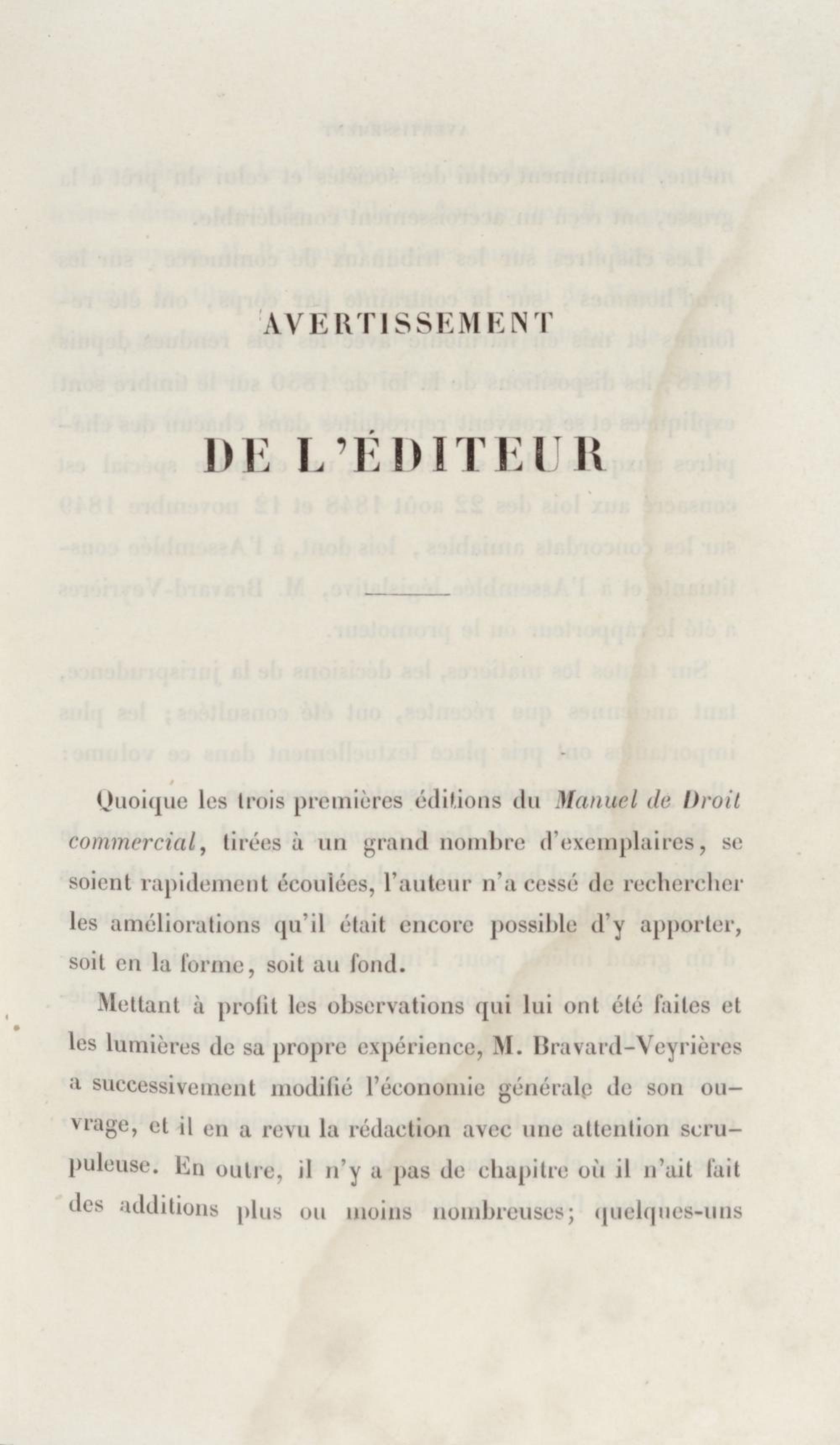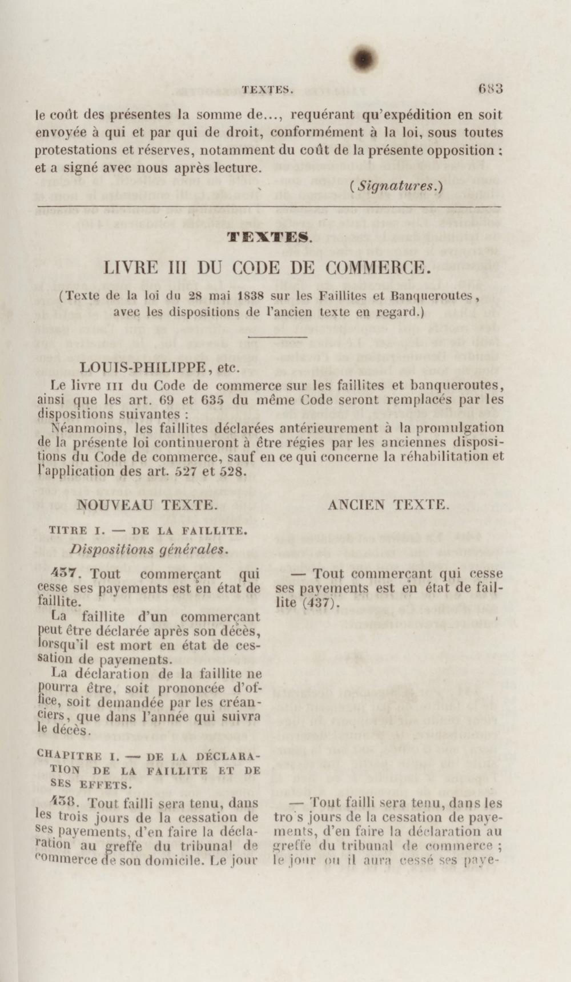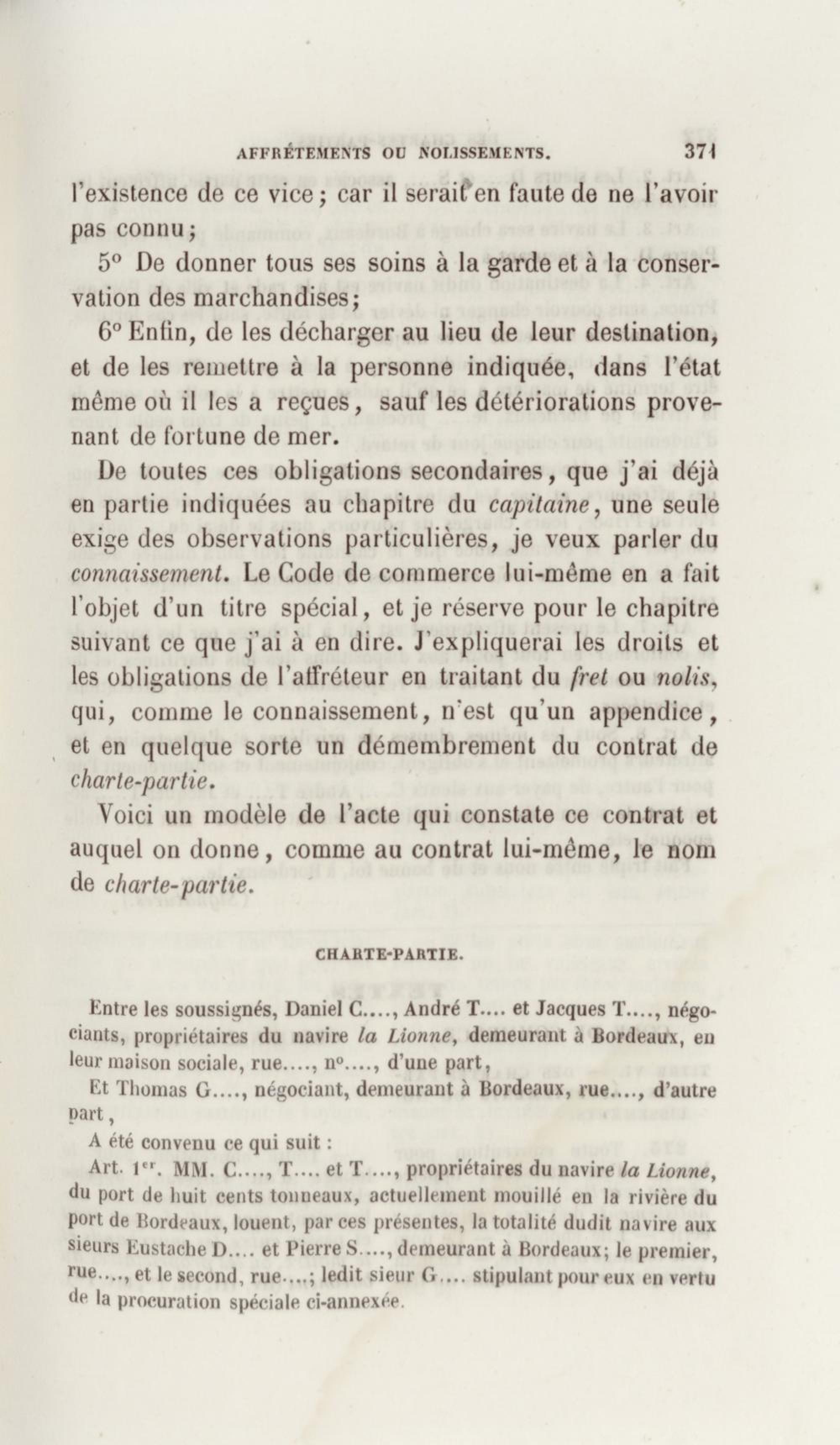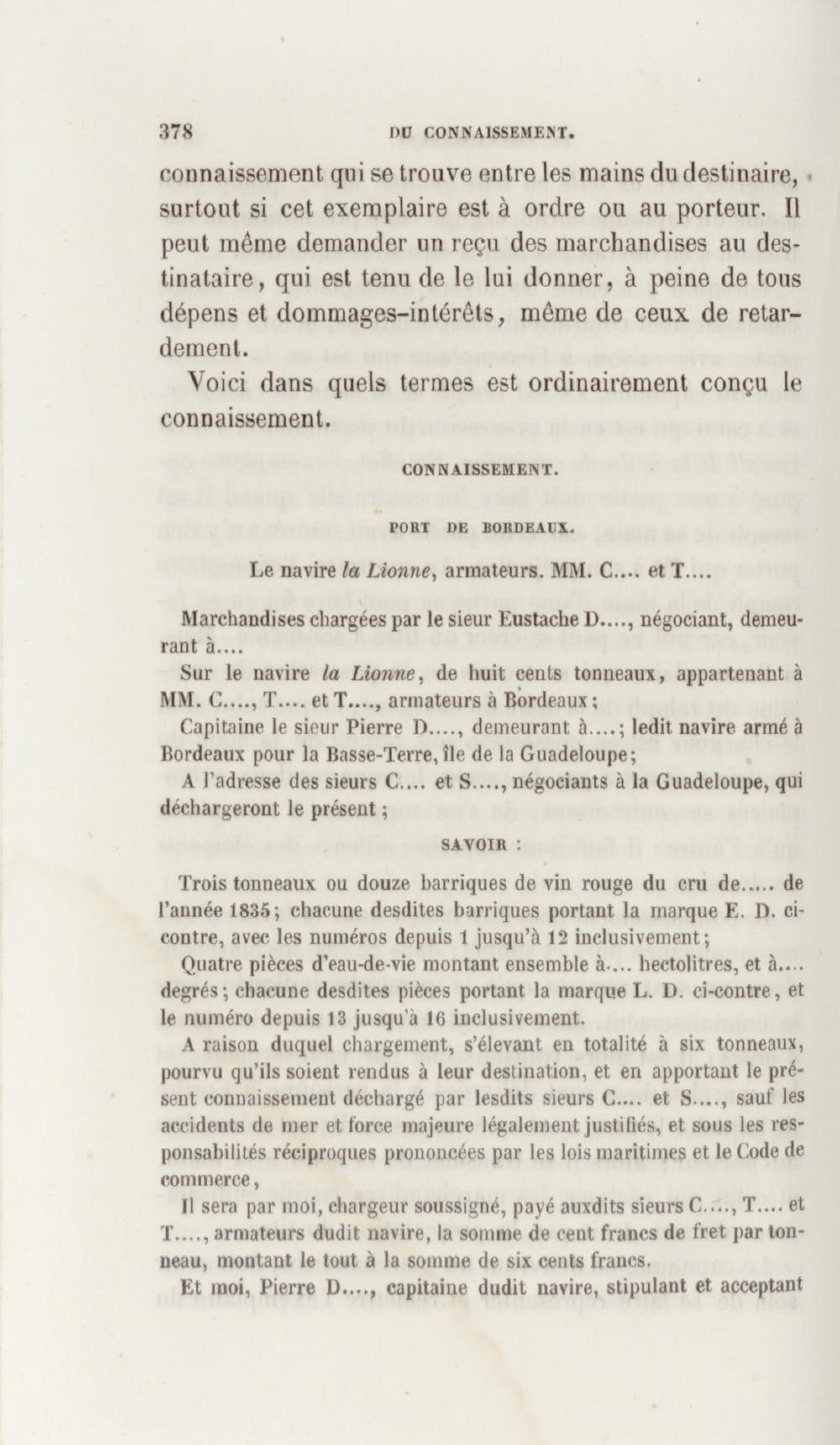 Manuel de droit commercial : contenant un traité sur chaque livre du code de commerce, l'indication du dernier état de la jurisprudence, des formules pour tous les actes, une analyse de tous les articles de code réduits en questions, le texte des ordonnances de 1673 et 1681 et celui du code rapprochés et mis en regard