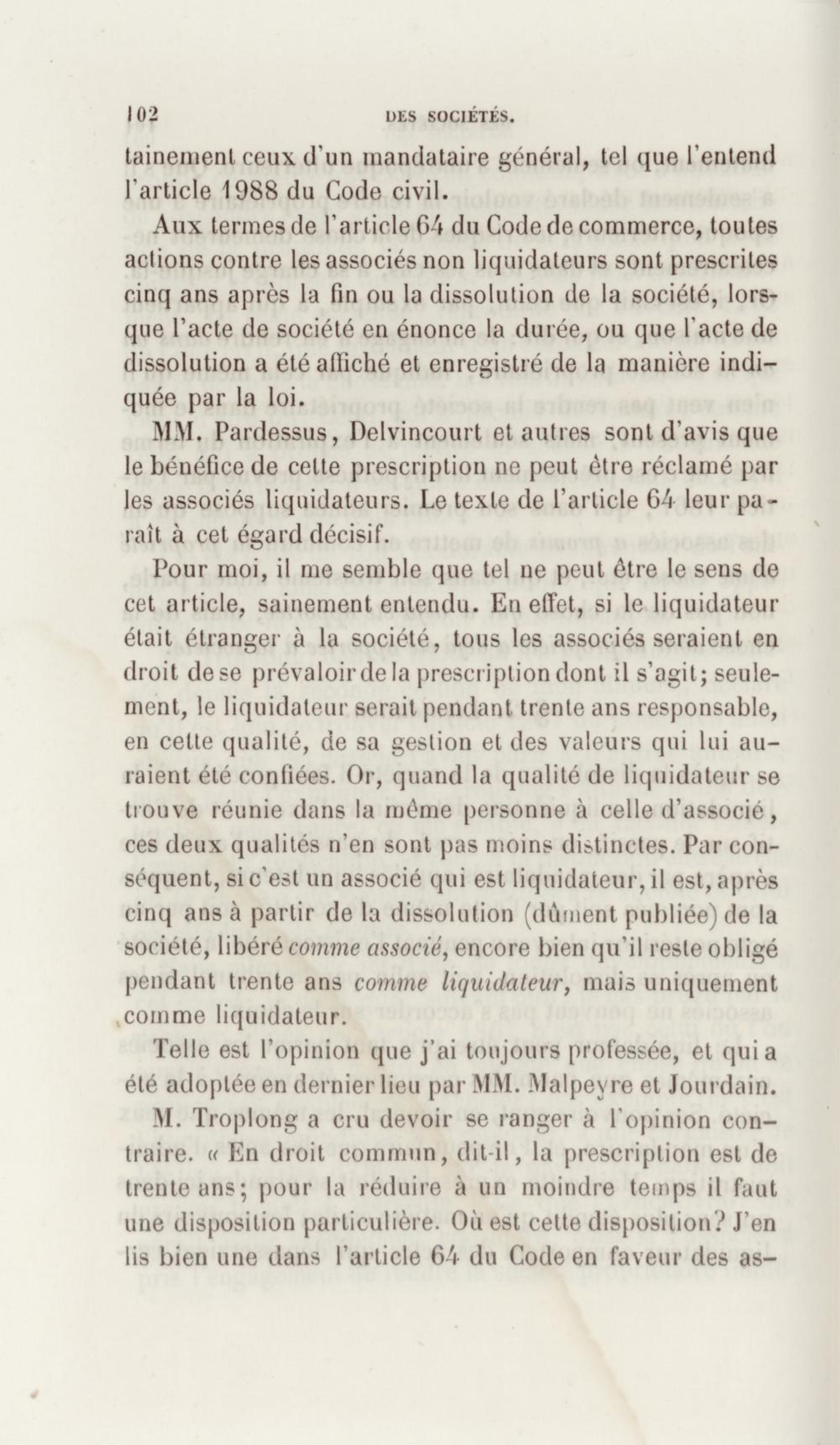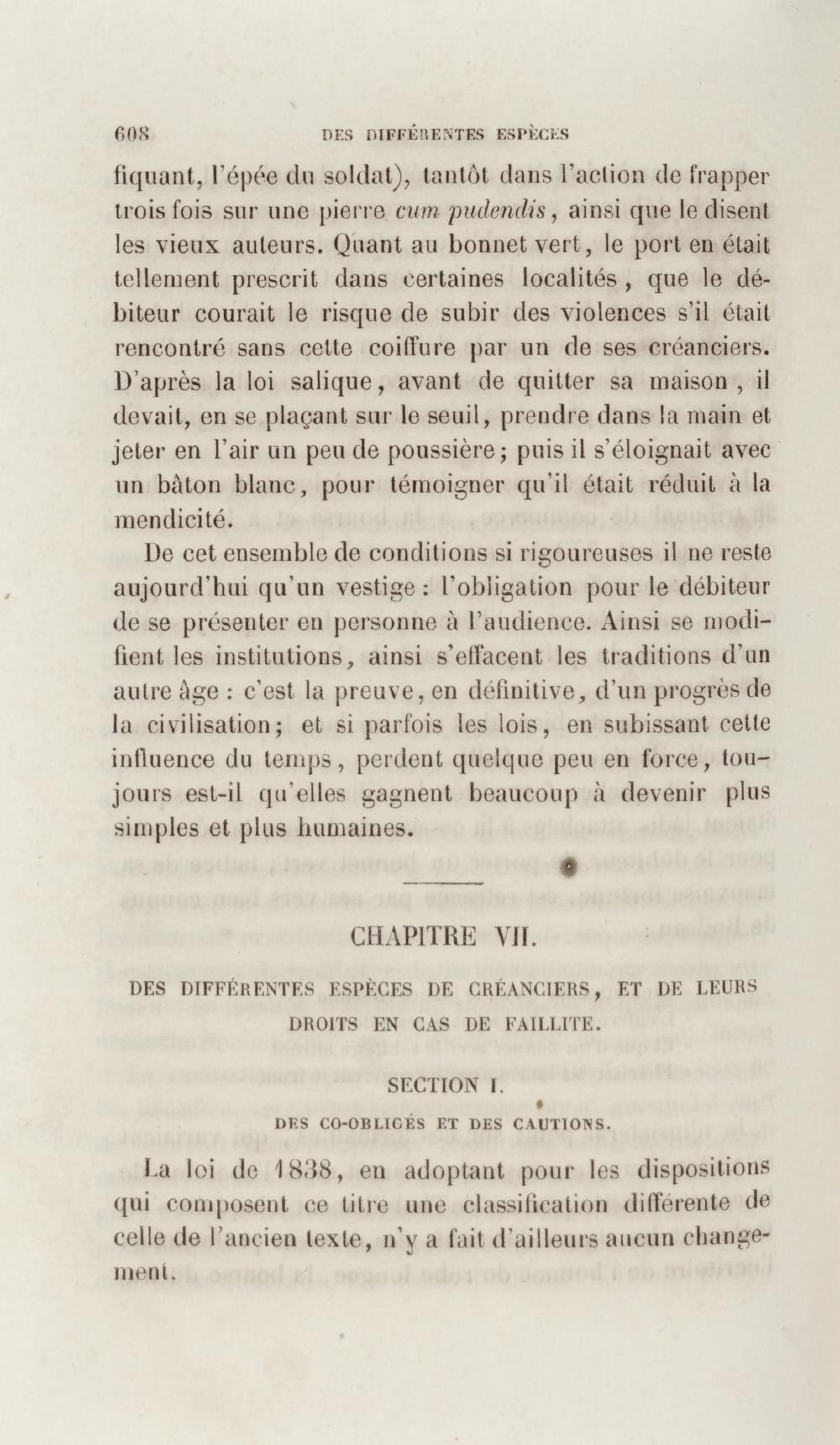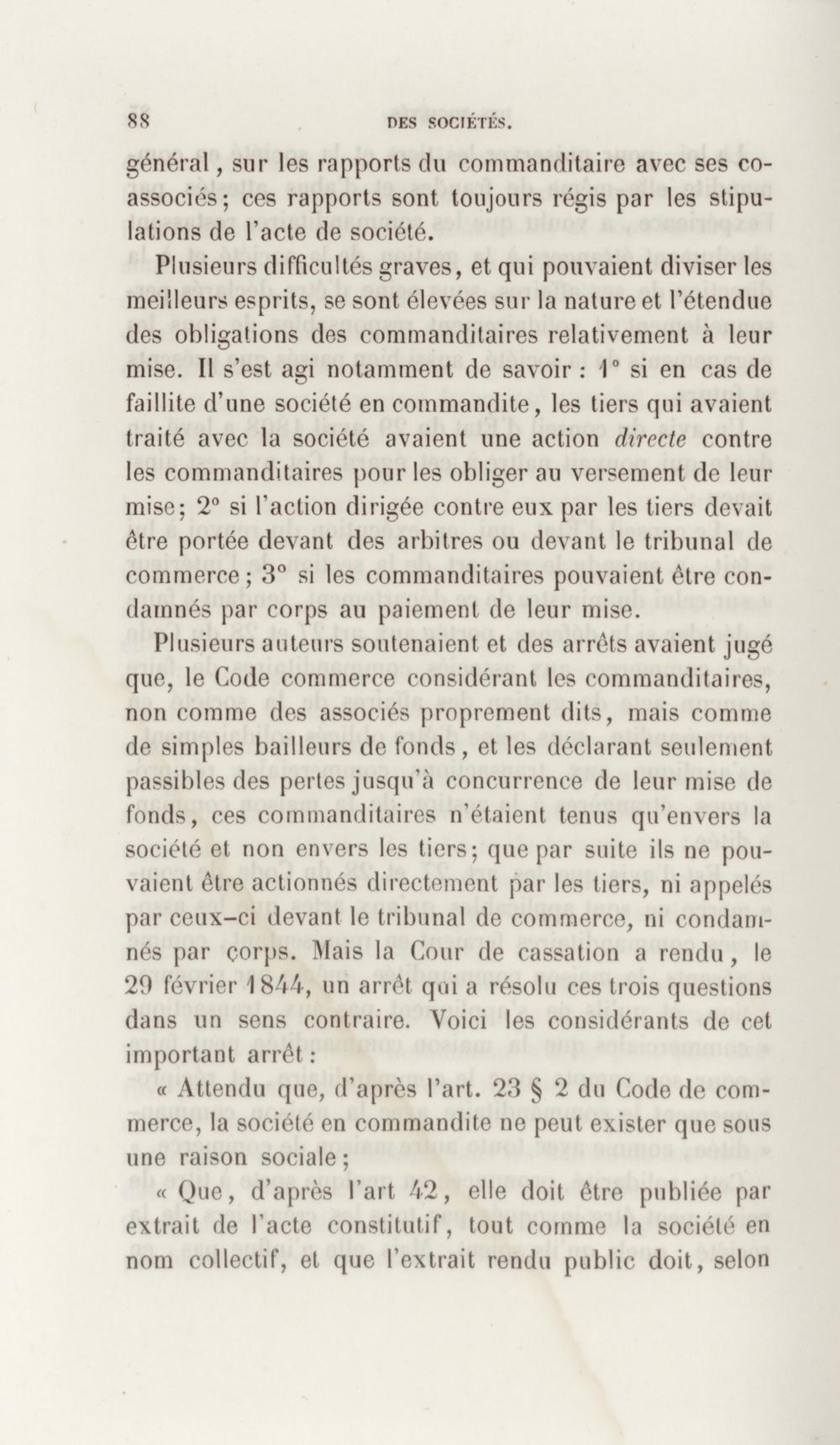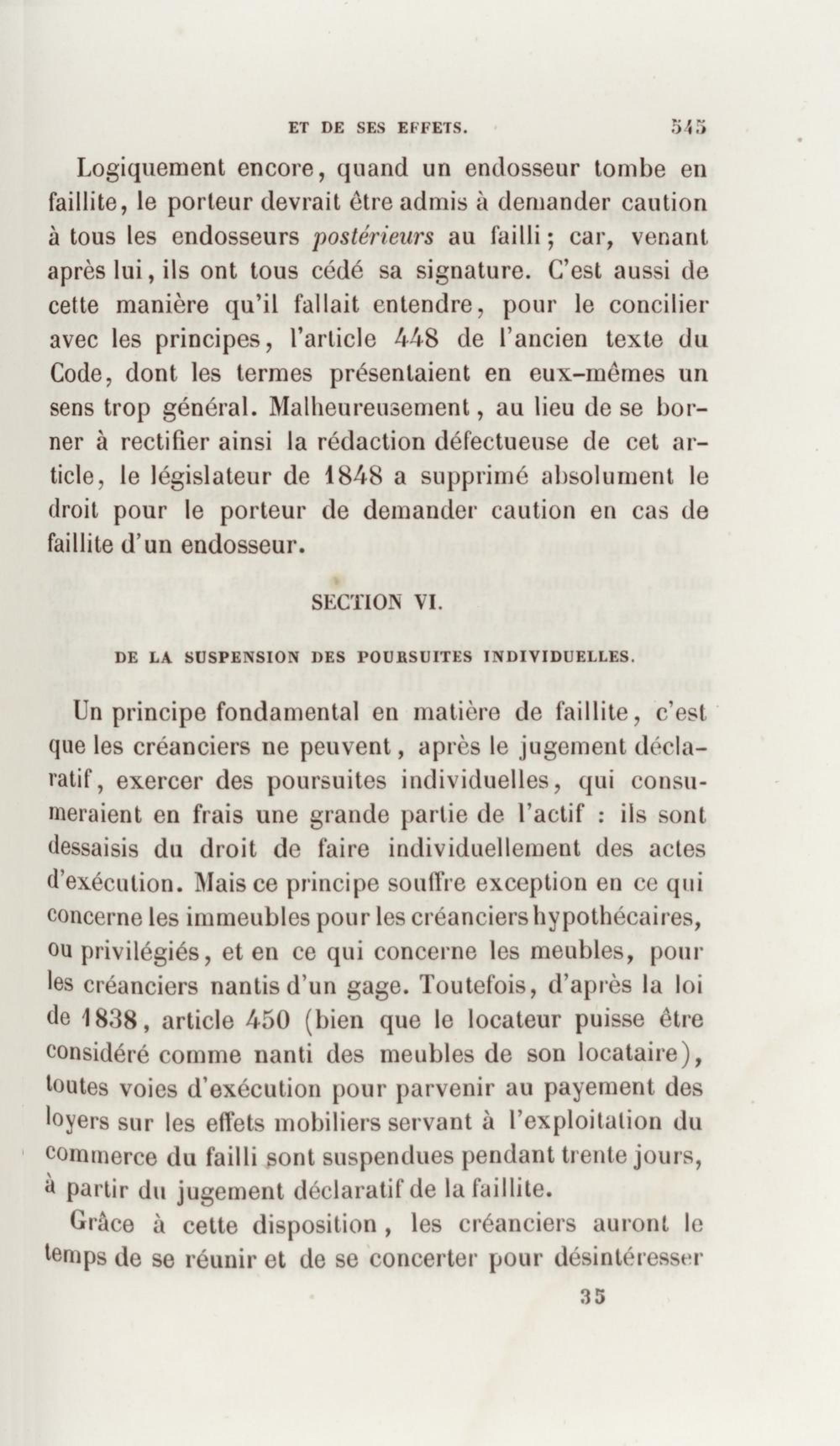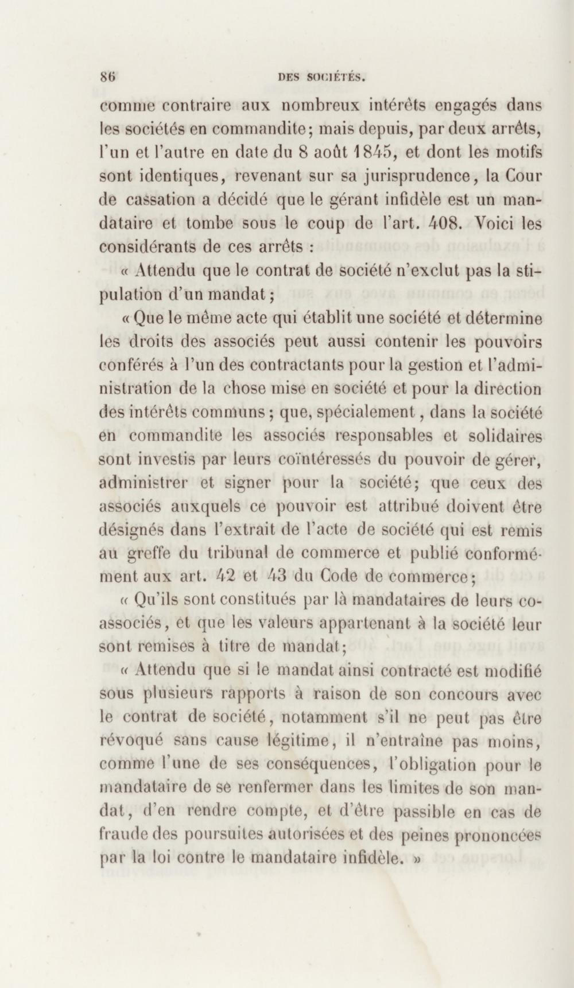 Manuel de droit commercial : contenant un traité sur chaque livre du code de commerce, l'indication du dernier état de la jurisprudence, des formules pour tous les actes, une analyse de tous les articles de code réduits en questions, le texte des ordonnances de 1673 et 1681 et celui du code rapprochés et mis en regard