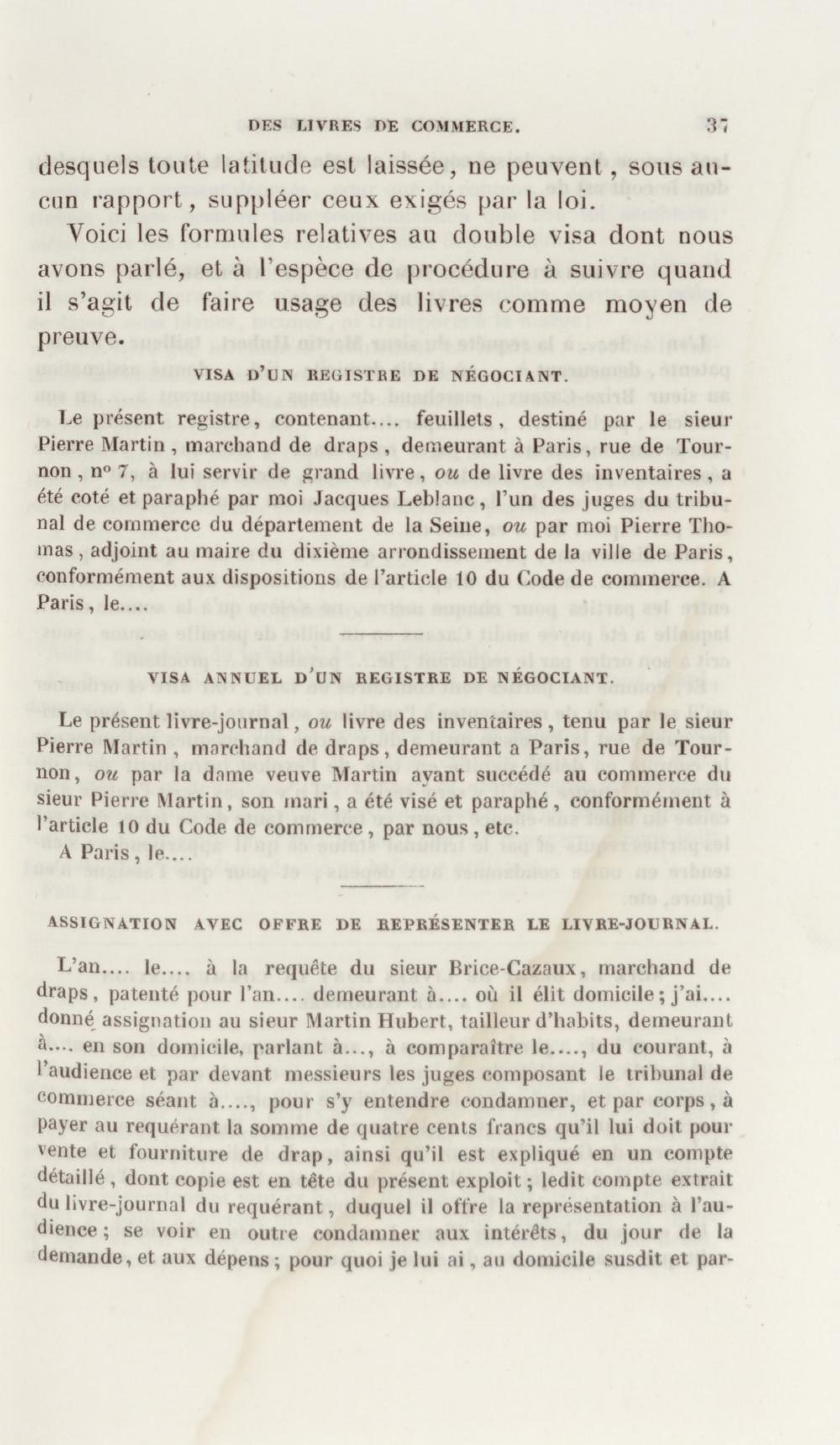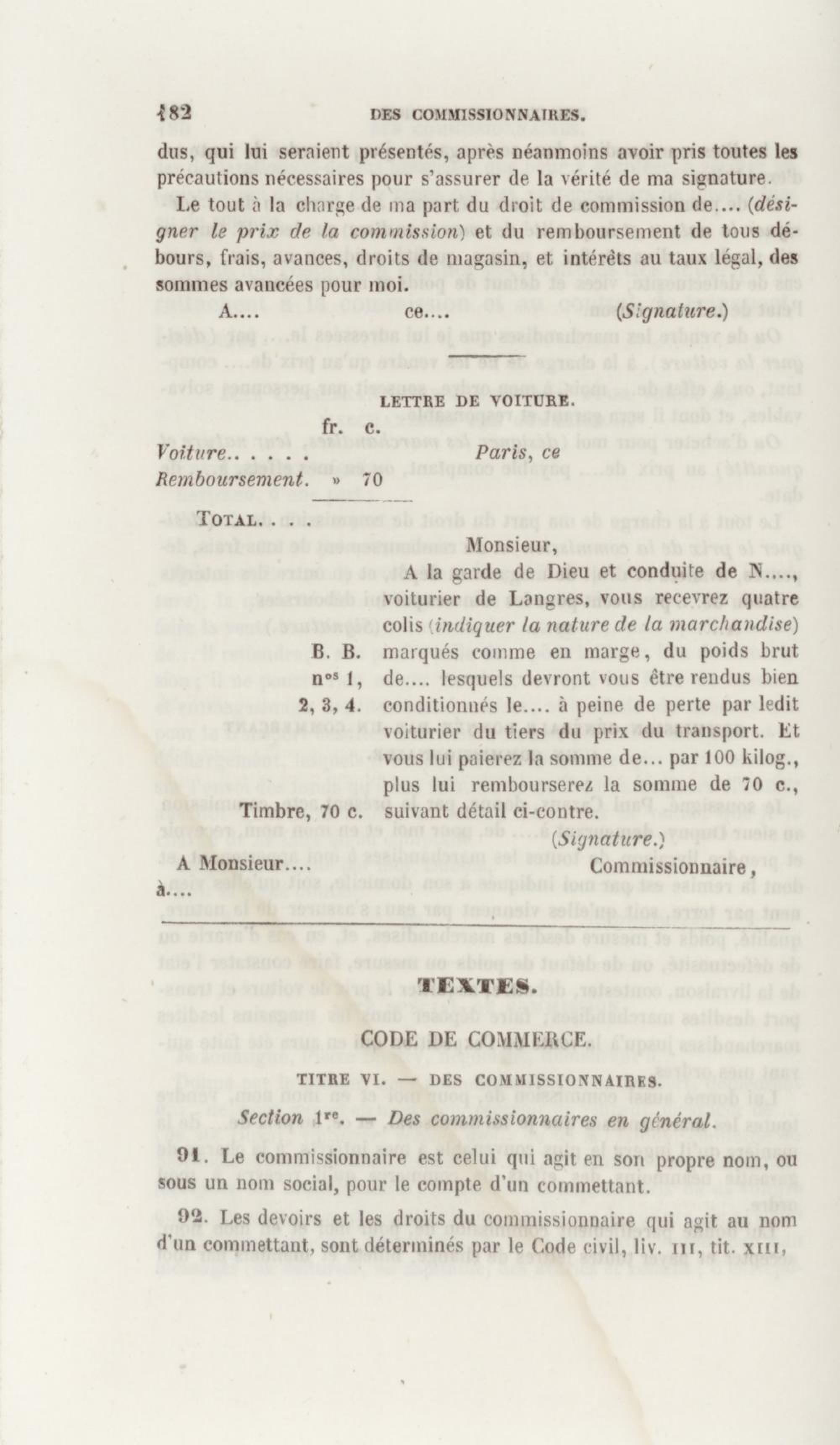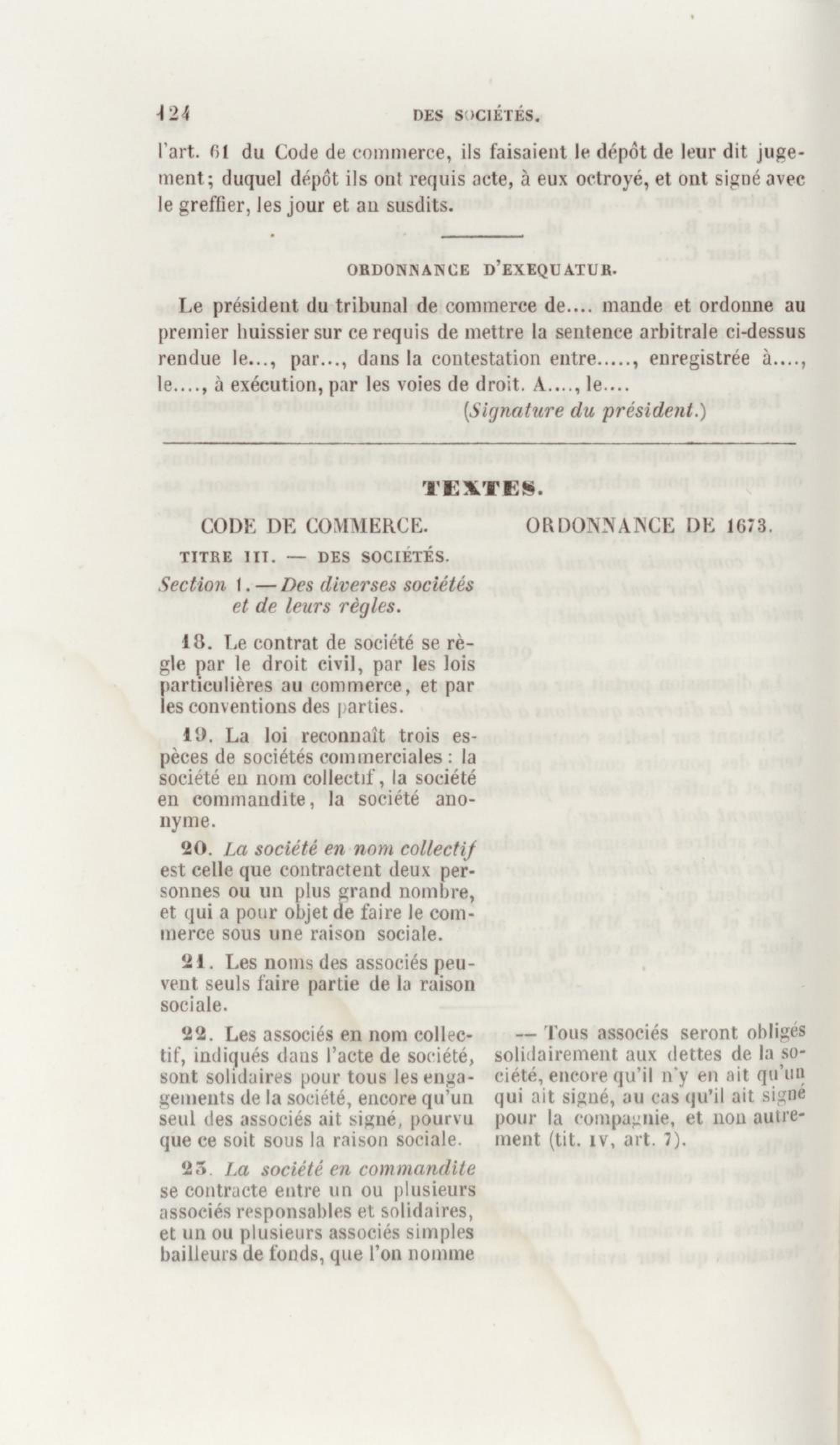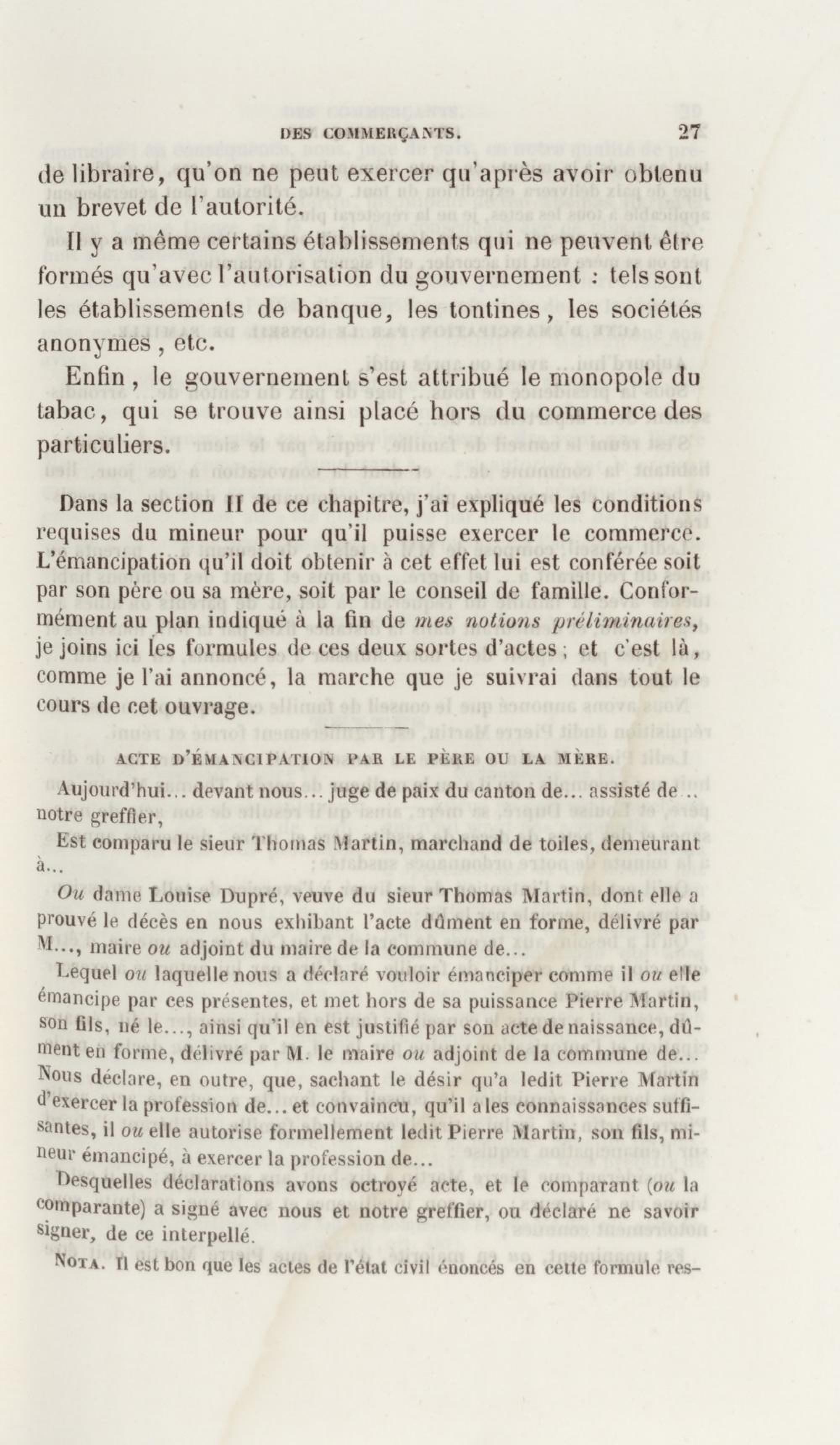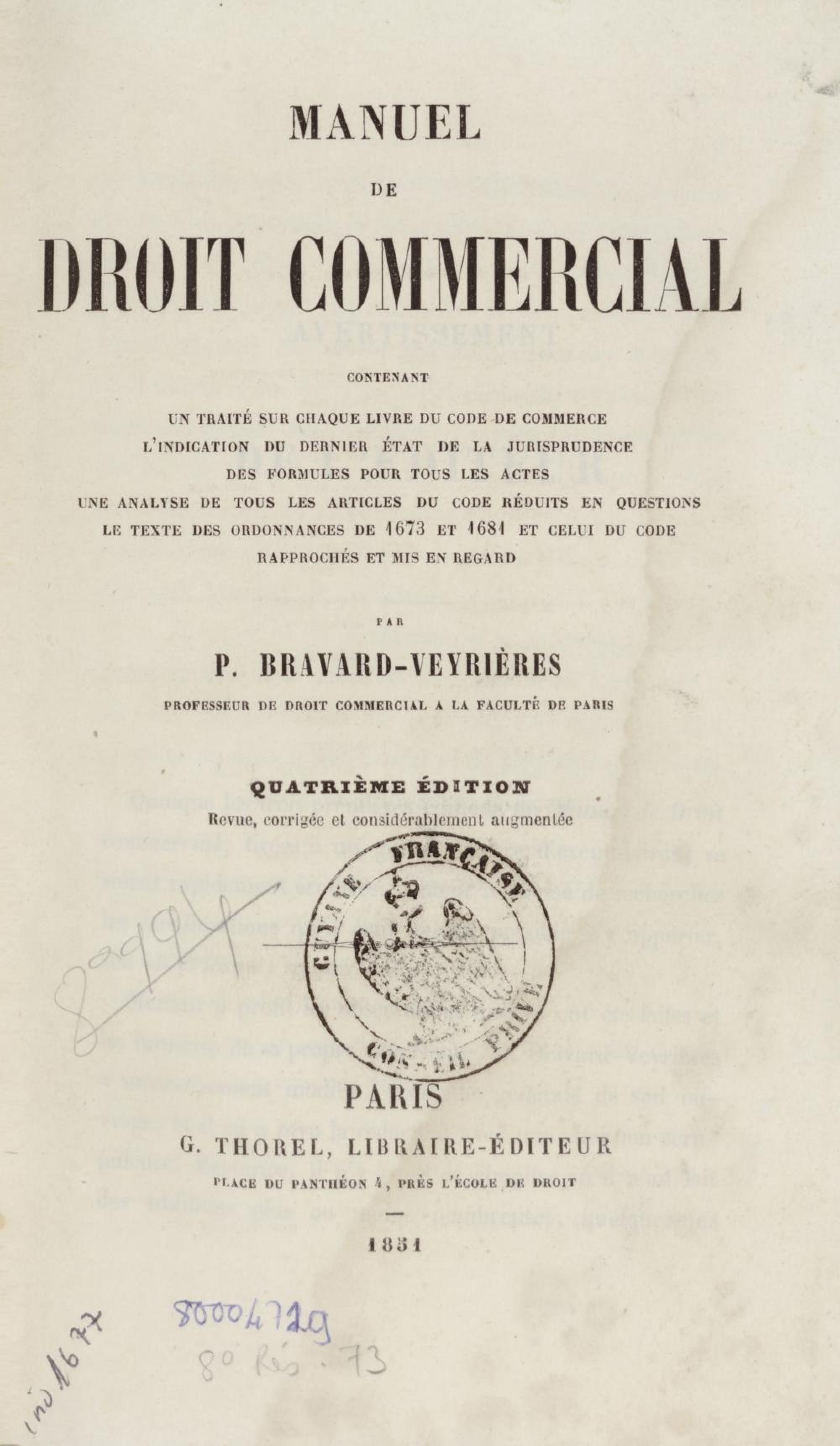 - Manuel de droit commercial : contenant un traité sur chaque livre du code de commerce, l'indication du dernier état de la jurisprudence, des formules pour tous les actes, une analyse de tous les articles de code réduits en questions, le texte des ordonnances de 1673 et 1681 et celui du code rapprochés et mis en regard