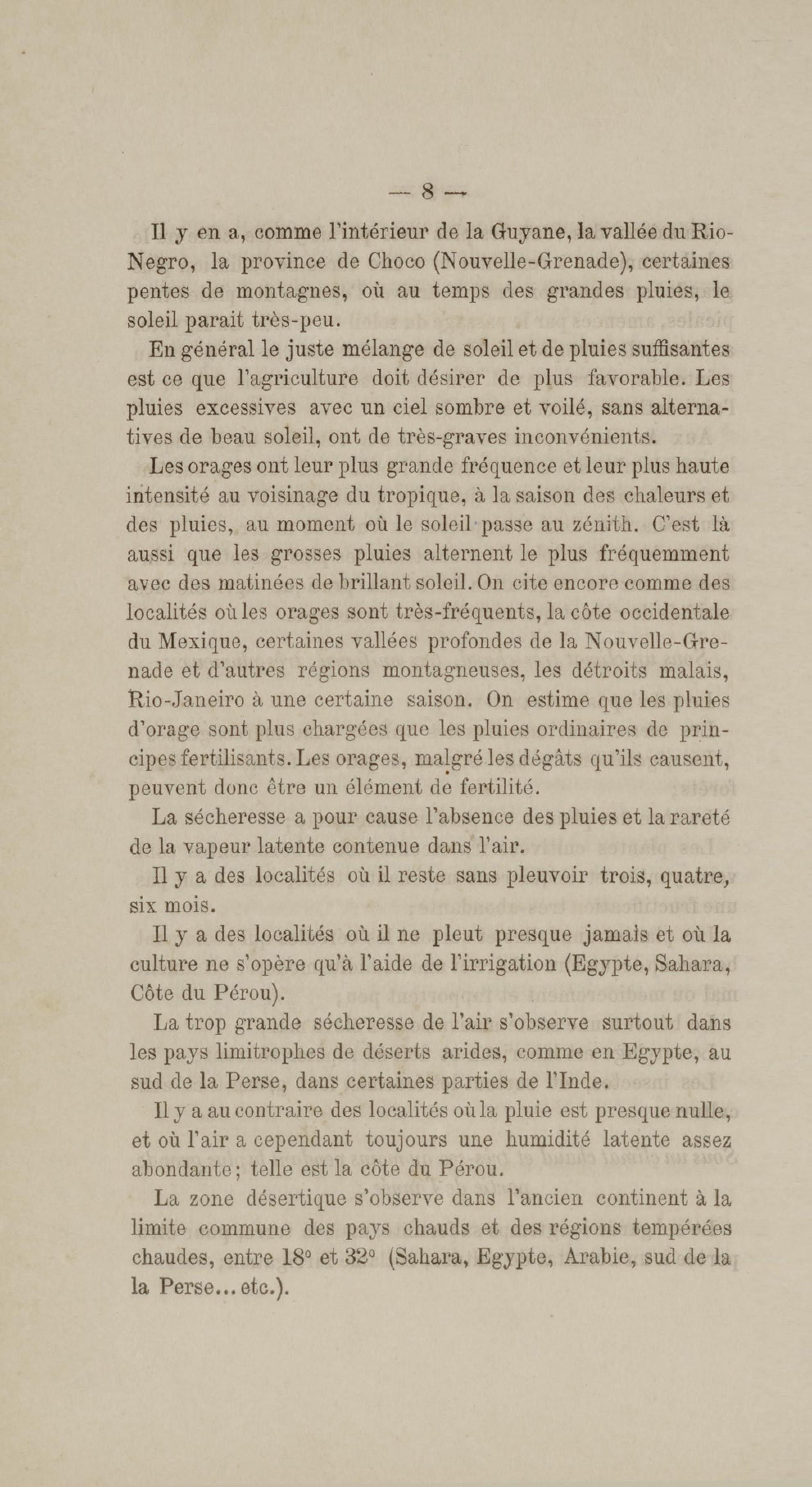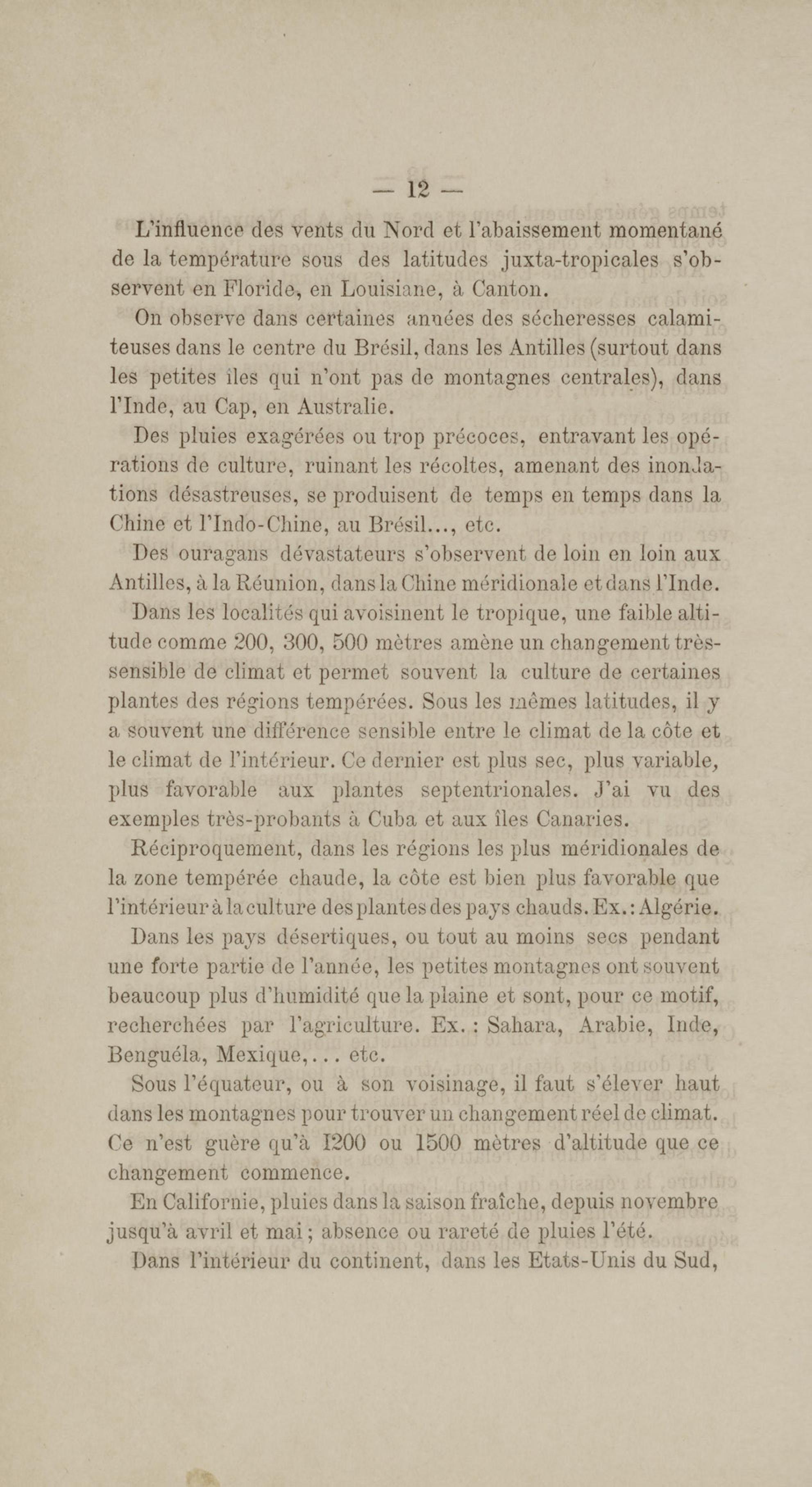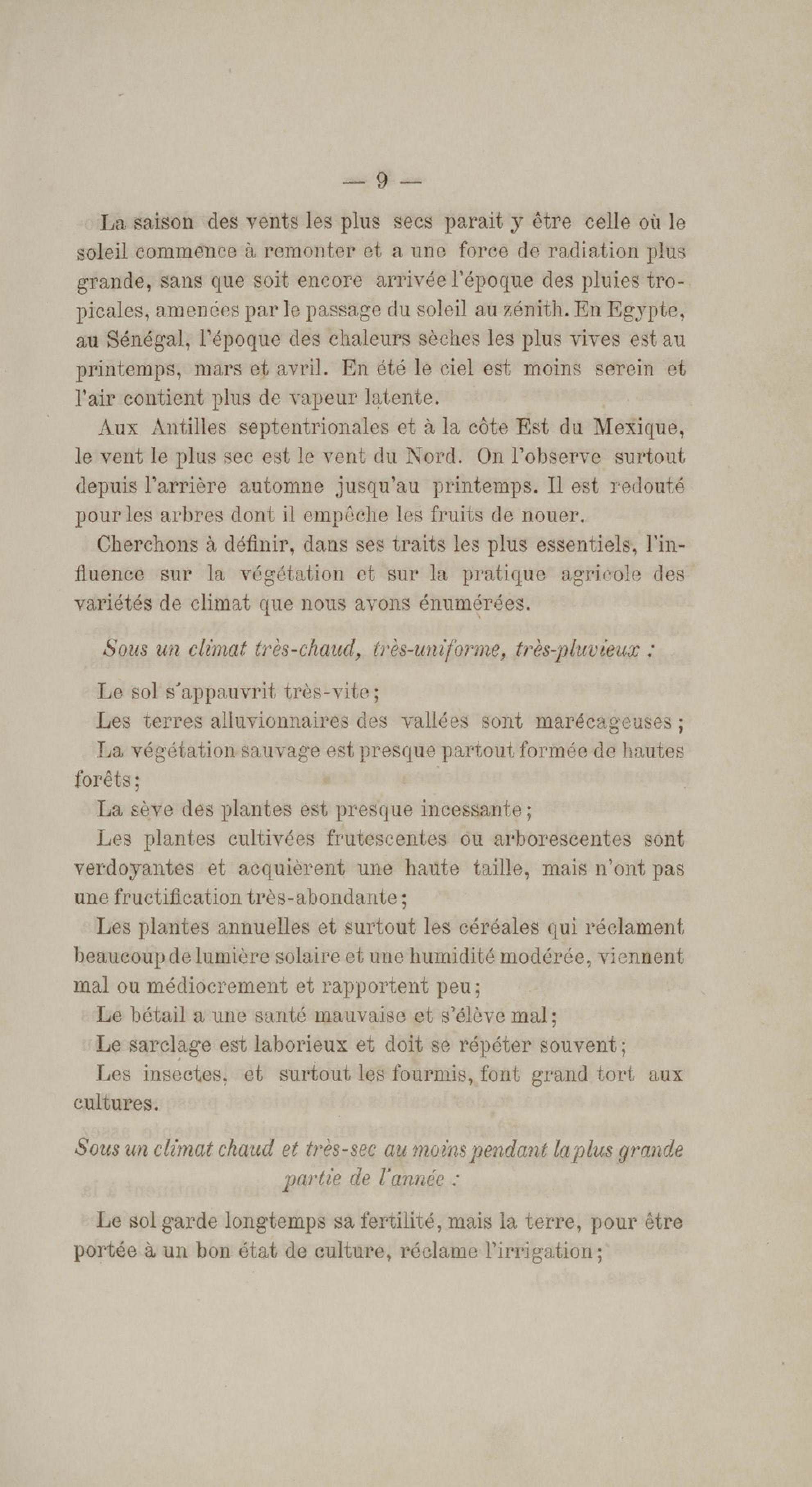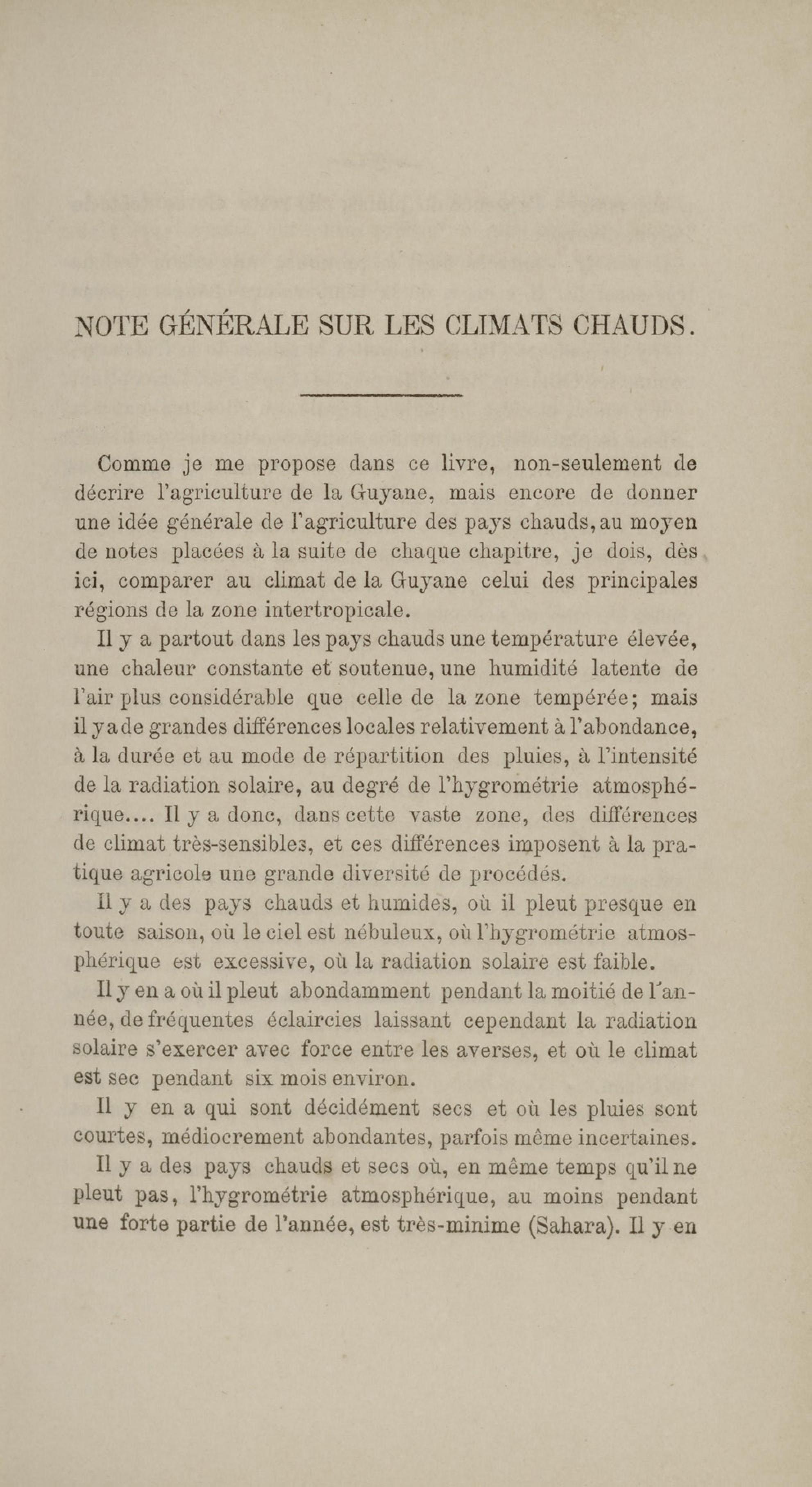 Note générale sur les climats chauds