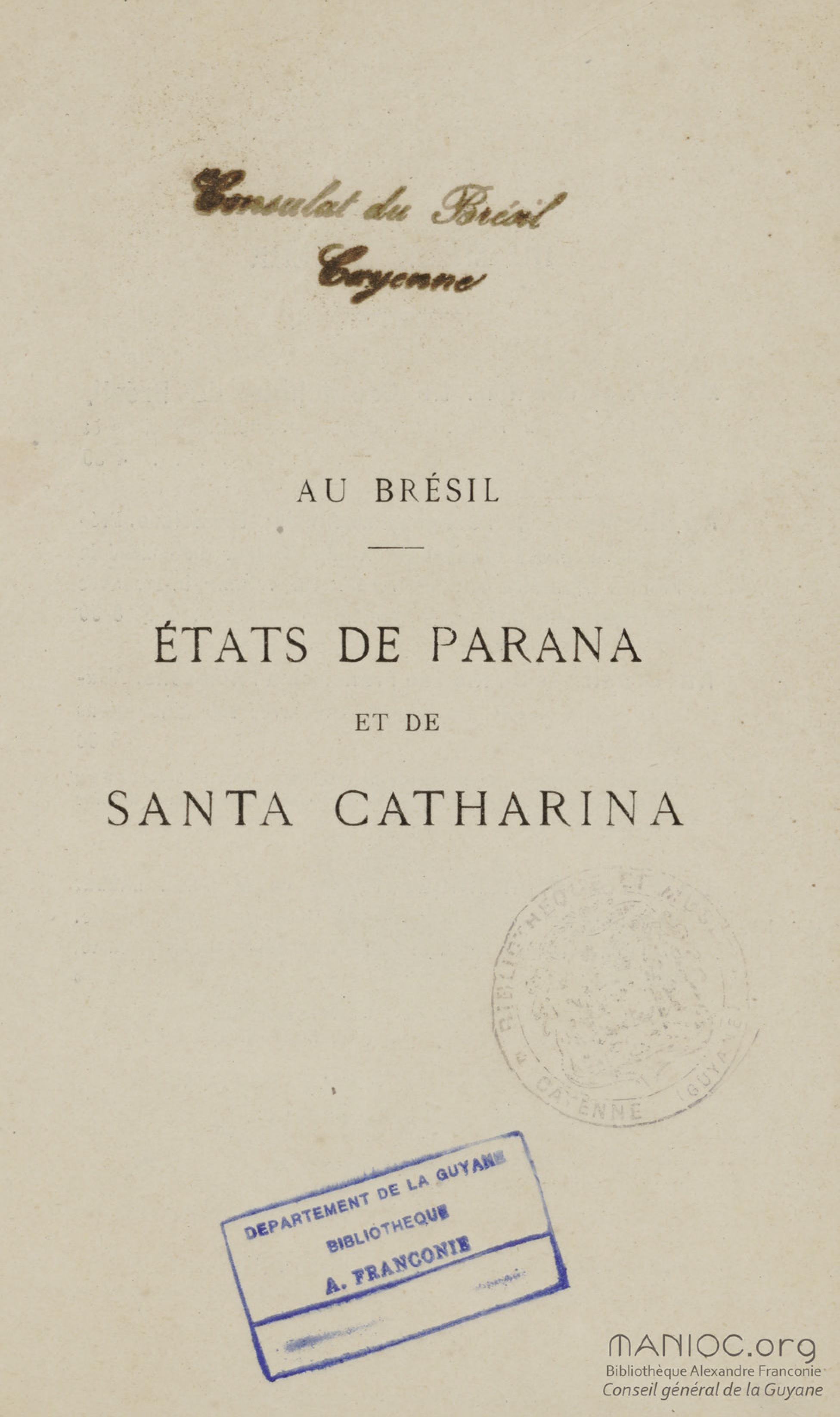 - Au Brésil. États de Parana et de Santa Catharina