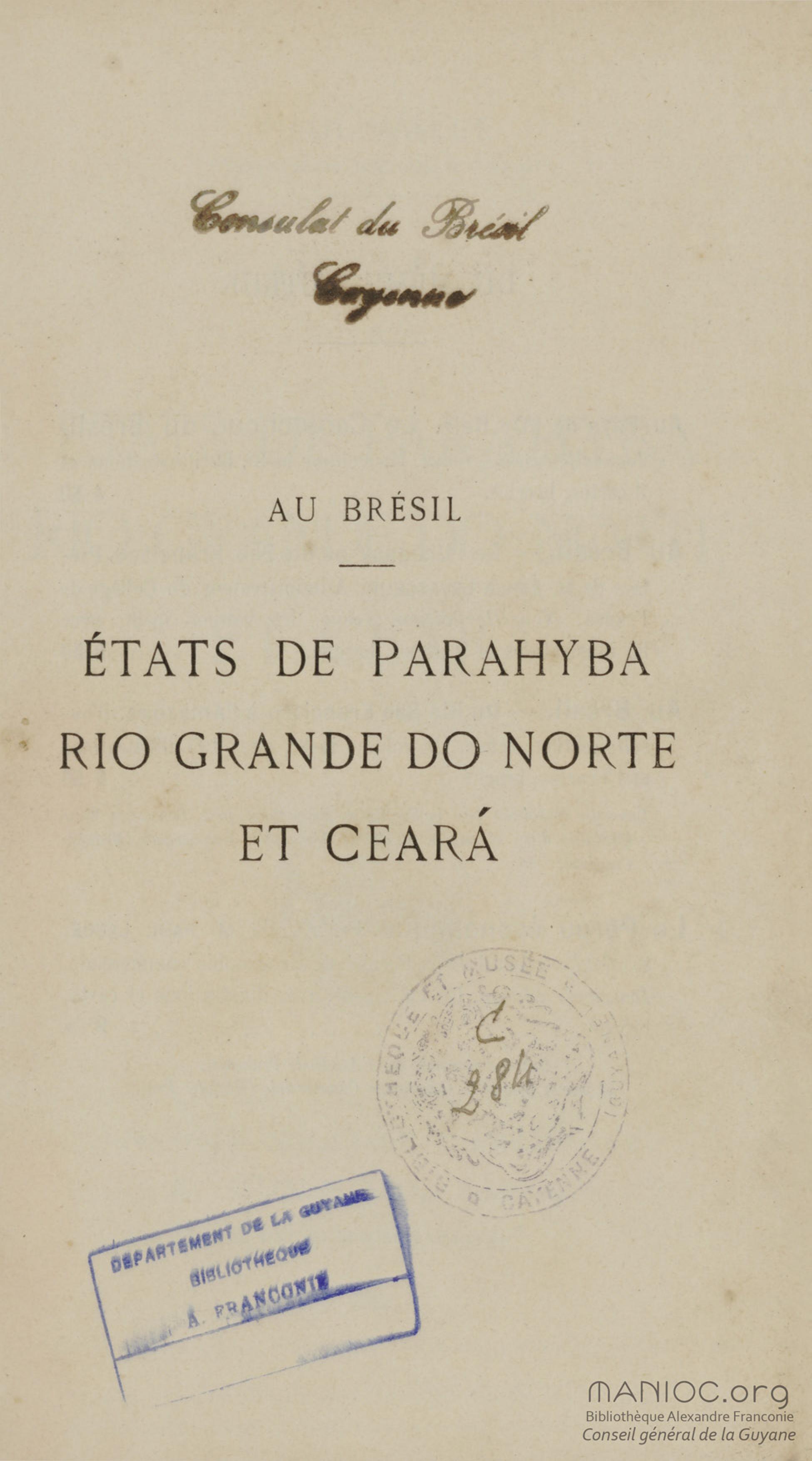 - Au Brésil. États de Parahyba, Rio Grande do Norte et Ceara