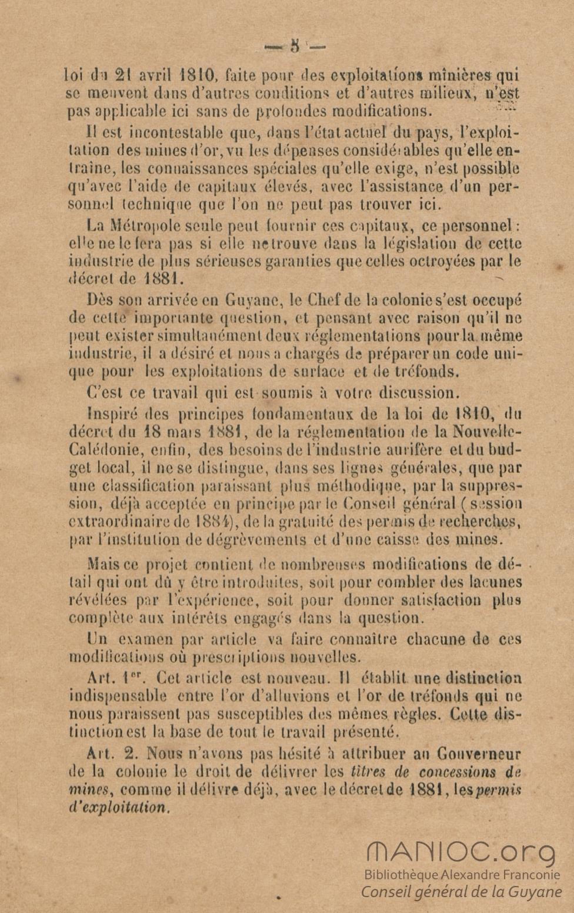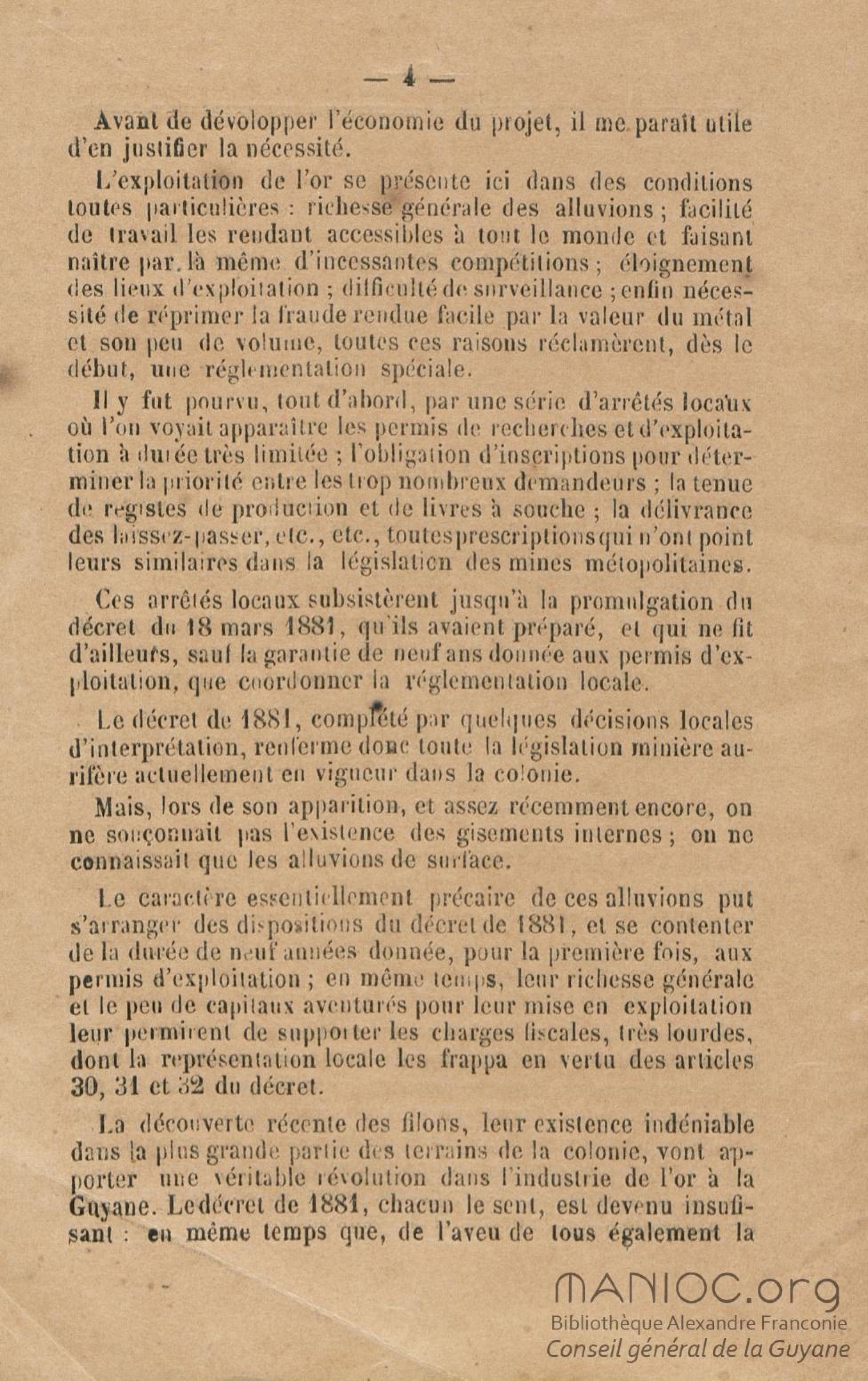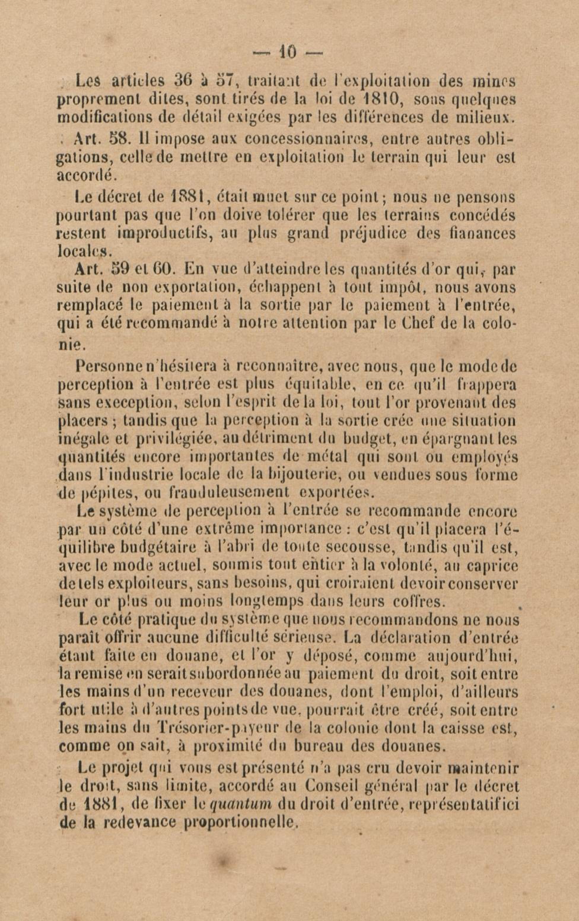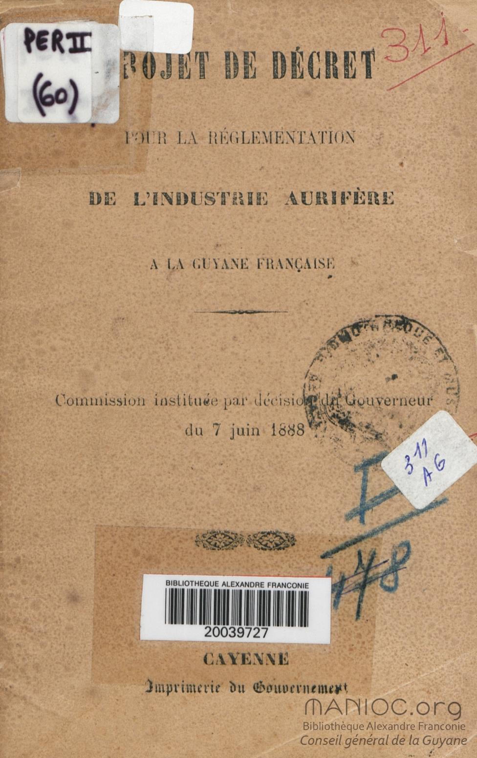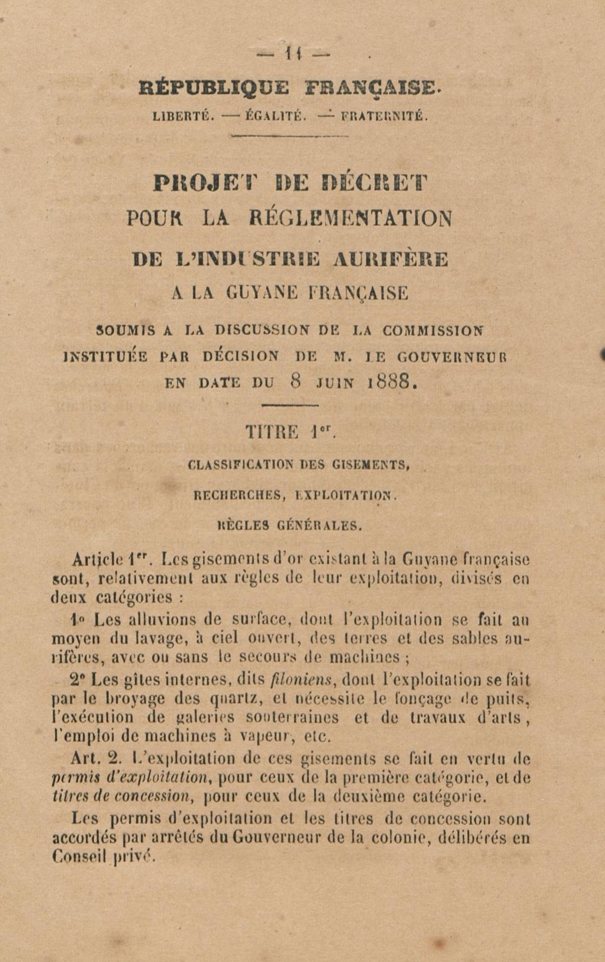 Projet de décret pour la réglementation de l'industrie aurifère à la Guyane française