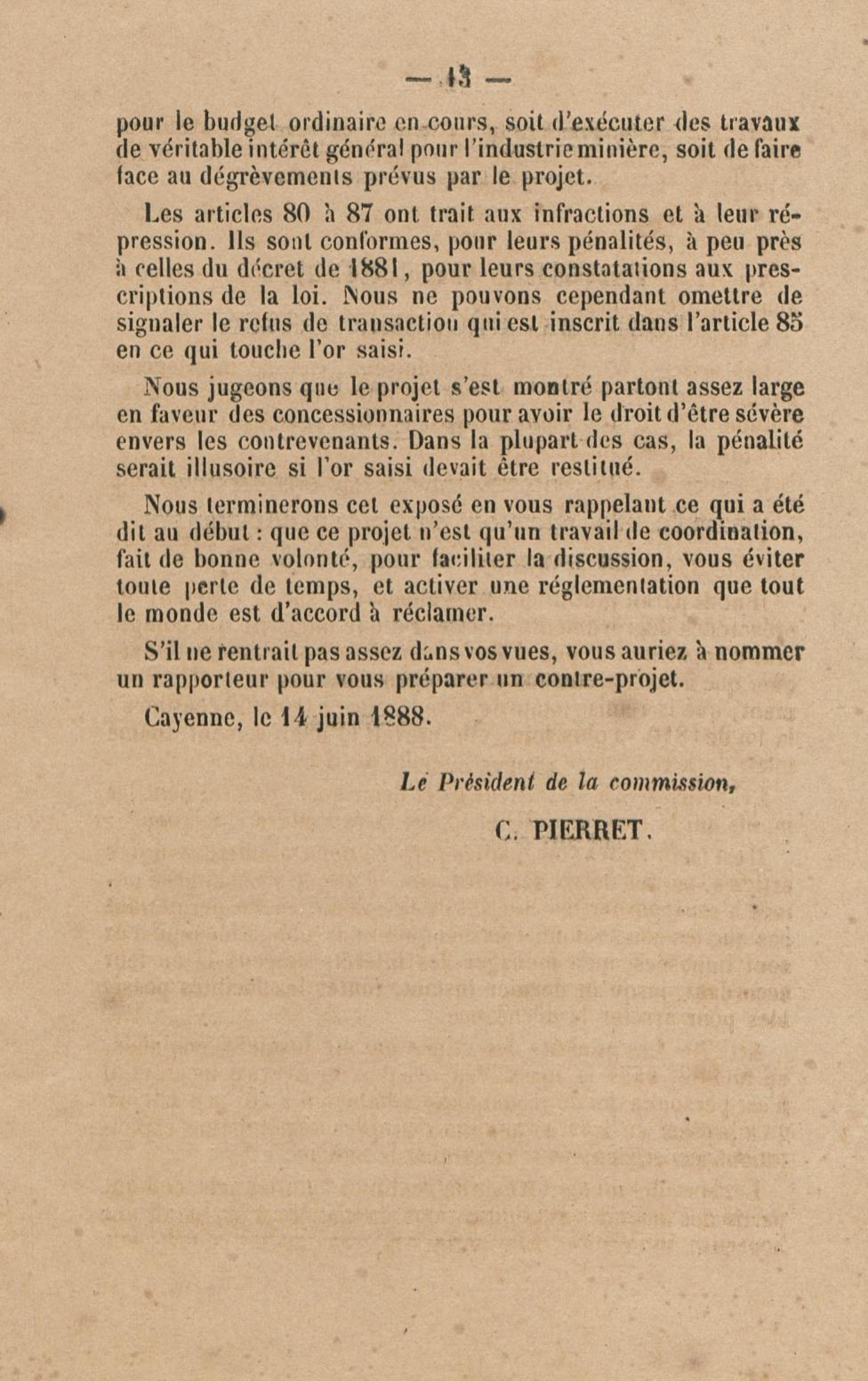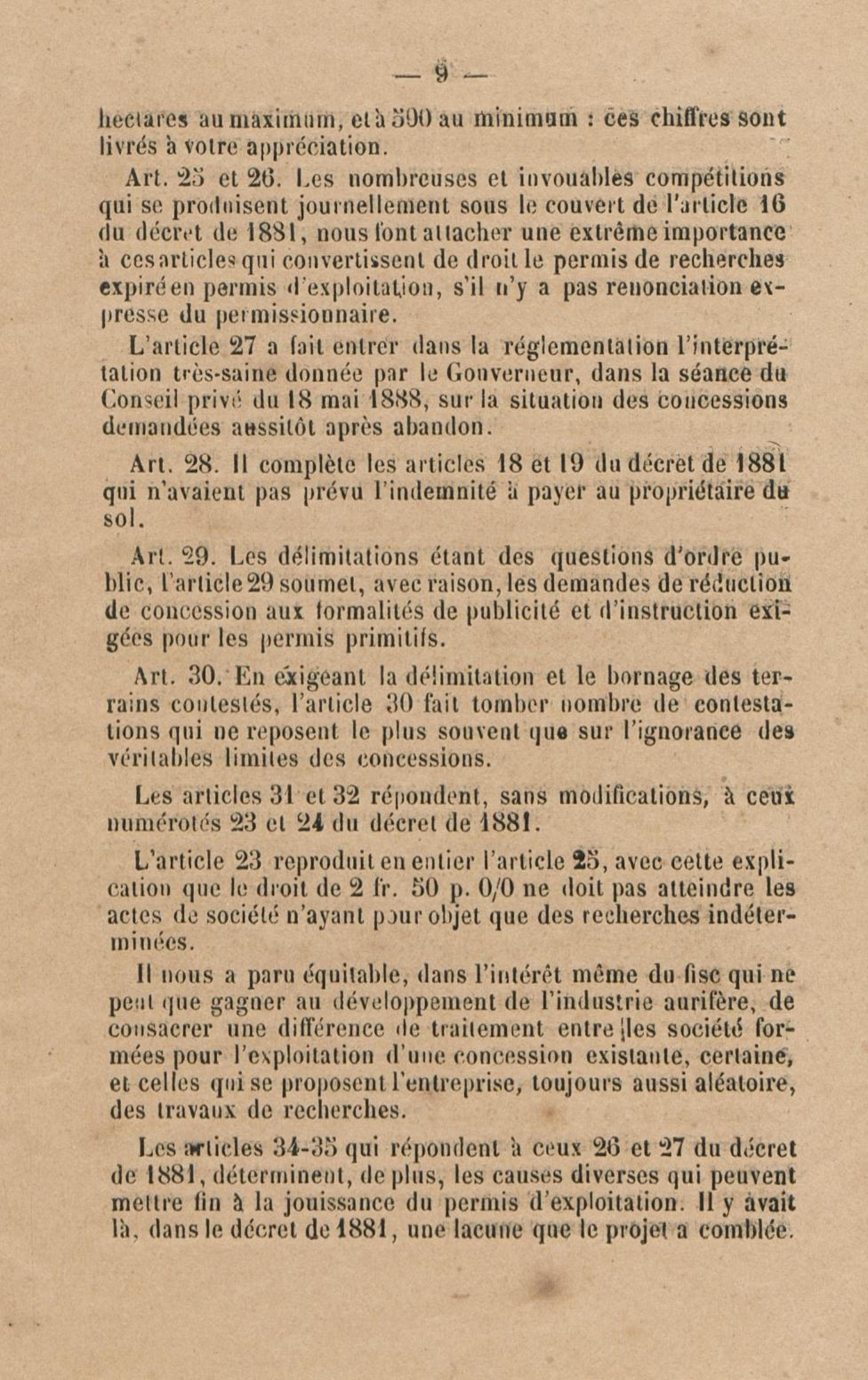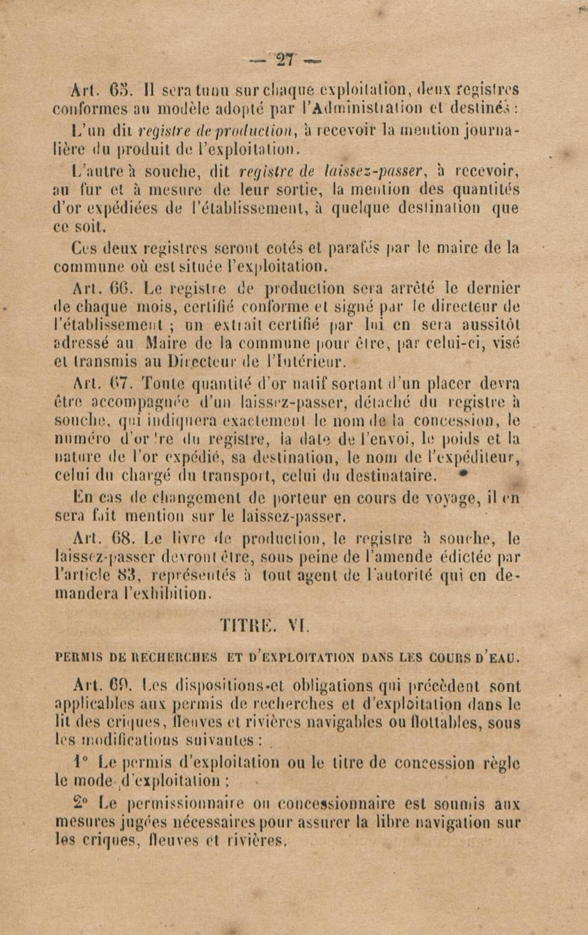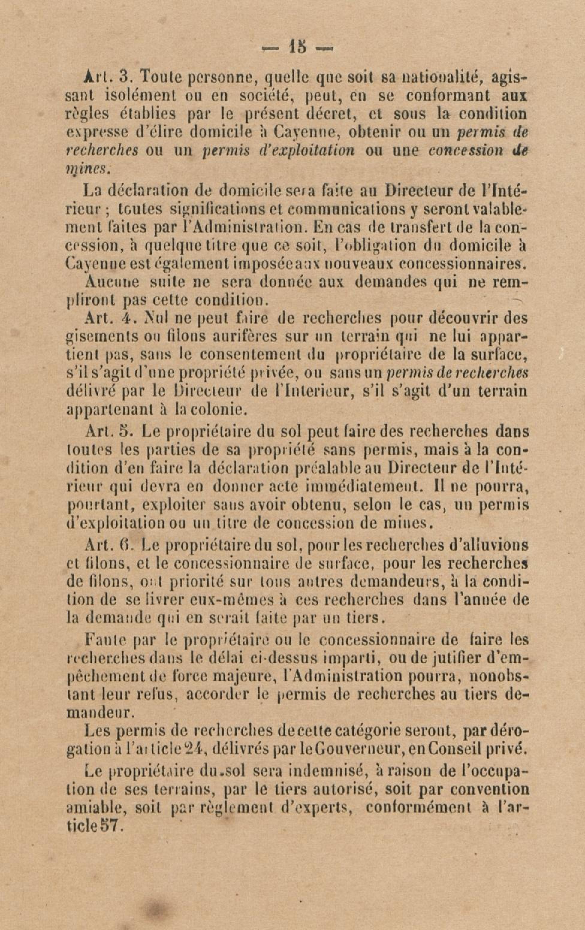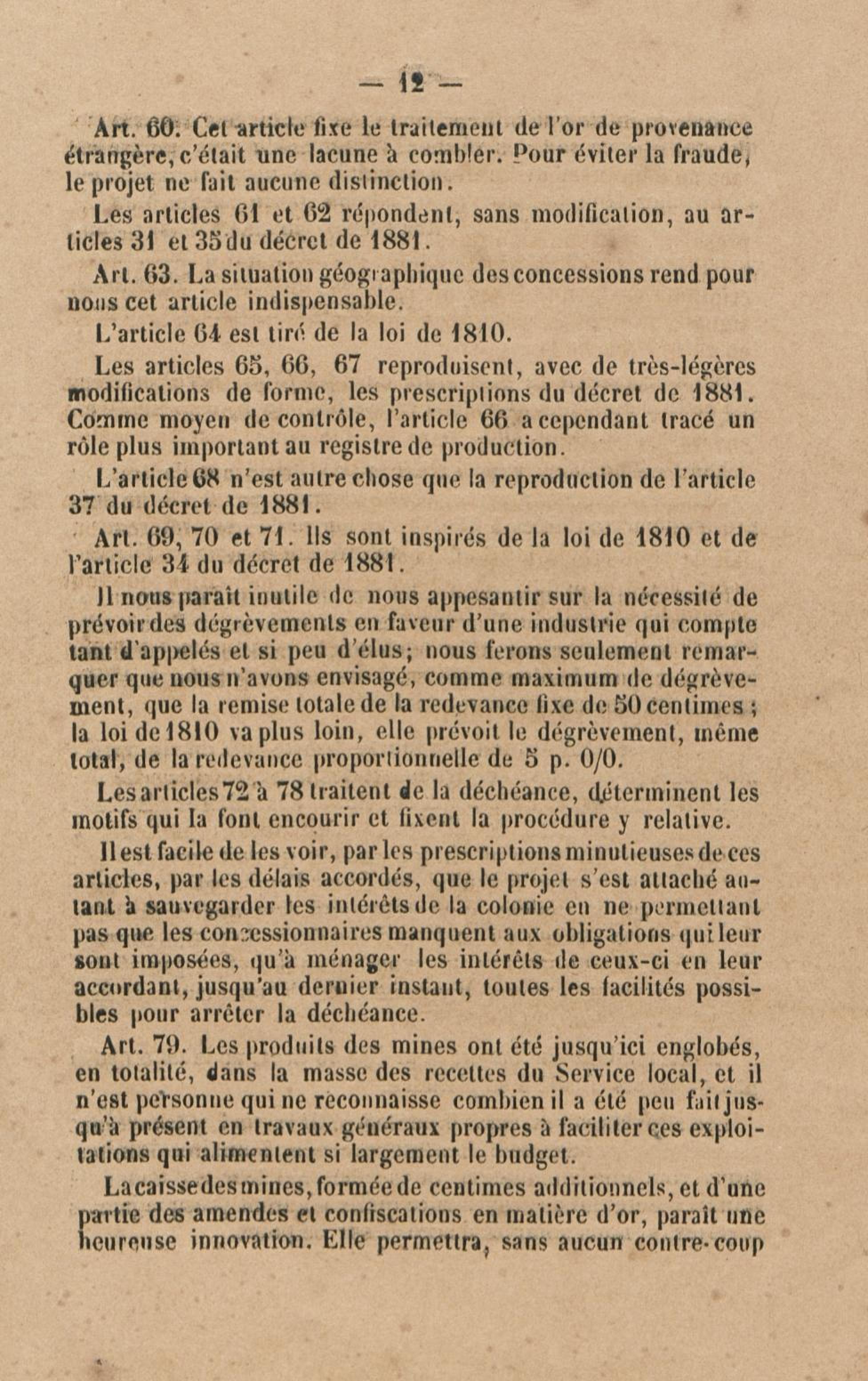 Projet de décret pour la réglementation de l'industrie aurifère à la Guyane française
