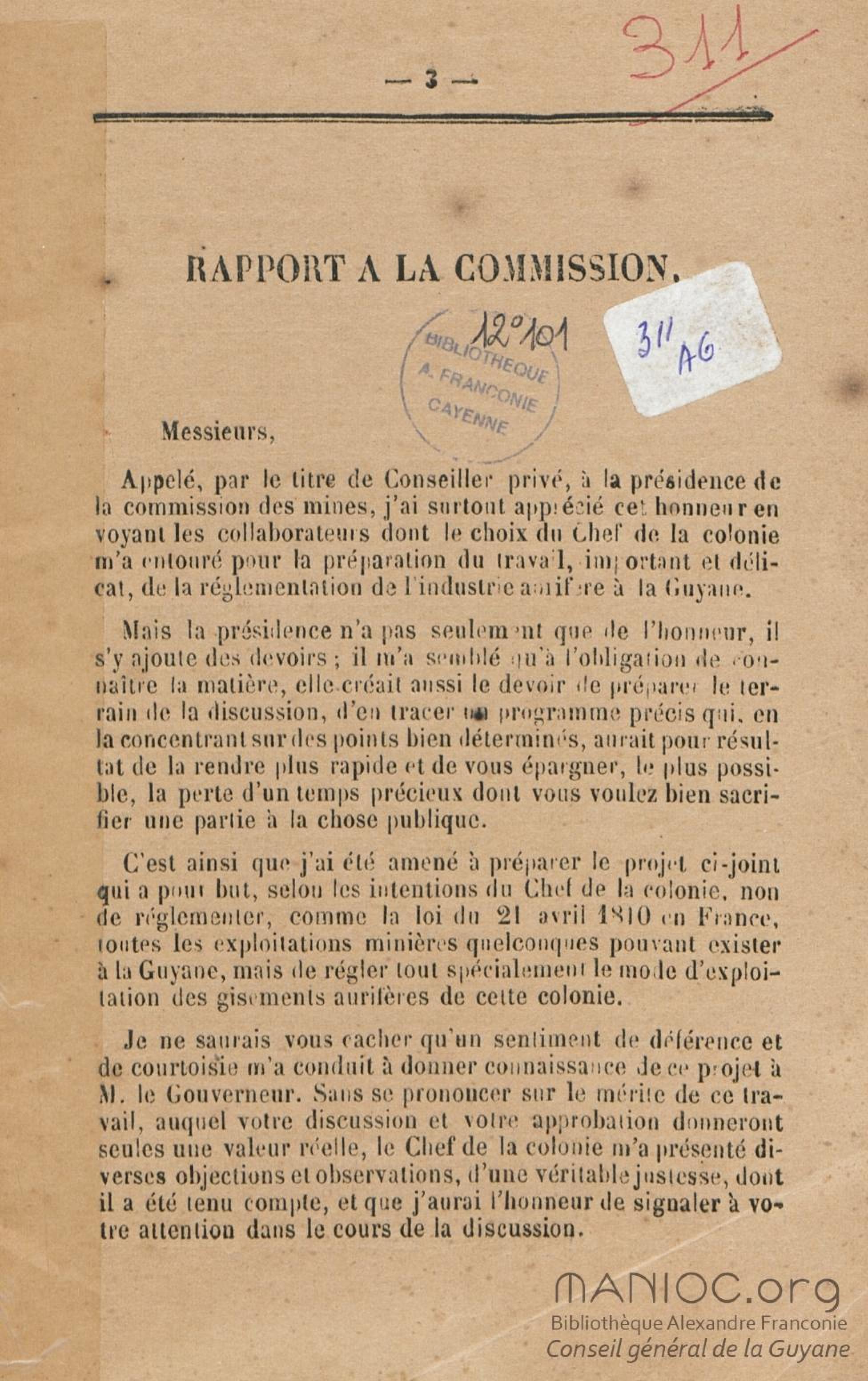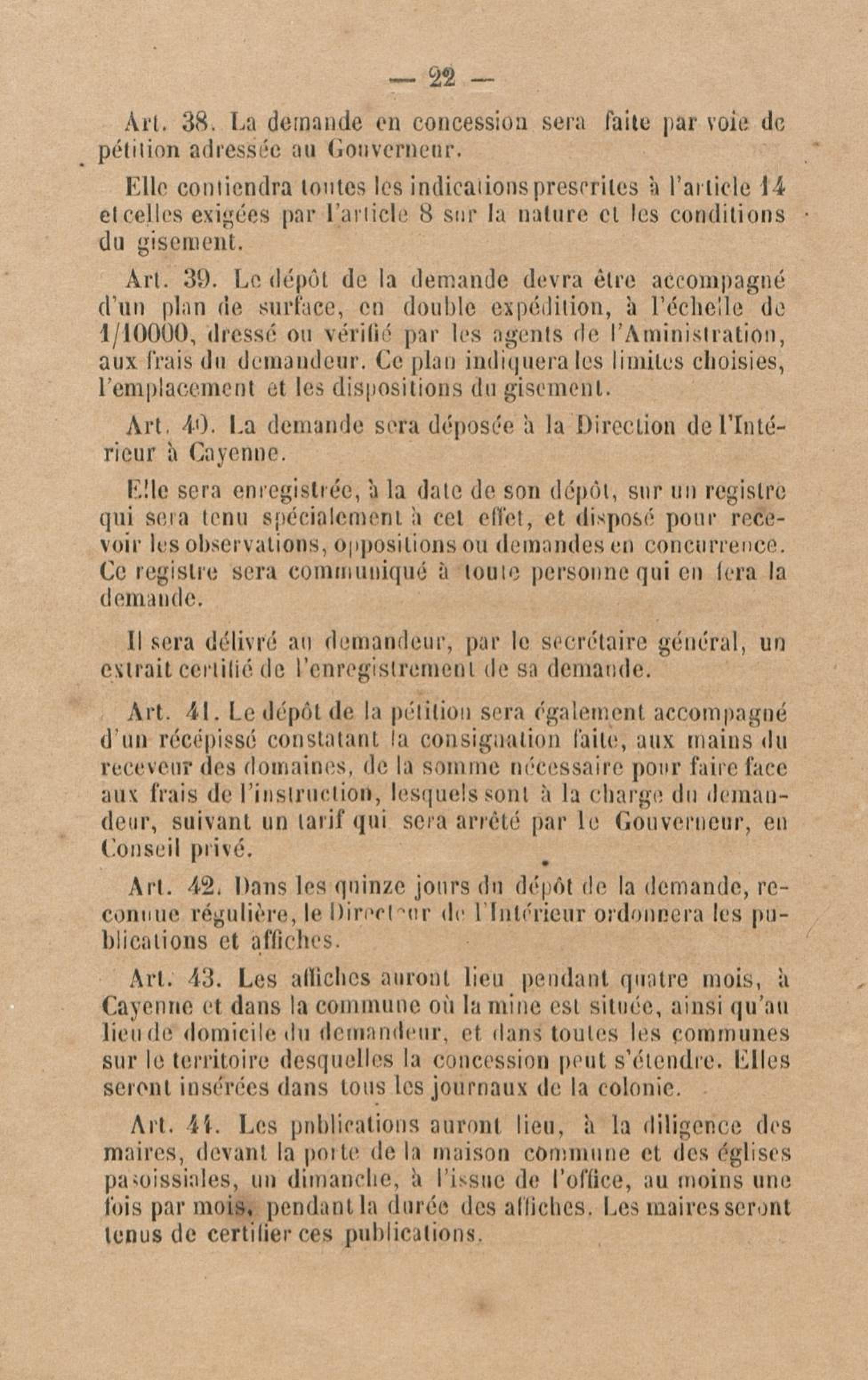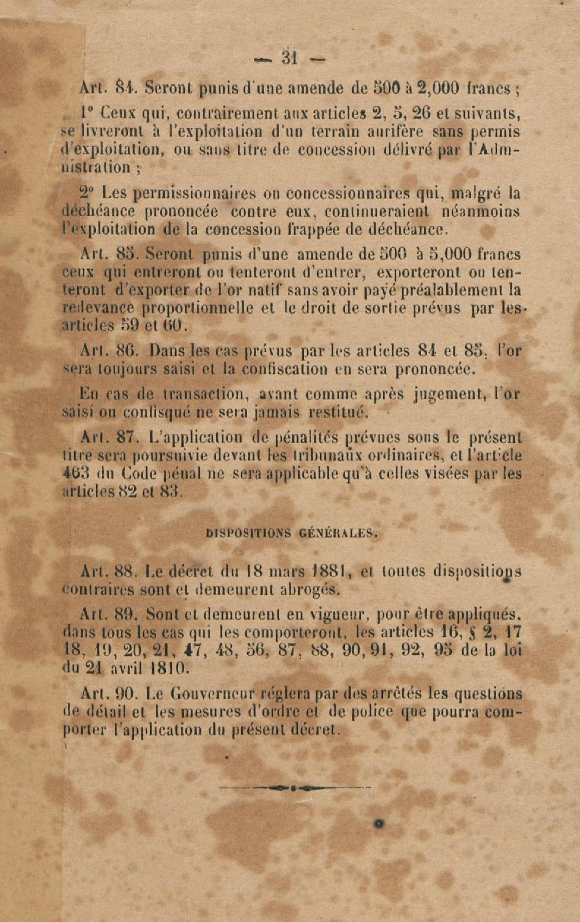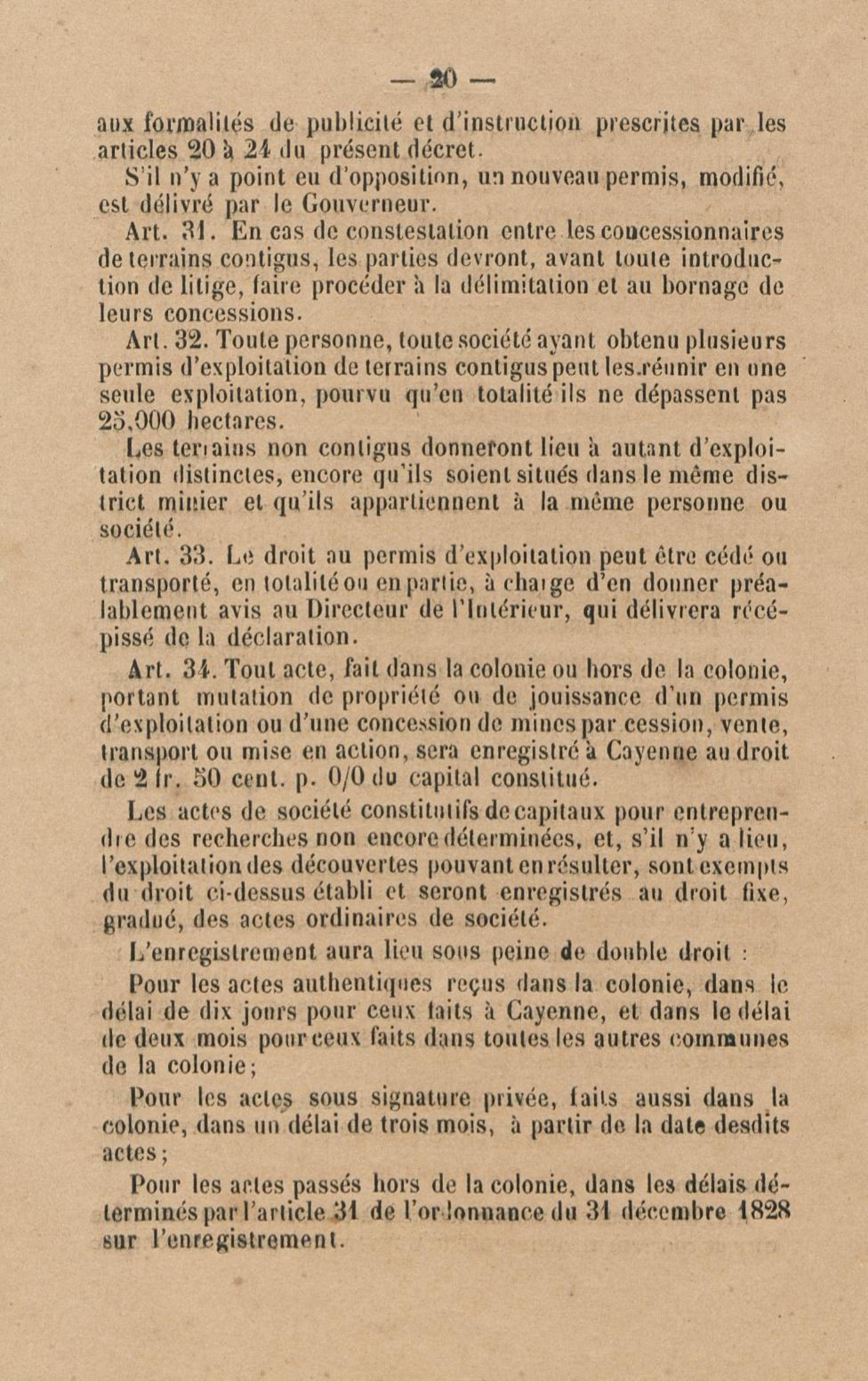 Projet de décret pour la réglementation de l'industrie aurifère à la Guyane française