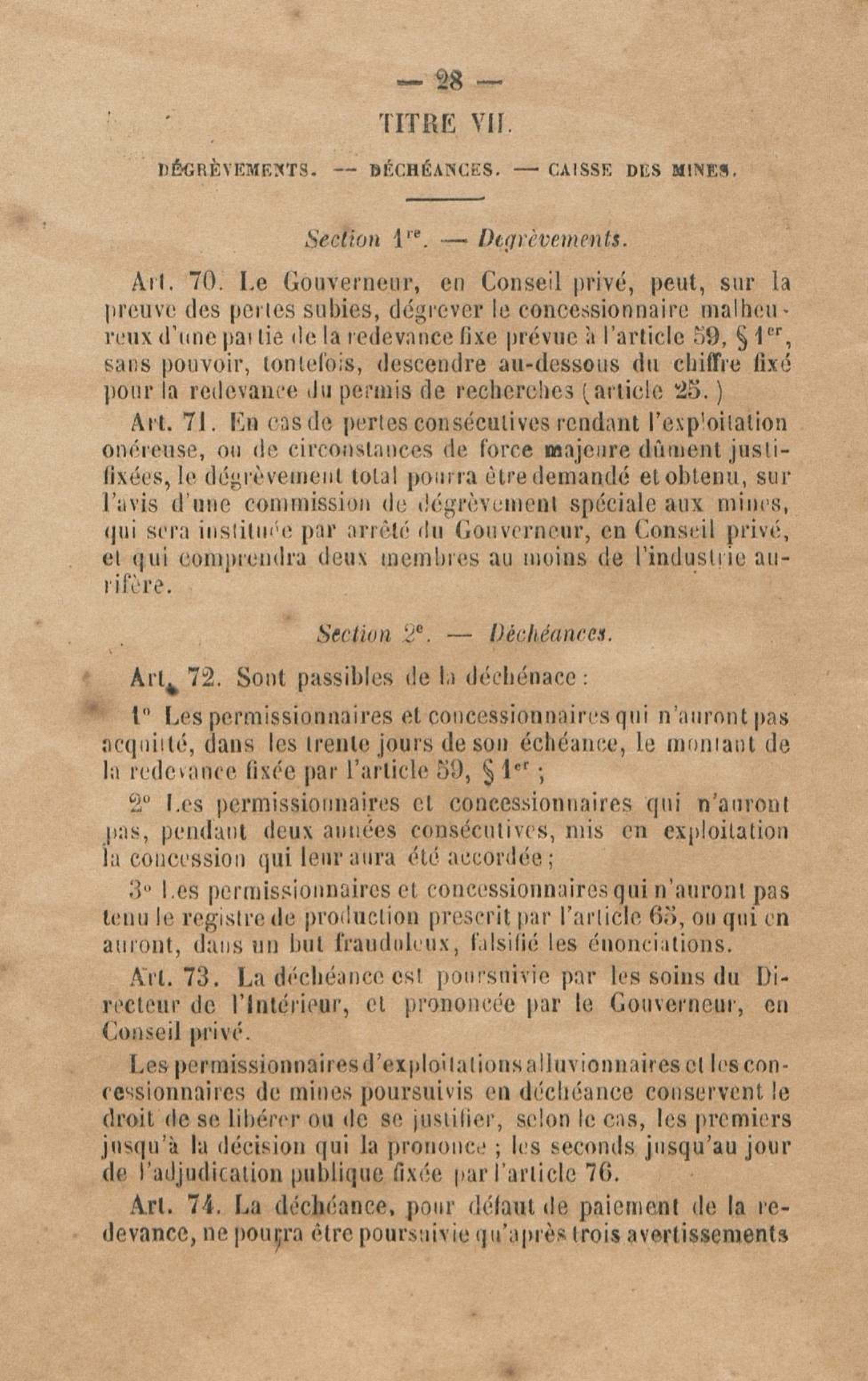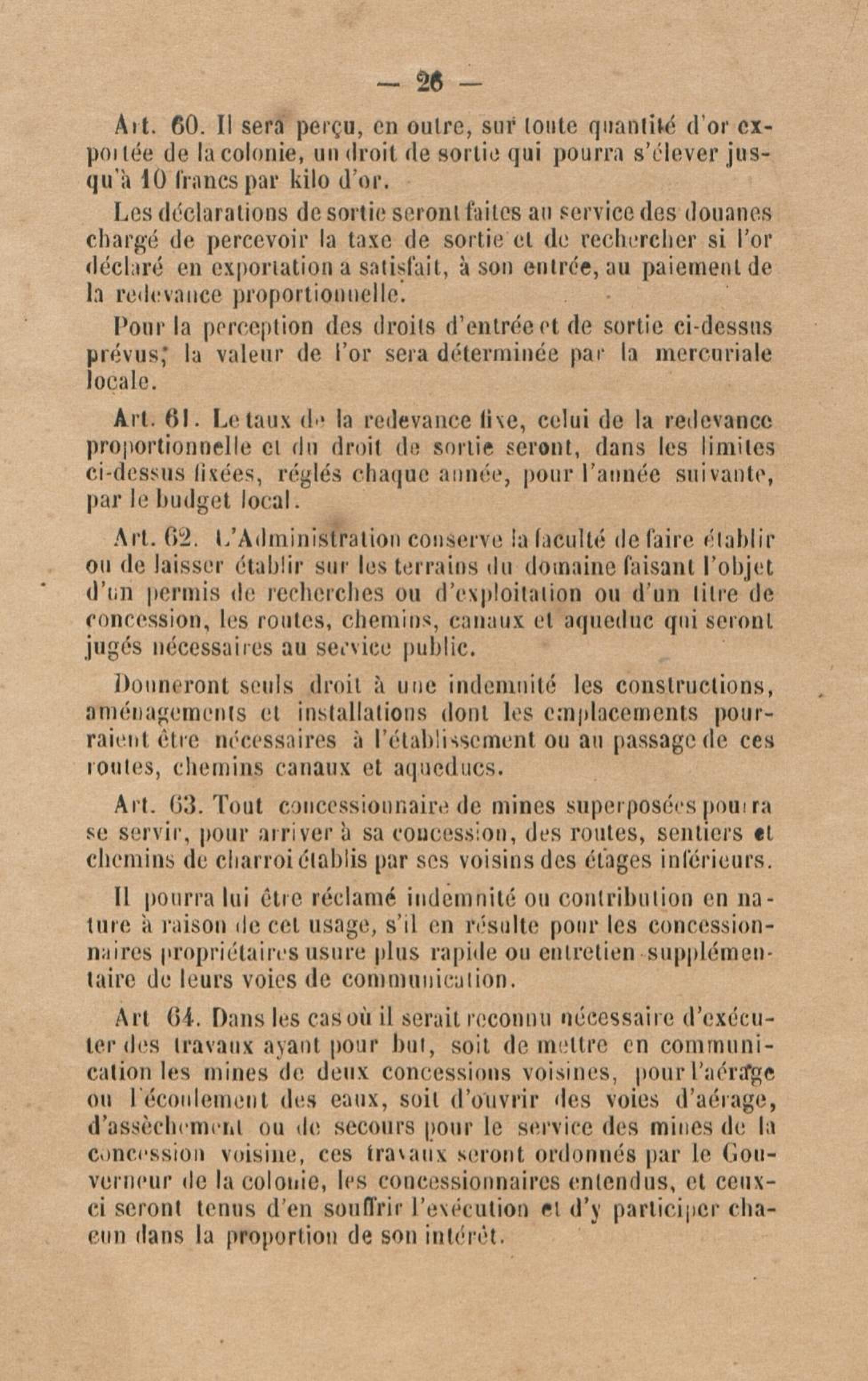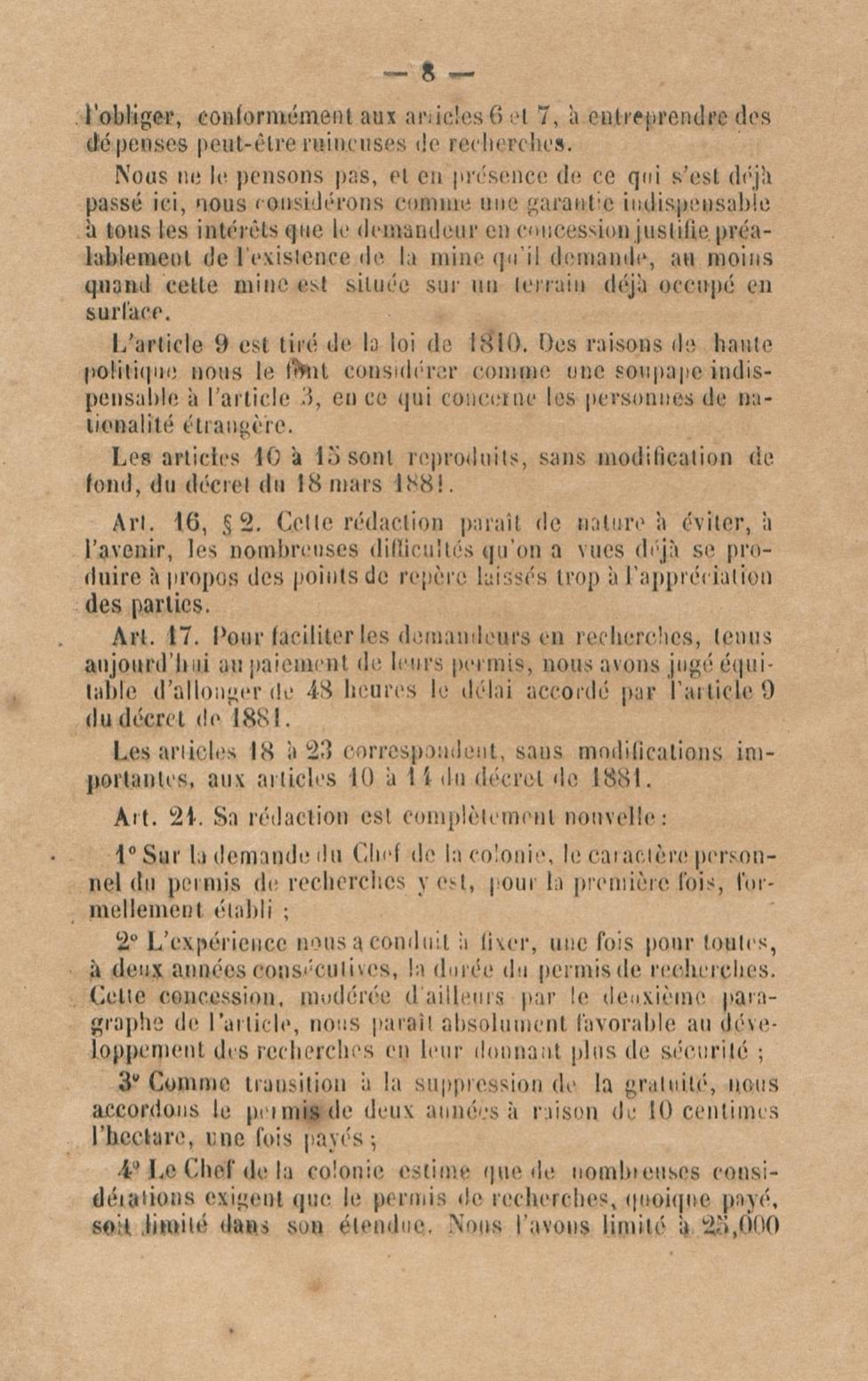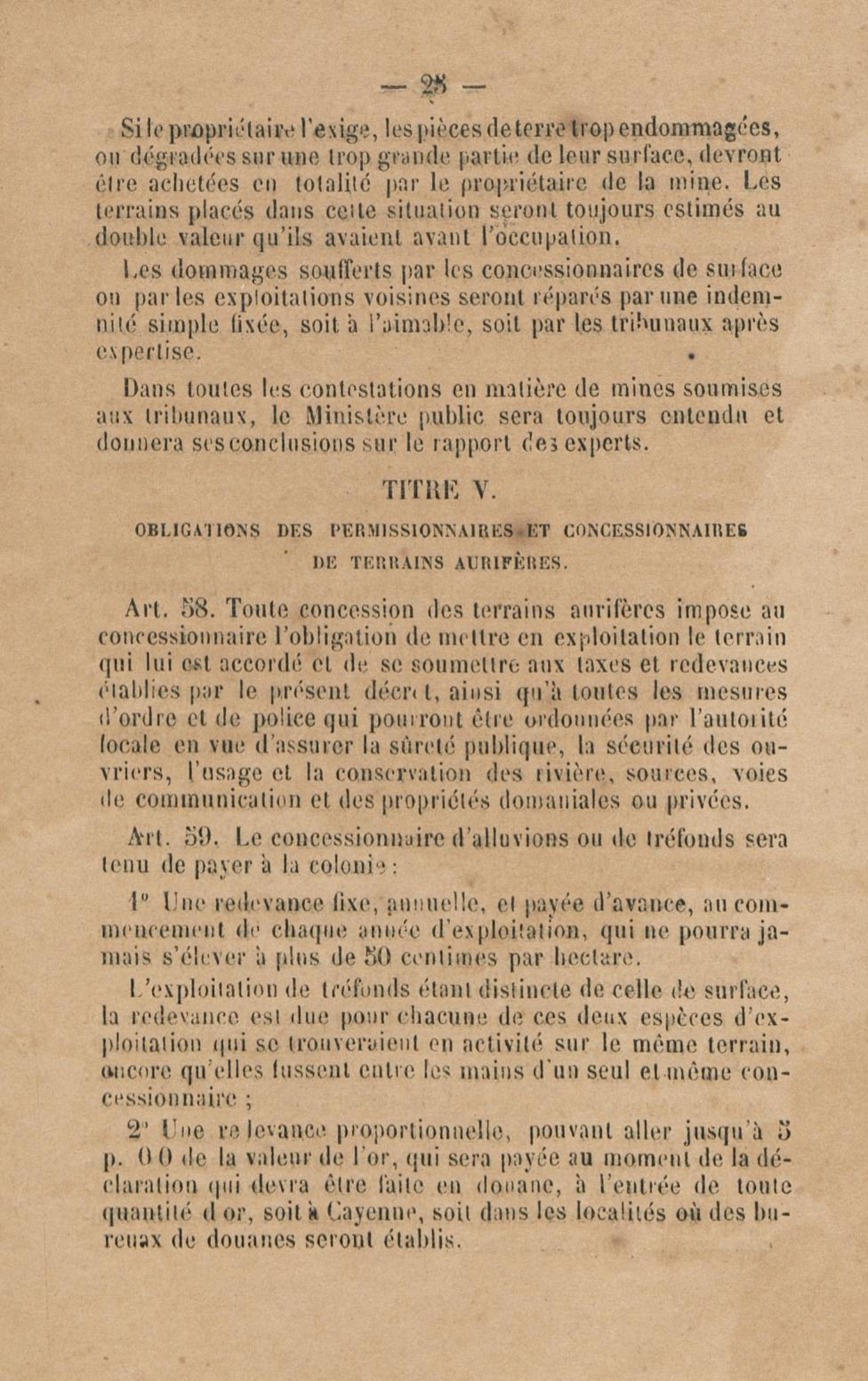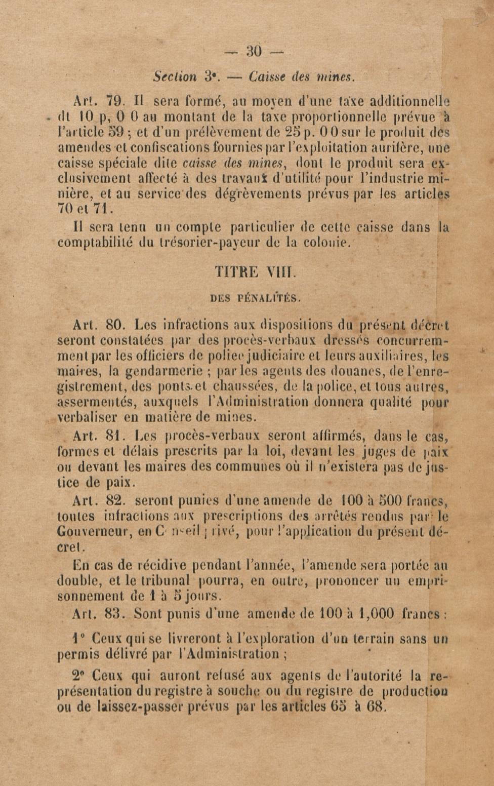 Projet de décret pour la réglementation de l'industrie aurifère à la Guyane française