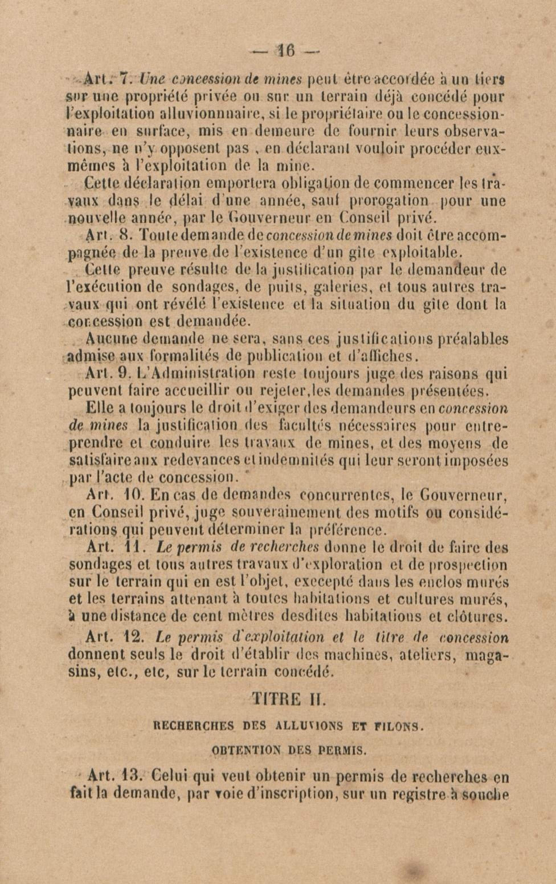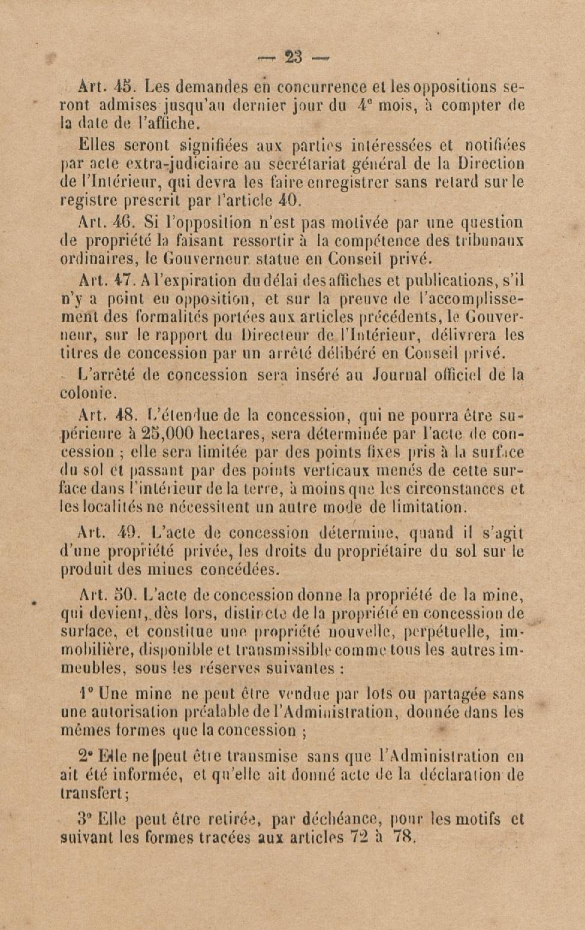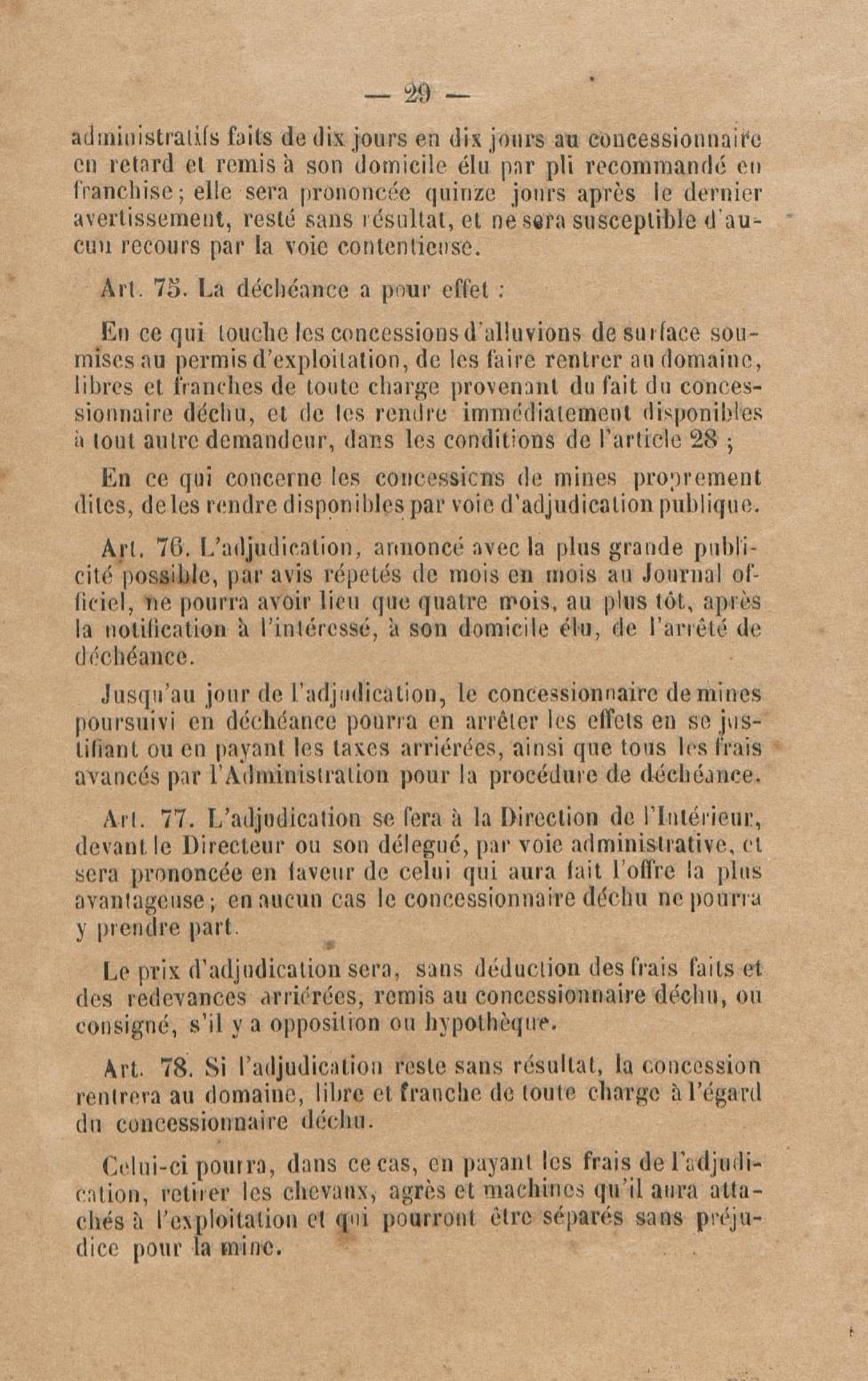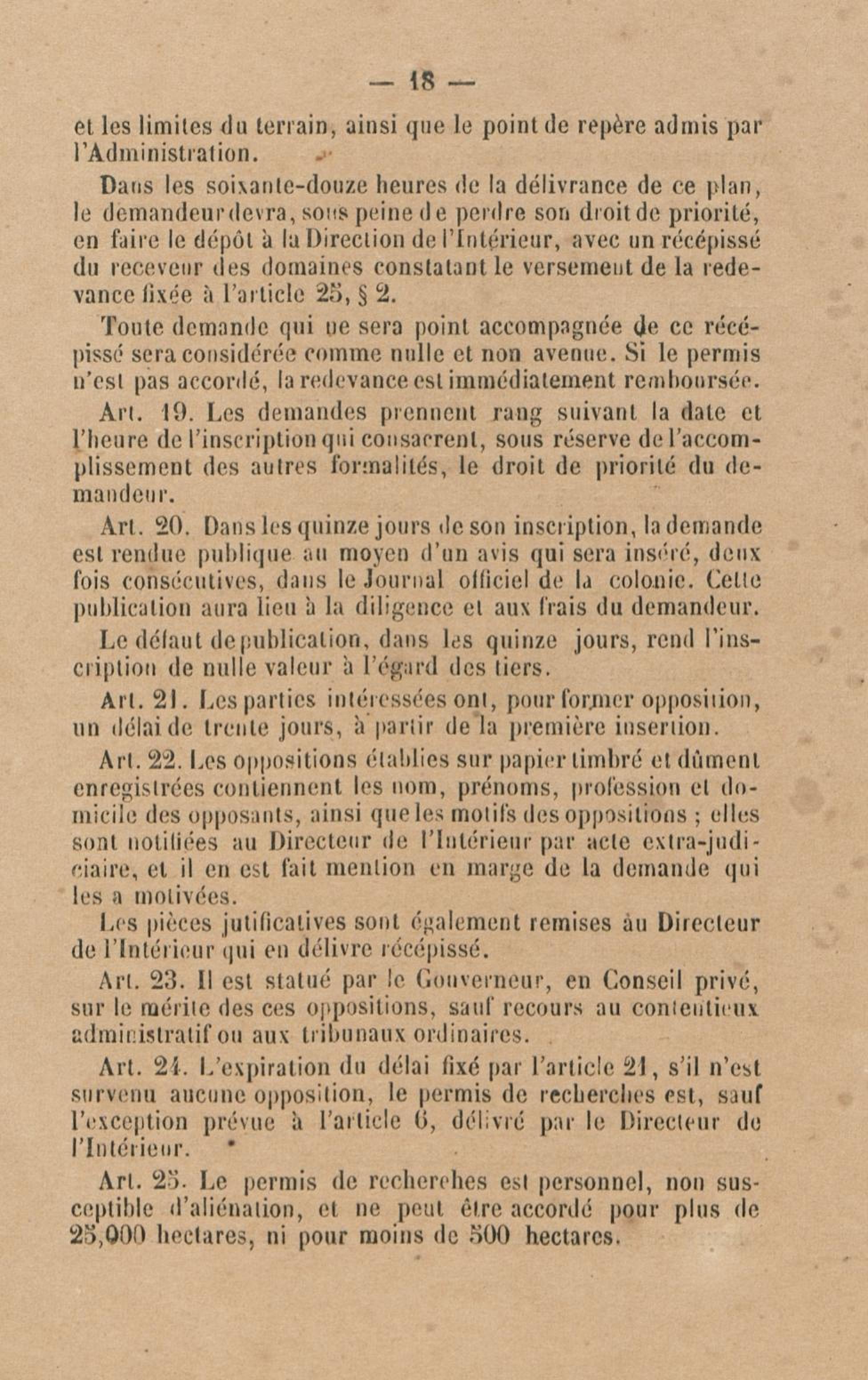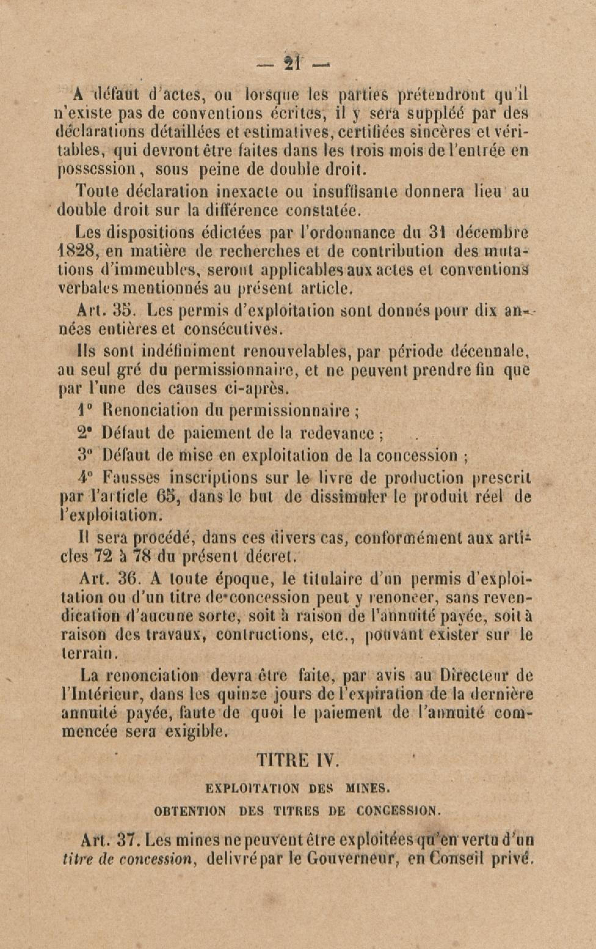 Projet de décret pour la réglementation de l'industrie aurifère à la Guyane française