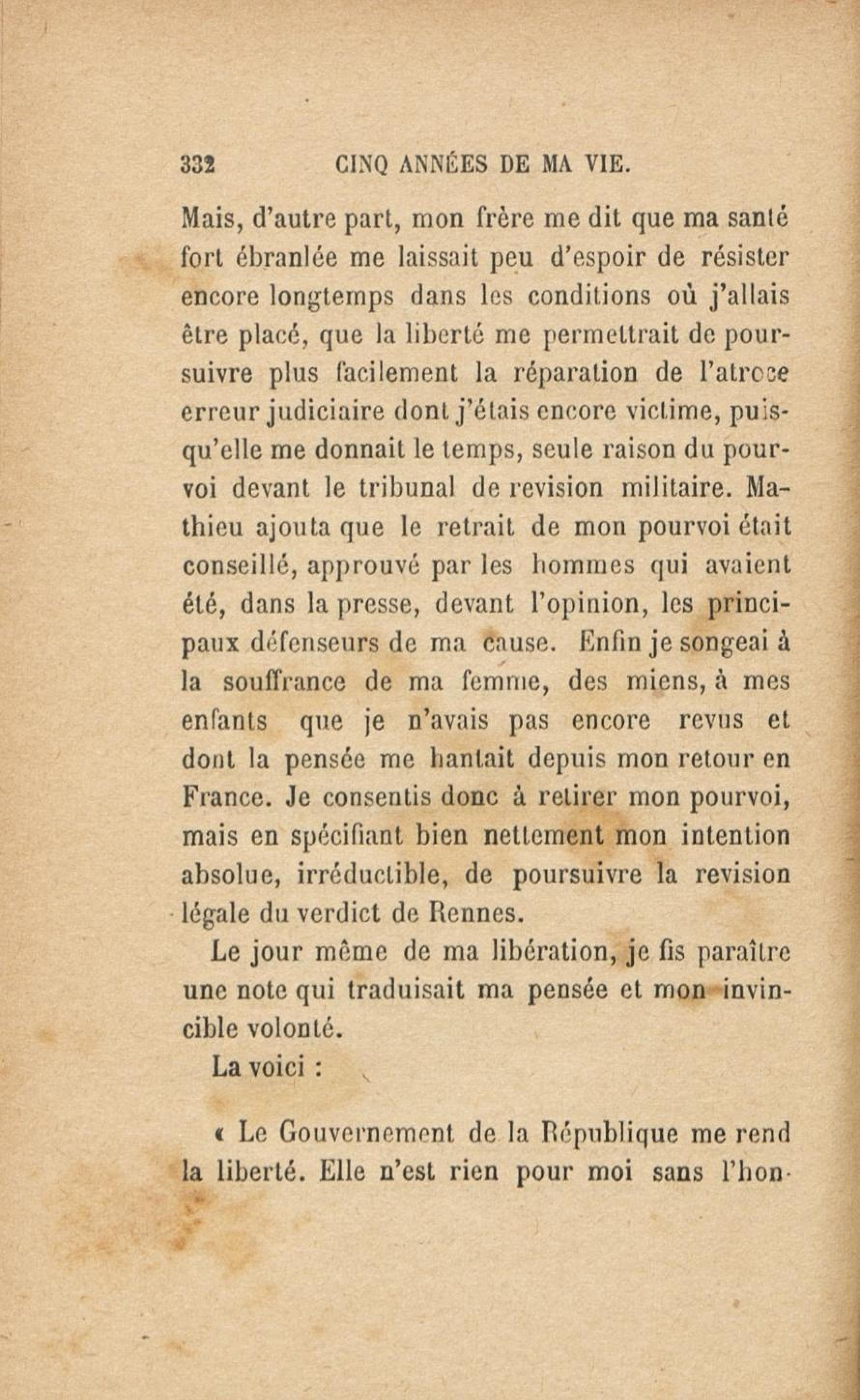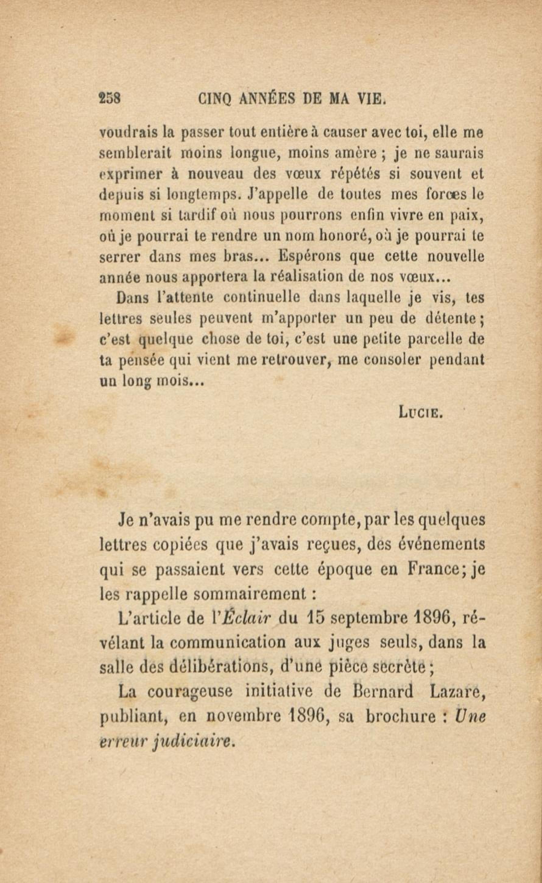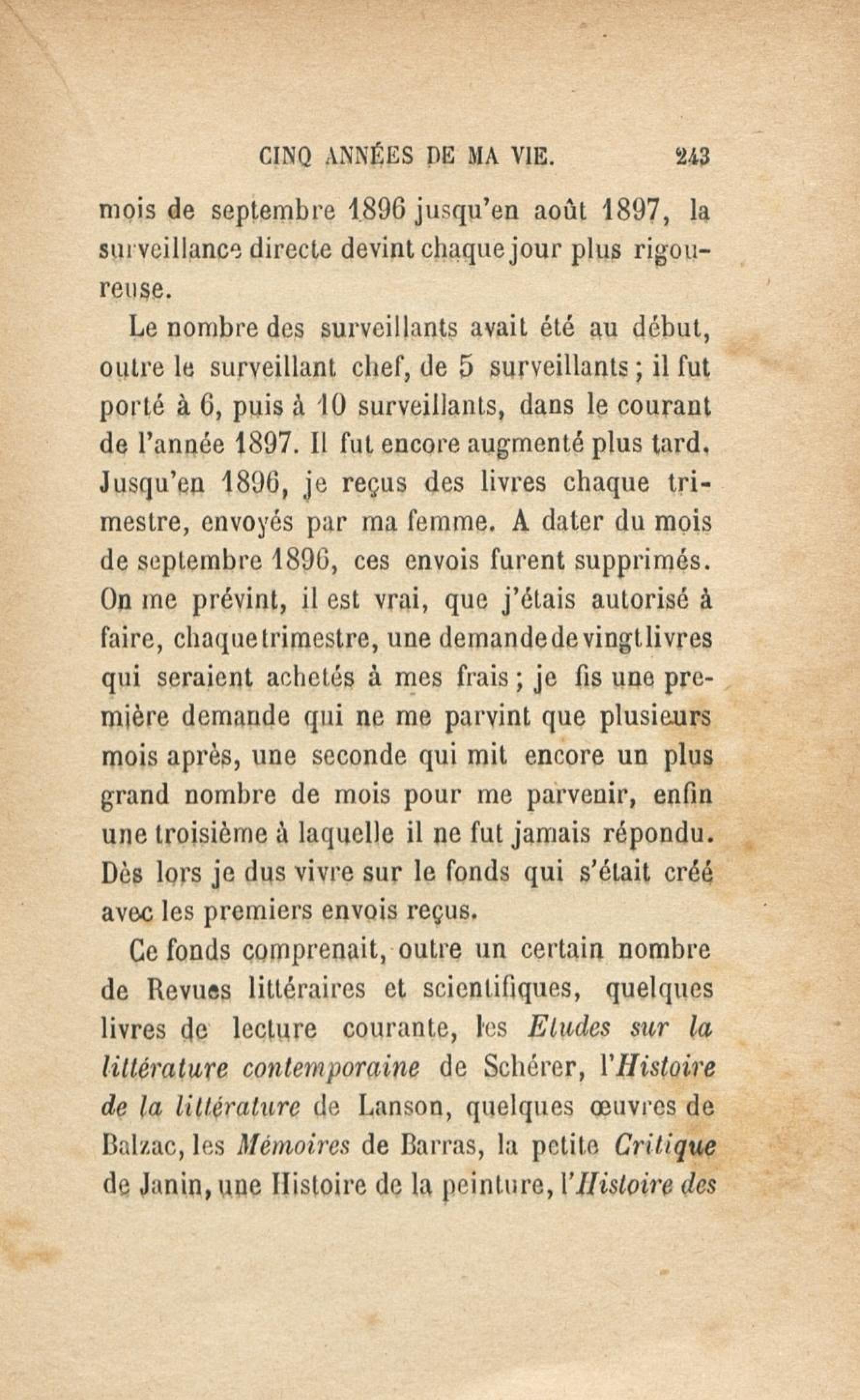 - Cinq années de ma vie : 1894-1899