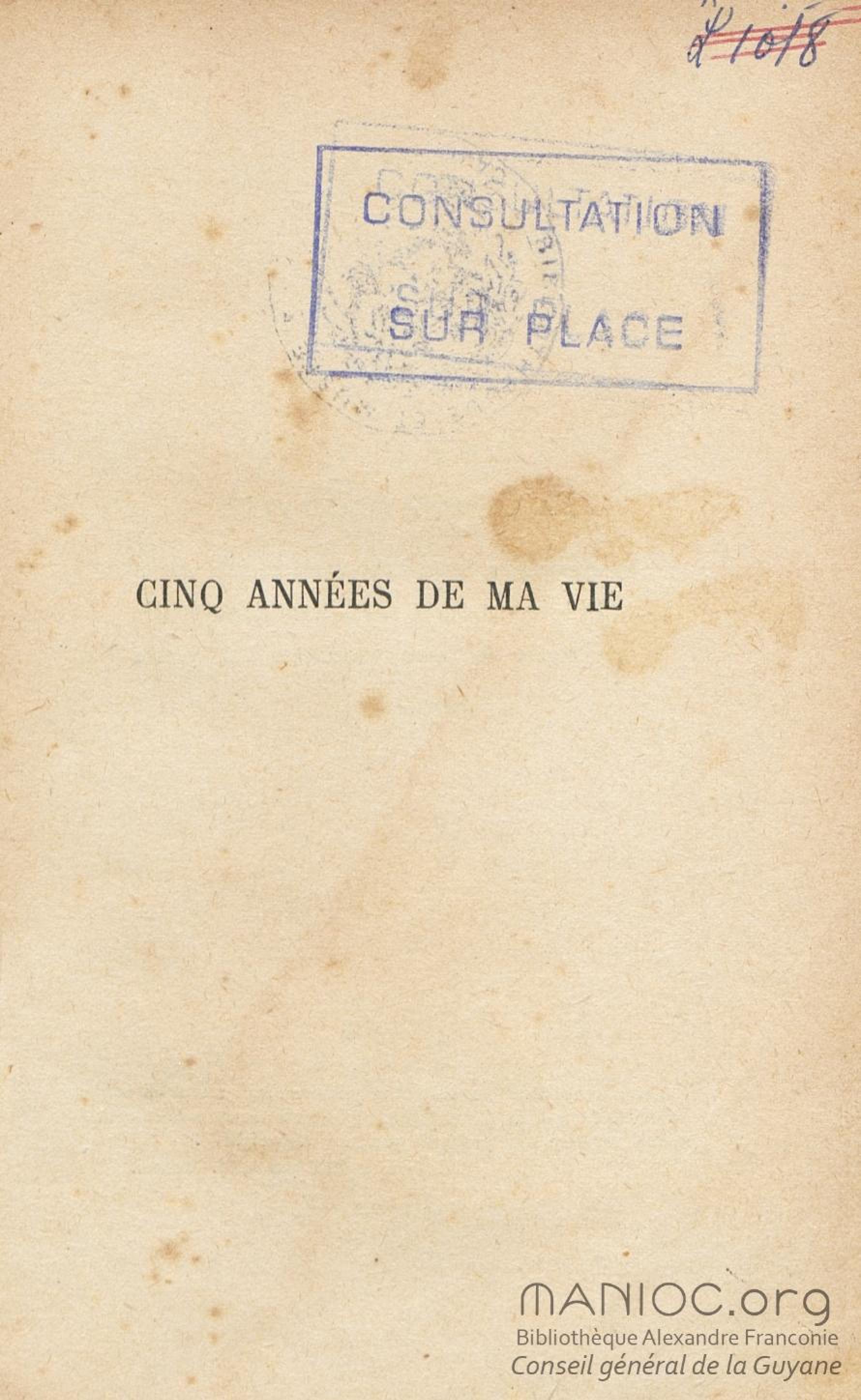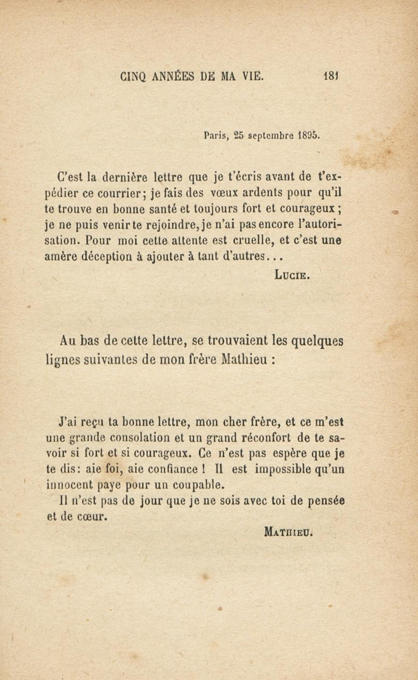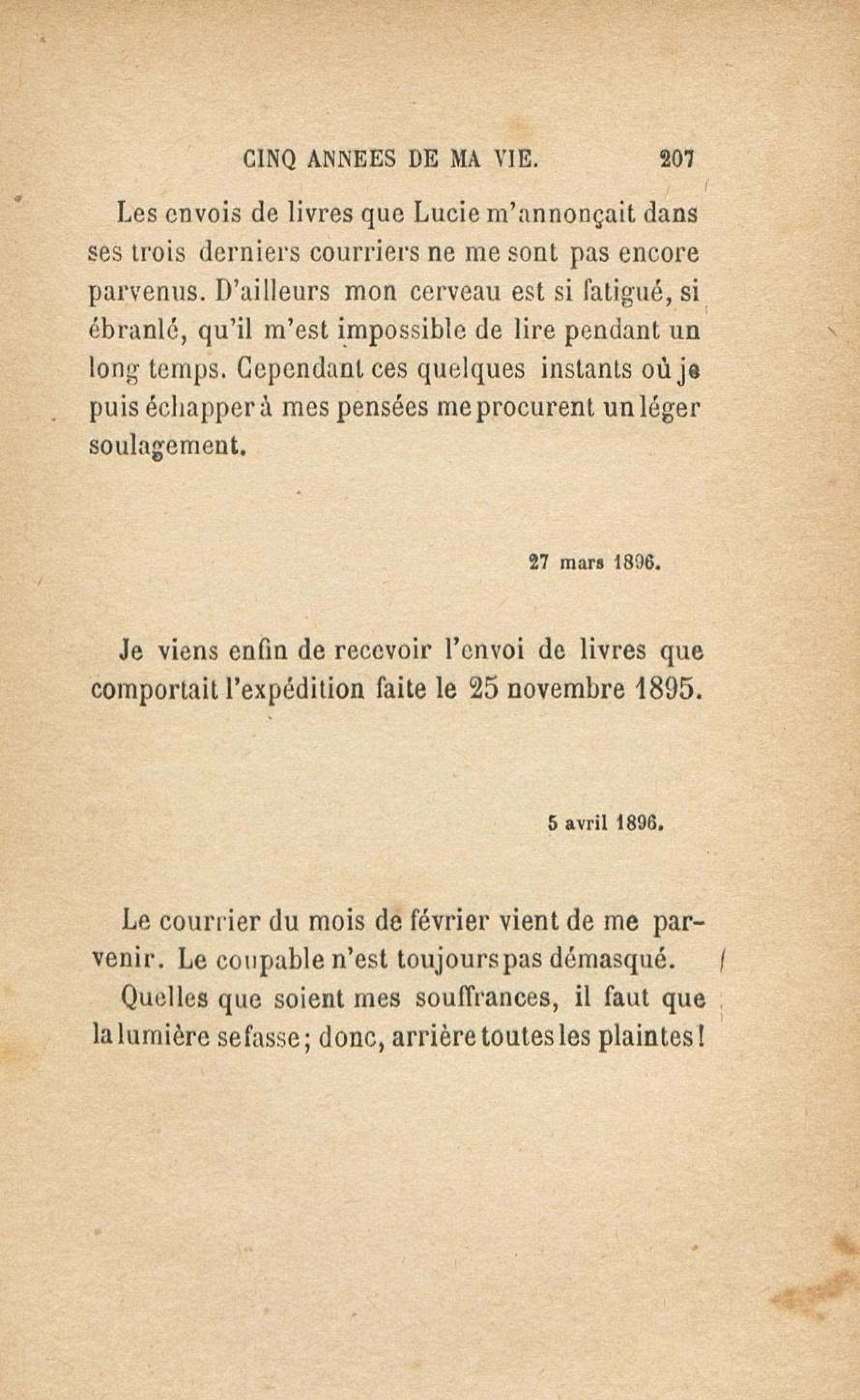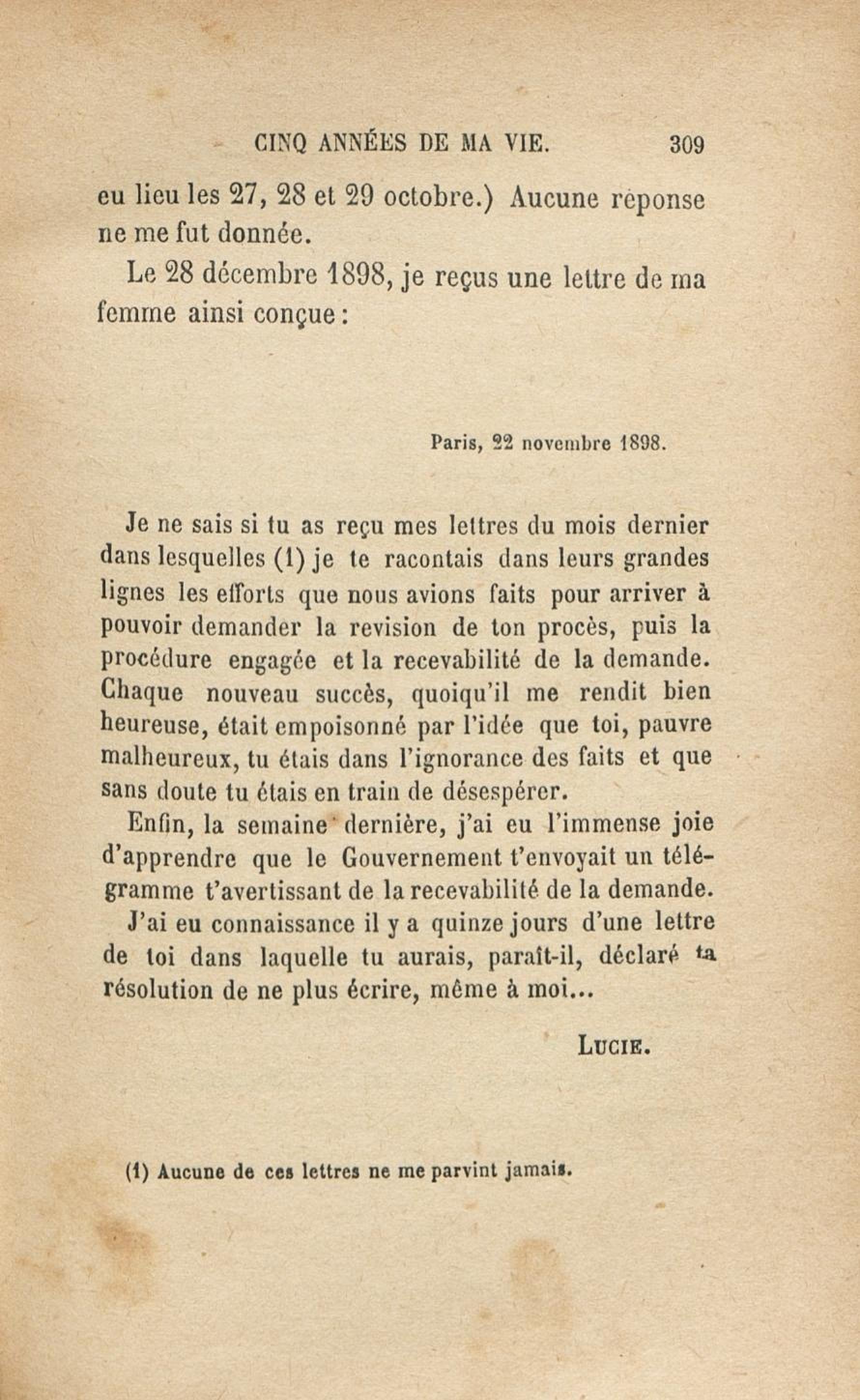 - Cinq années de ma vie : 1894-1899