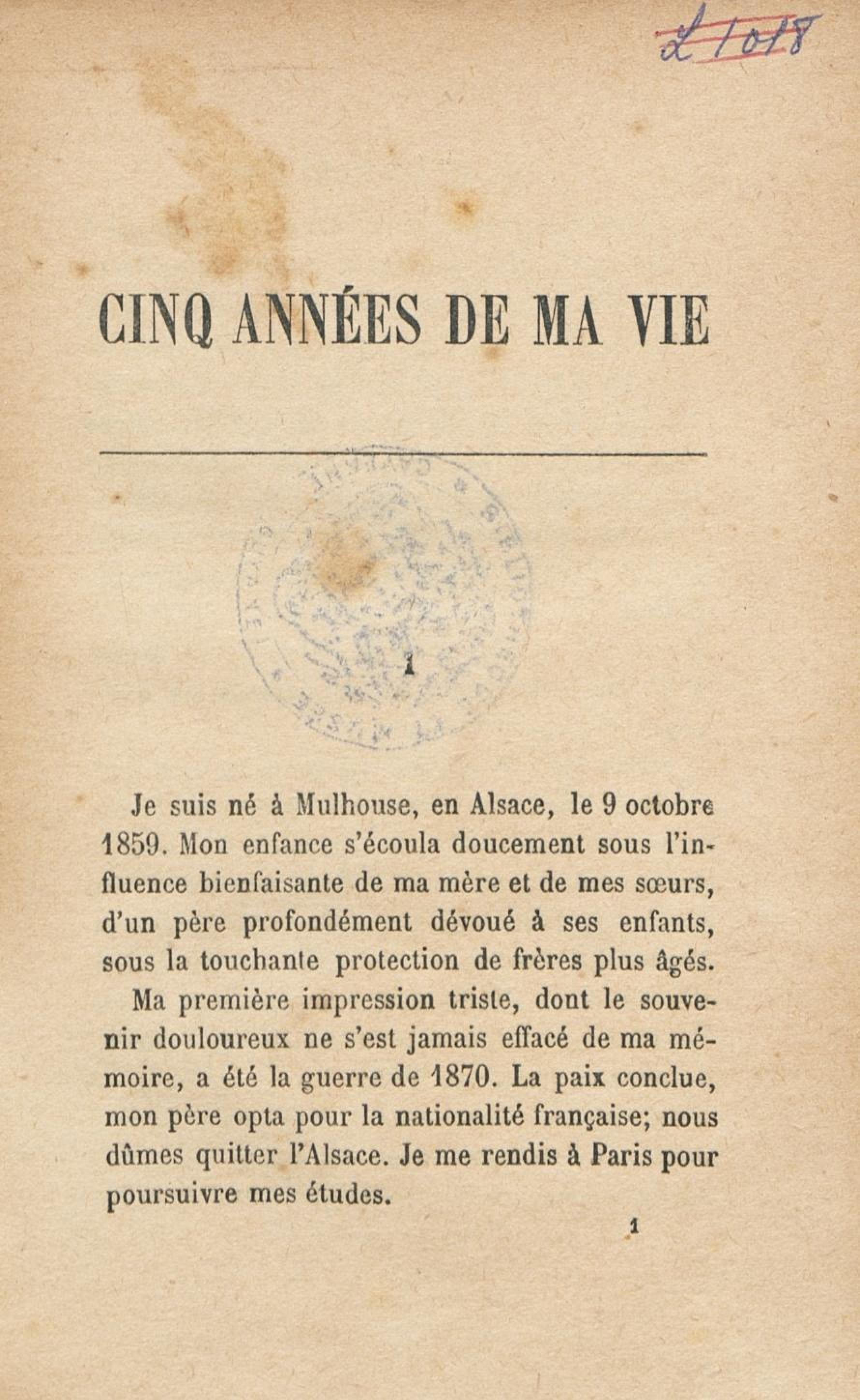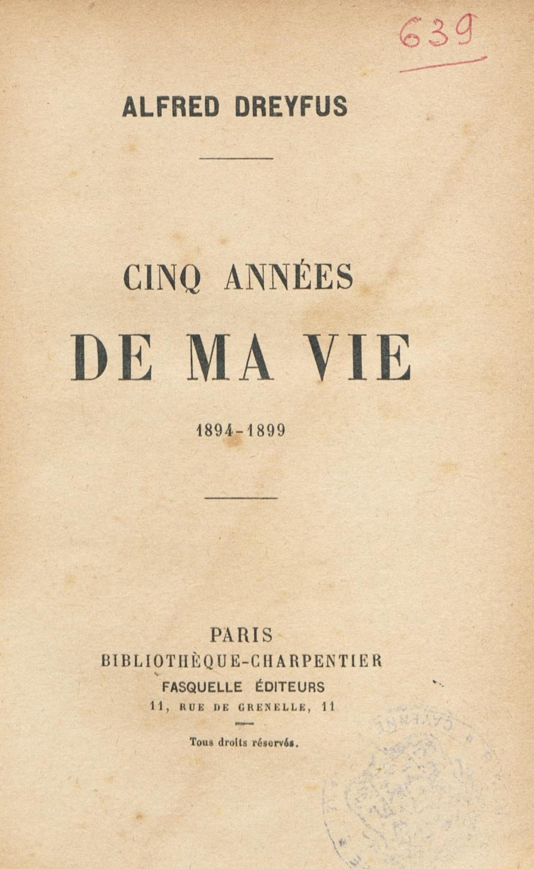 Cinq années de ma vie : 1894-1899