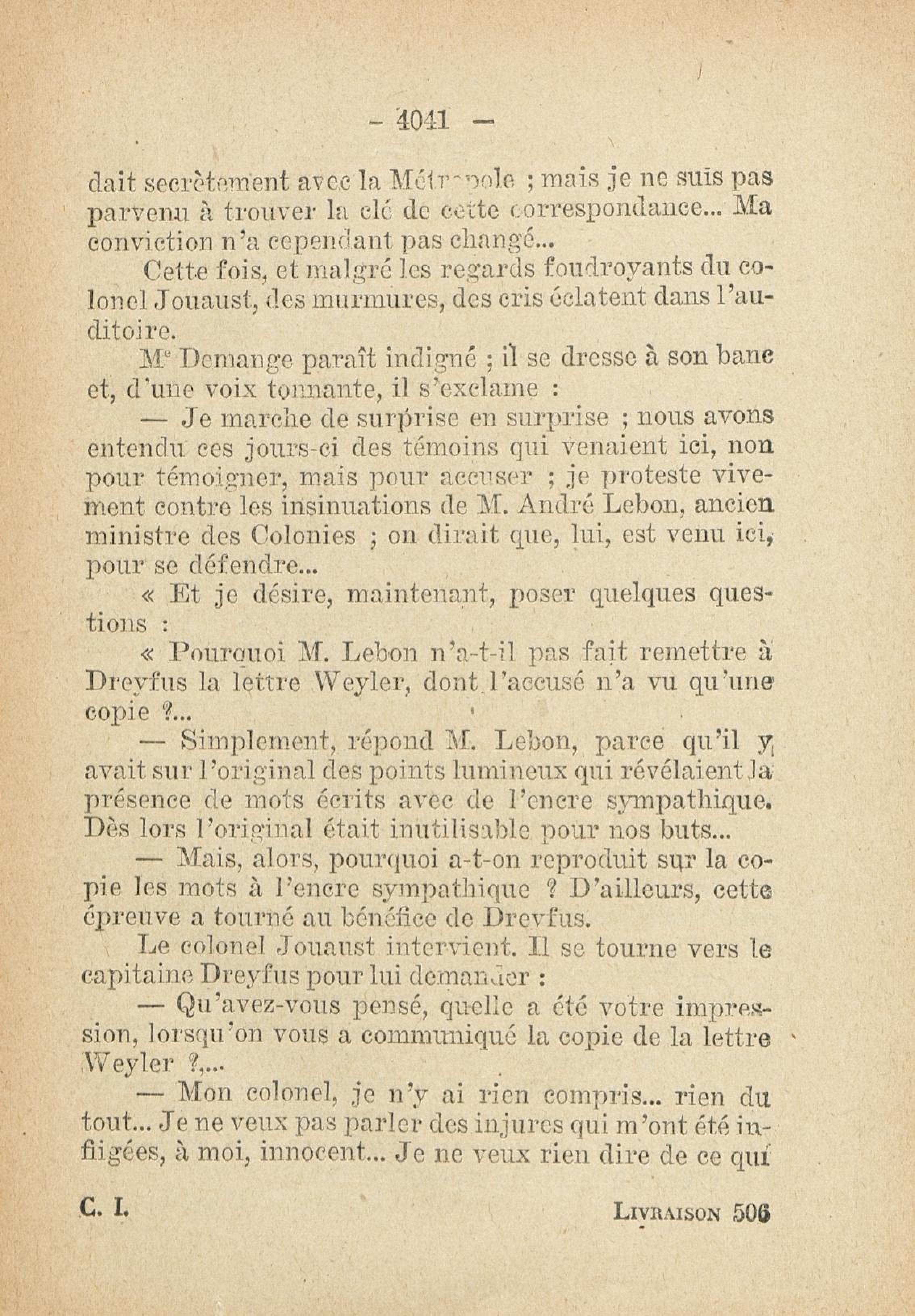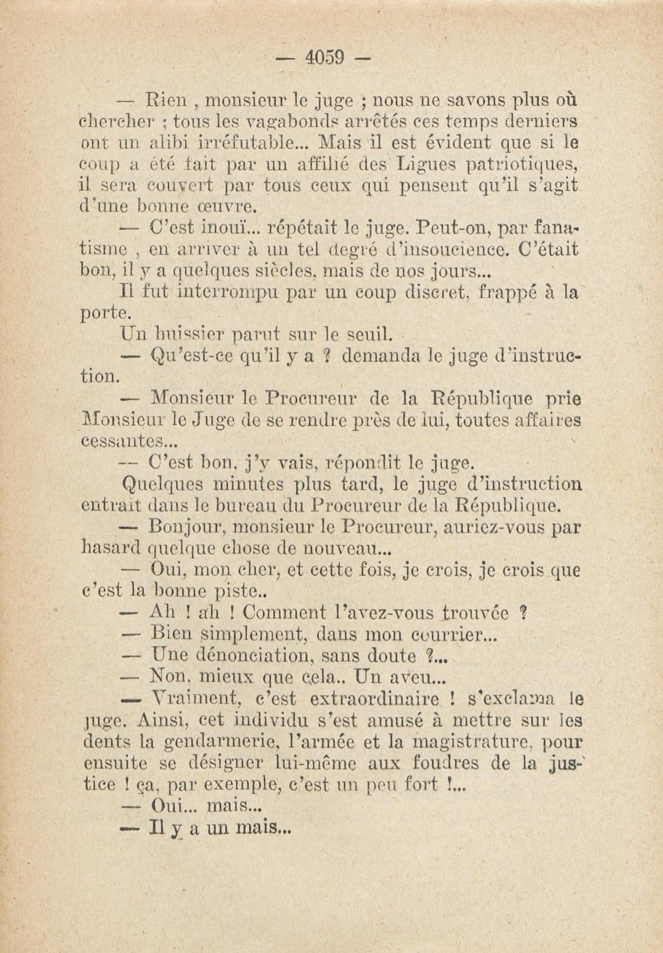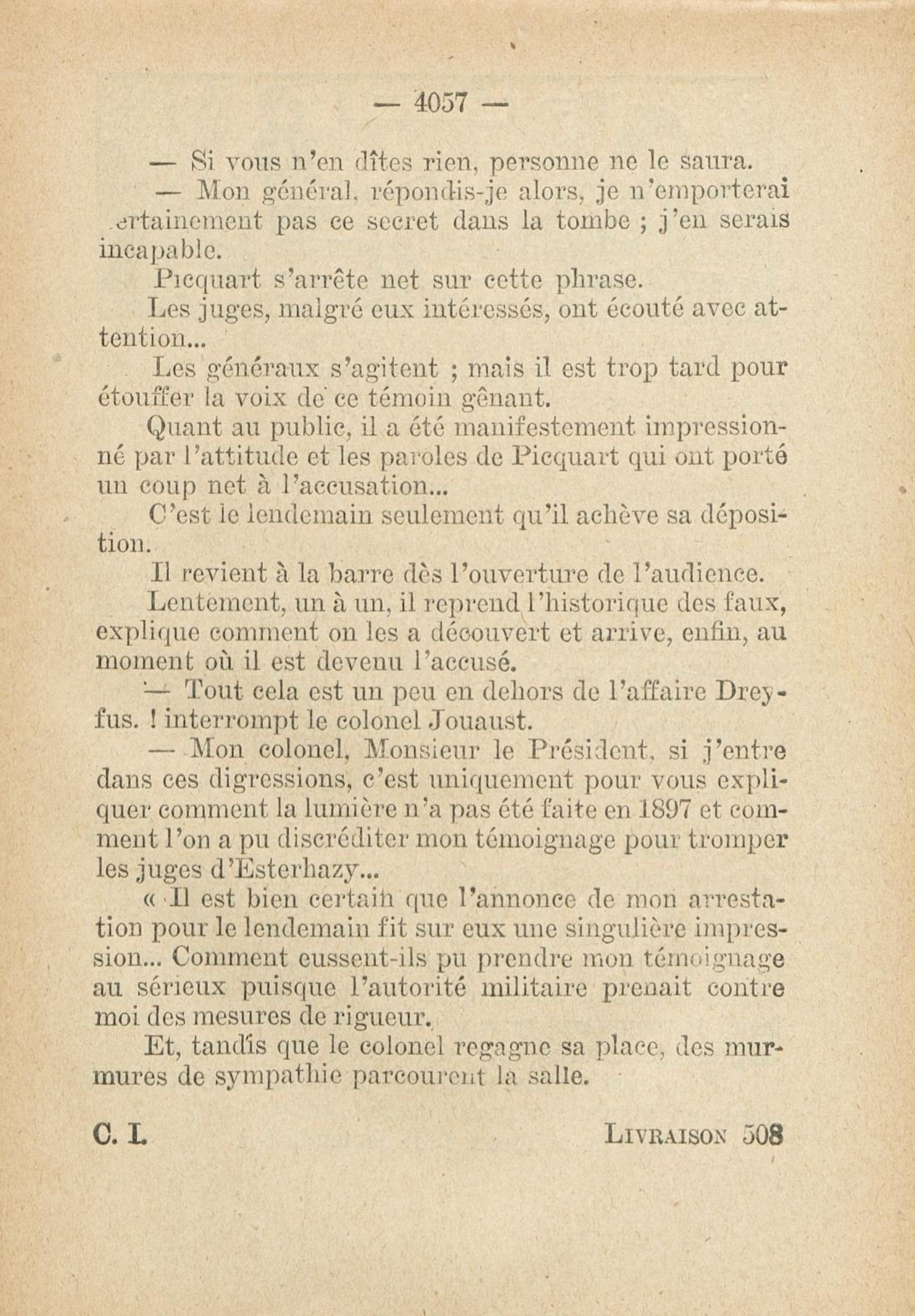 - Roman feuilleton relatant l'affaire Dreyfus, publié de 1931 à 1933, en fascicule hebdomaire (162 n° de 32 pages, soit 5184 pages)