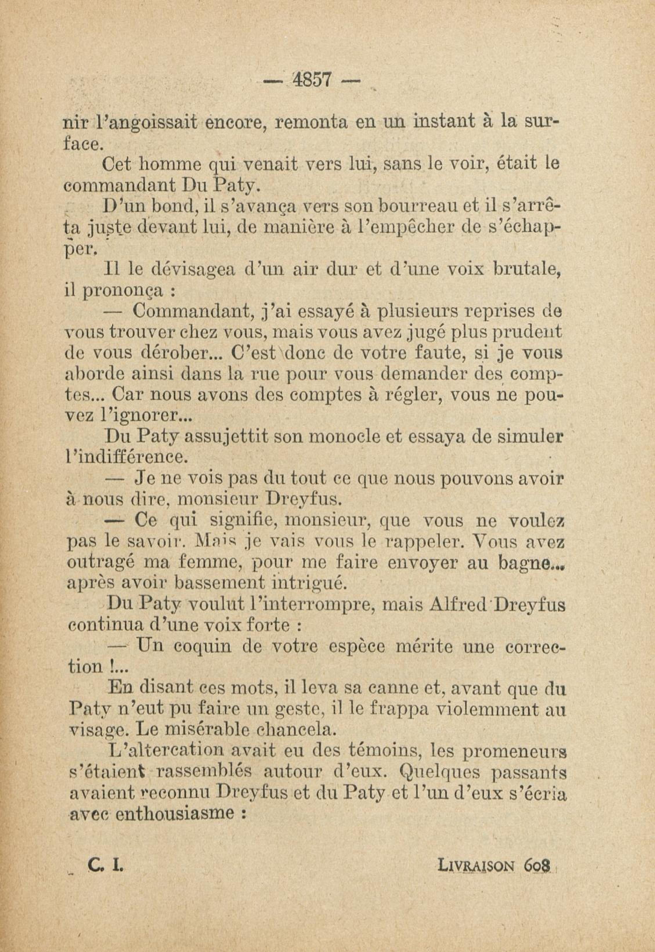 - Roman feuilleton relatant l'affaire Dreyfus, publié de 1931 à 1933, en fascicule hebdomaire (162 n° de 32 pages, soit 5184 pages)