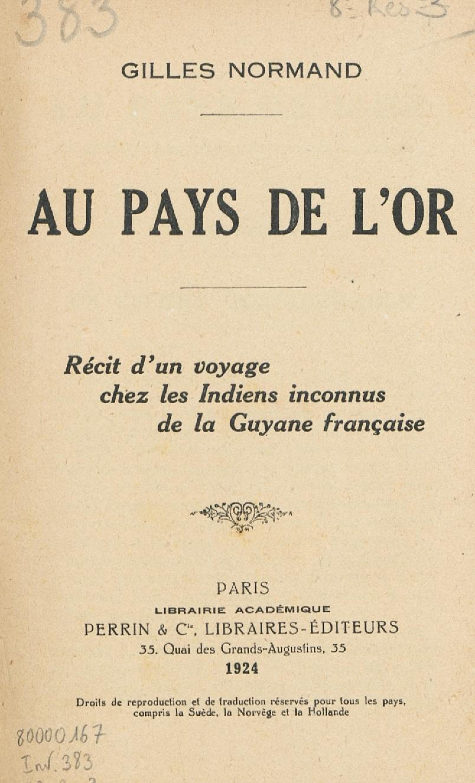 - Au pays de l'or : récit d'un voyage chez les Indiens inconnus de la Guyane française