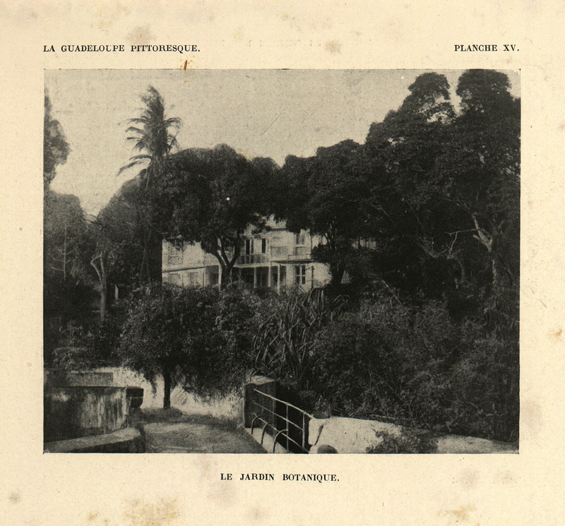 Photographie d'une allée du jardin botanique à Deshaies, en Guadeloupe au début du 20è siècle