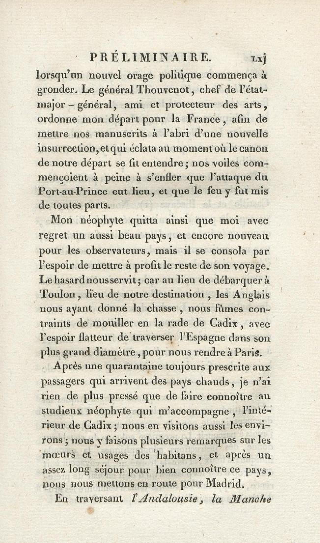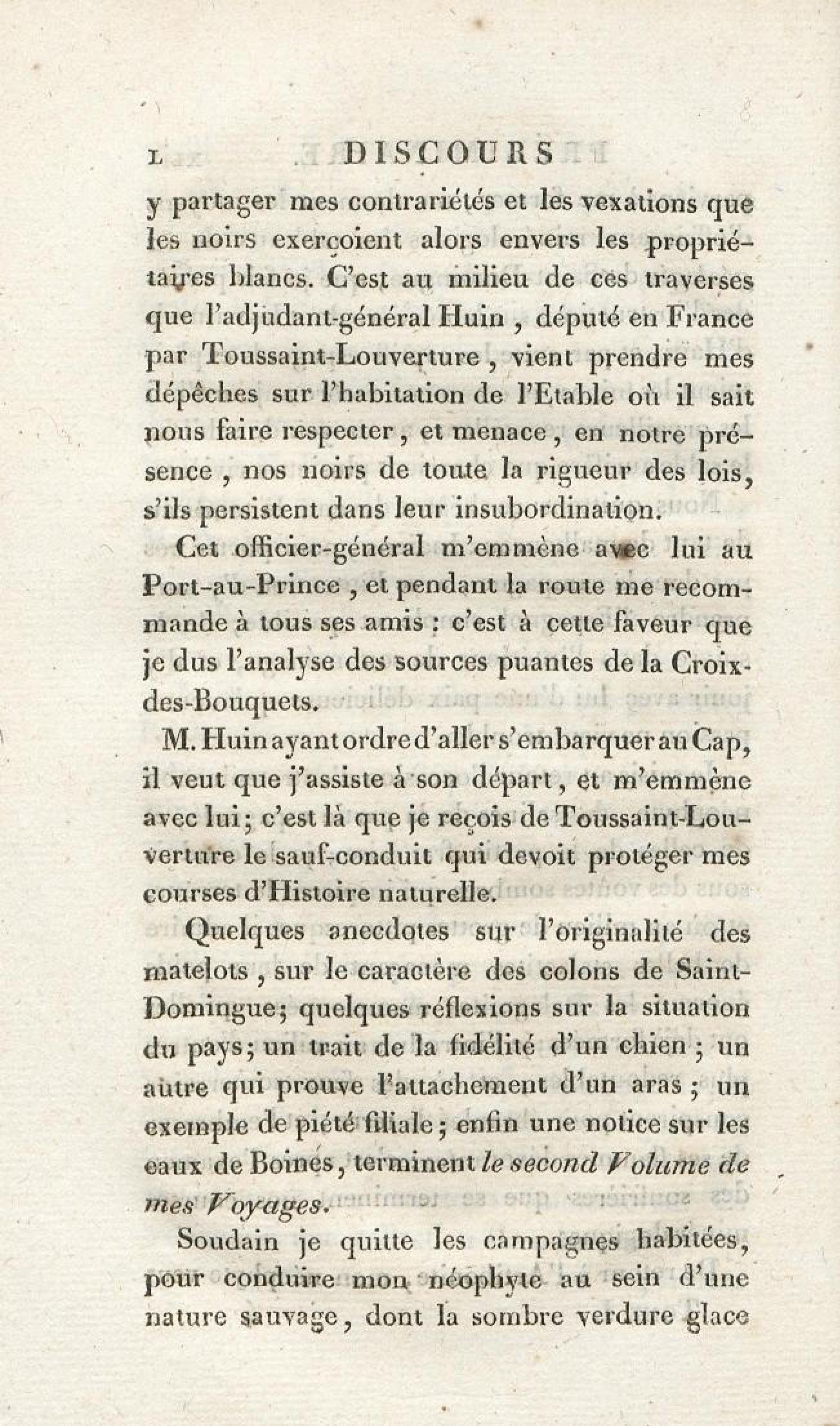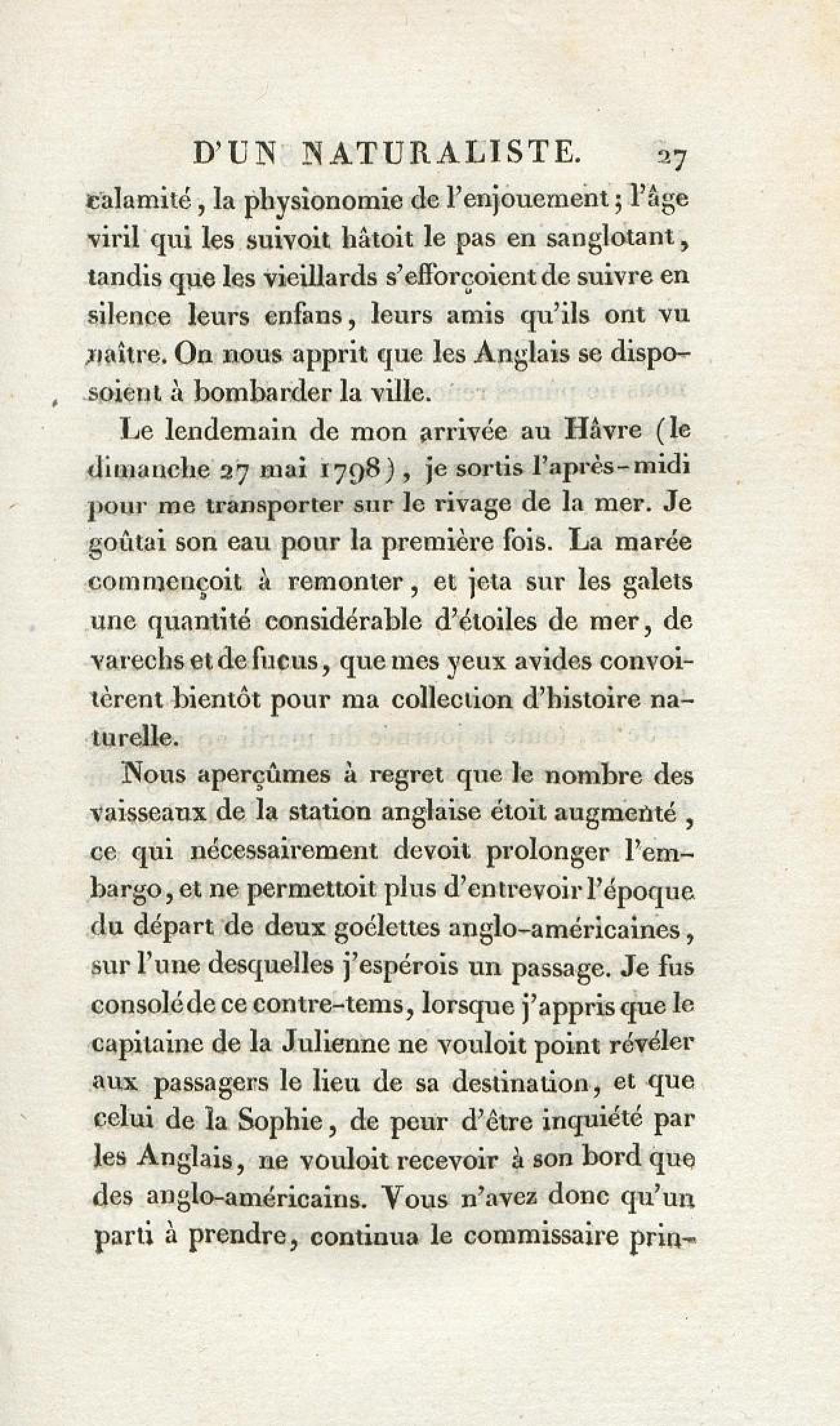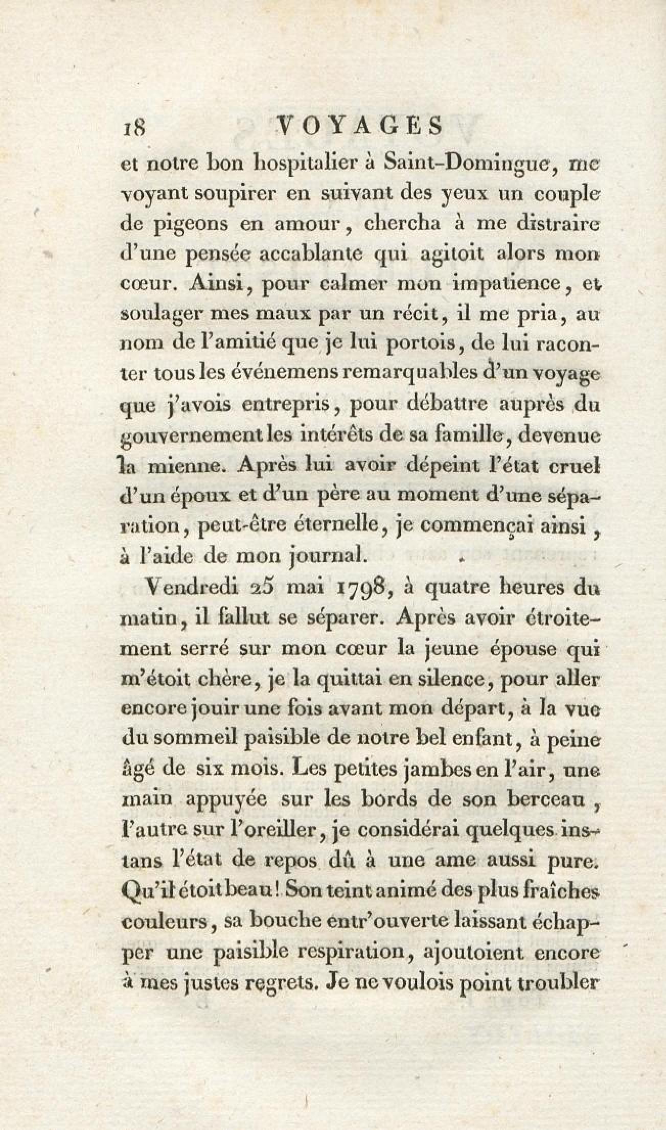 - Voyages d'un naturaliste et ses observations faites sur les trois règnes de la nature : dans plusieurs ports de mer français, en Espagne, au continent de l'Amérique septentrionale, à Saint-Yago de Cuba et à St-Domingue, où l'auteur devenu le prisonnier de 40000 Noirs révoltés, et par suite mis en liberté par une colonne de l'armée française, donne des détails circonstanciés sur l'expédition du général Leclerc. Tome 1