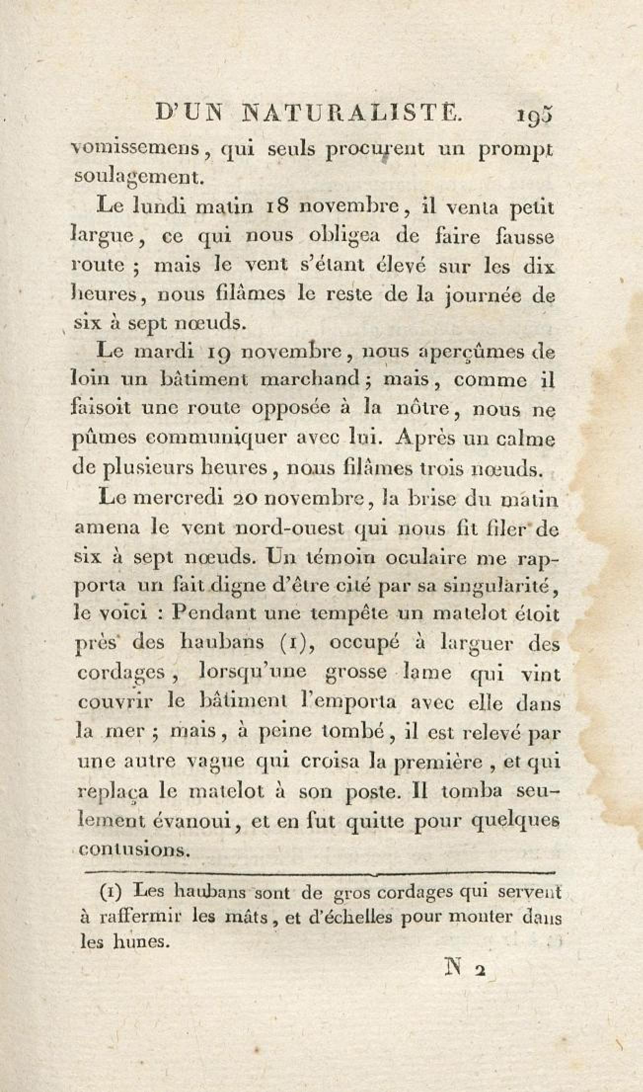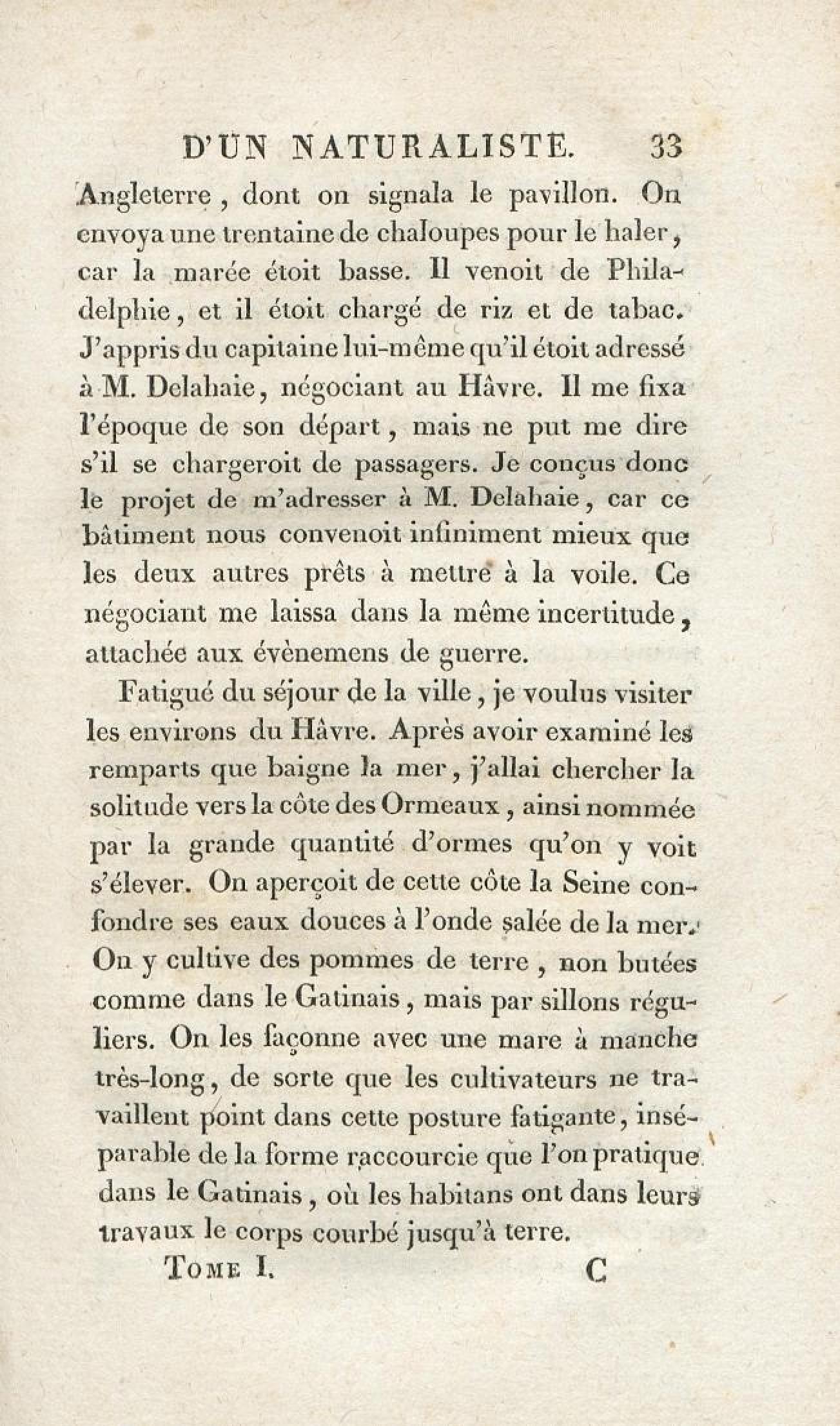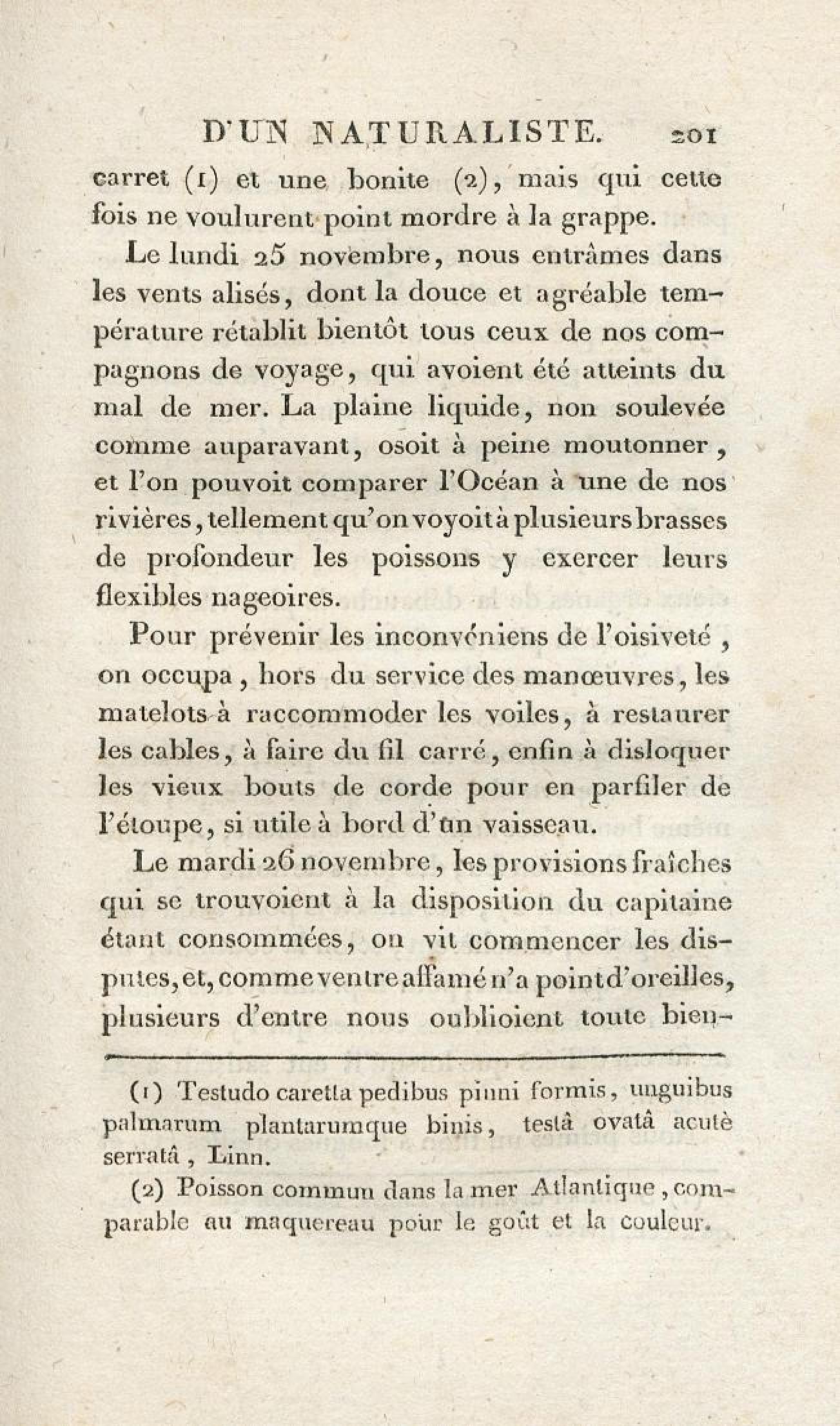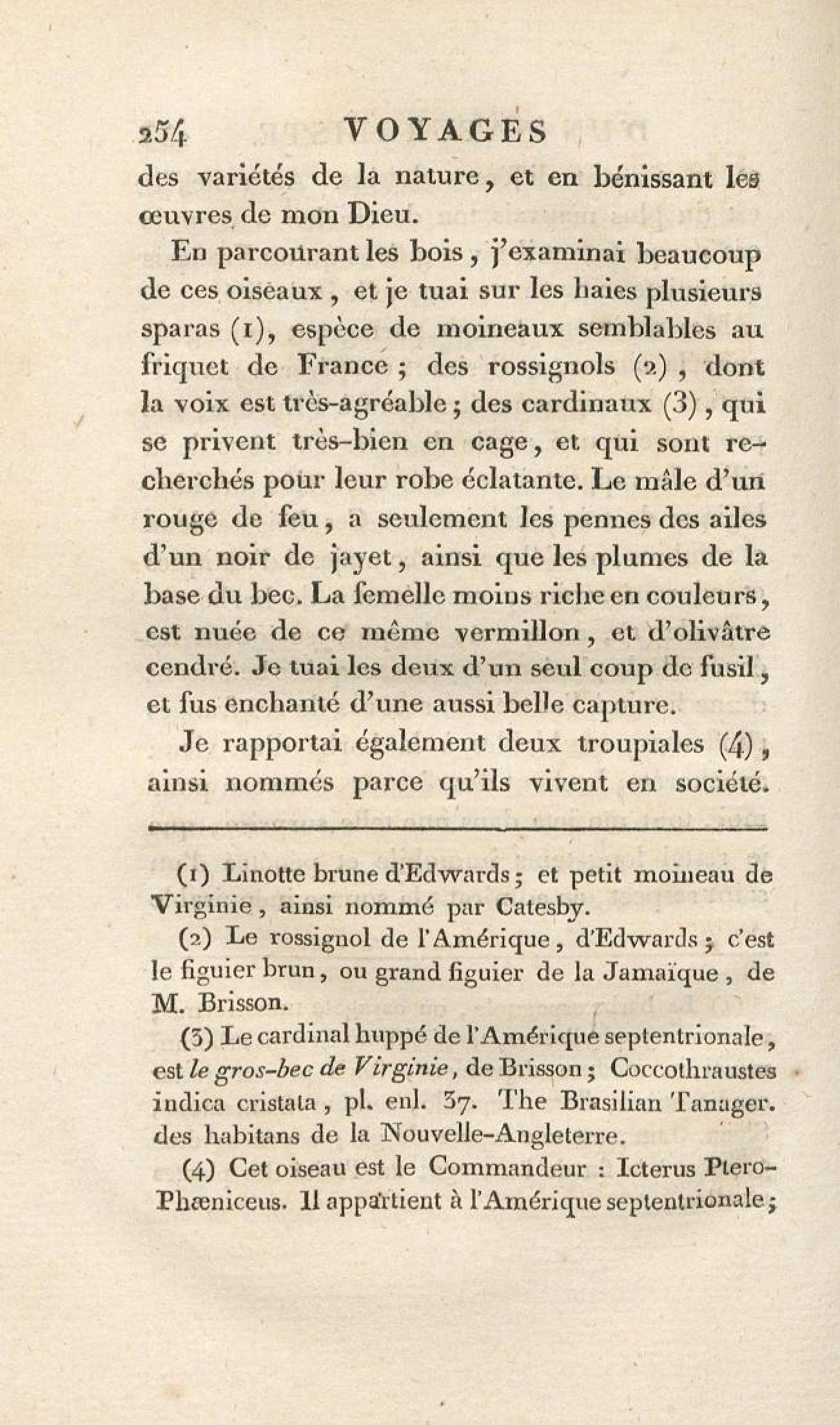 - Voyages d'un naturaliste et ses observations faites sur les trois règnes de la nature : dans plusieurs ports de mer français, en Espagne, au continent de l'Amérique septentrionale, à Saint-Yago de Cuba et à St-Domingue, où l'auteur devenu le prisonnier de 40000 Noirs révoltés, et par suite mis en liberté par une colonne de l'armée française, donne des détails circonstanciés sur l'expédition du général Leclerc. Tome 1