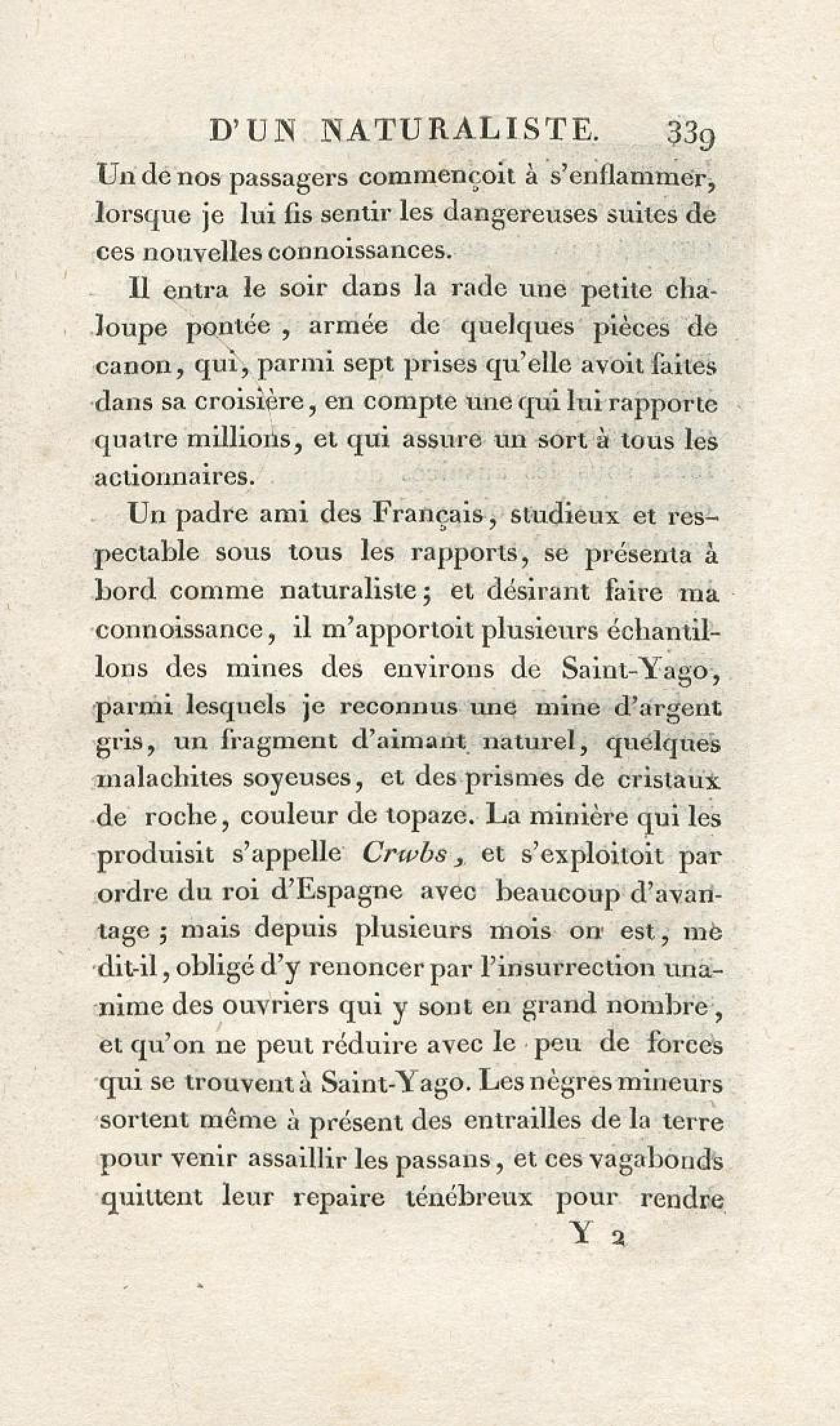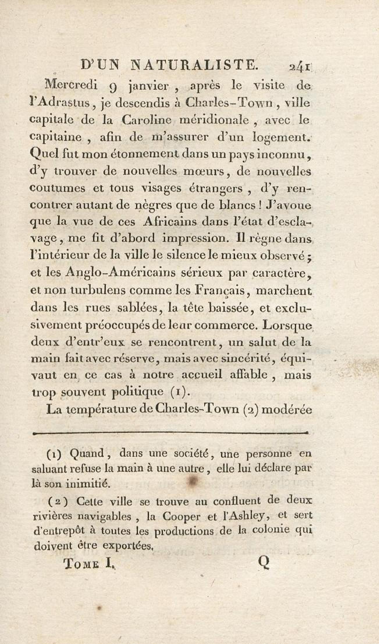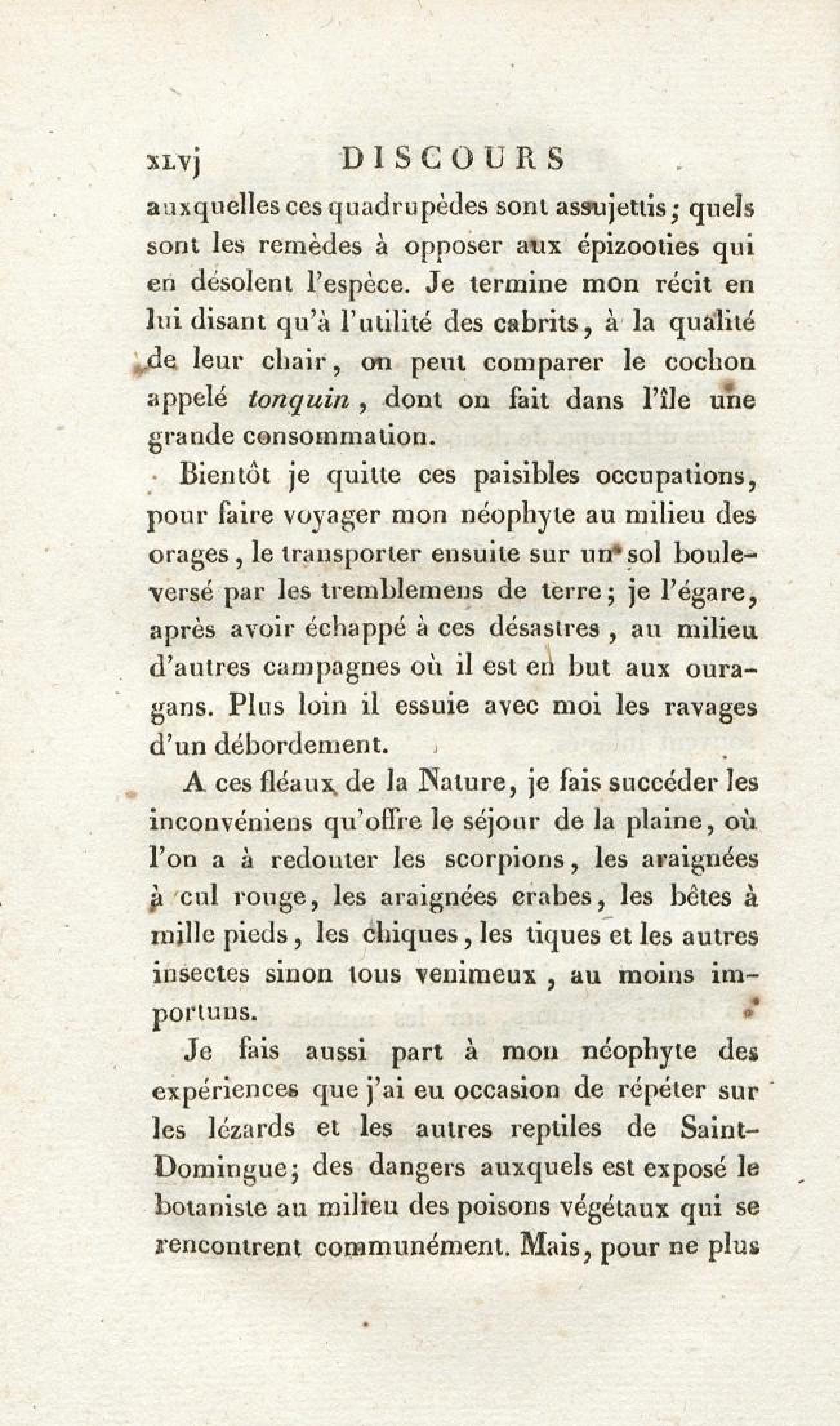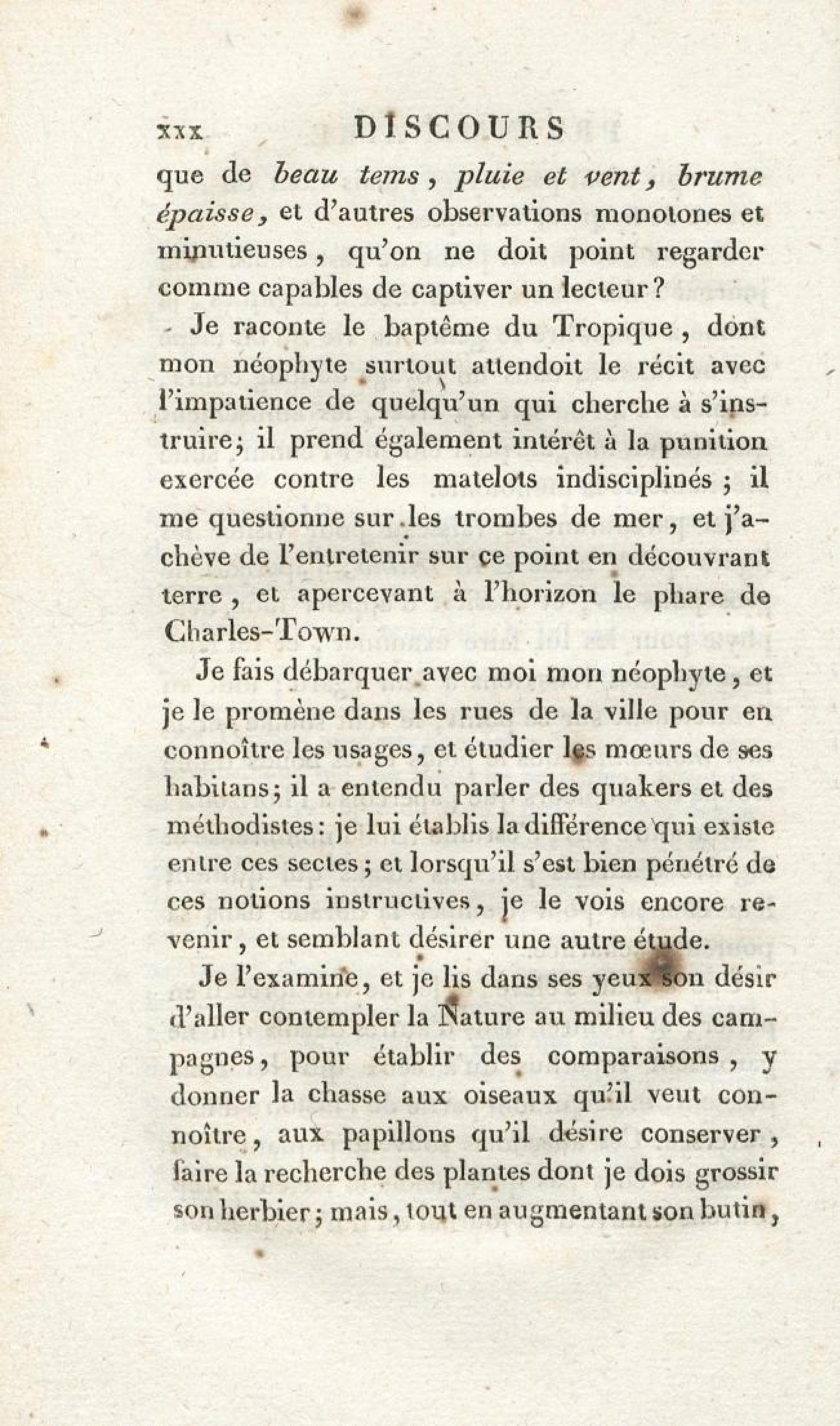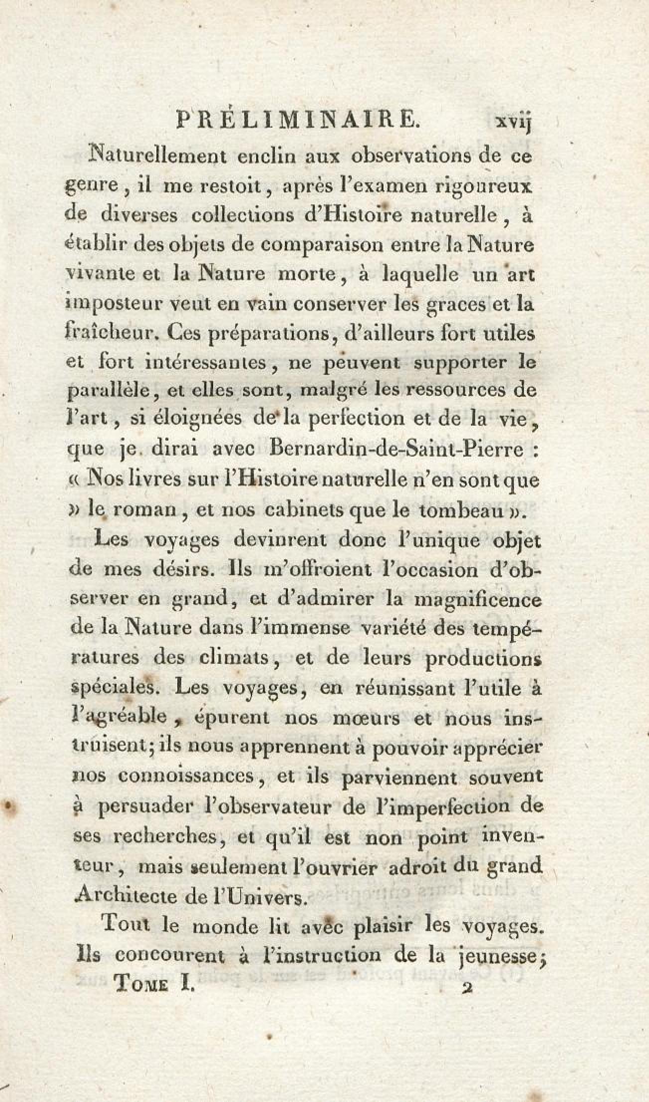Voyages d'un naturaliste et ses observations faites sur les trois règnes de la nature : dans plusieurs ports de mer français, en Espagne, au continent de l'Amérique septentrionale, à Saint-Yago de Cuba et à St-Domingue, où l'auteur devenu le prisonnier de 40000 Noirs révoltés, et par suite mis en liberté par une colonne de l'armée française, donne des détails circonstanciés sur l'expédition du général Leclerc. Tome 1
