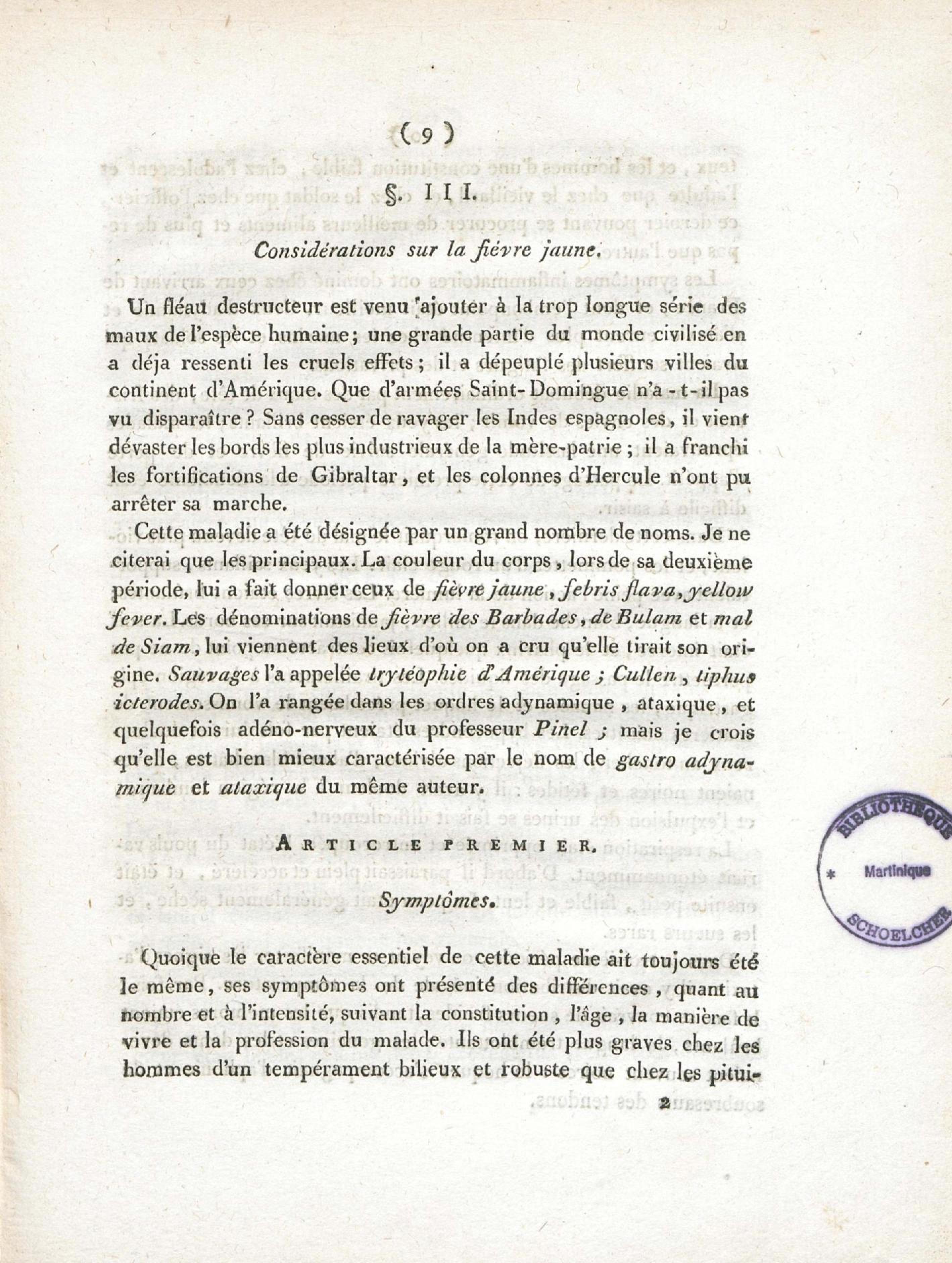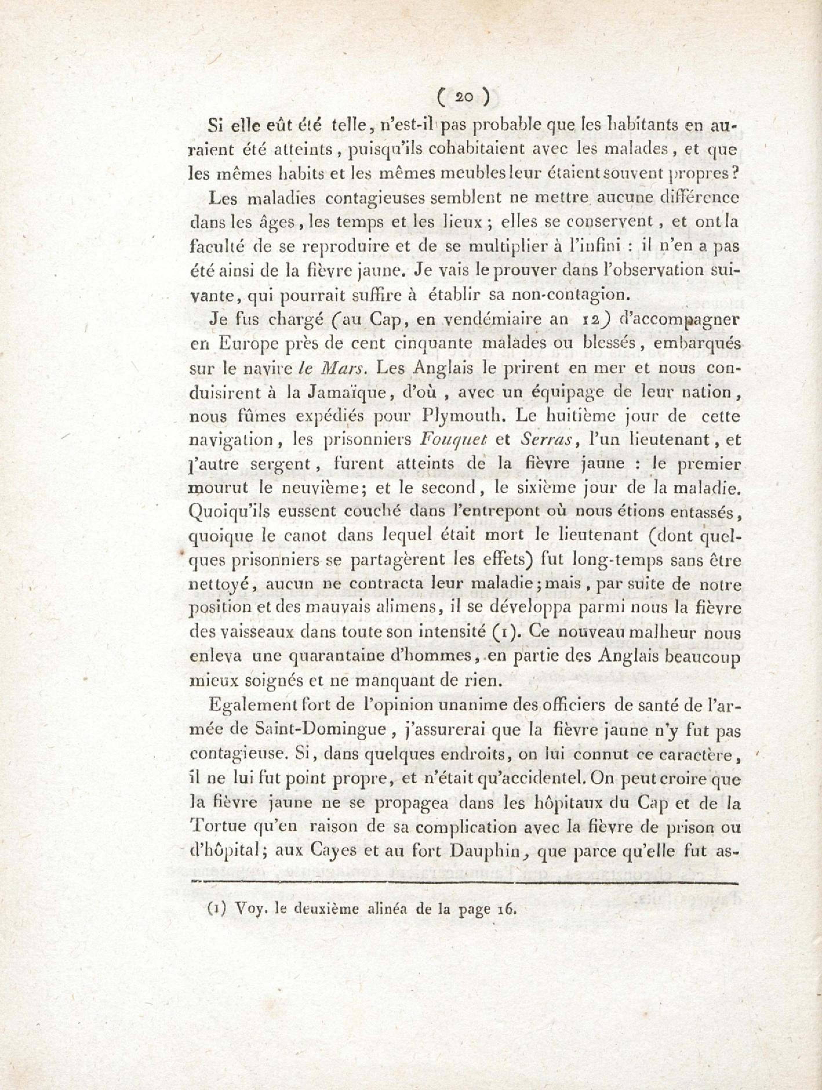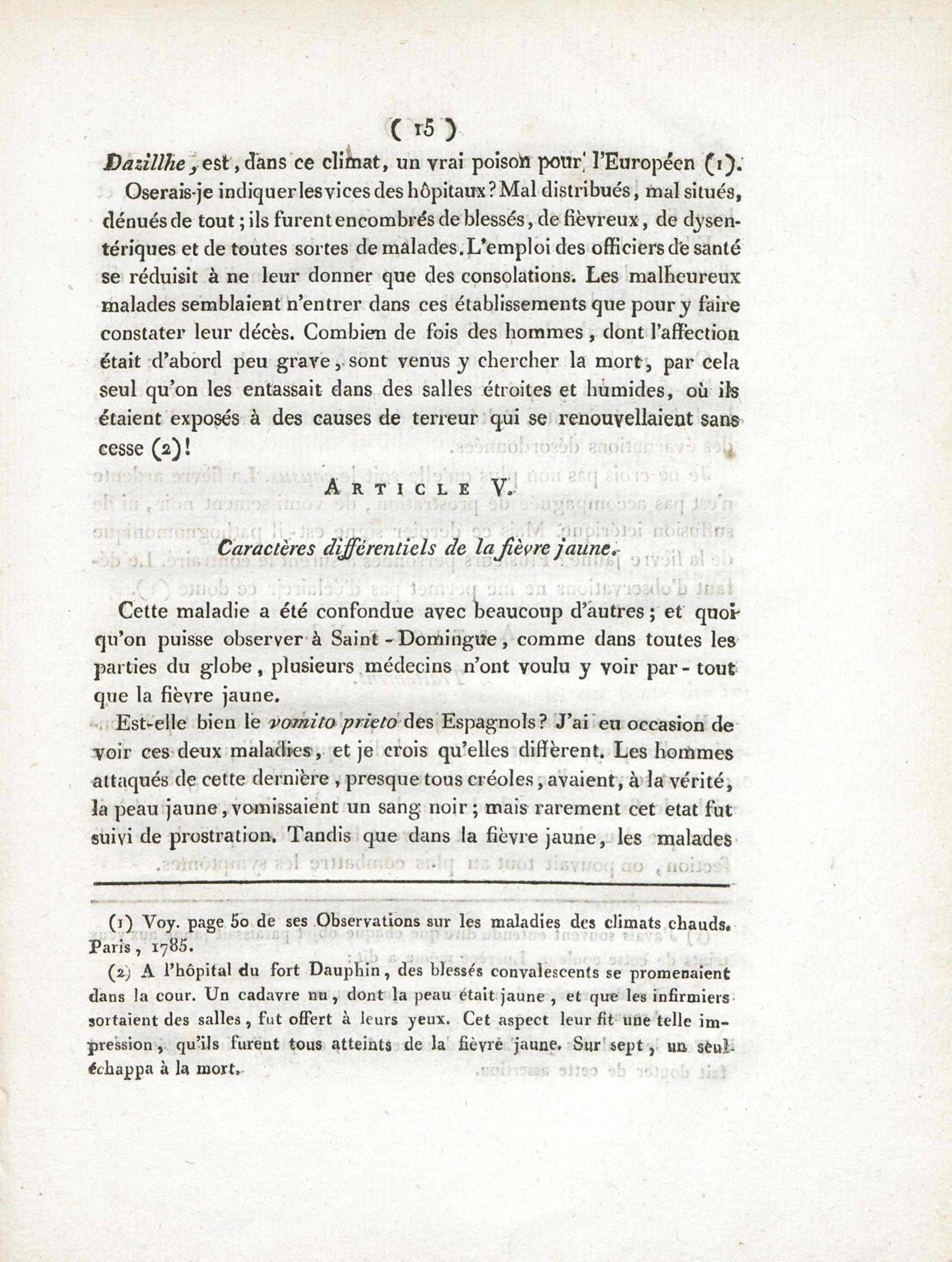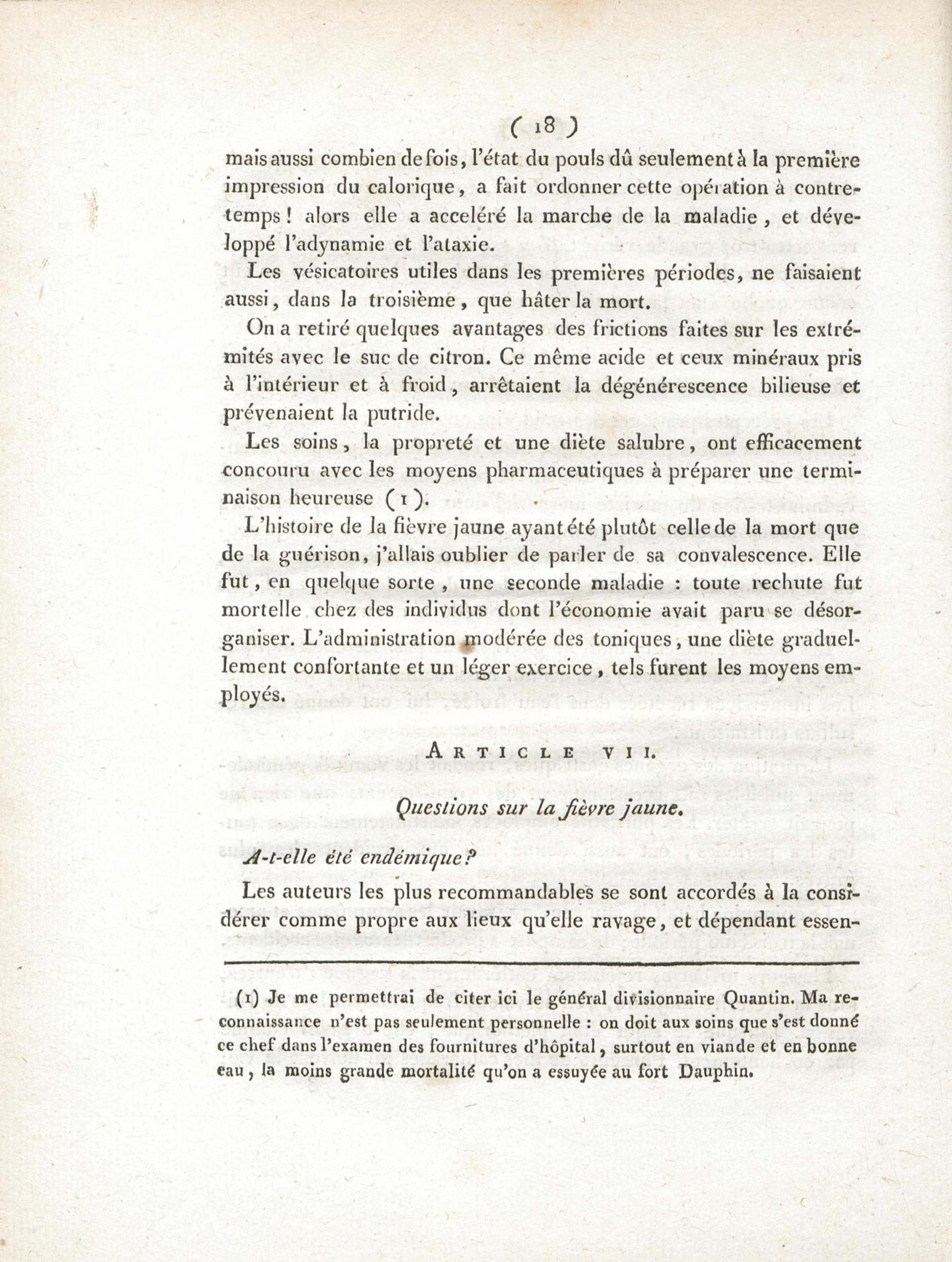 Essai sur les maladies de l'armée de St.-Domingue en l'an XI, et principalement sur la fièvre jaune : présenté conformément à l'article XI de la loi du 19 ventose an XI, et à la décision du Ministre de l'Intérieur, du 26 brumaire an XIII, et soutenu à l'Ecole de médecine de Paris, le 10 nivose an XIII